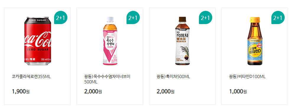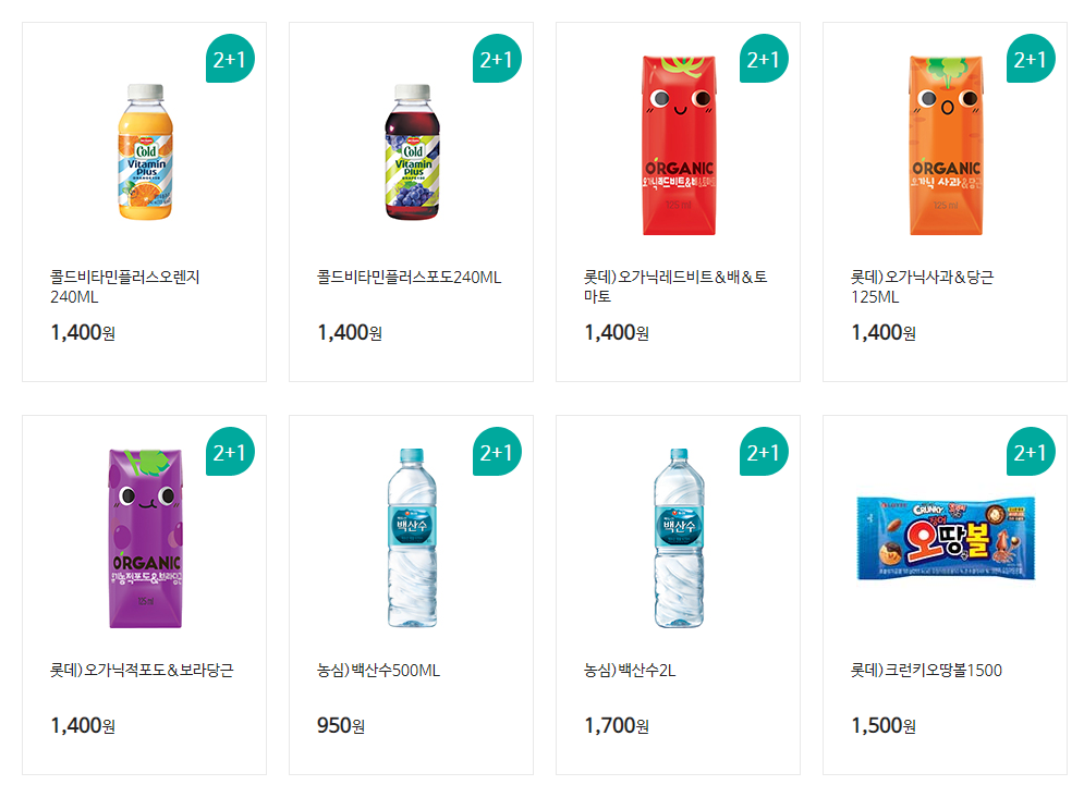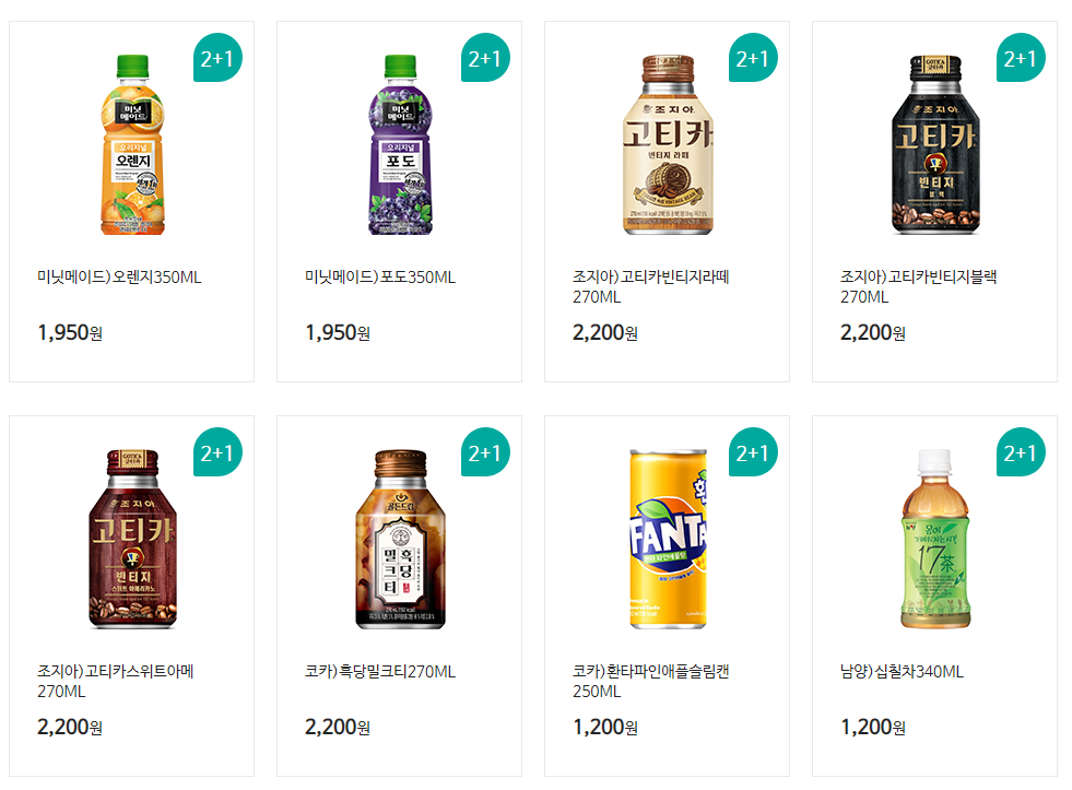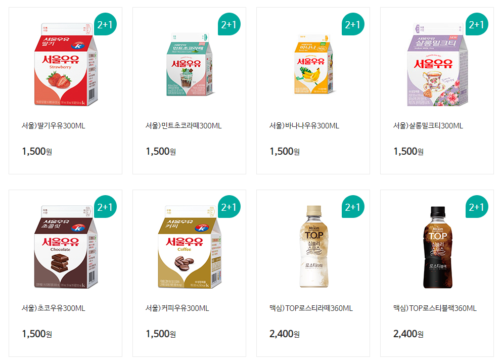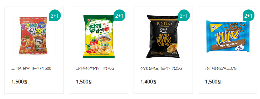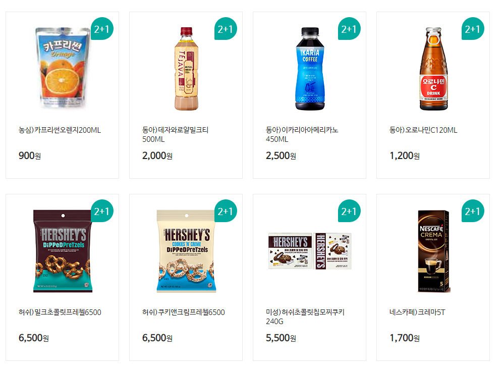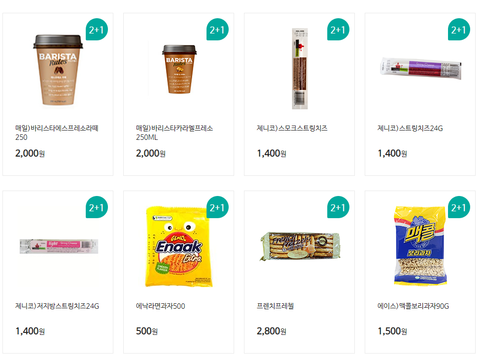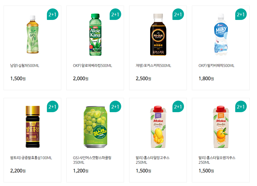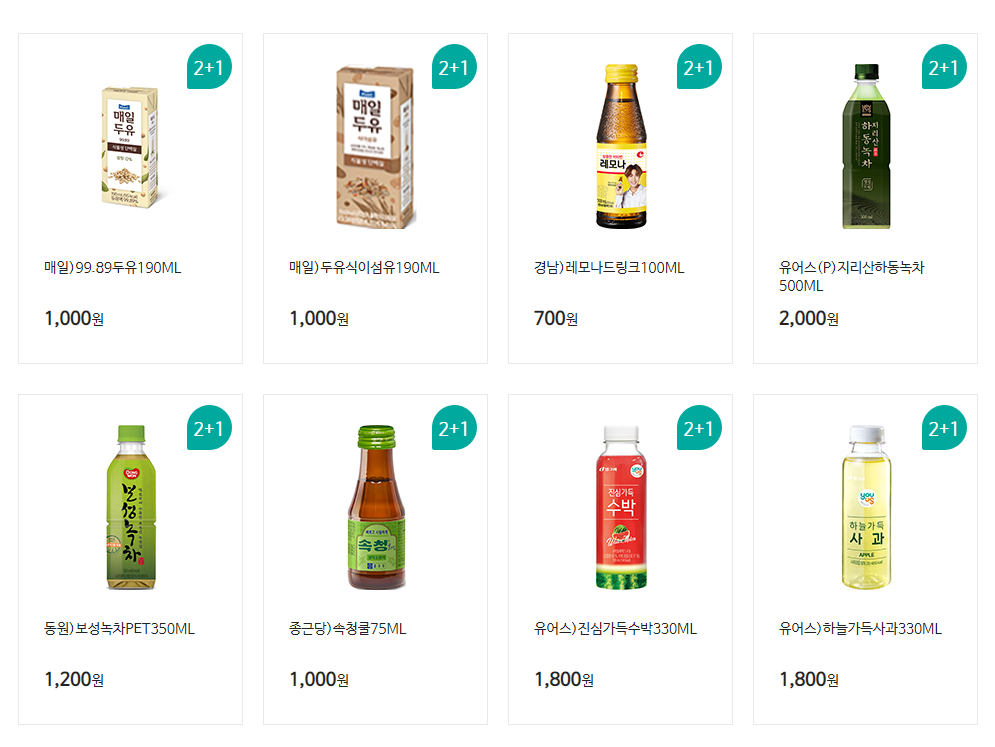 더 많은 2+1 상품(음료, 간식 종류만)은 아래 클릭