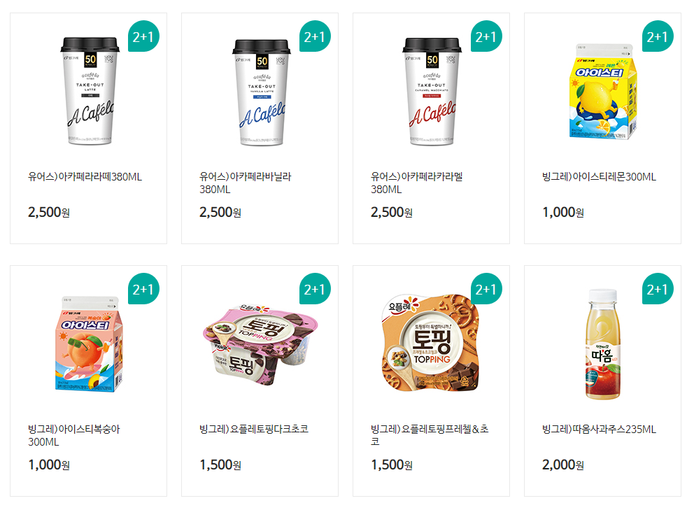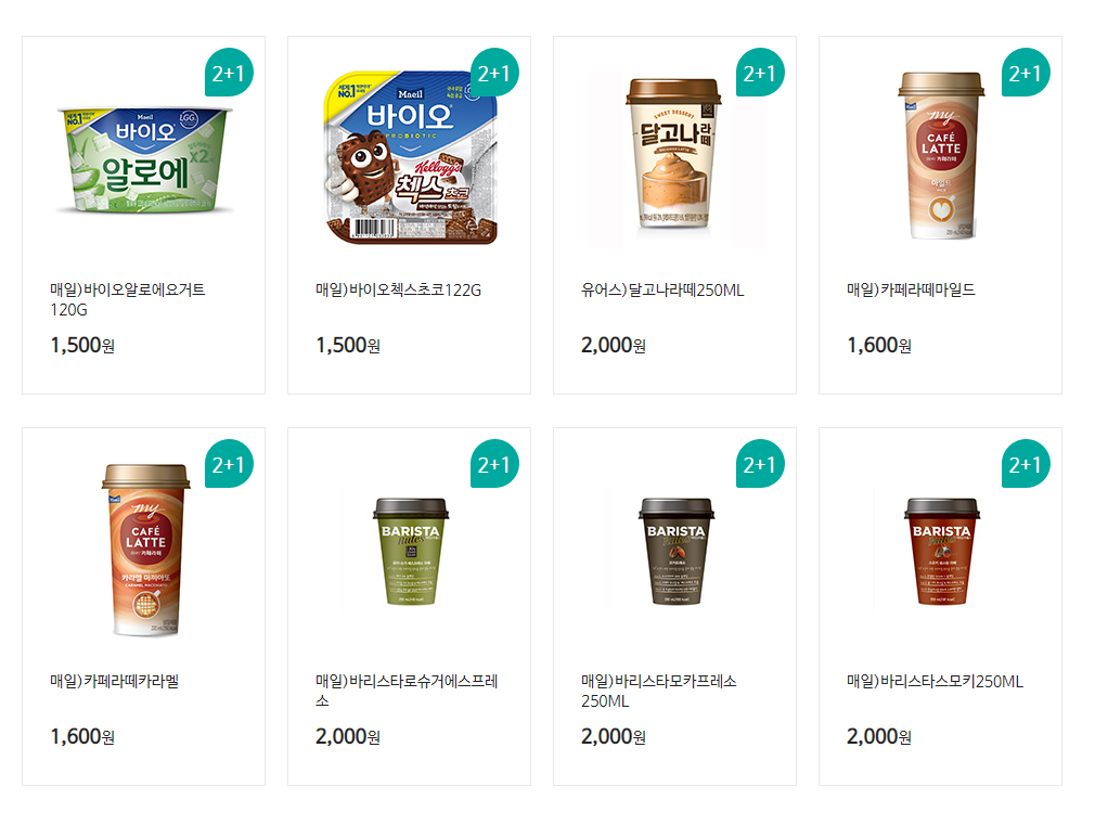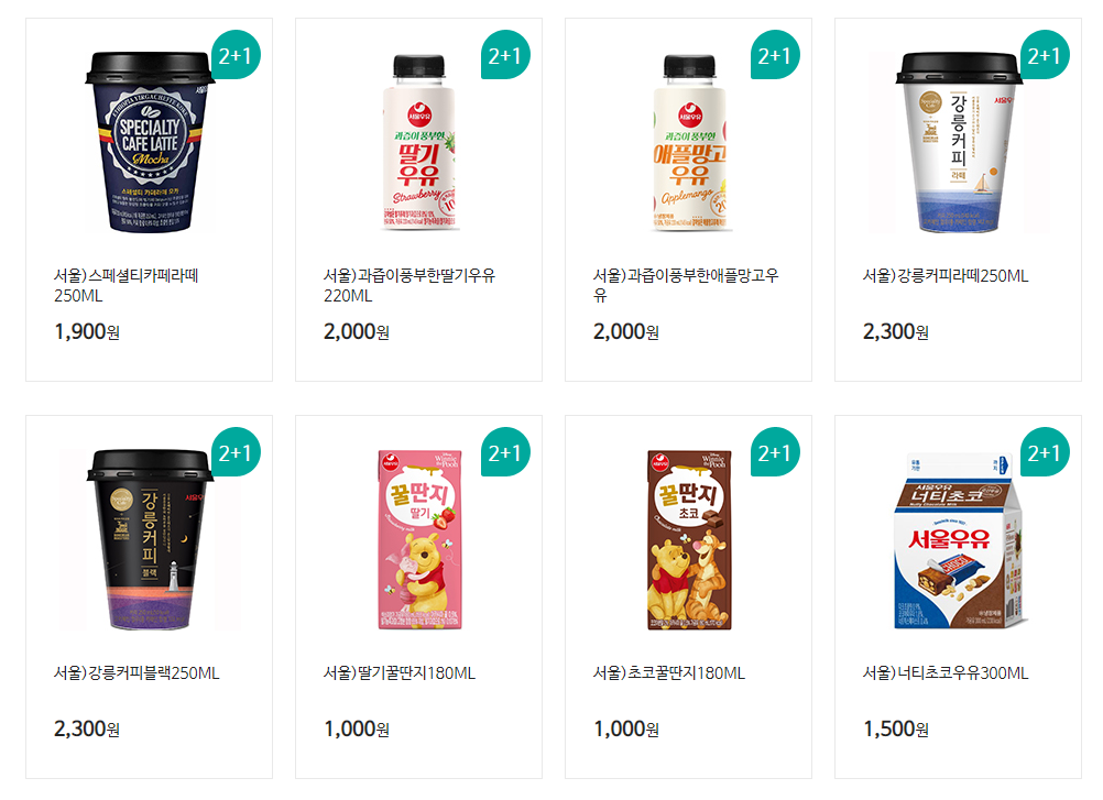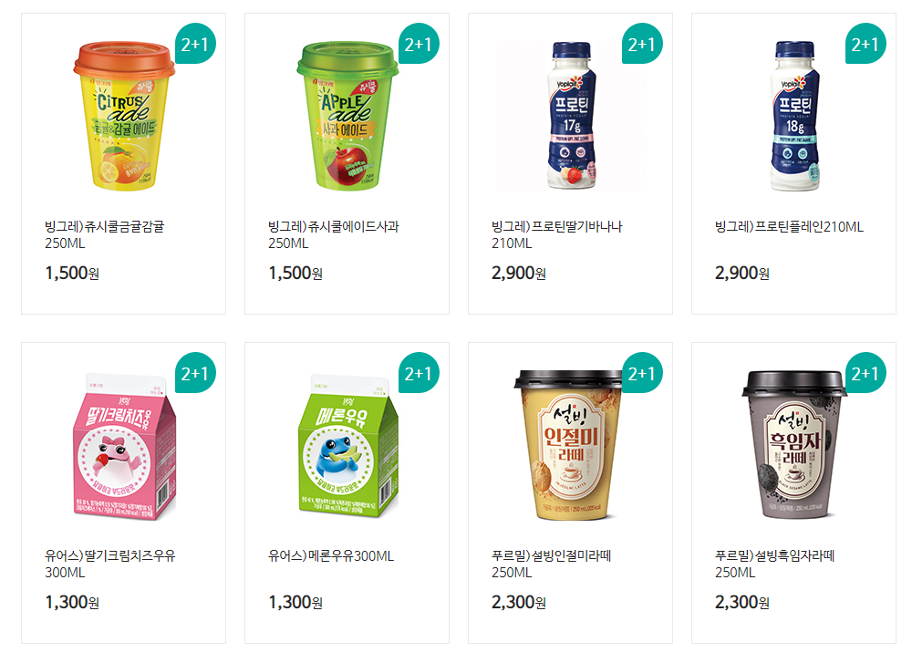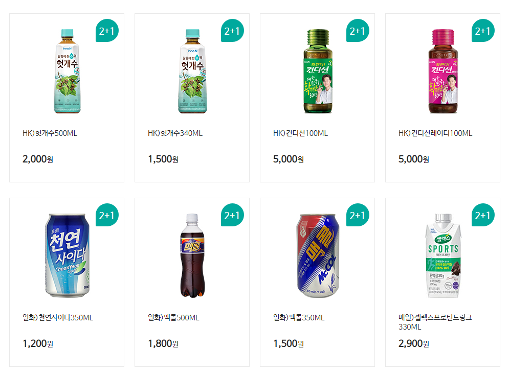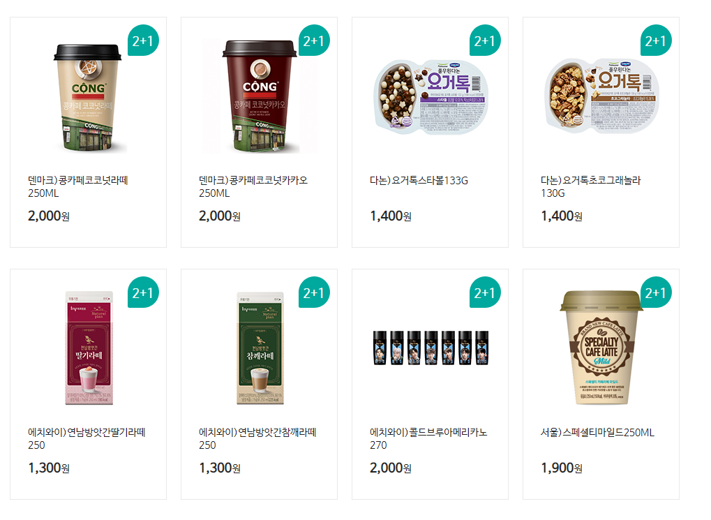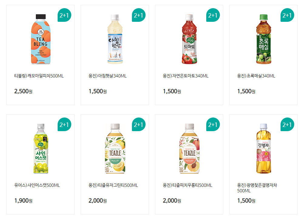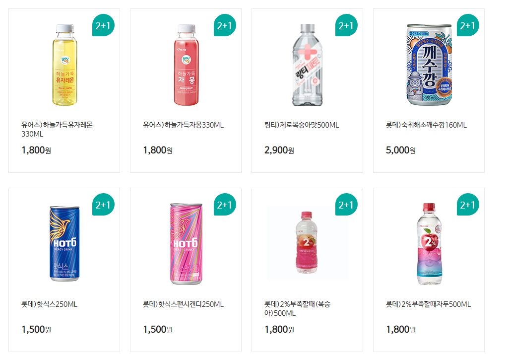 더 많은 2+1 상품(음료, 간식 종류만)은 아래 클릭