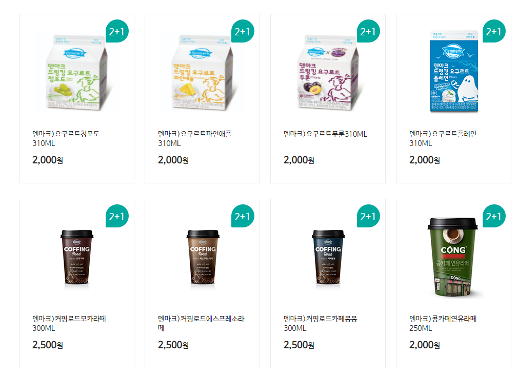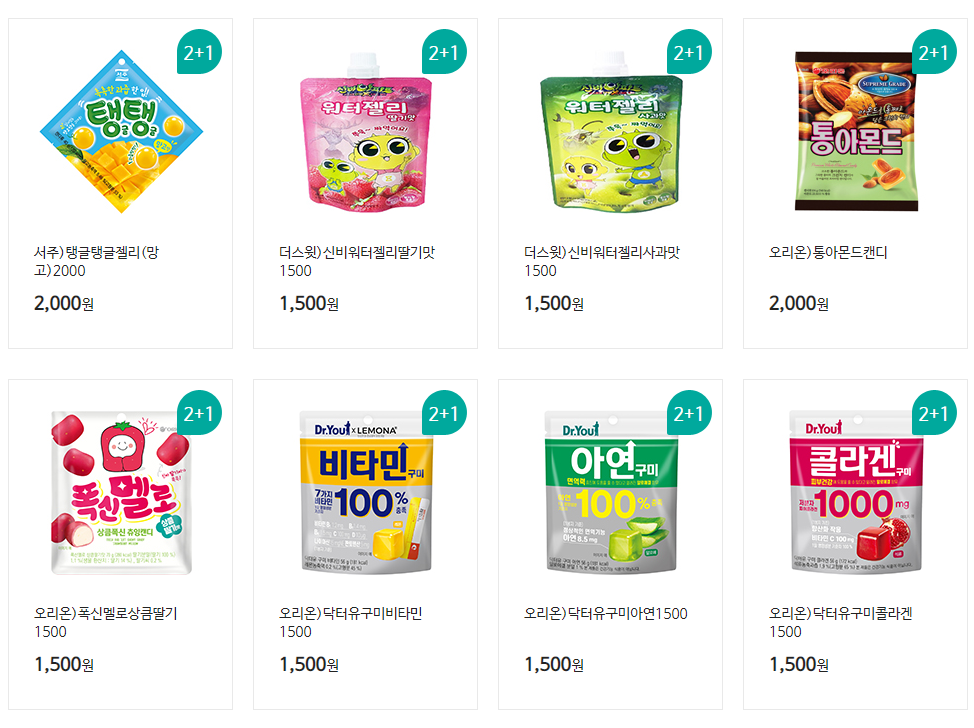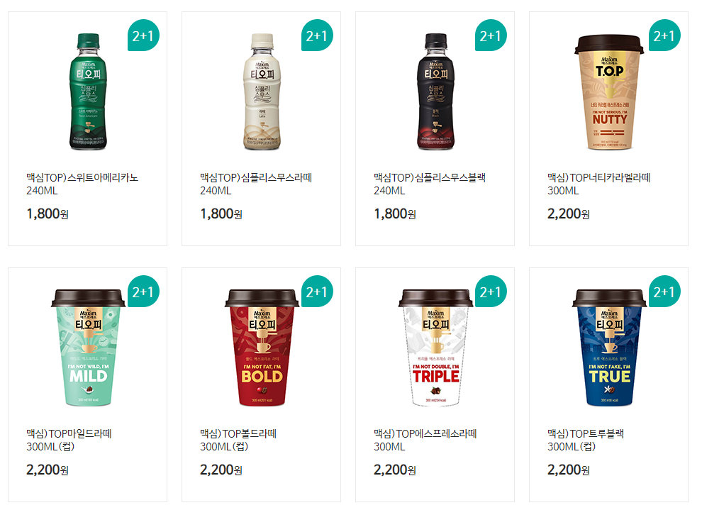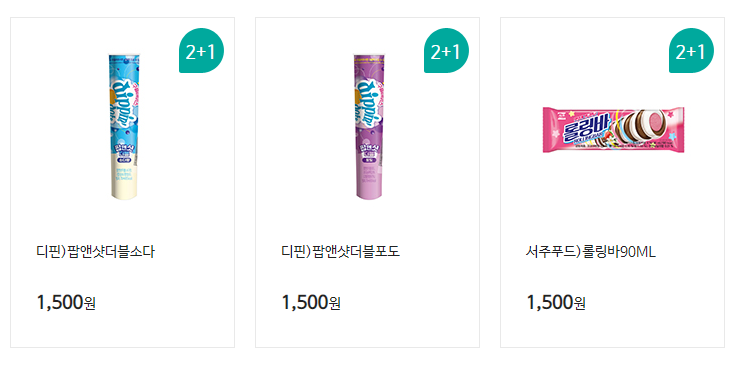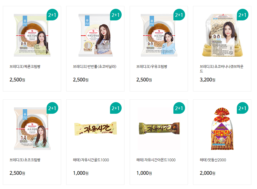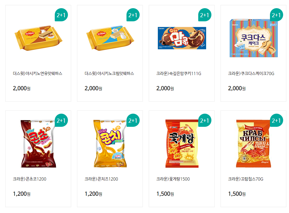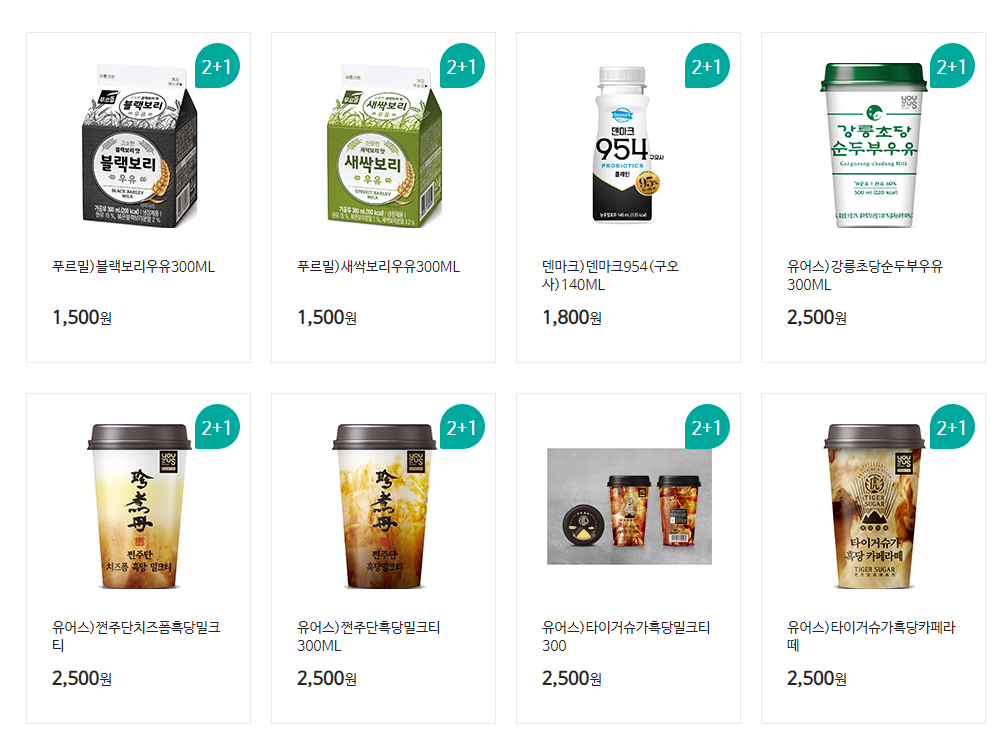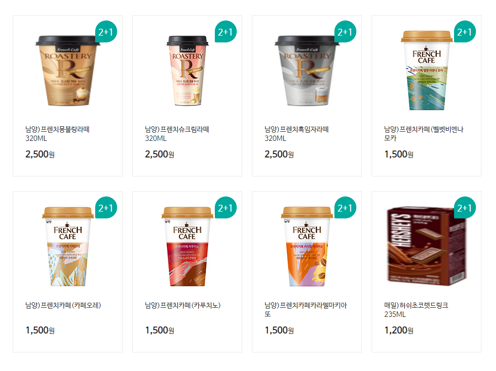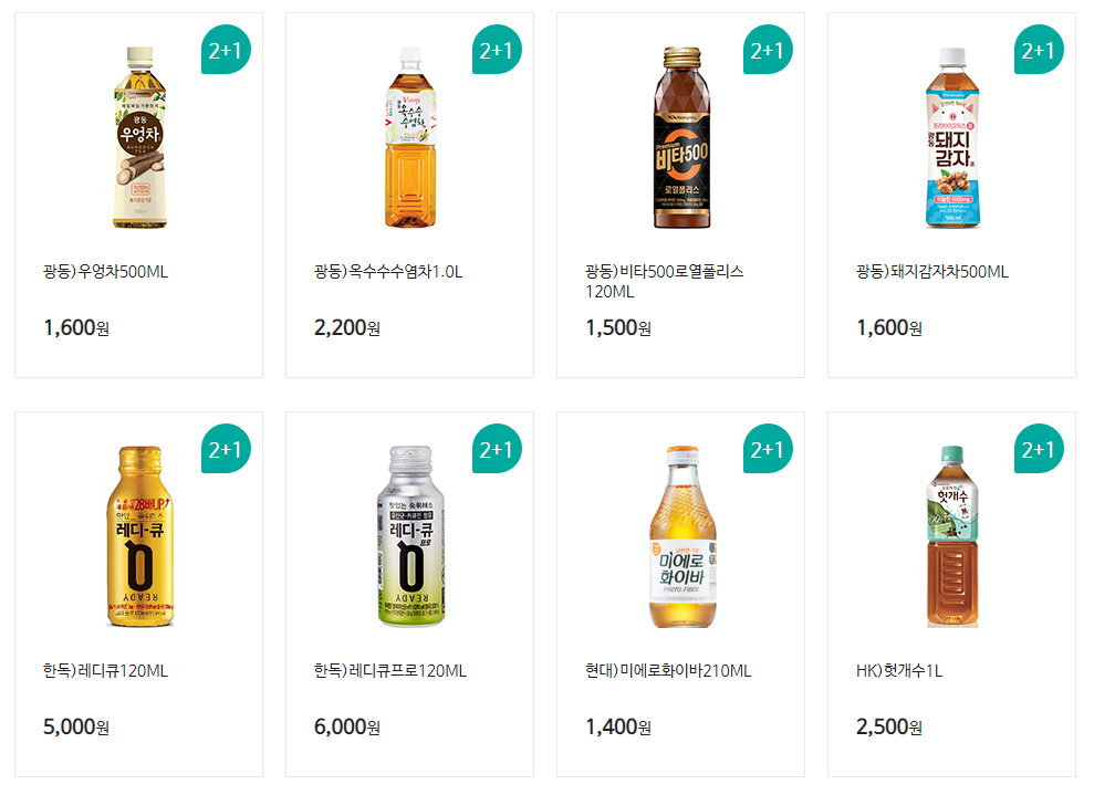 더 많은 2+1 상품(음료, 간식 종류만)은 아래 클릭