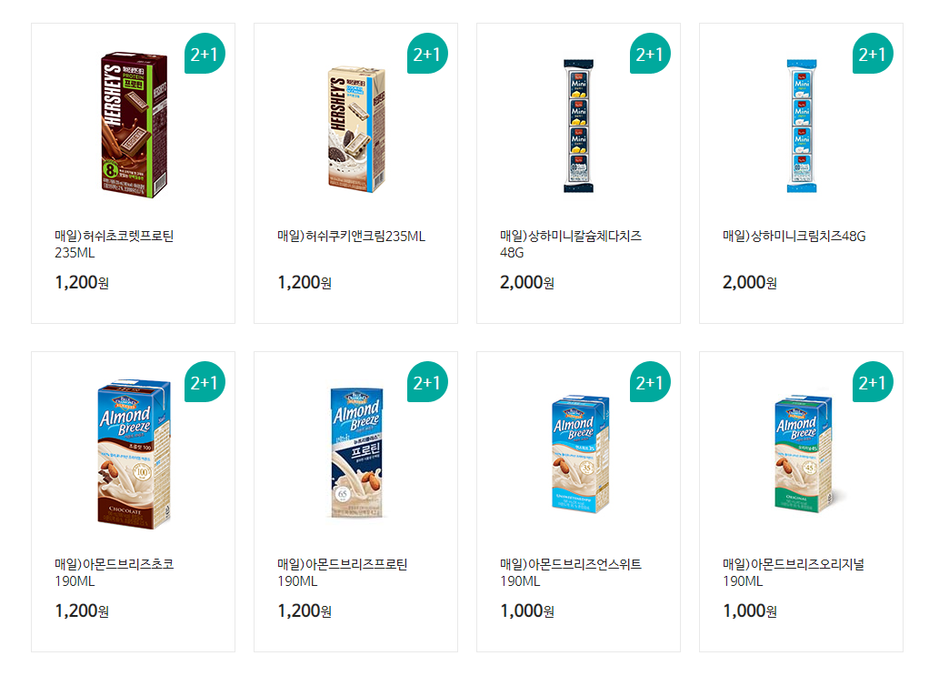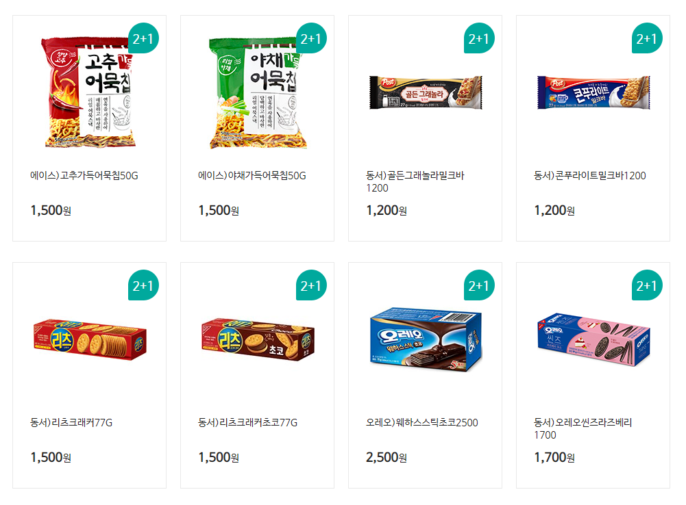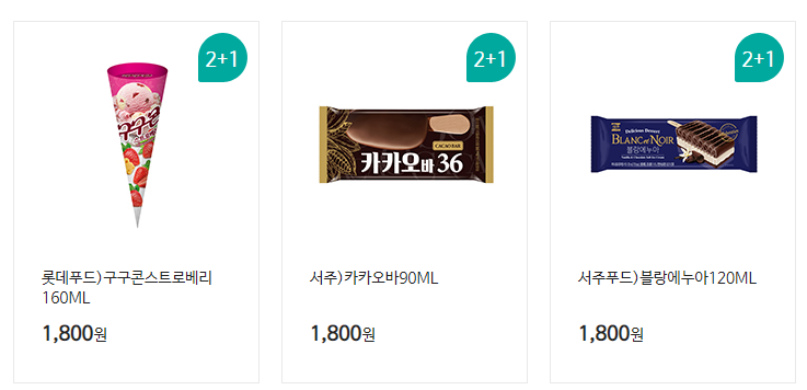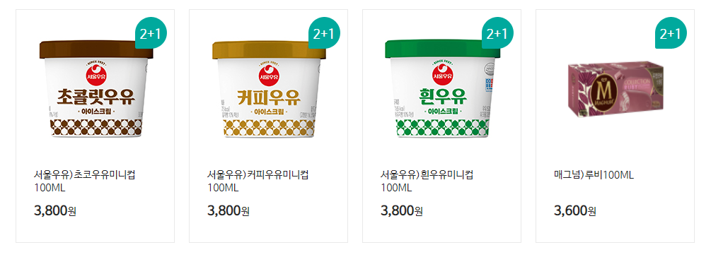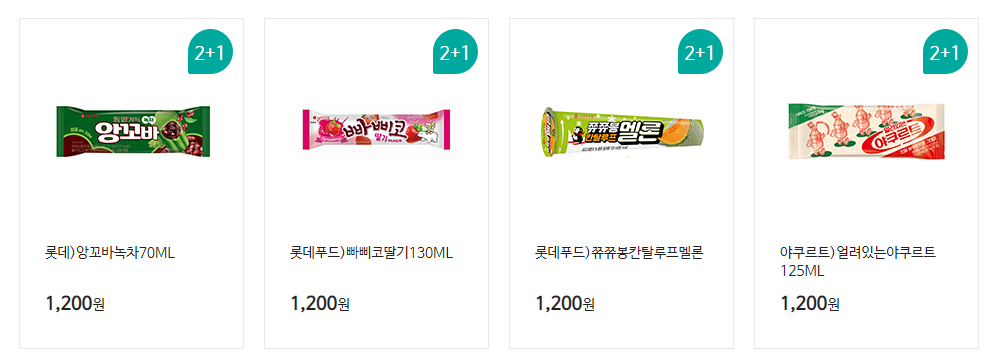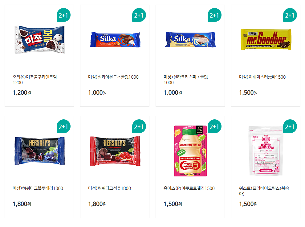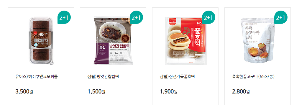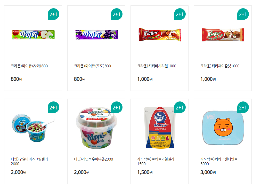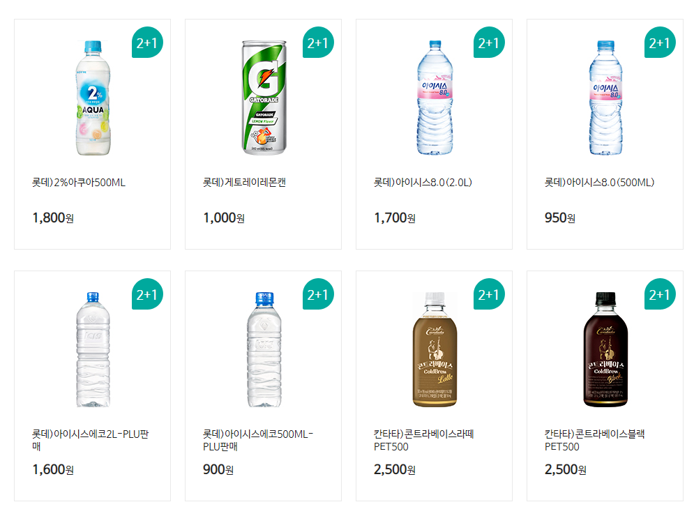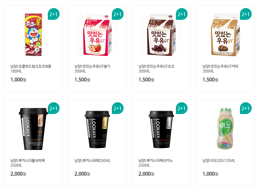 더 많은 2+1 상품(음료, 간식 종류만)은 아래 클릭