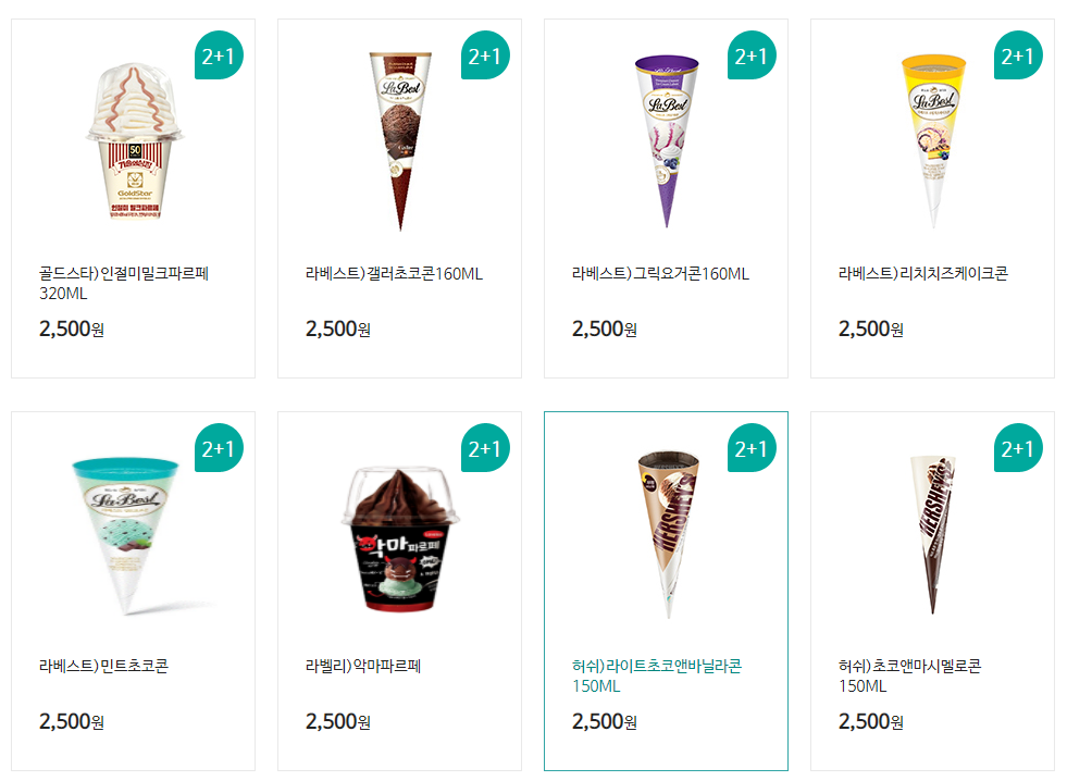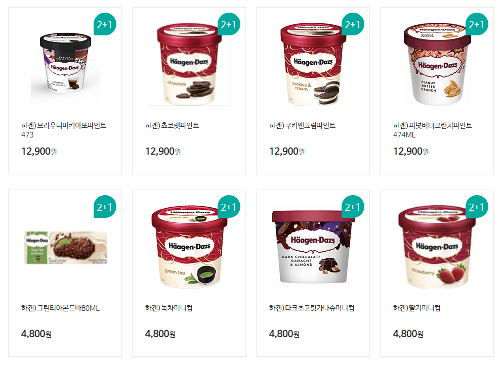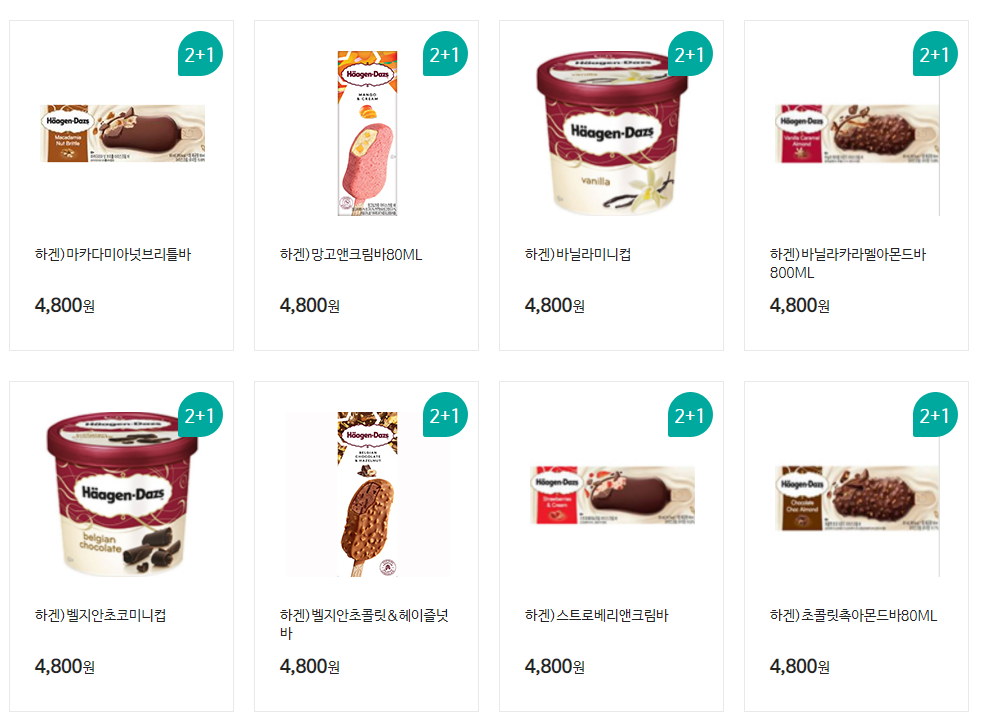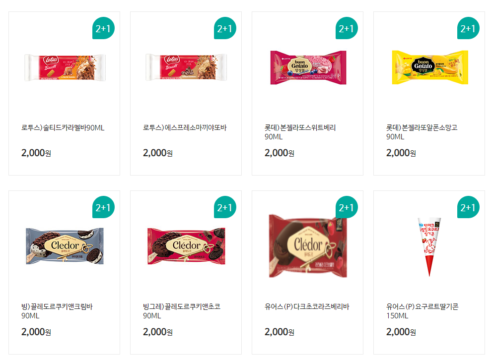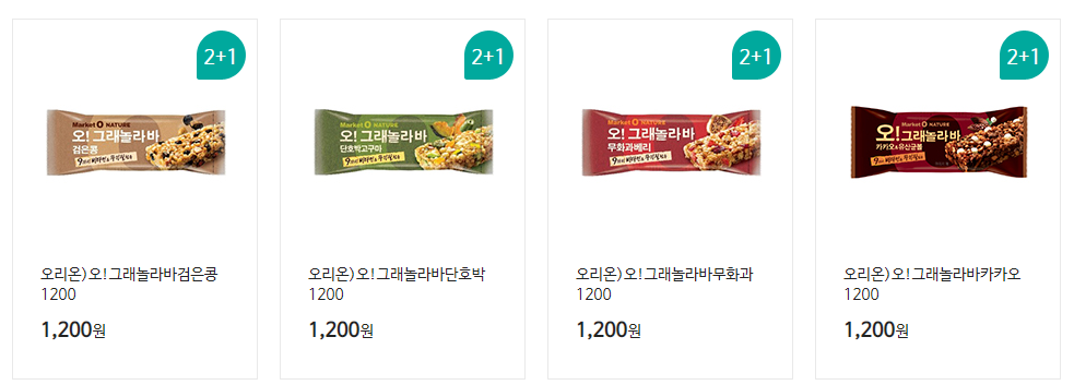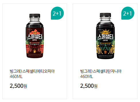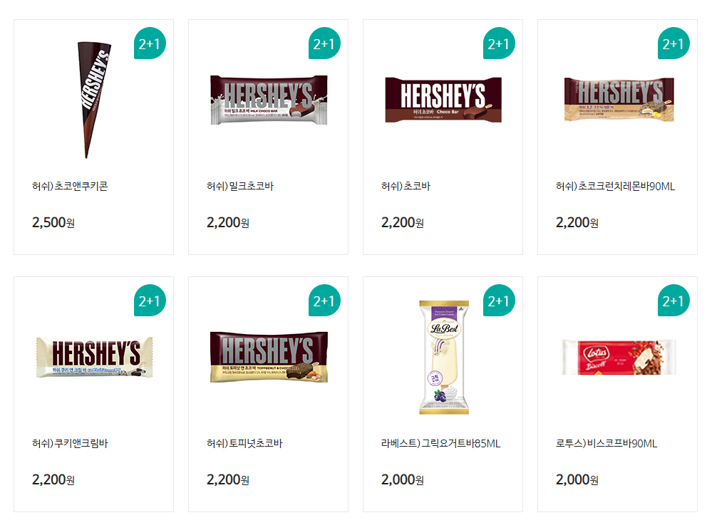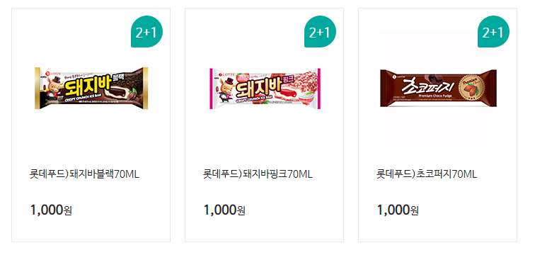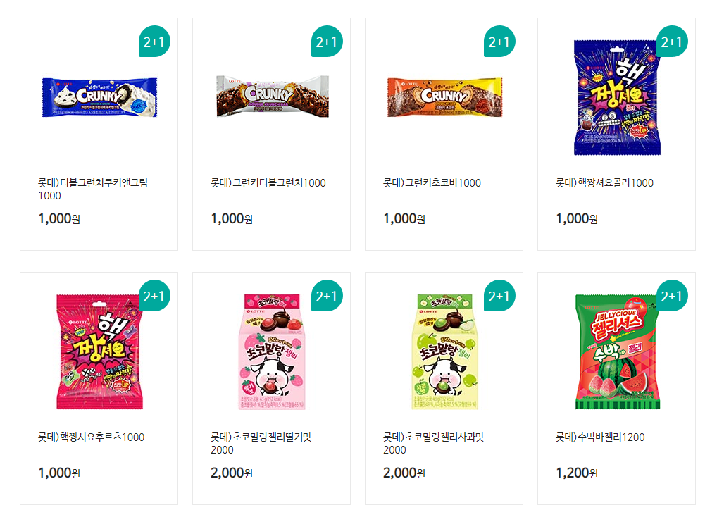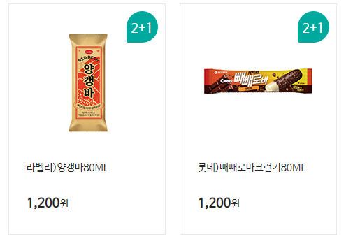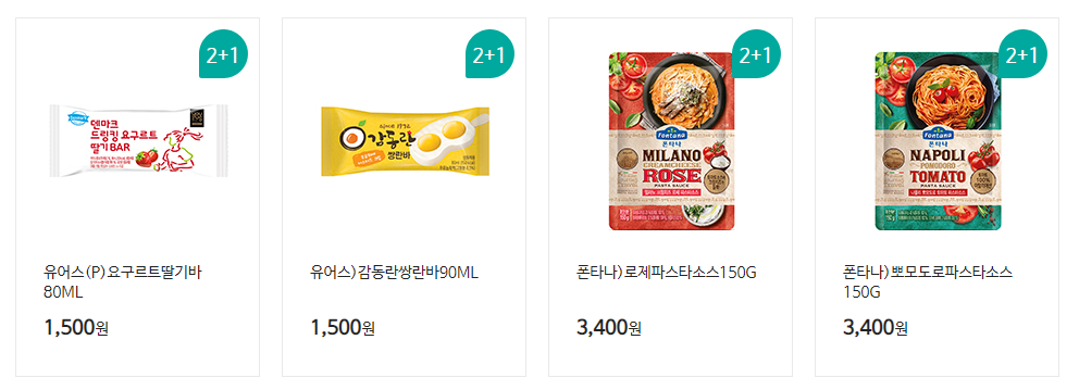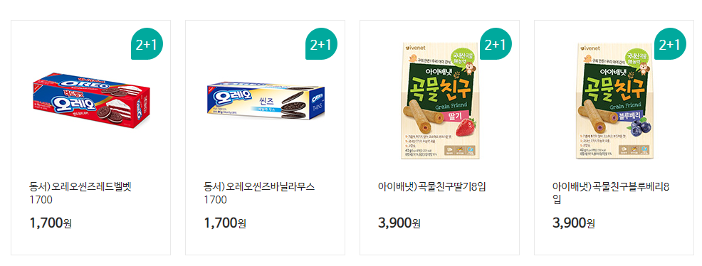 더 많은 2+1 상품(음료, 간식 종류만)은 아래 클릭