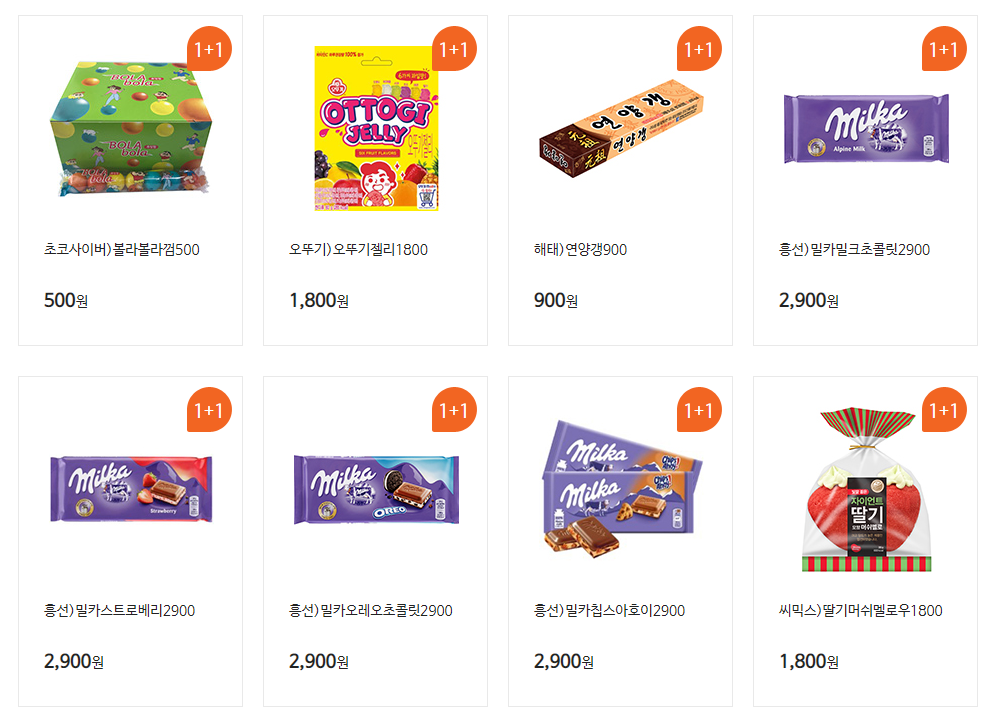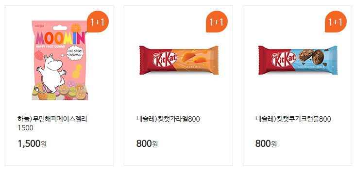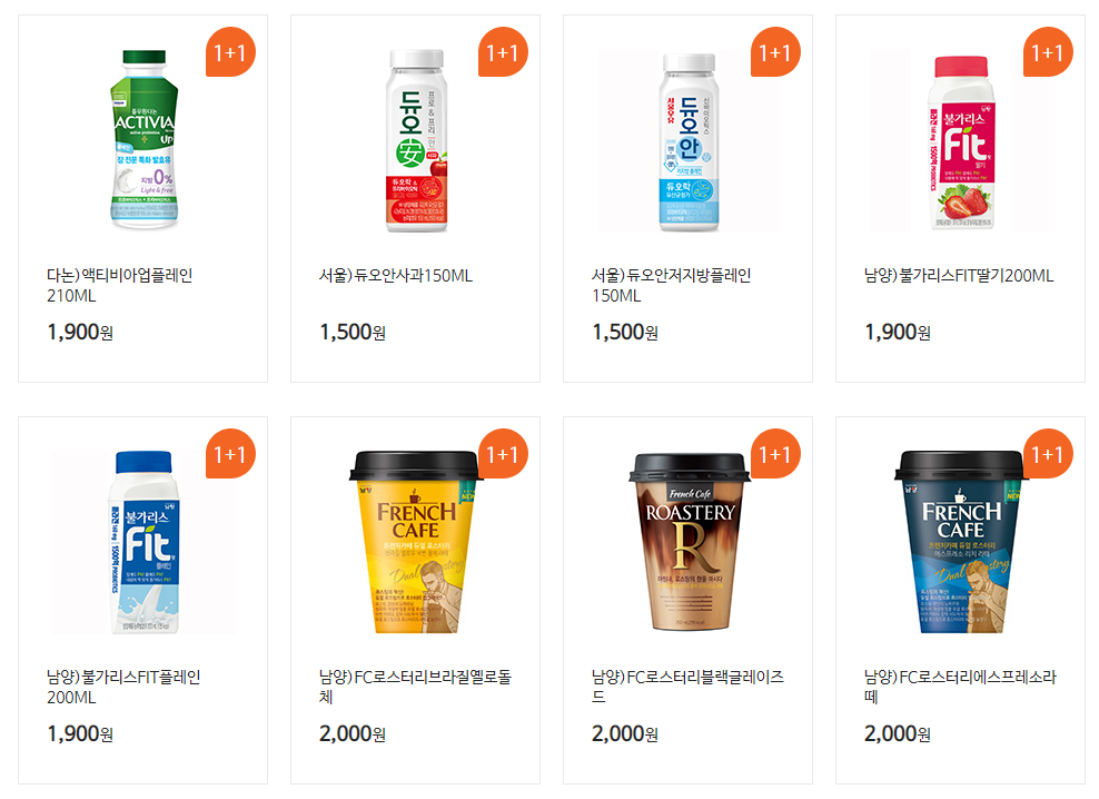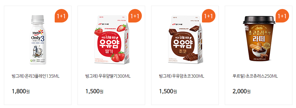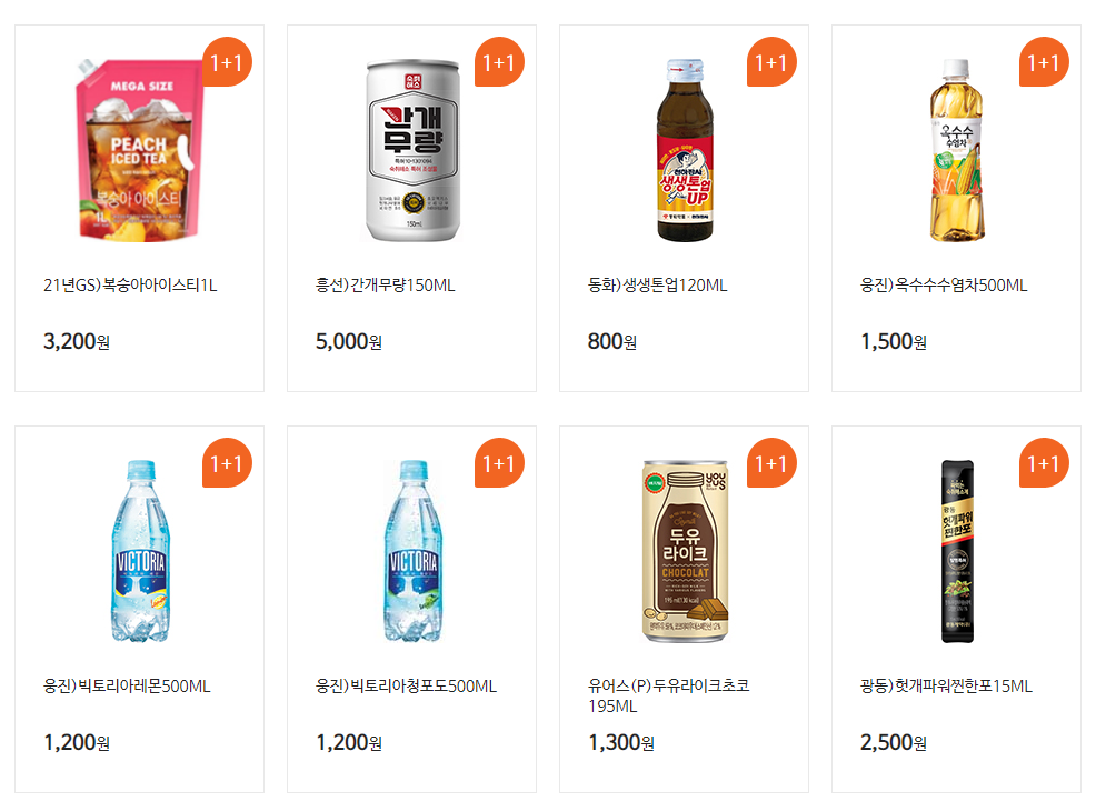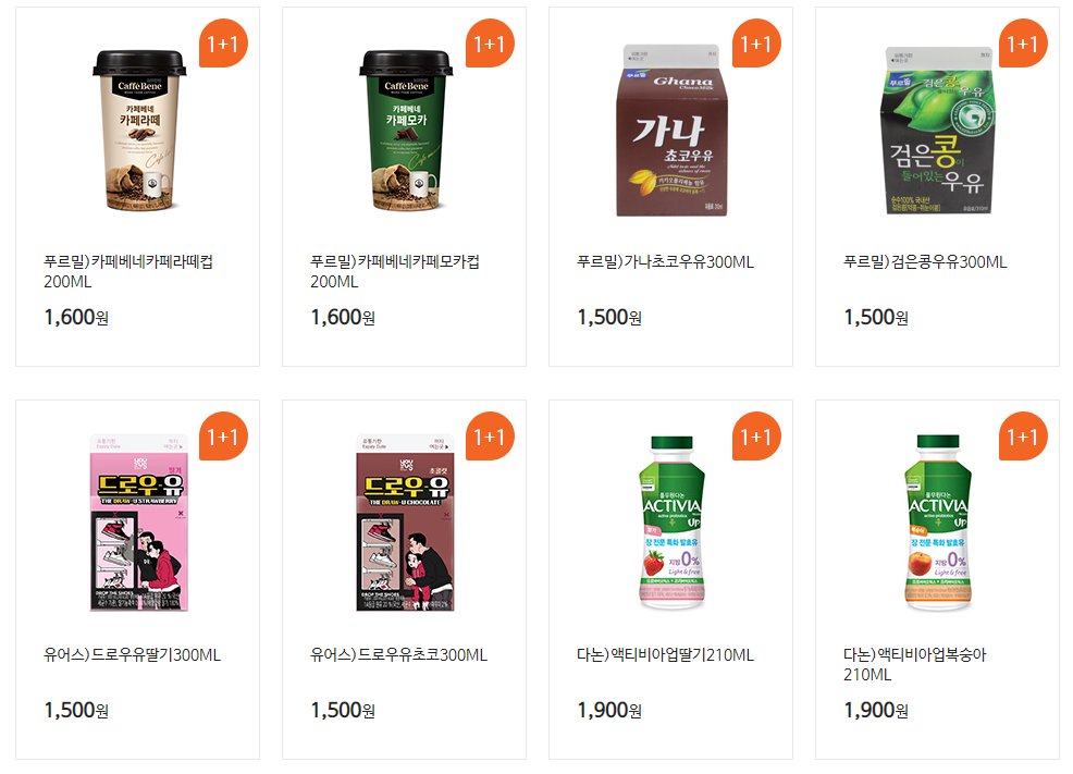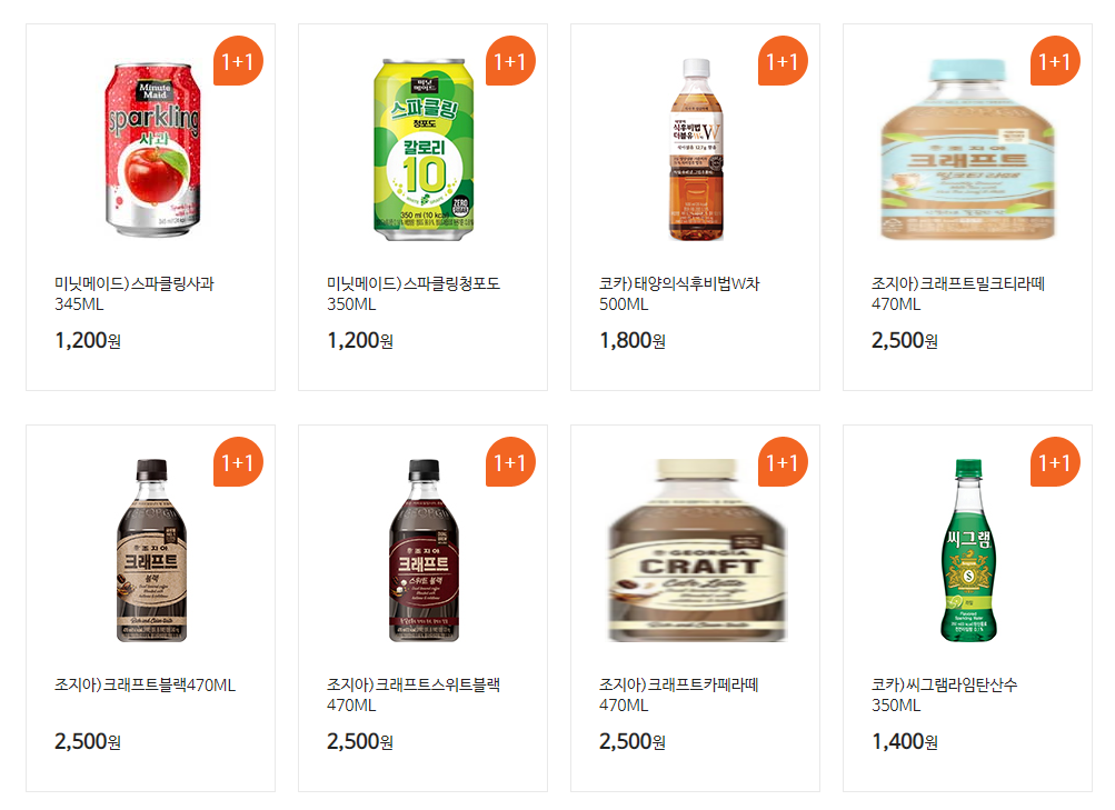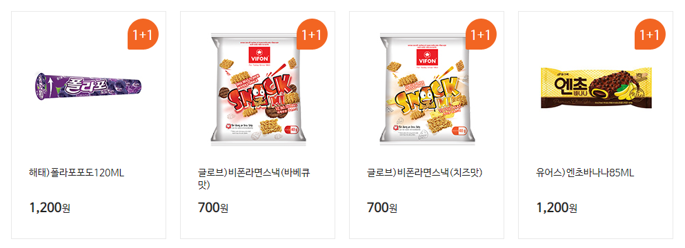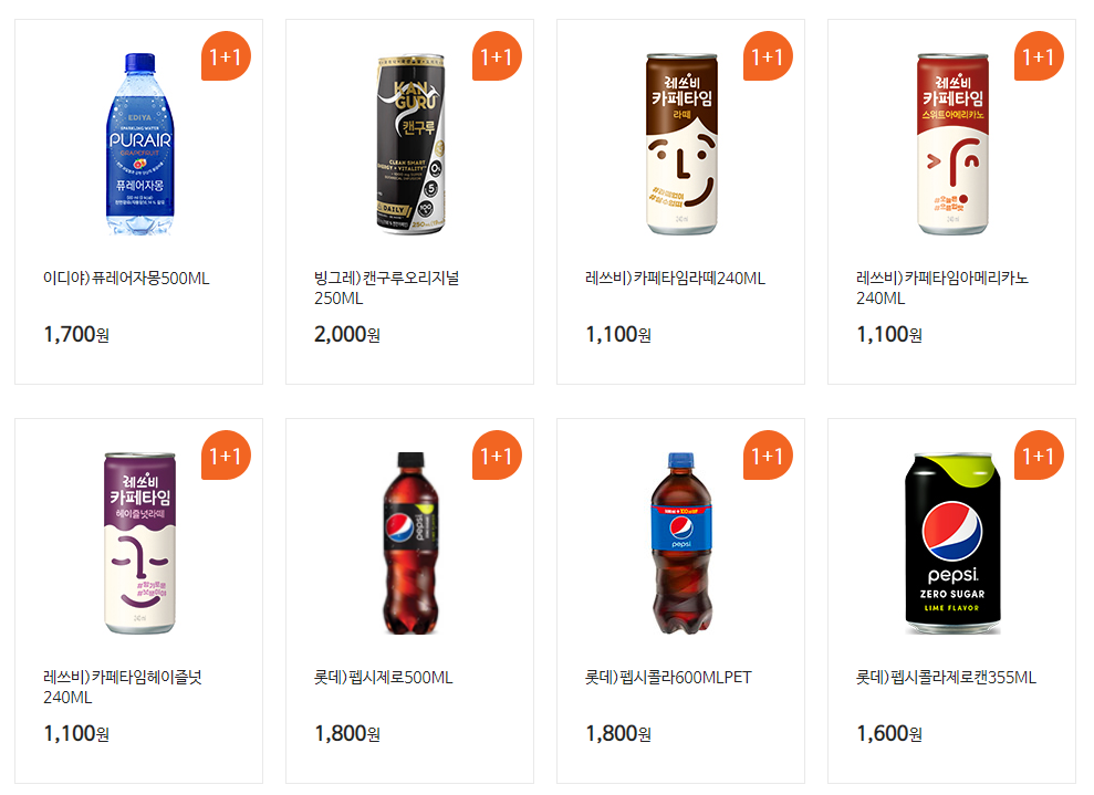 더 많은 1+1 상품(음료, 간식 종류만)은 아래 클릭