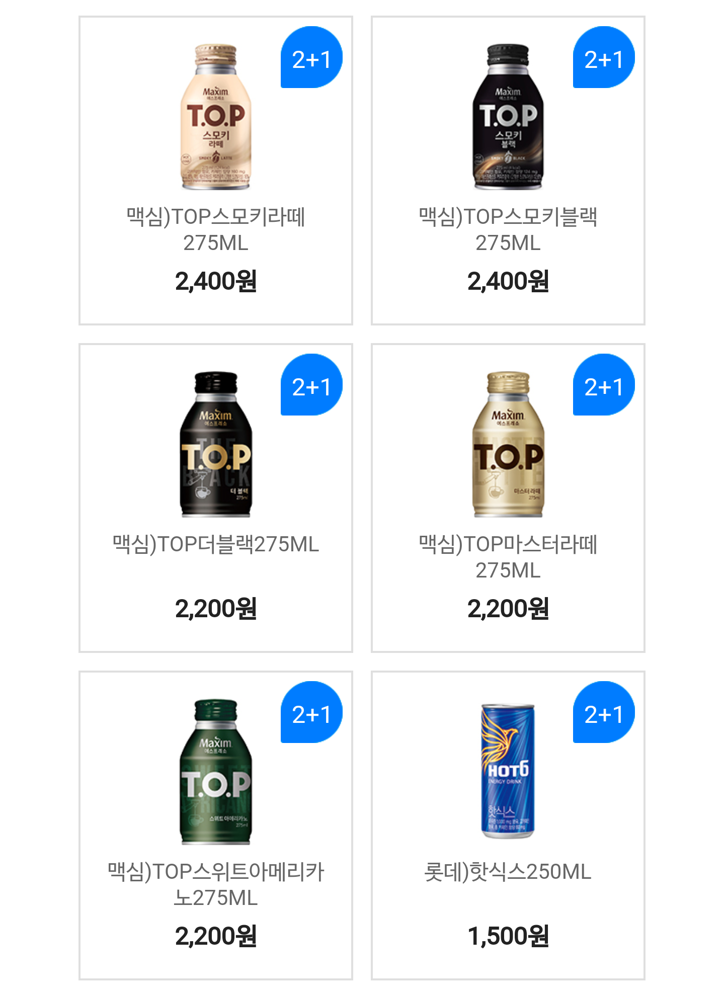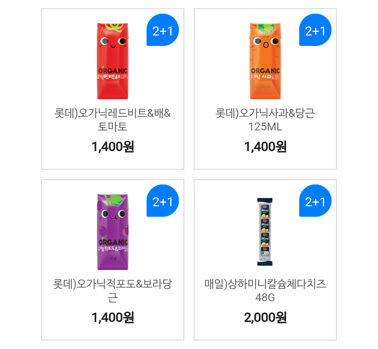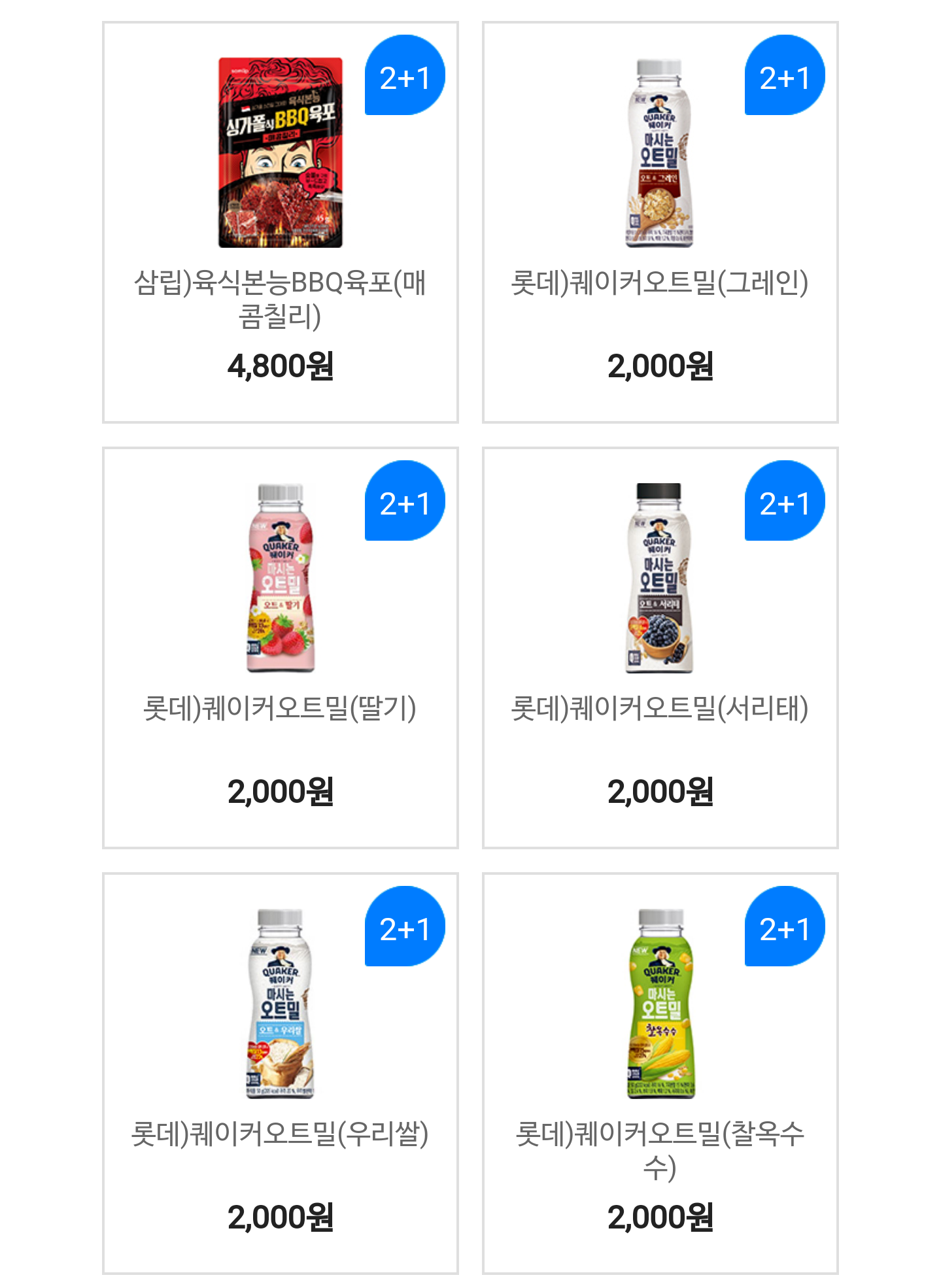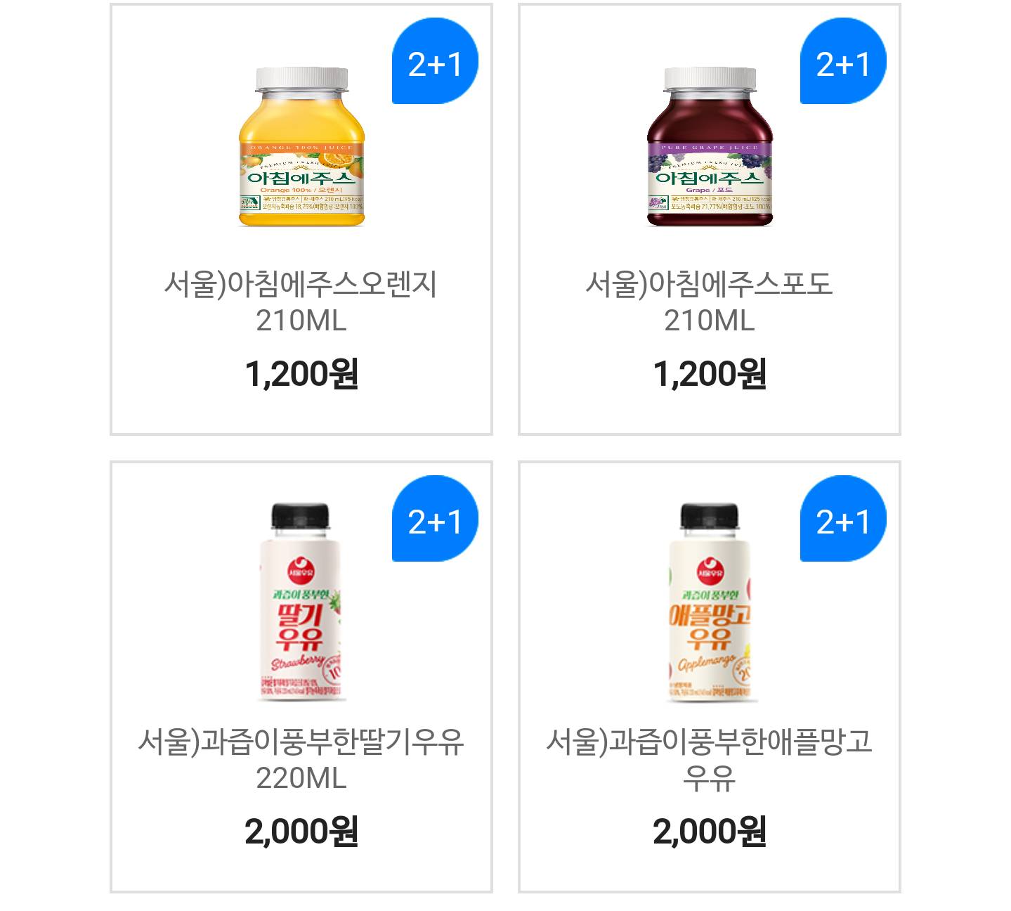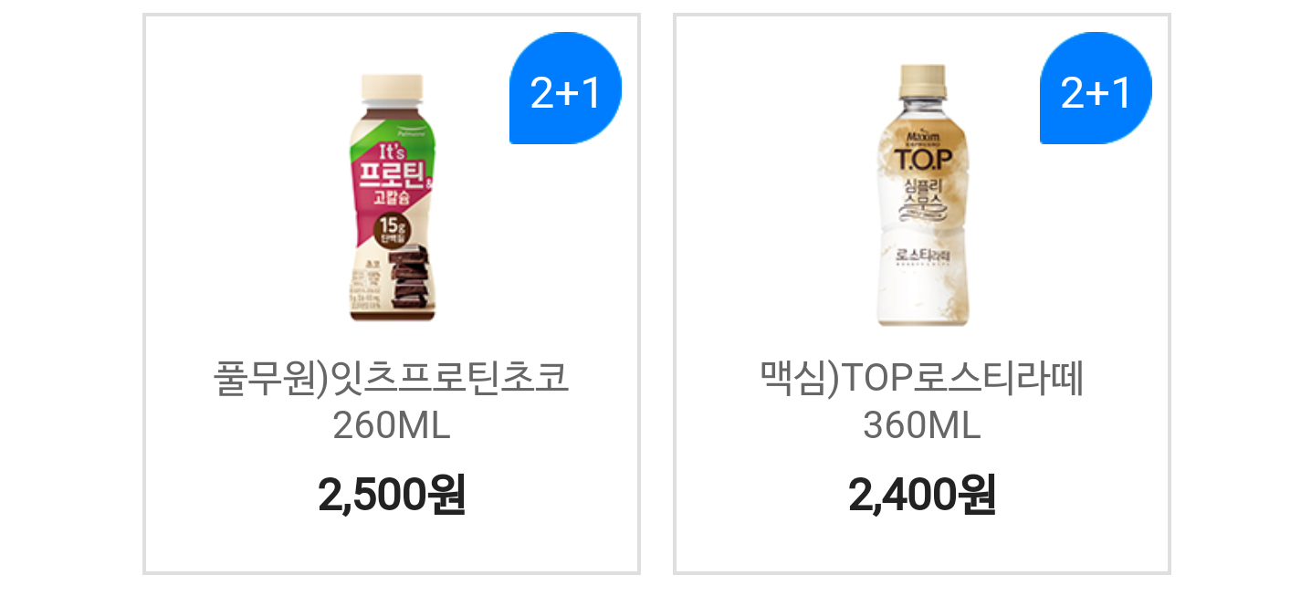 더 많은 2+1 상품(음료, 간식 종류만)은 아래 더보기 클릭