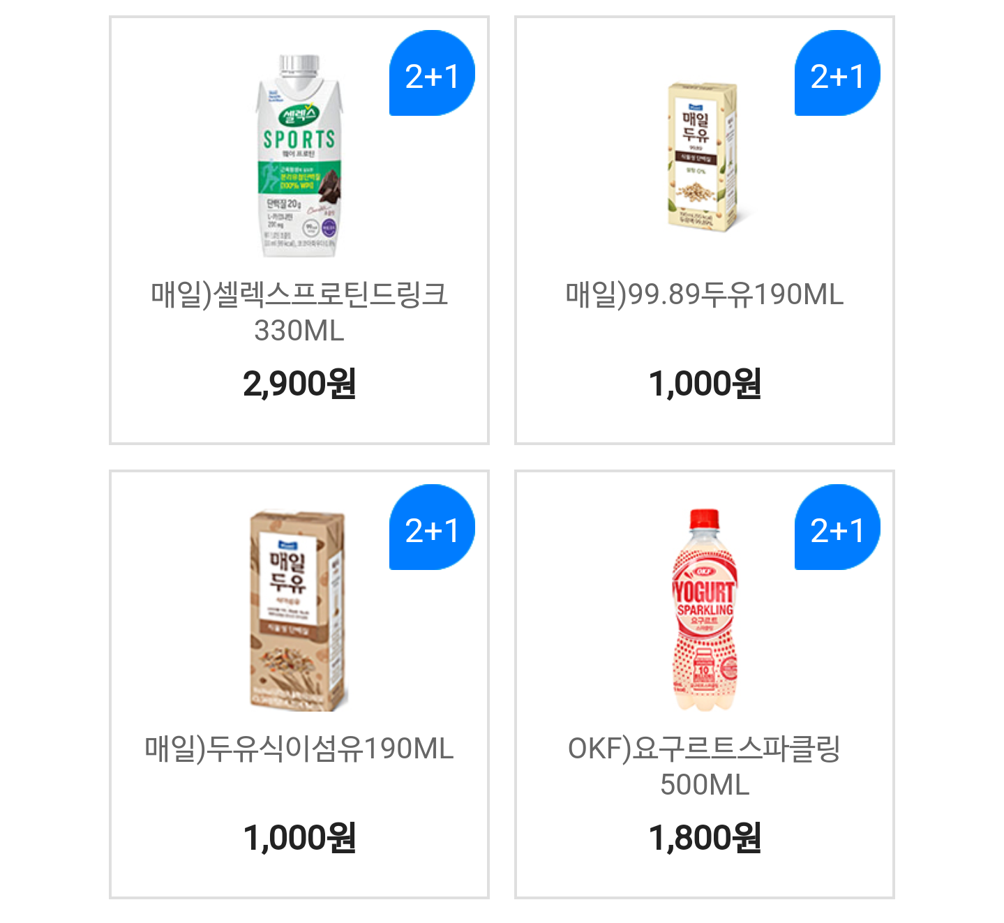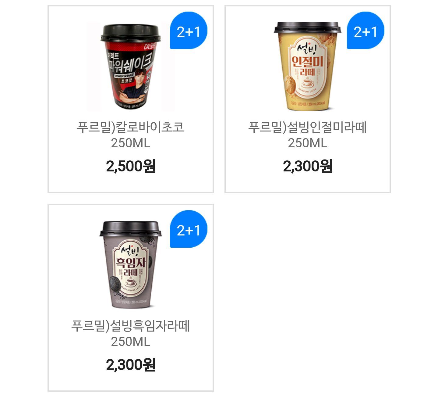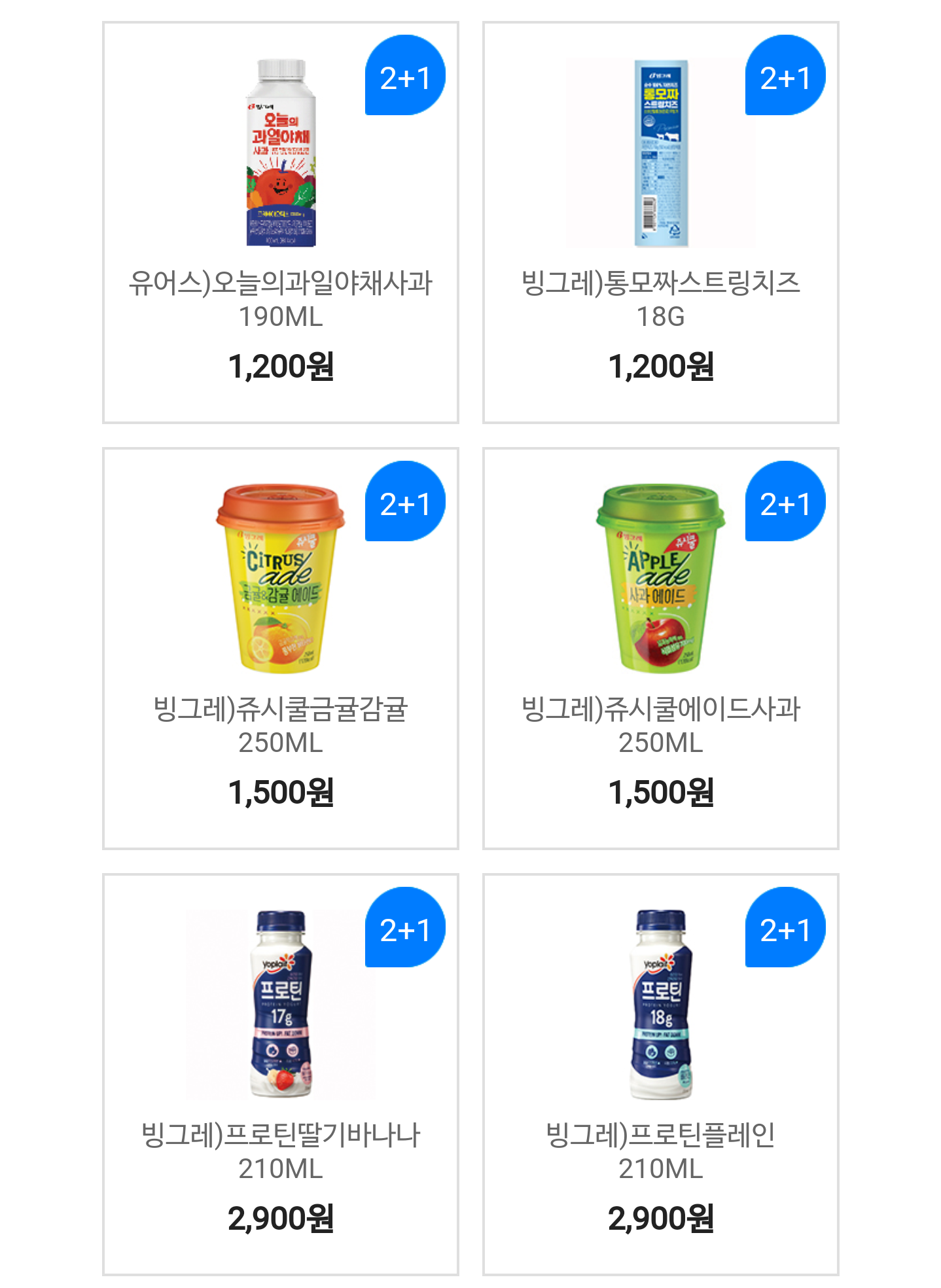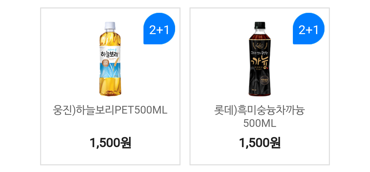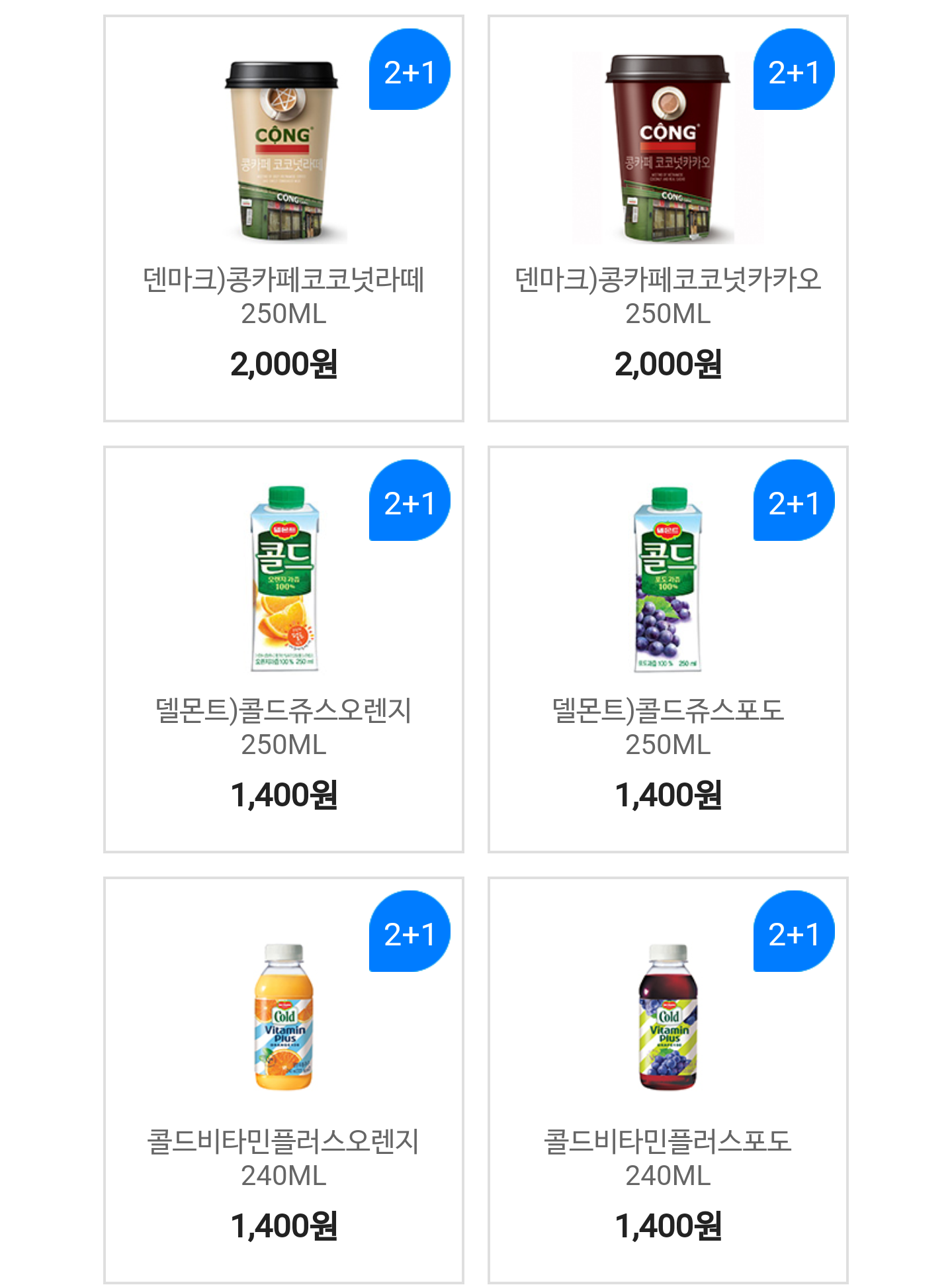 더 많은 2+1 상품(음료, 간식 종류만)은 아래 더보기 클릭