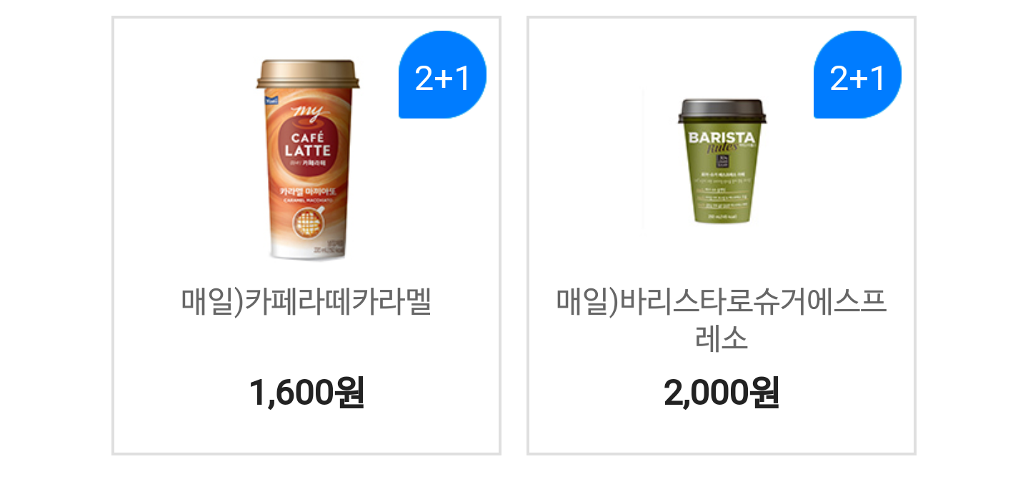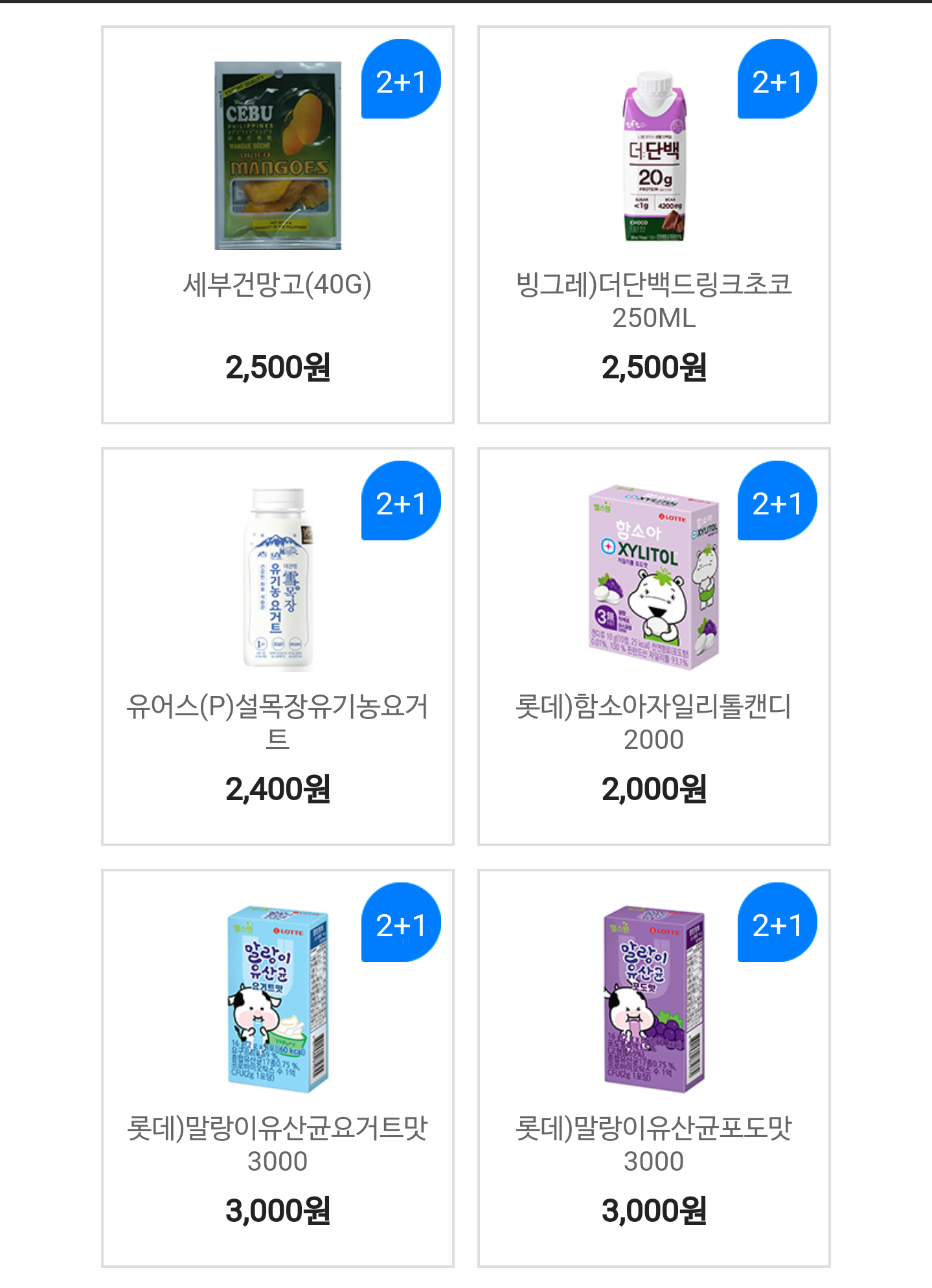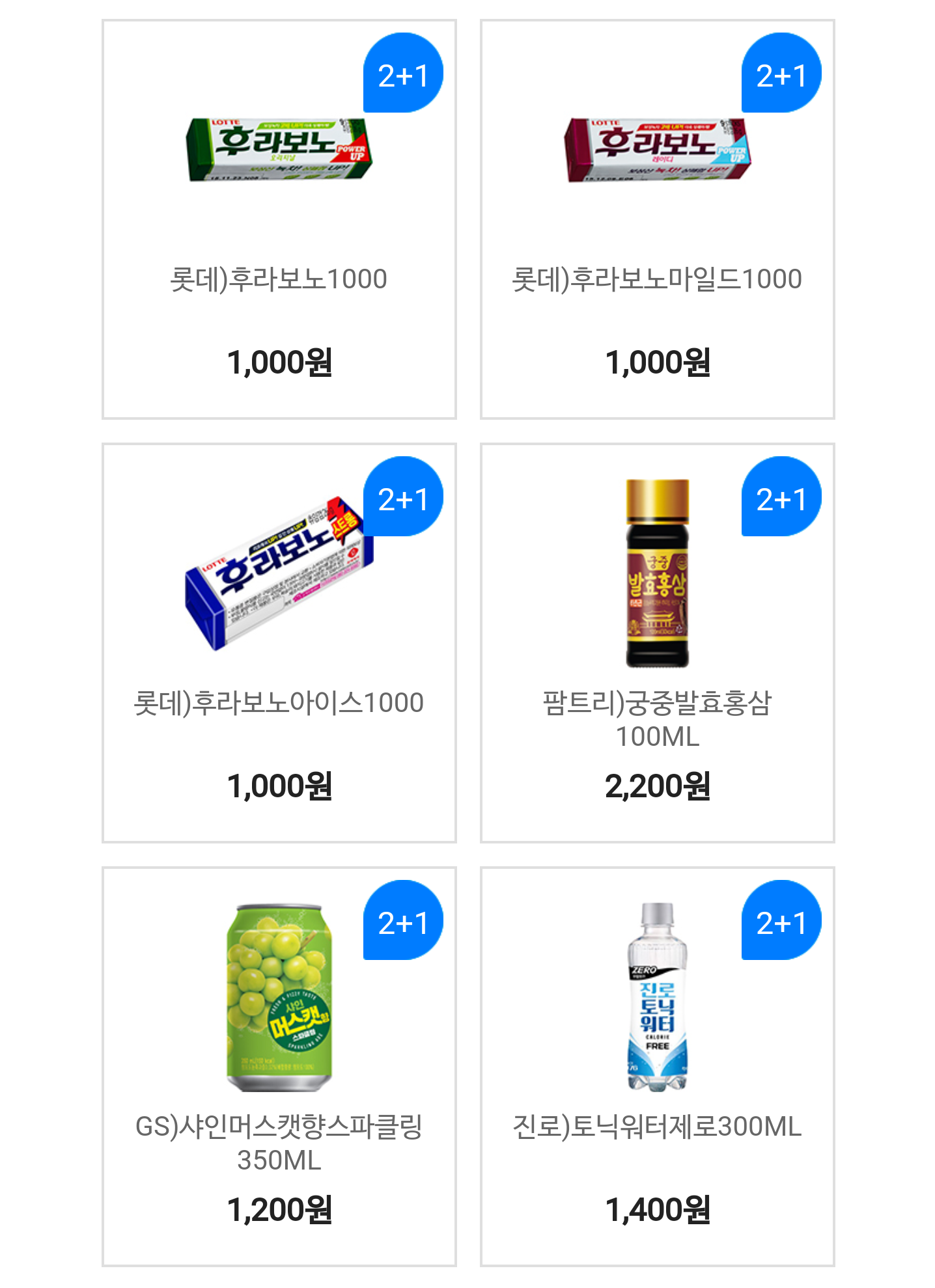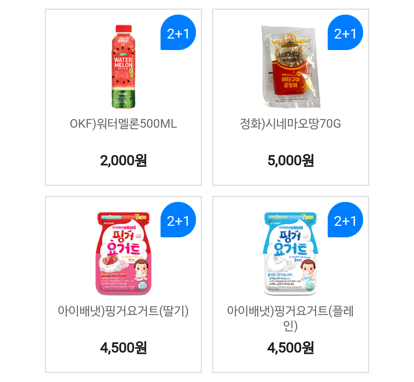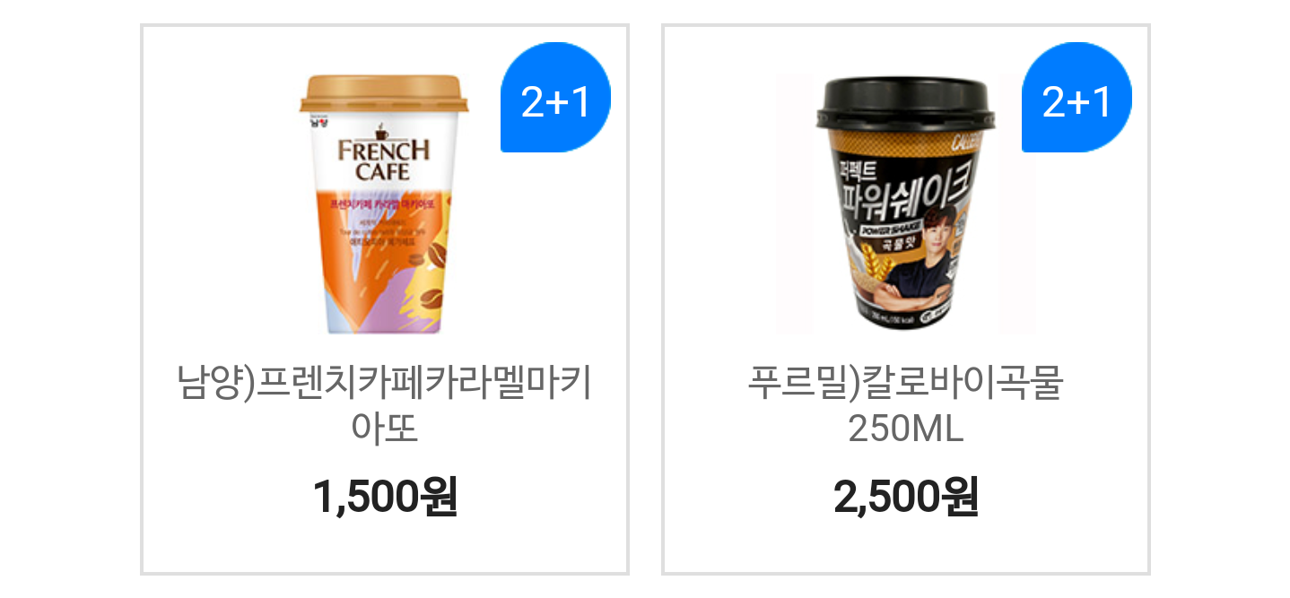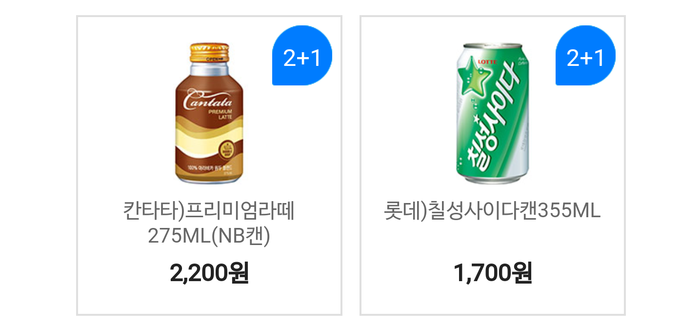 더 많은 2+1 상품(음료, 간식 종류만)은 아래 더보기 클릭