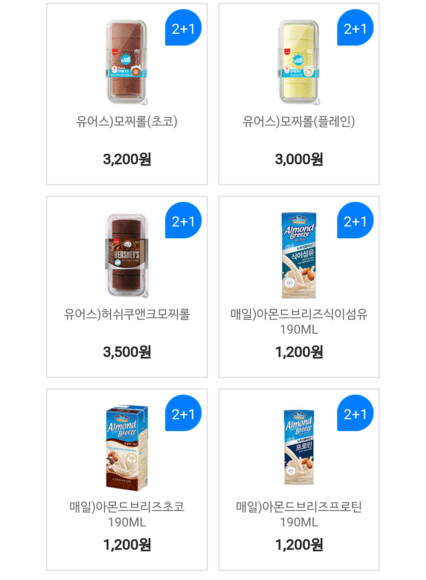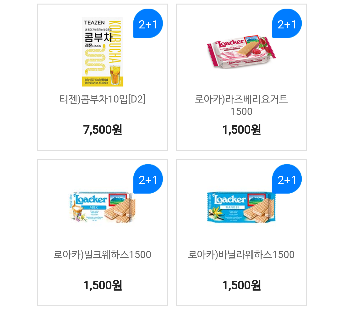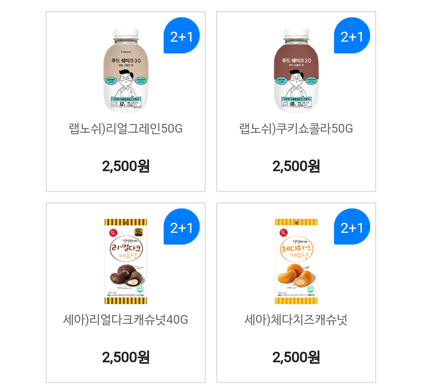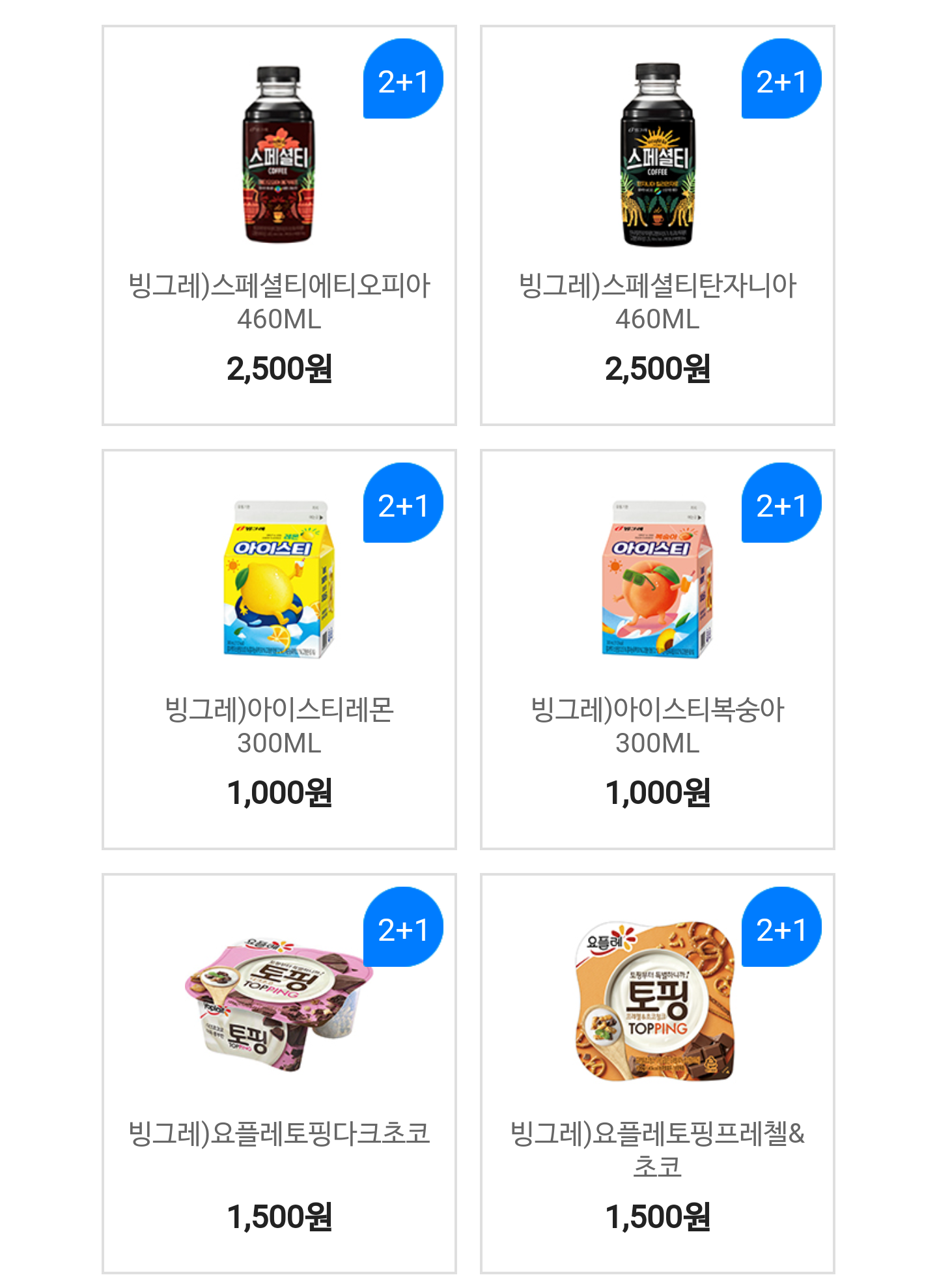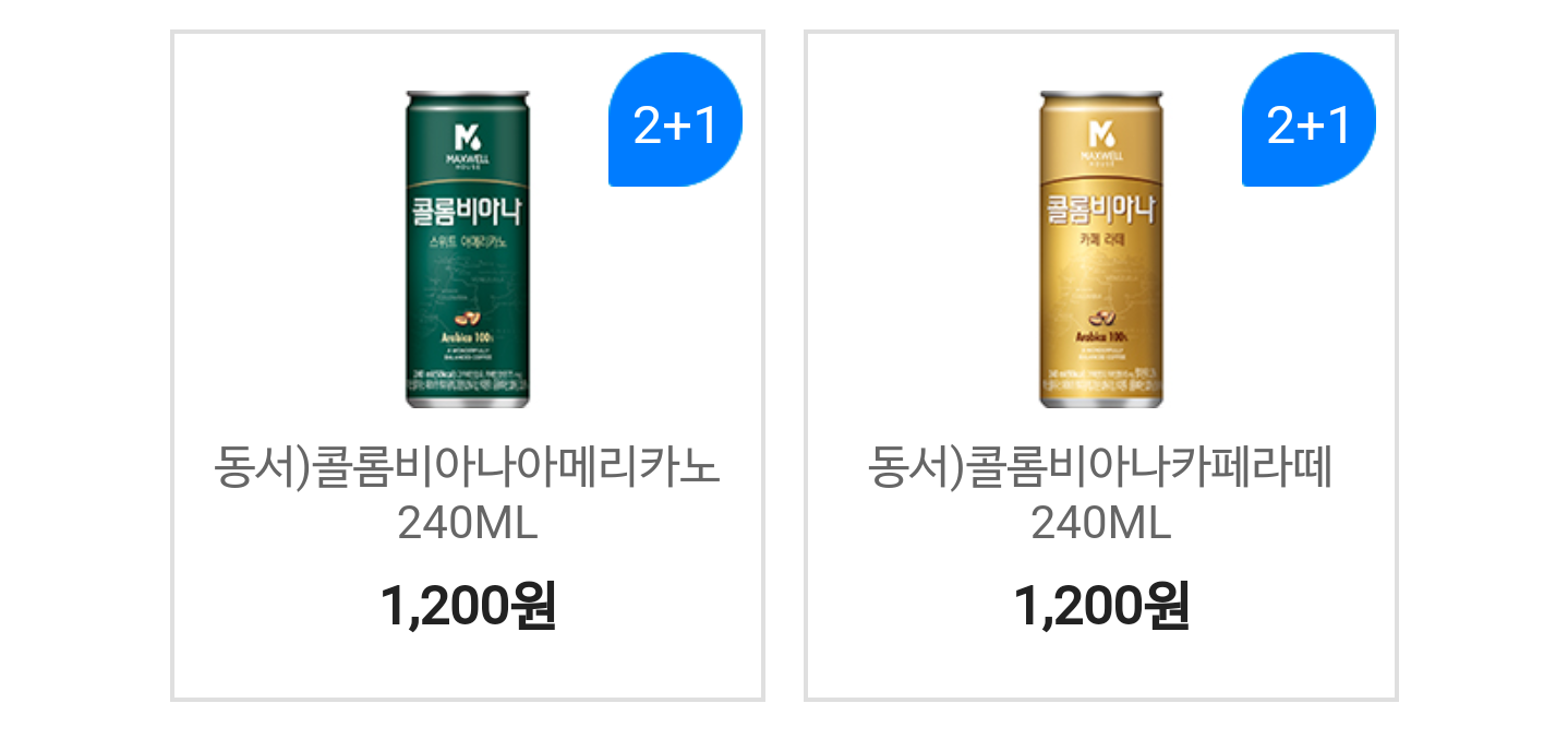더 많은 2+1 상품(음료, 간식 종류만)은 아래 더보기 클릭