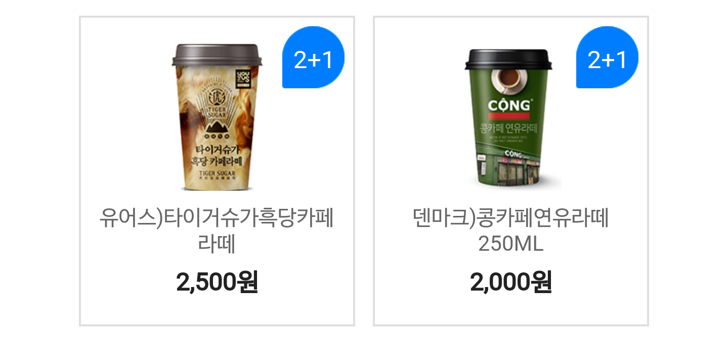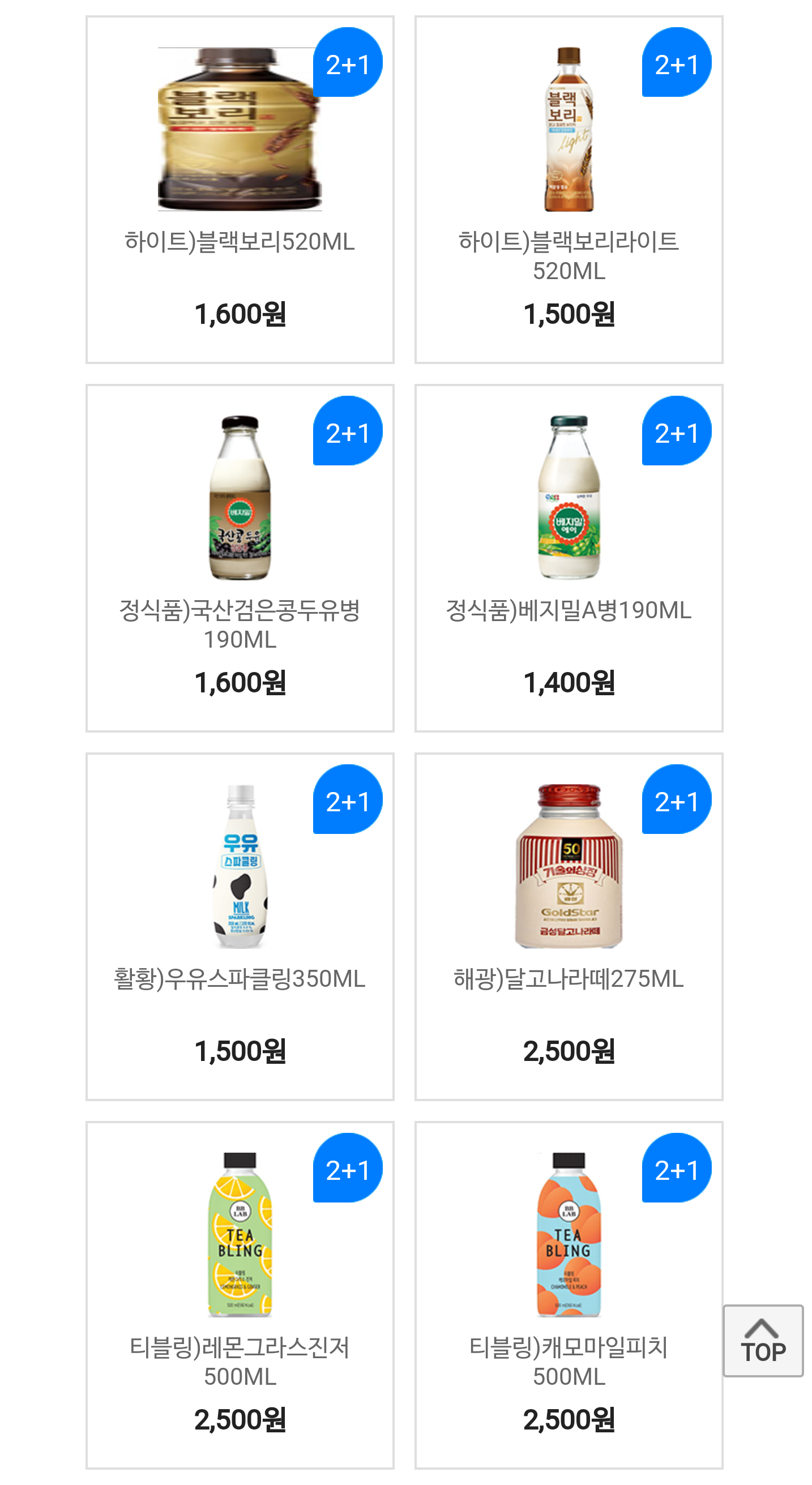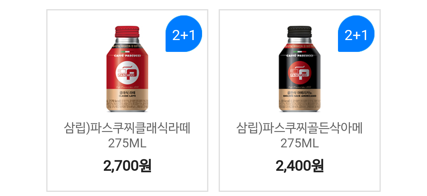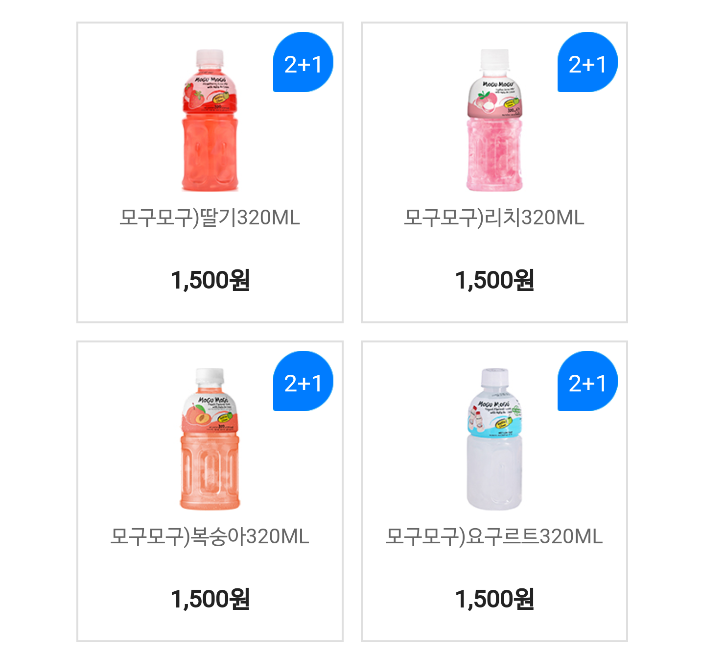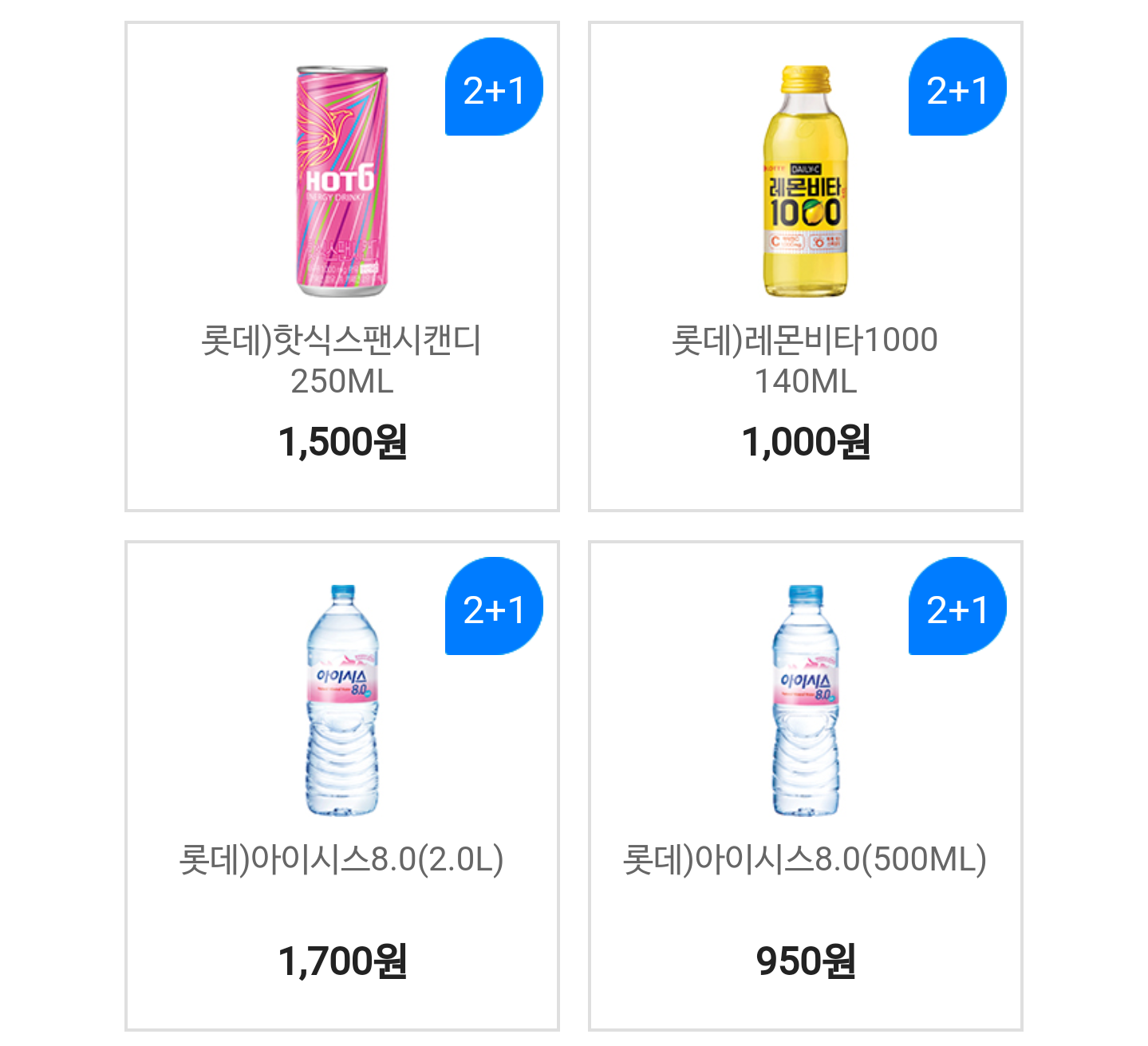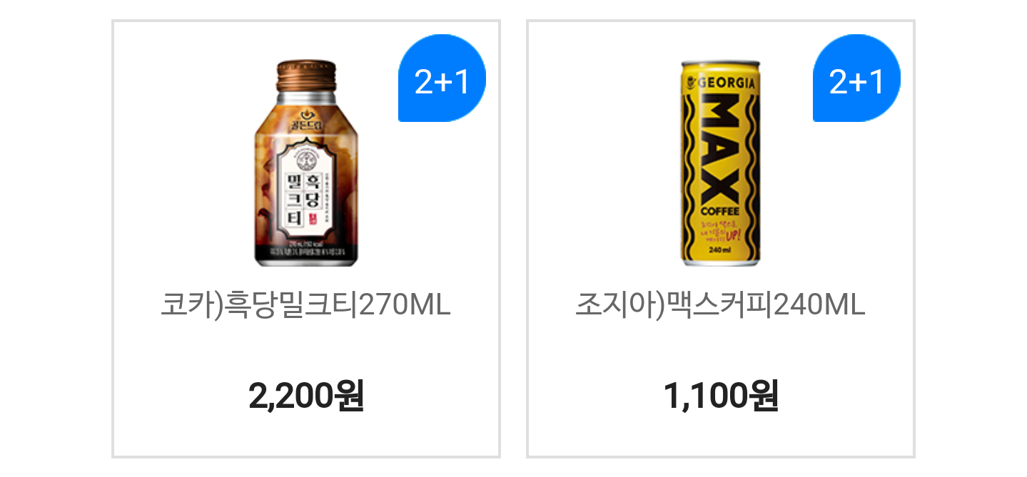 더 많은 2+1 상품(음료, 간식 종류만)은 아래 더보기 클릭