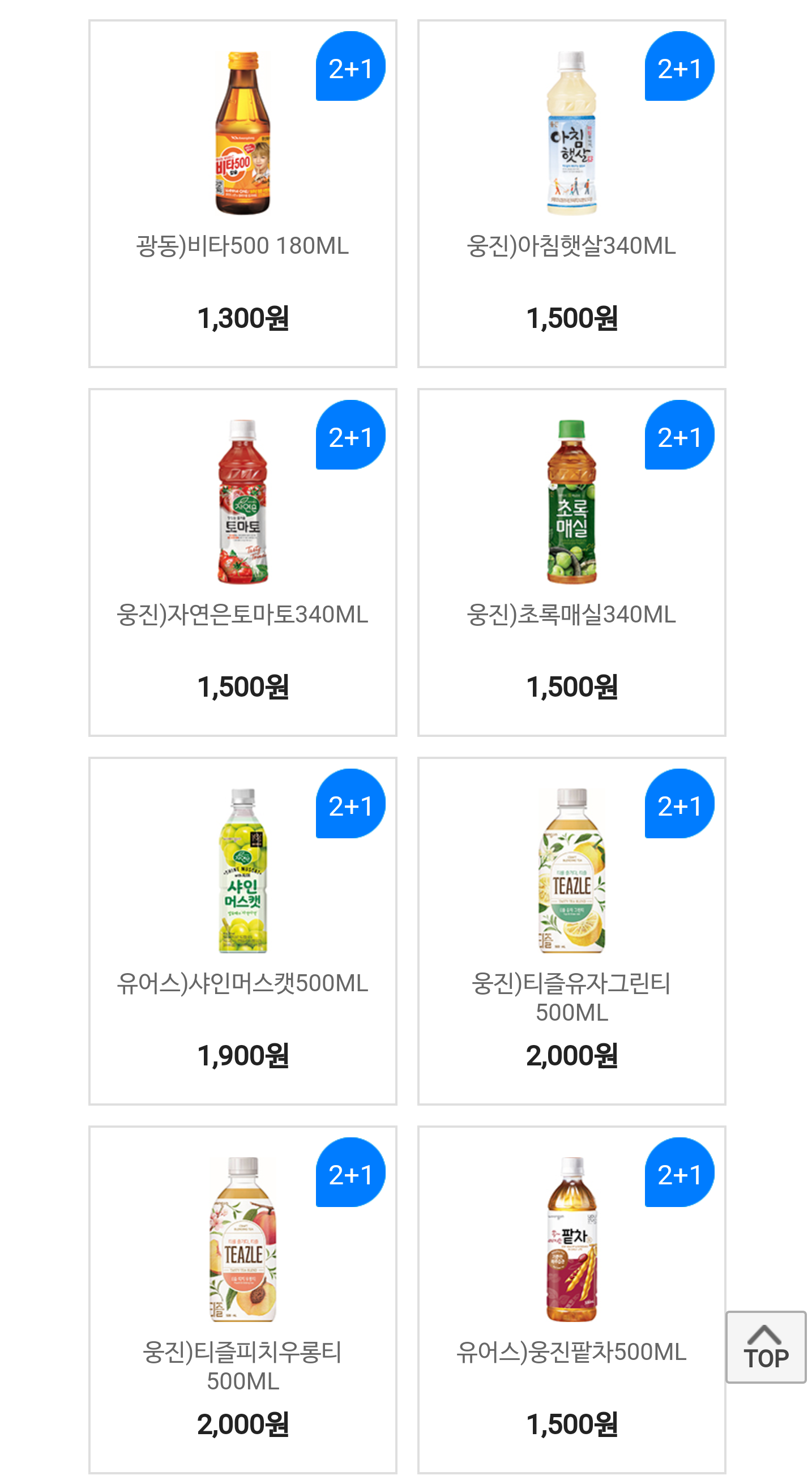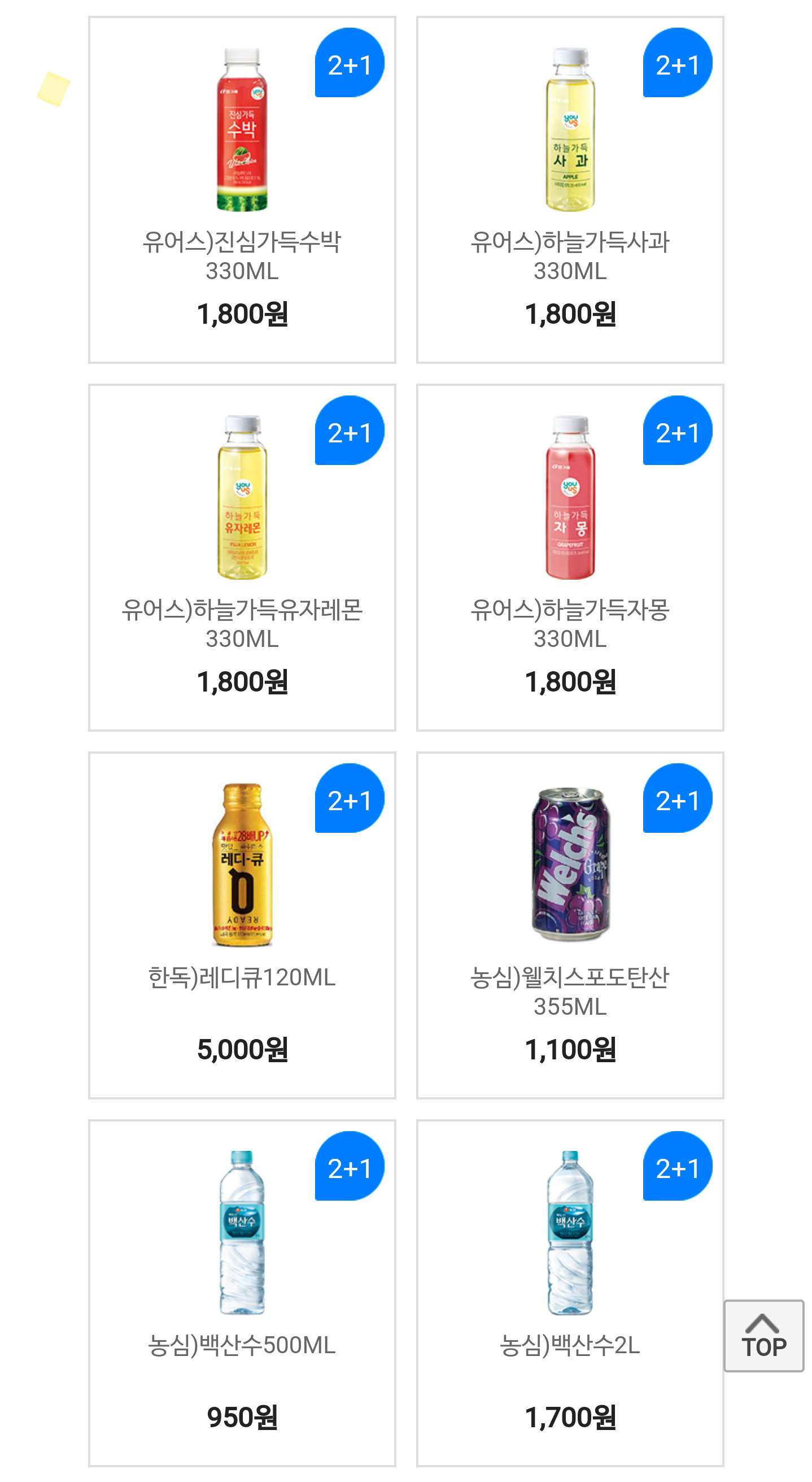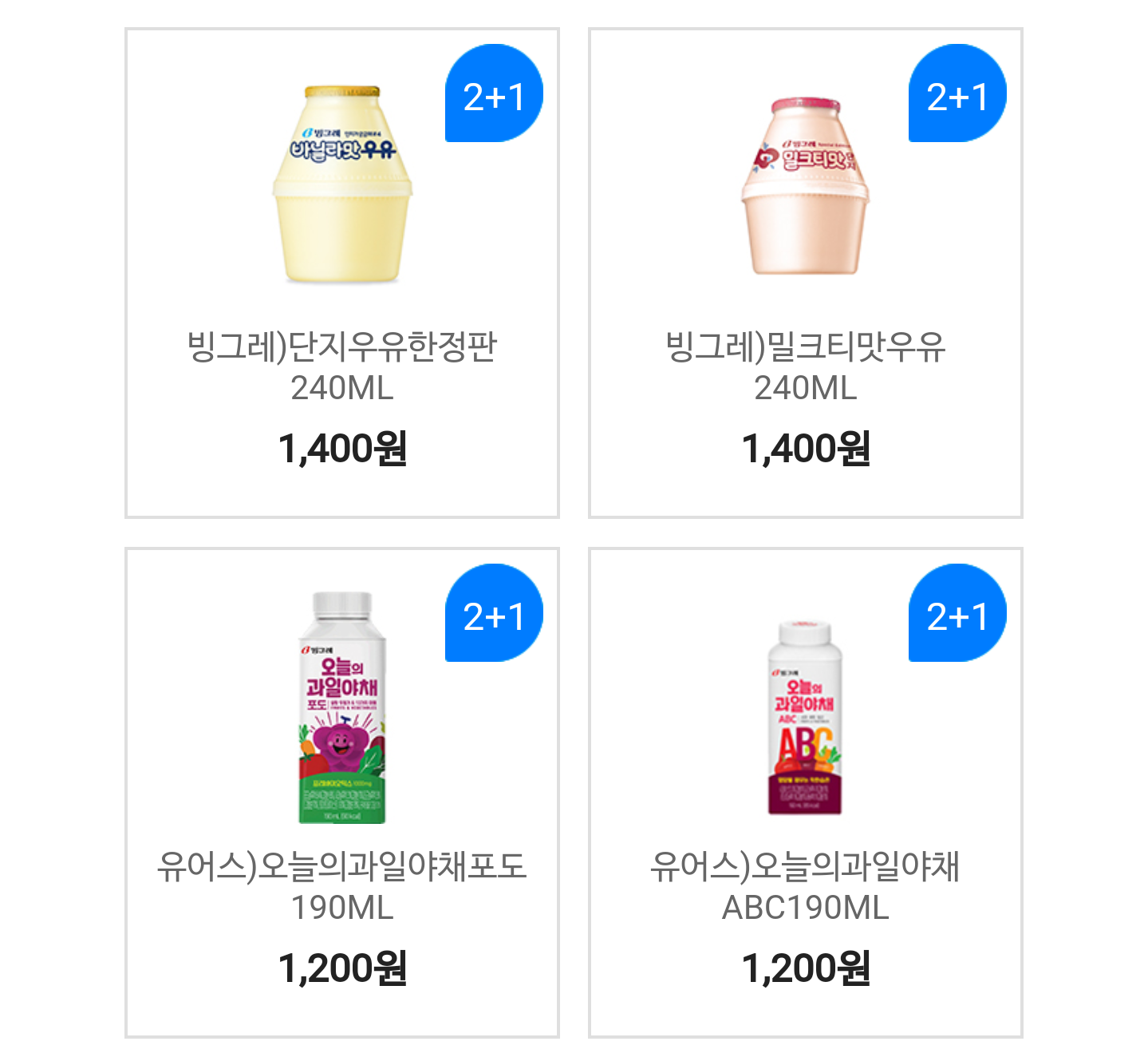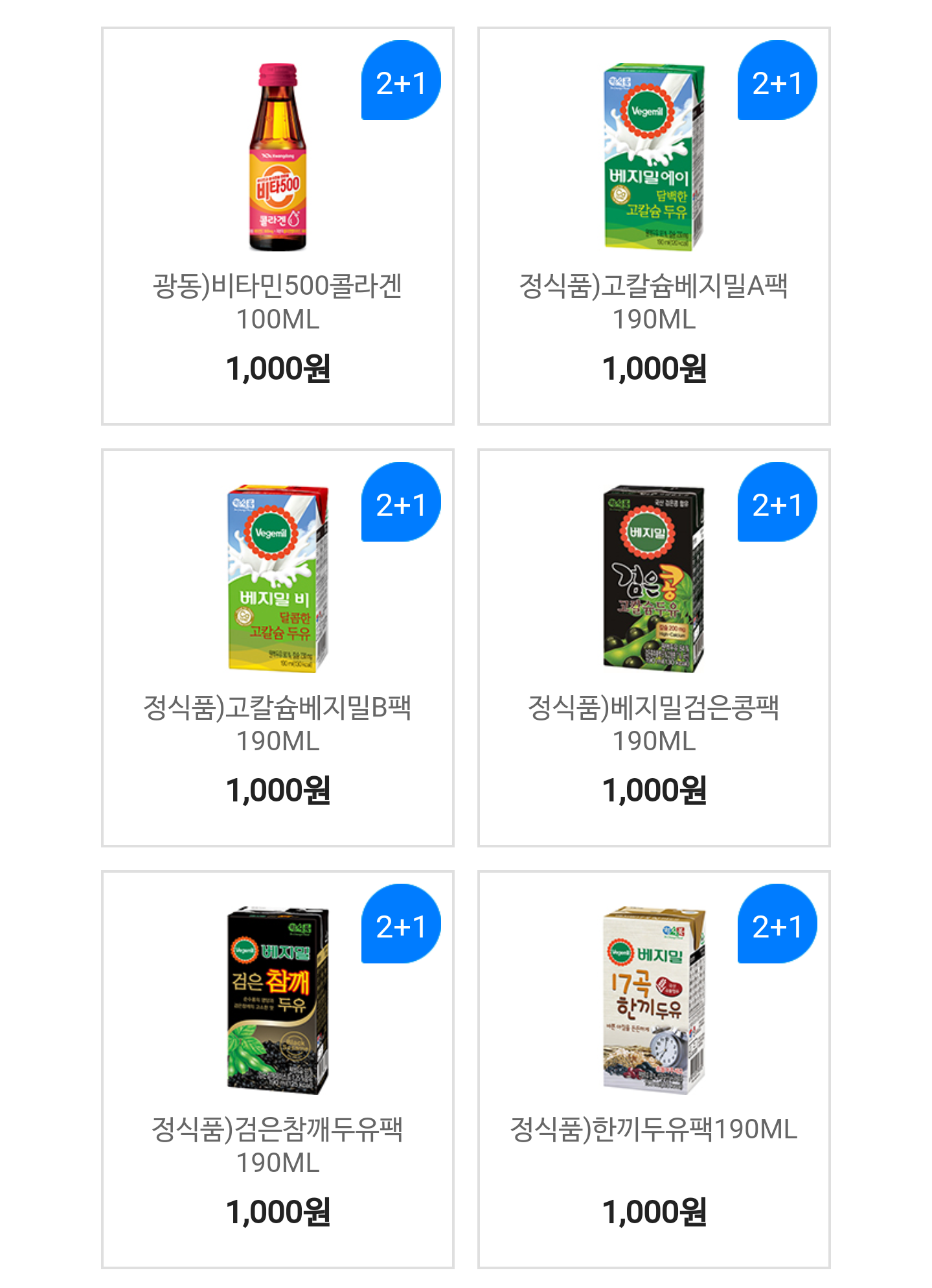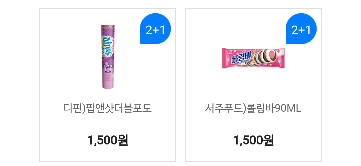 더 많은 2+1 상품(음료, 간식 종류만)은 아래 더보기 클릭