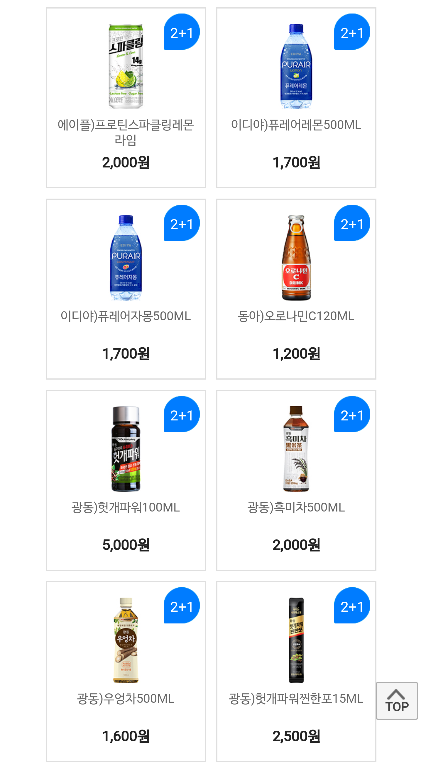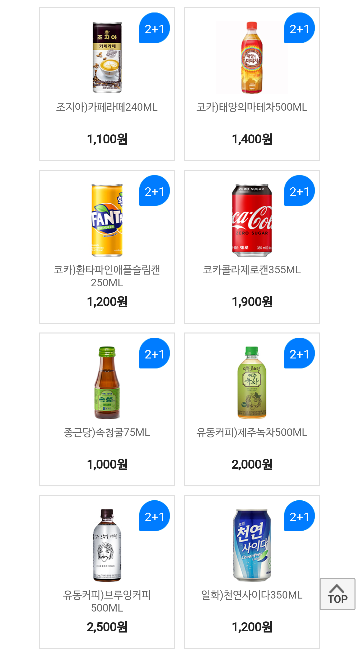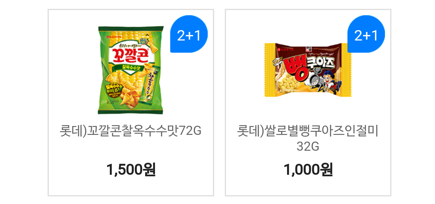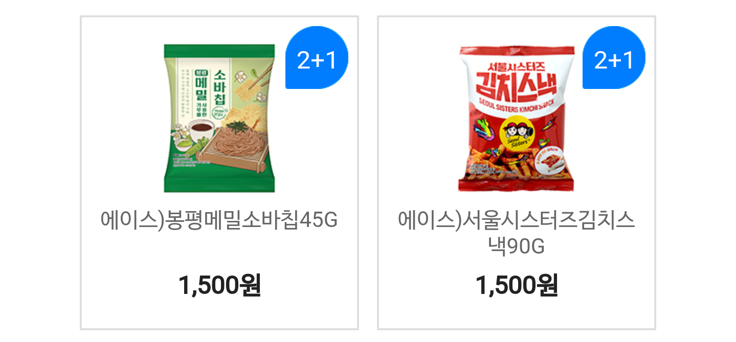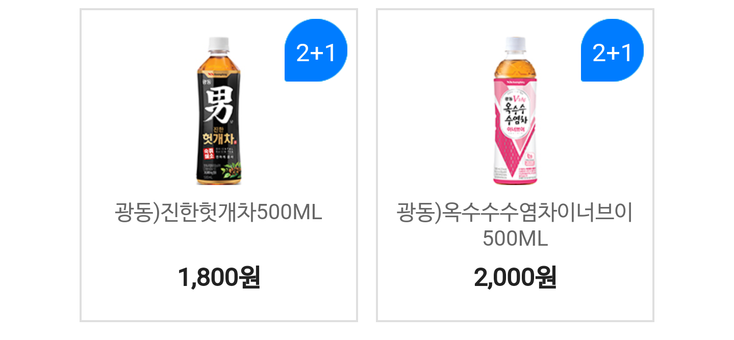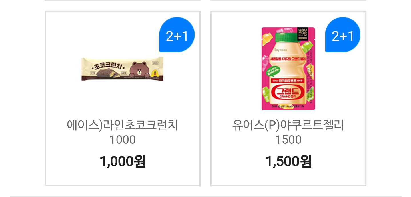 더 많은 2+1 상품(음료, 간식 종류만)은 아래 더보기 클릭