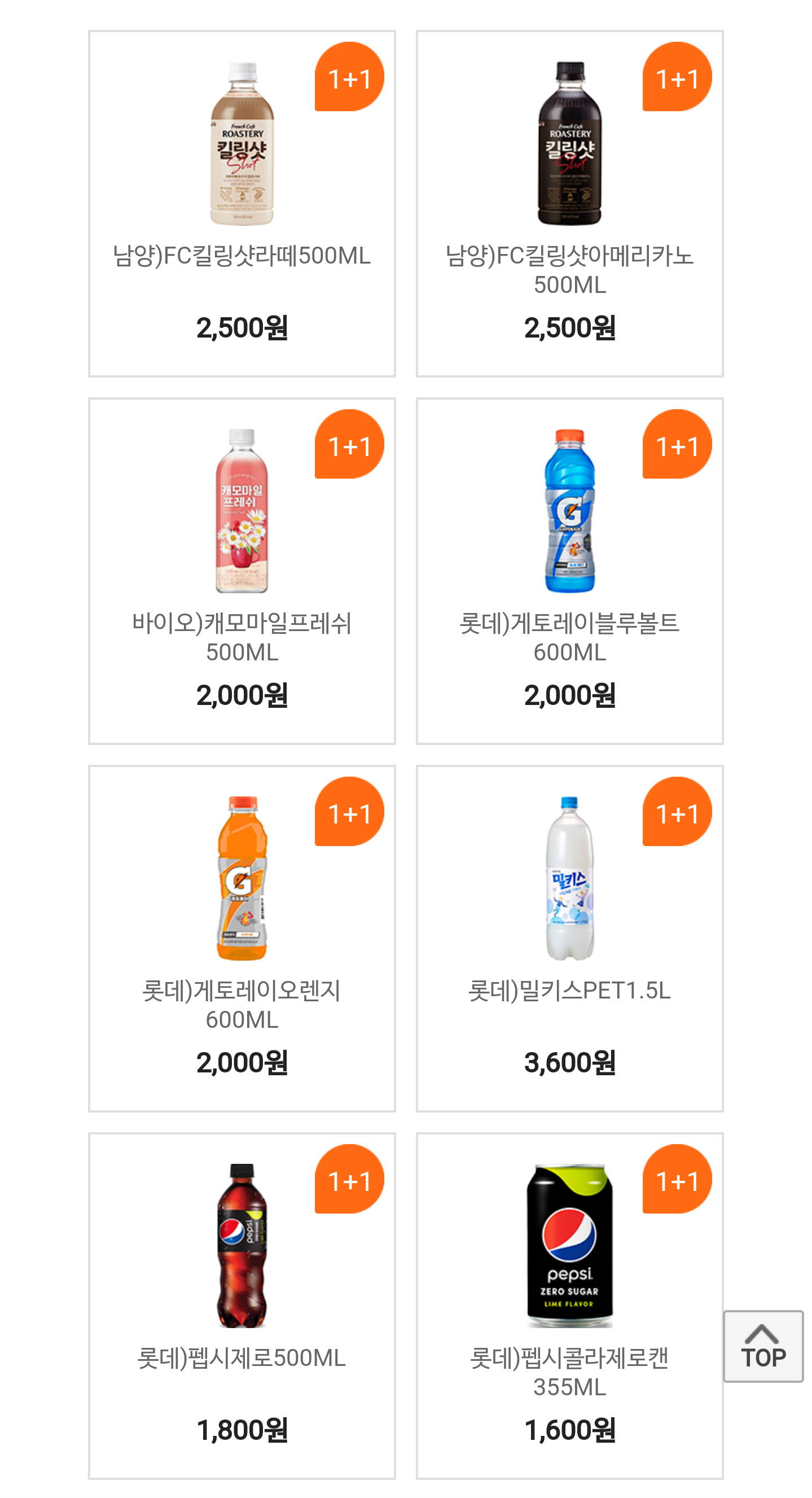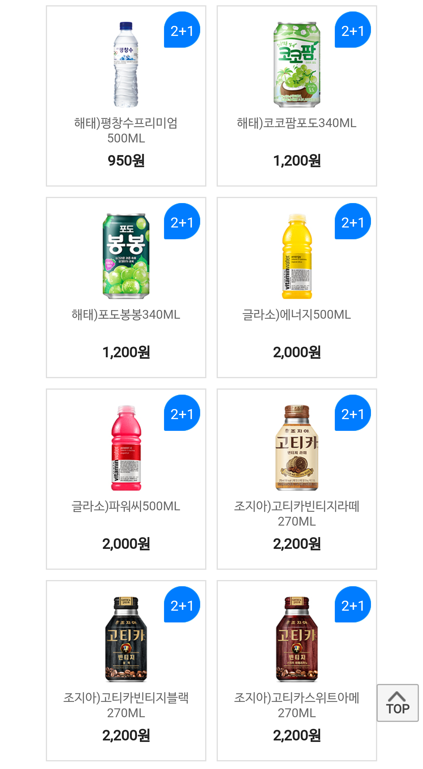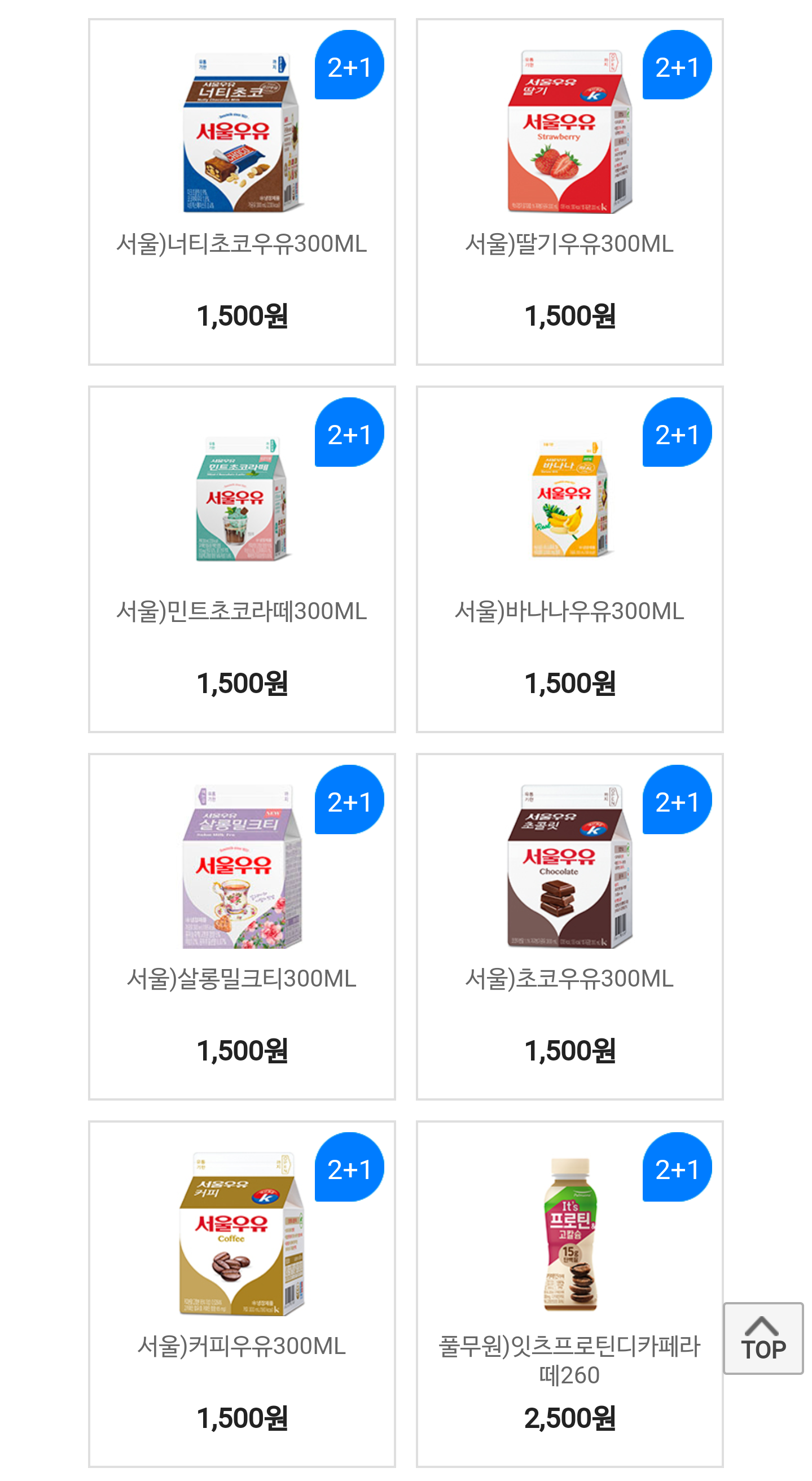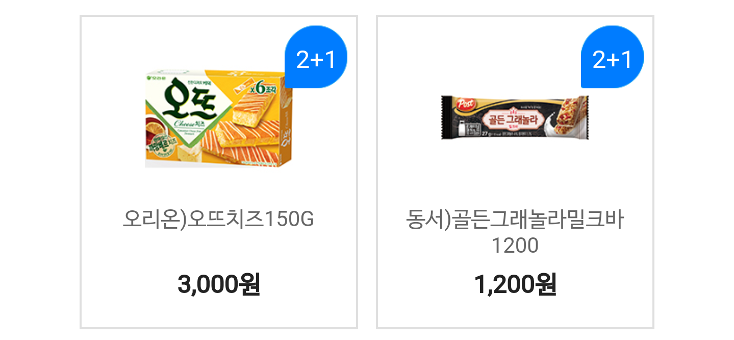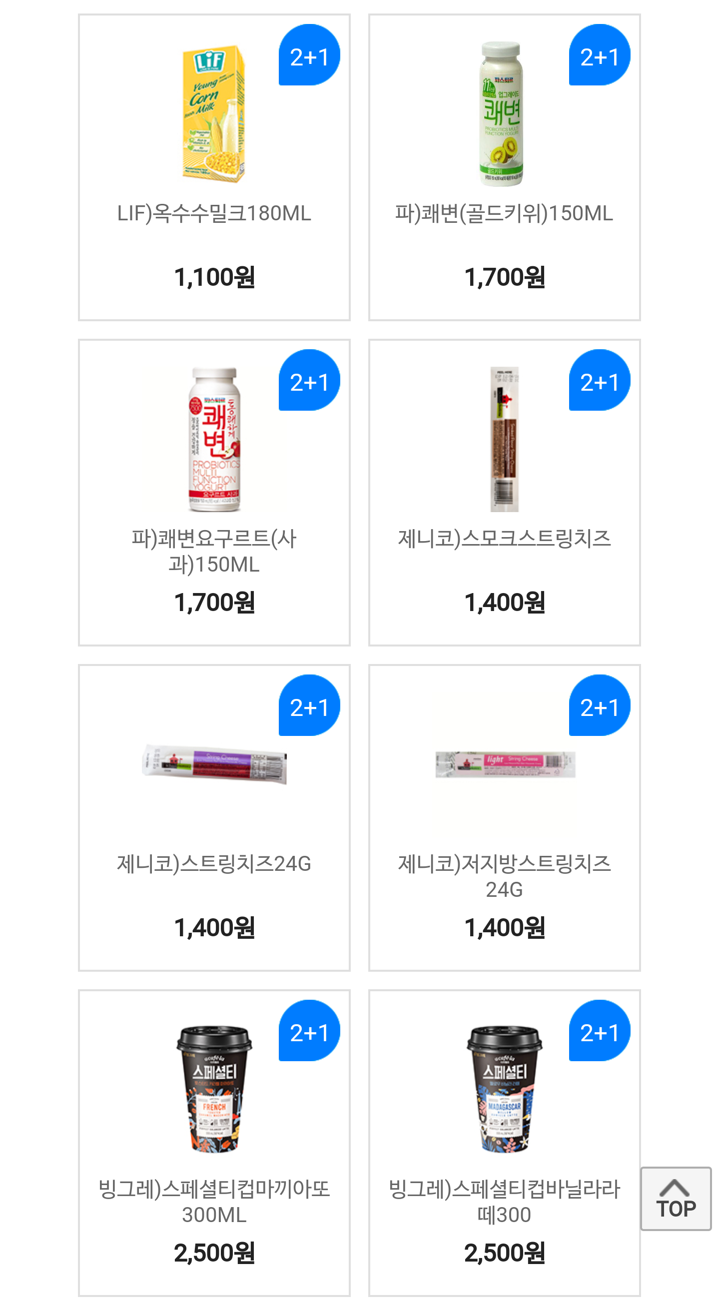 더 많은 2+1 상품(음료, 간식 종류만)은 아래 더보기 클릭