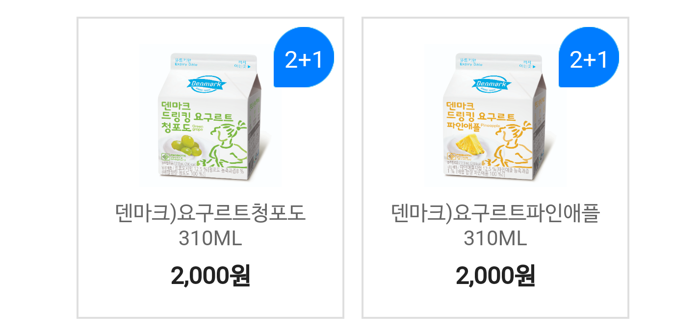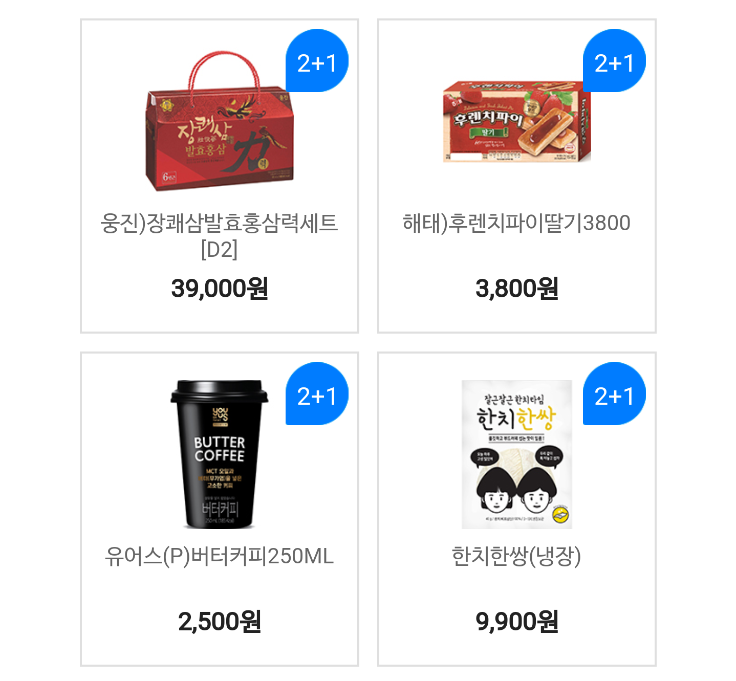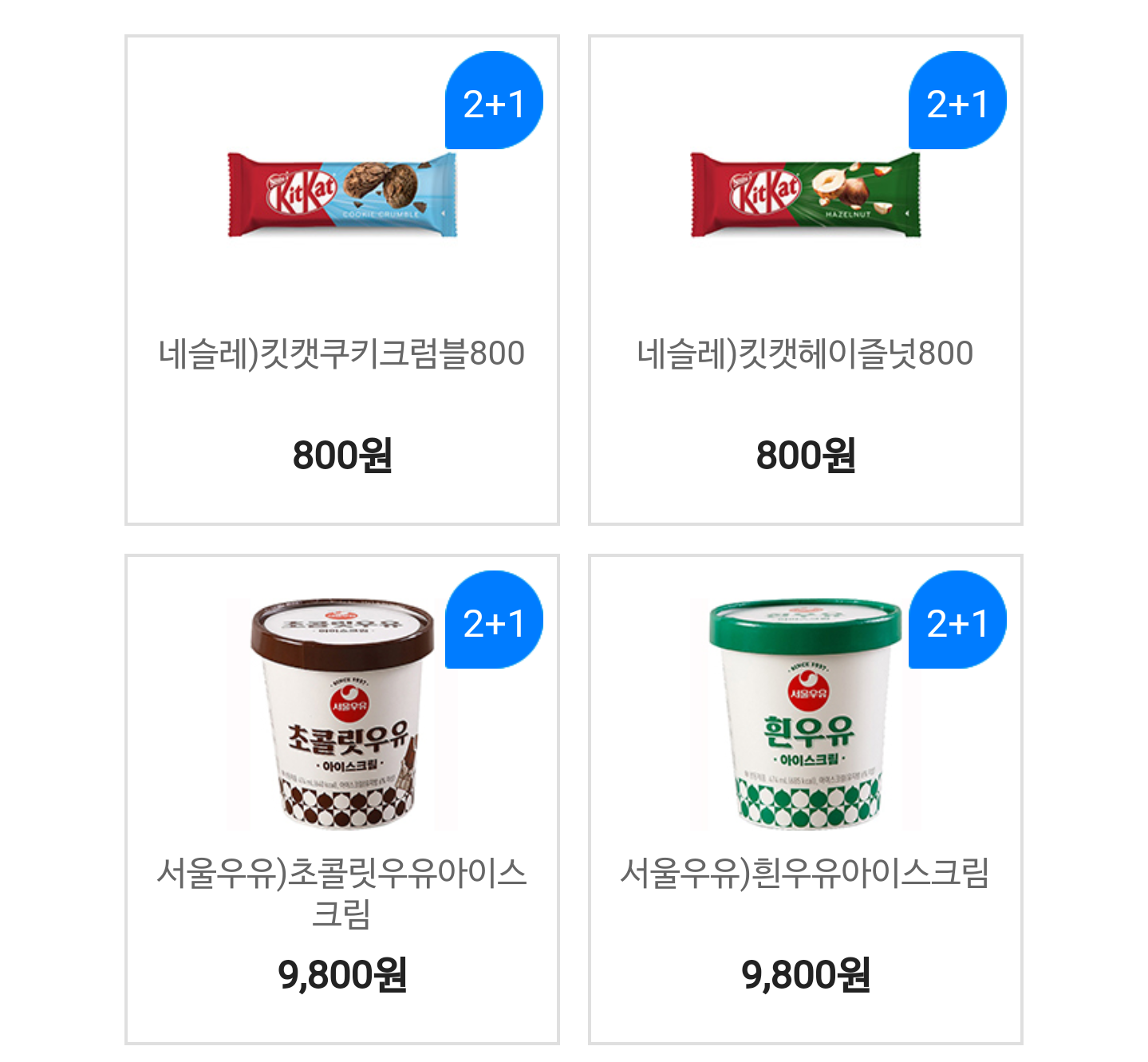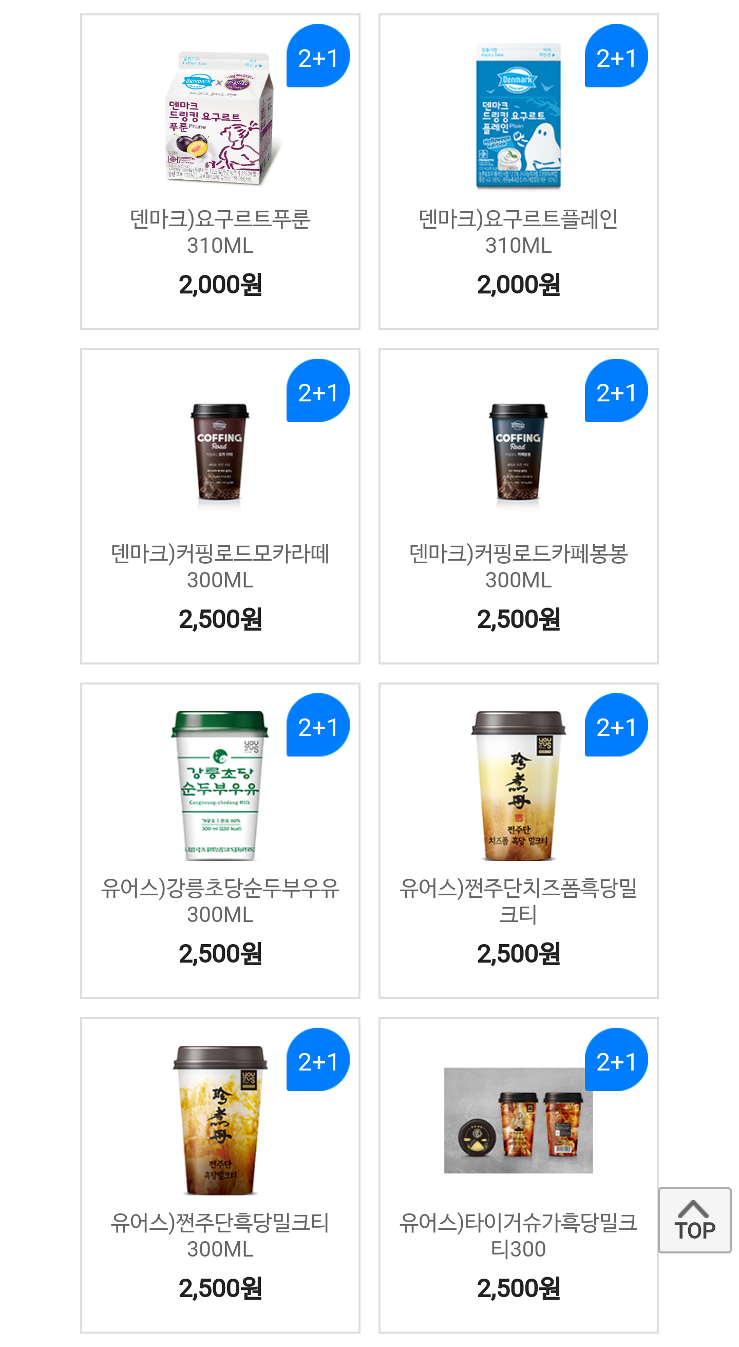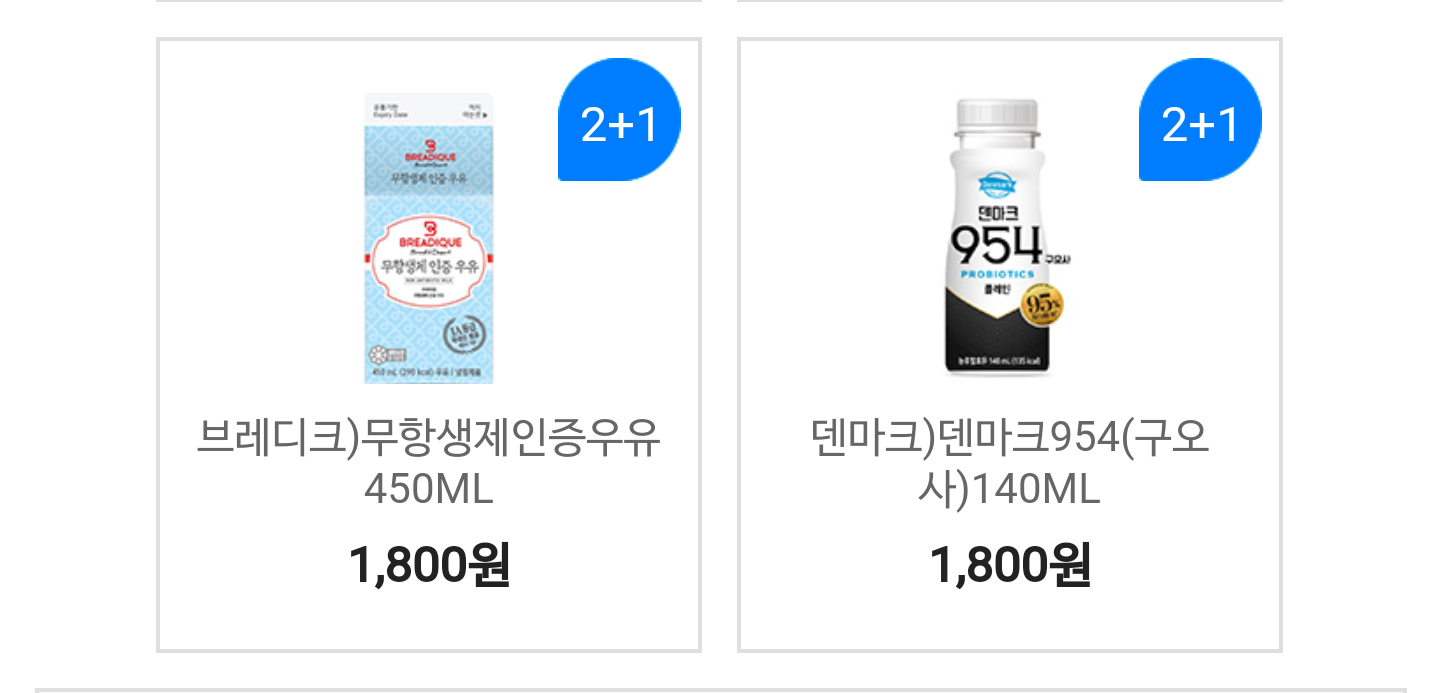 더 많은 2+1 상품(음료, 간식 종류만)은 아래 더보기 클릭