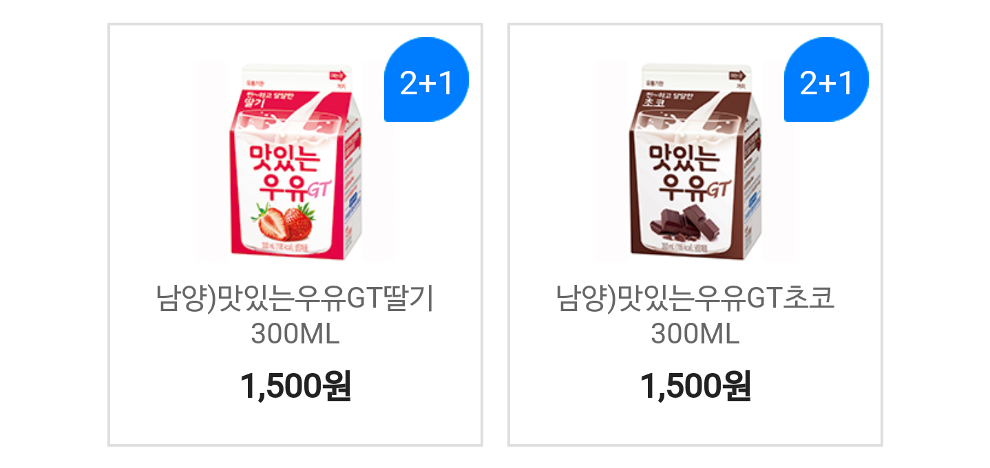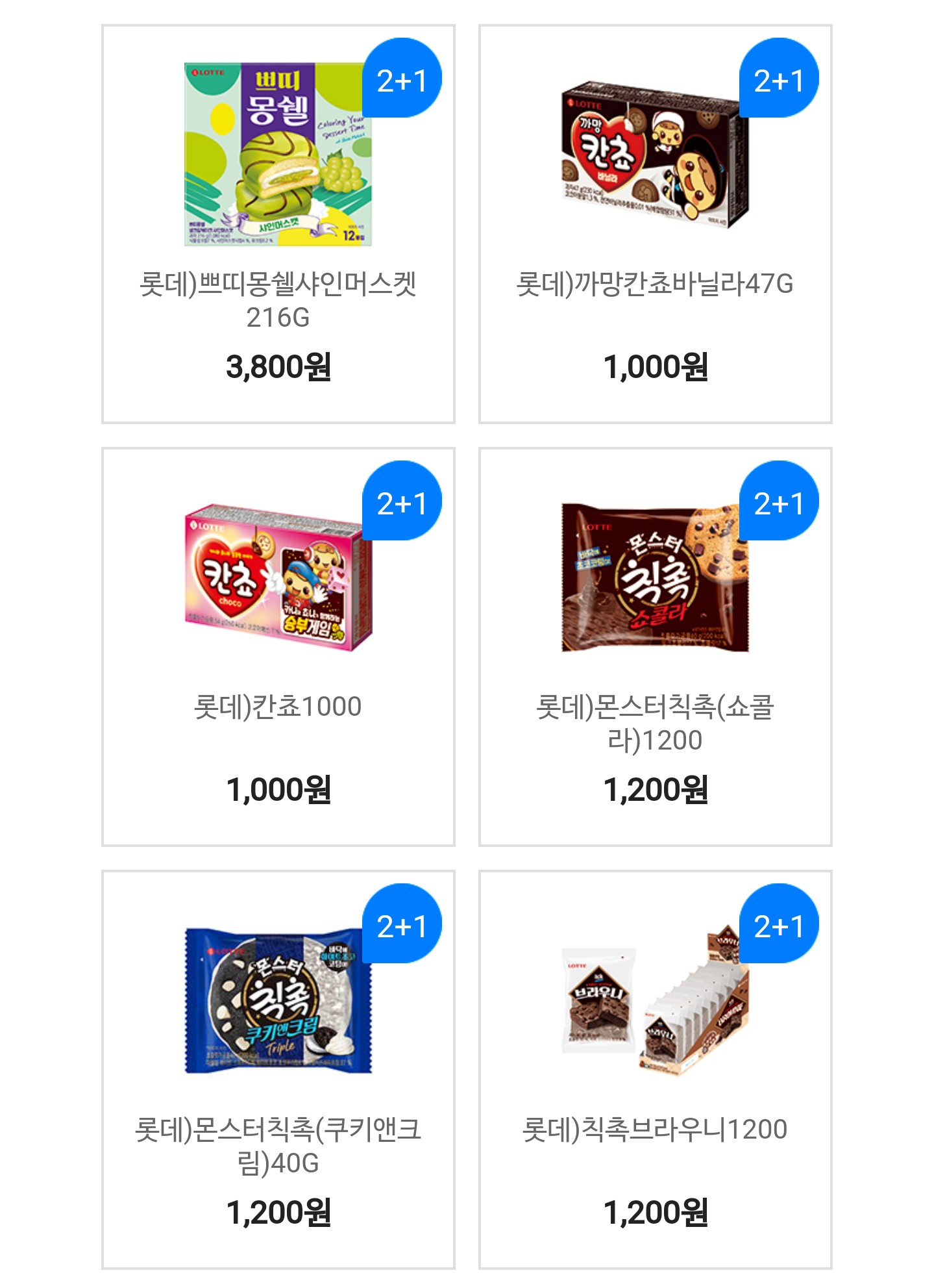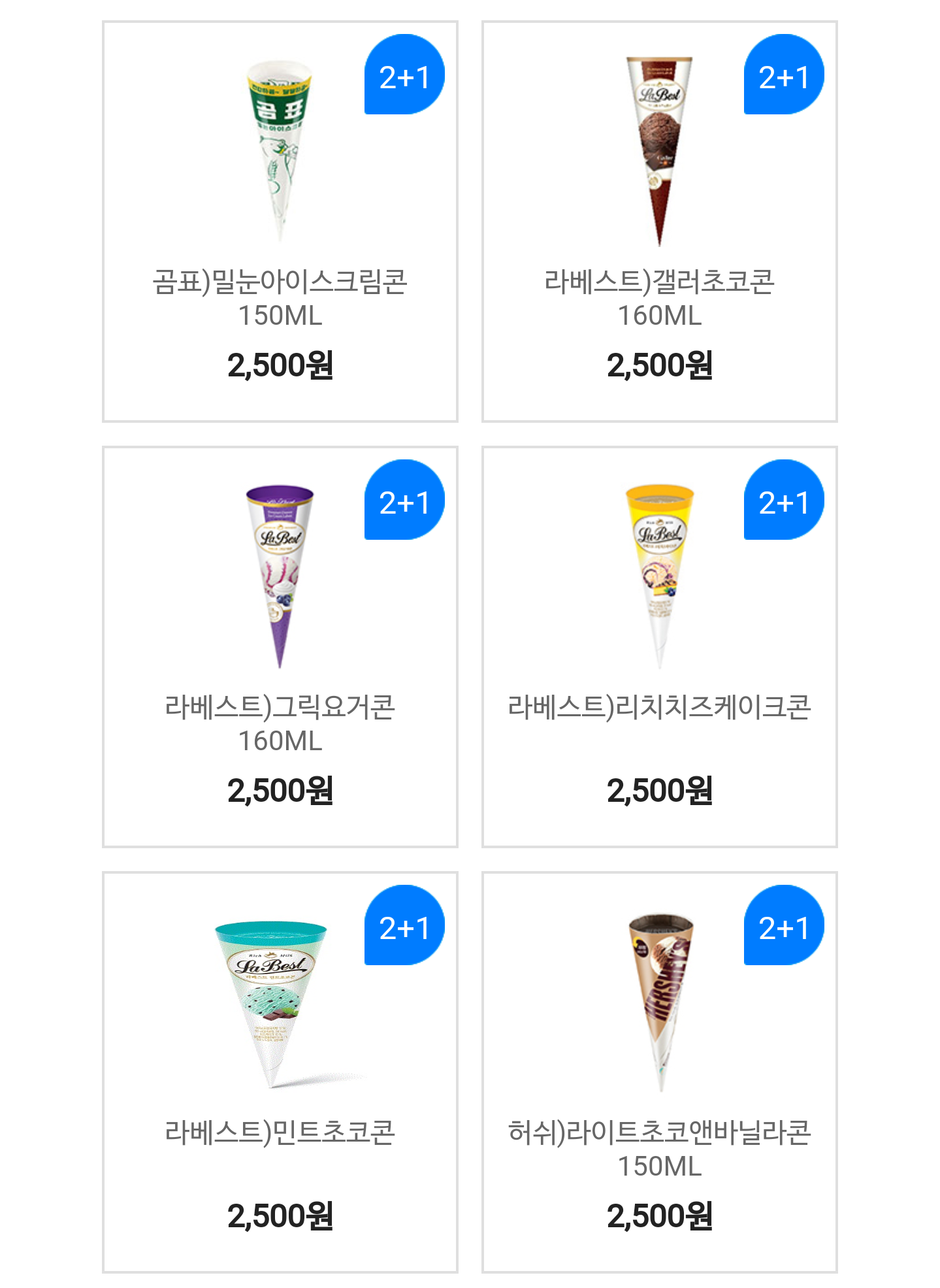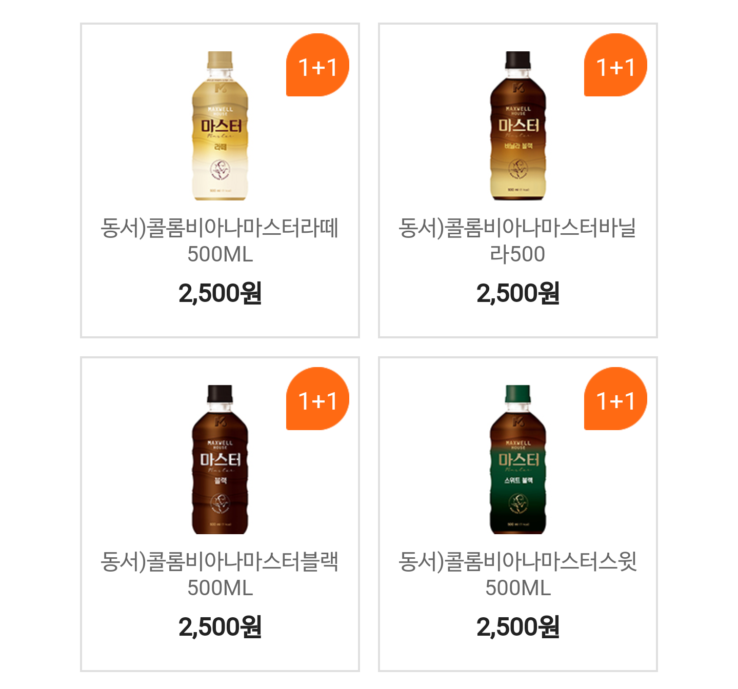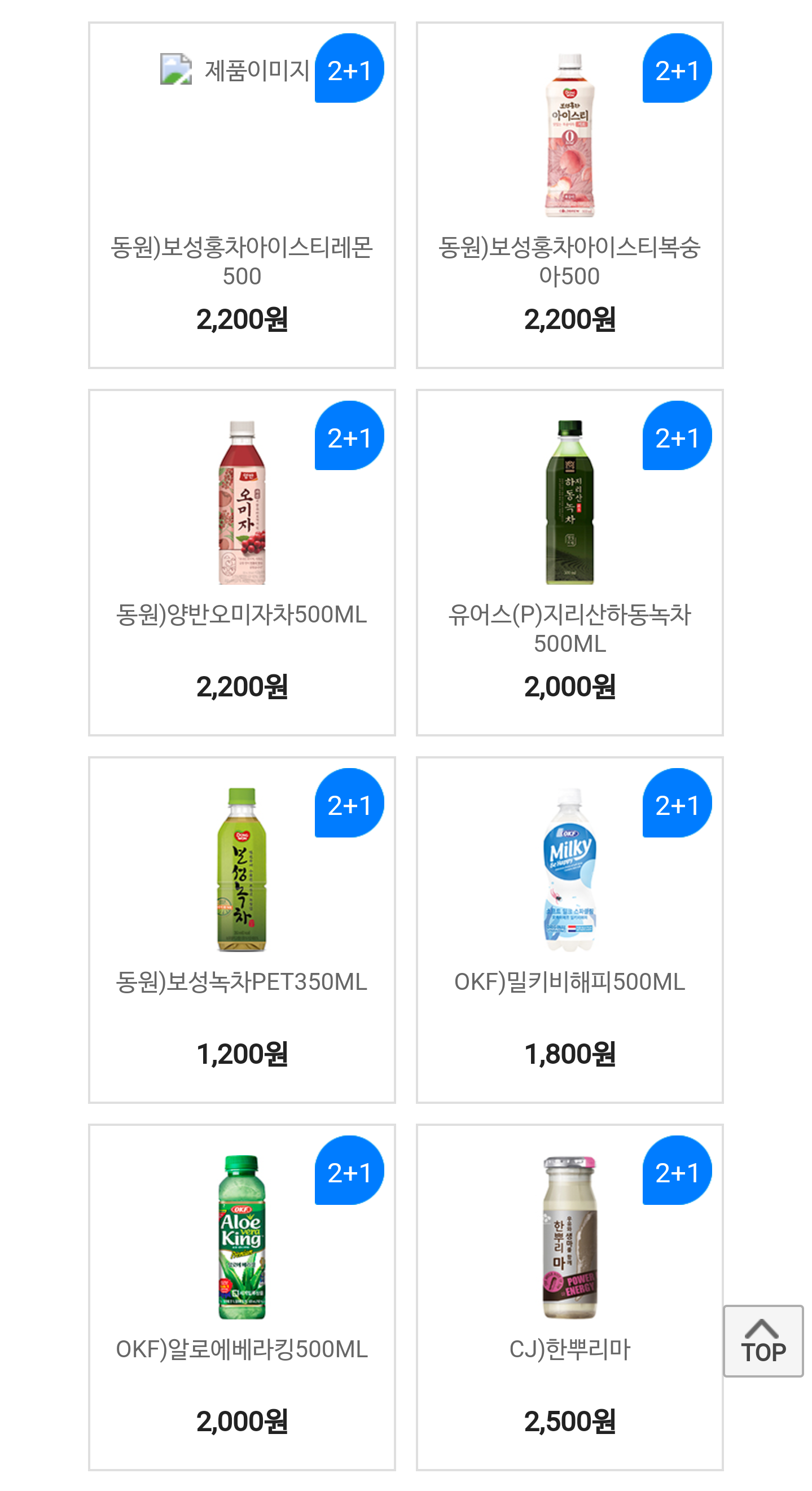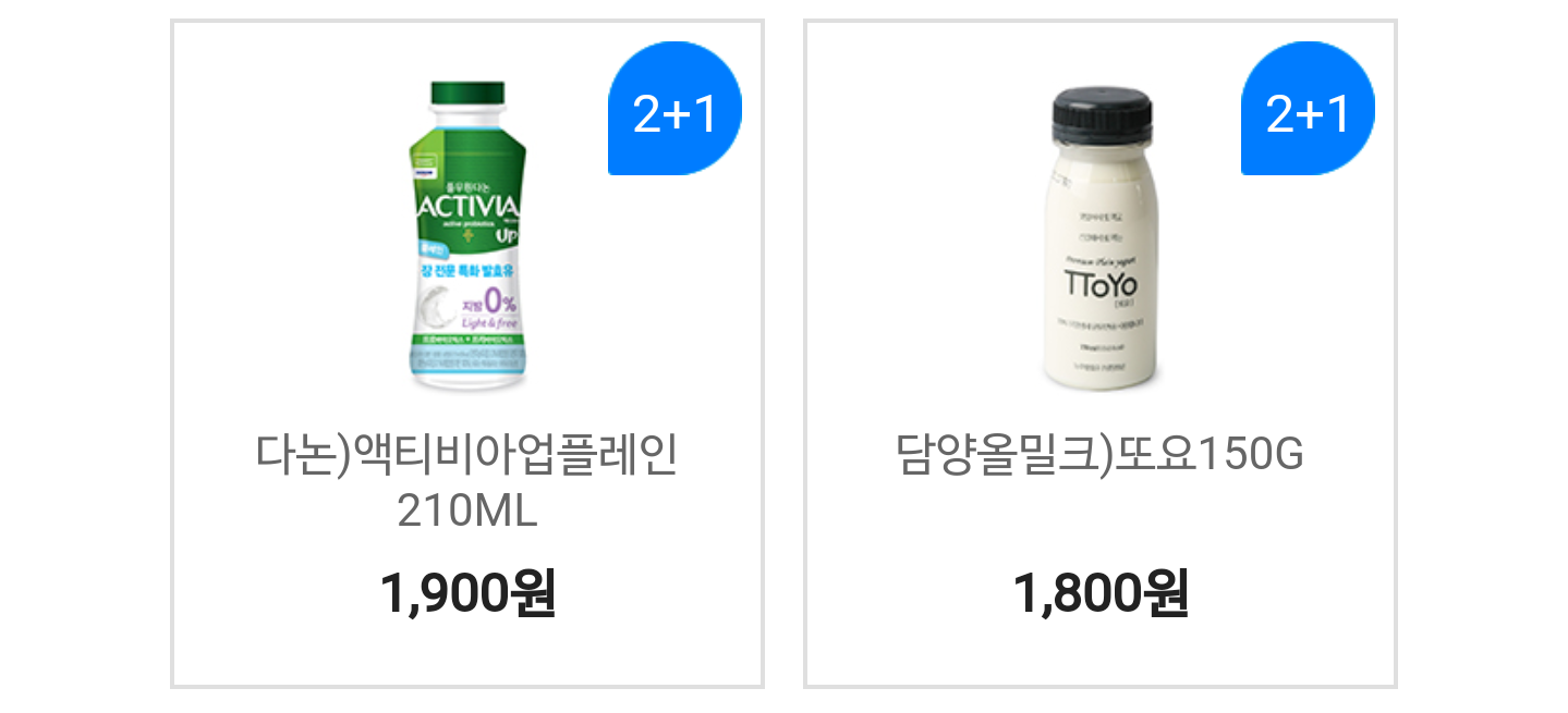 더 많은 2+1 상품(음료, 간식 종류만)은 아래 더보기 클릭