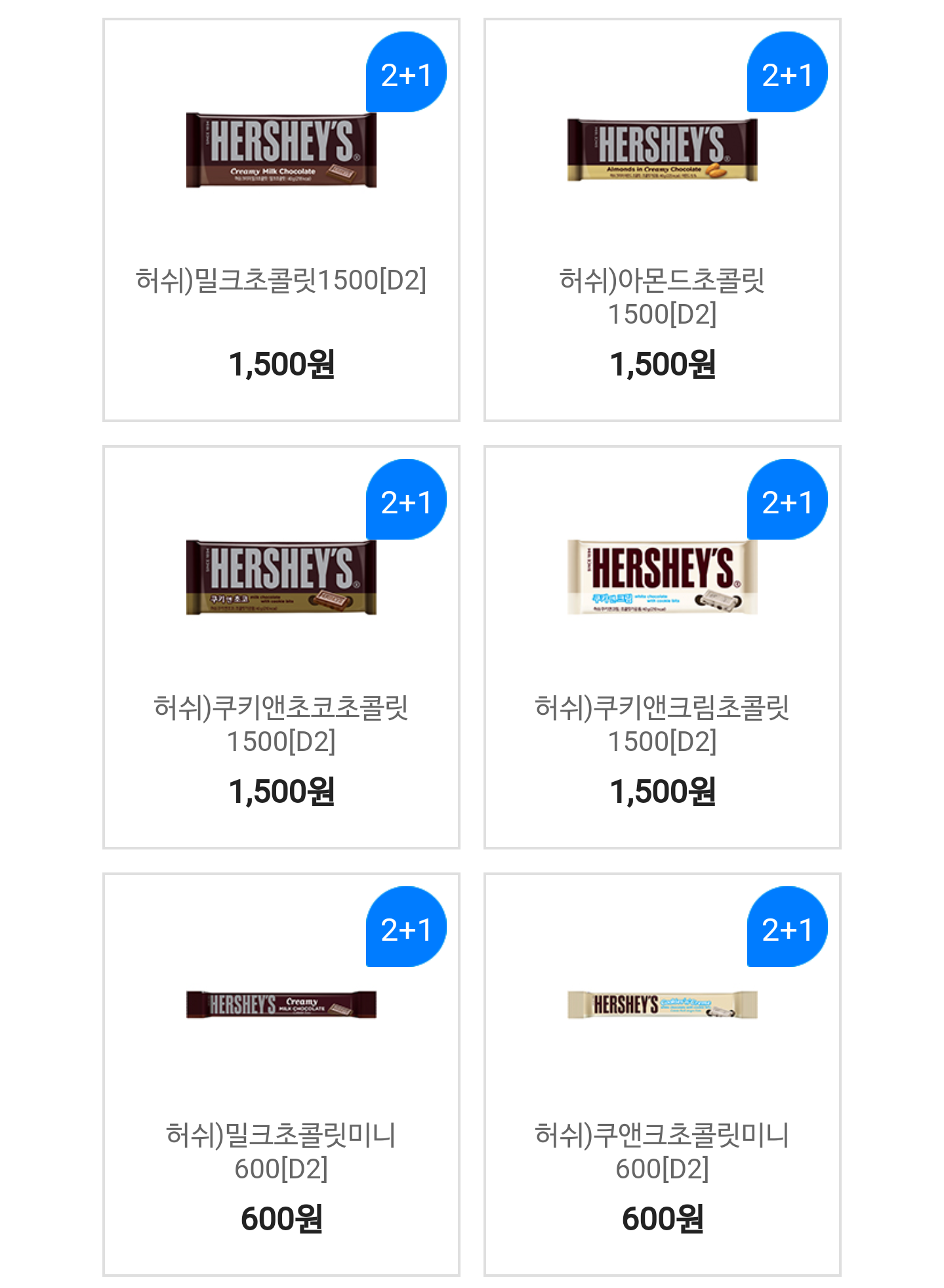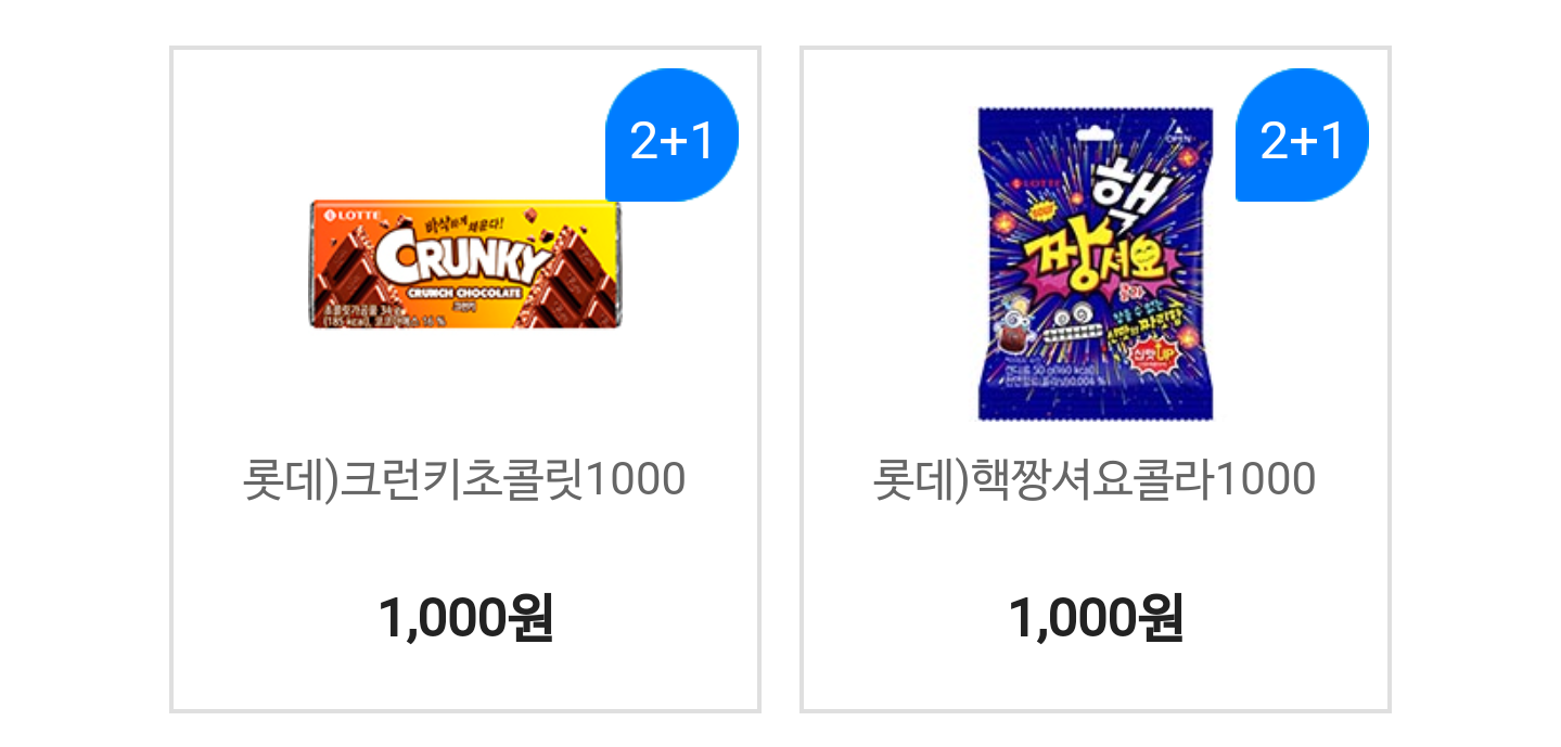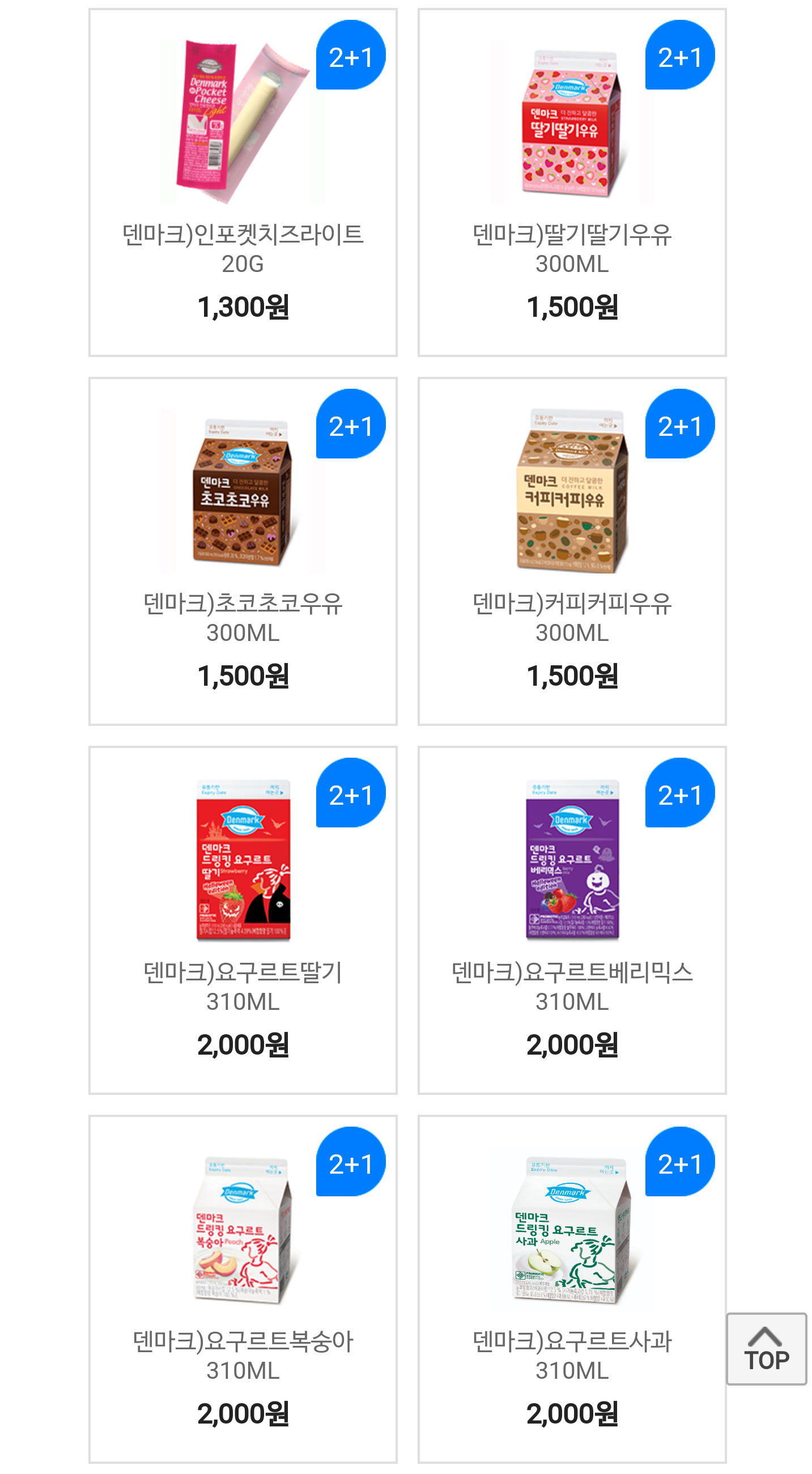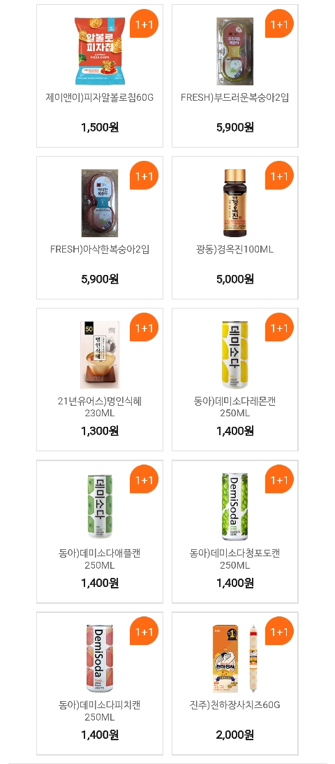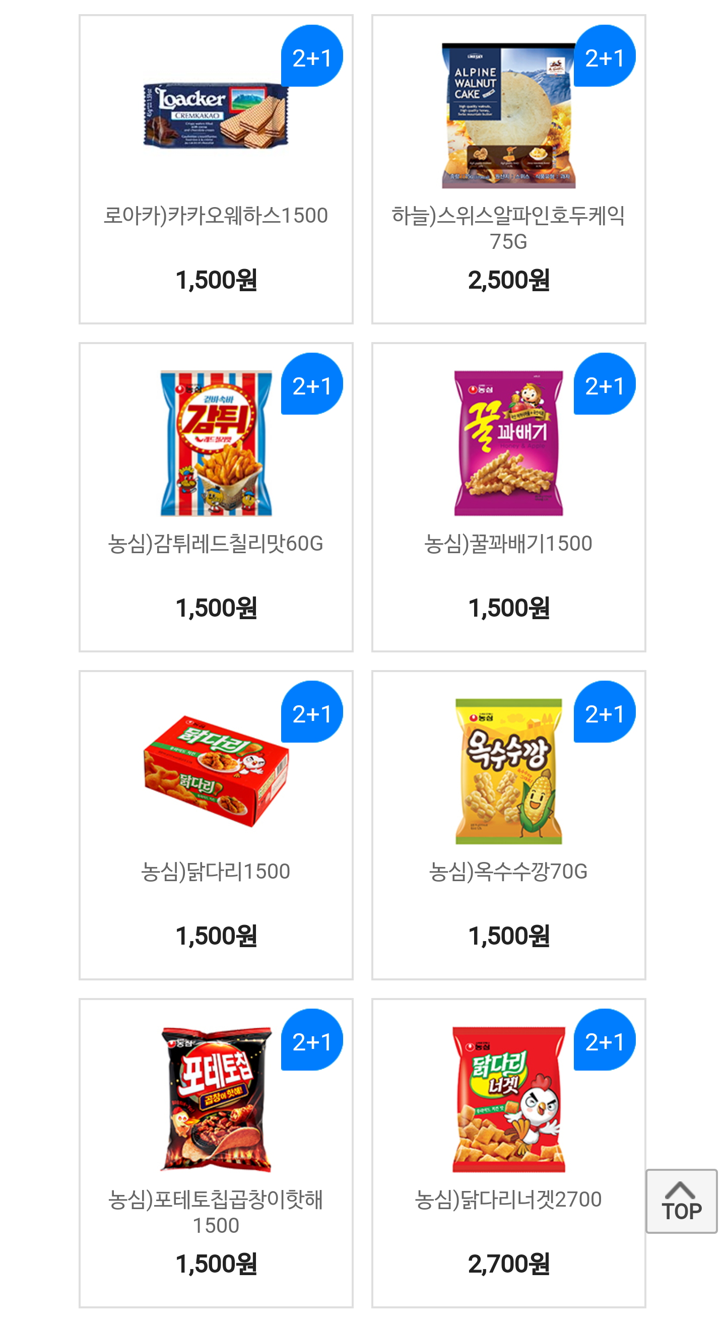 더 많은 2+1 상품(음료, 간식 종류만)은 아래 더보기 클릭
