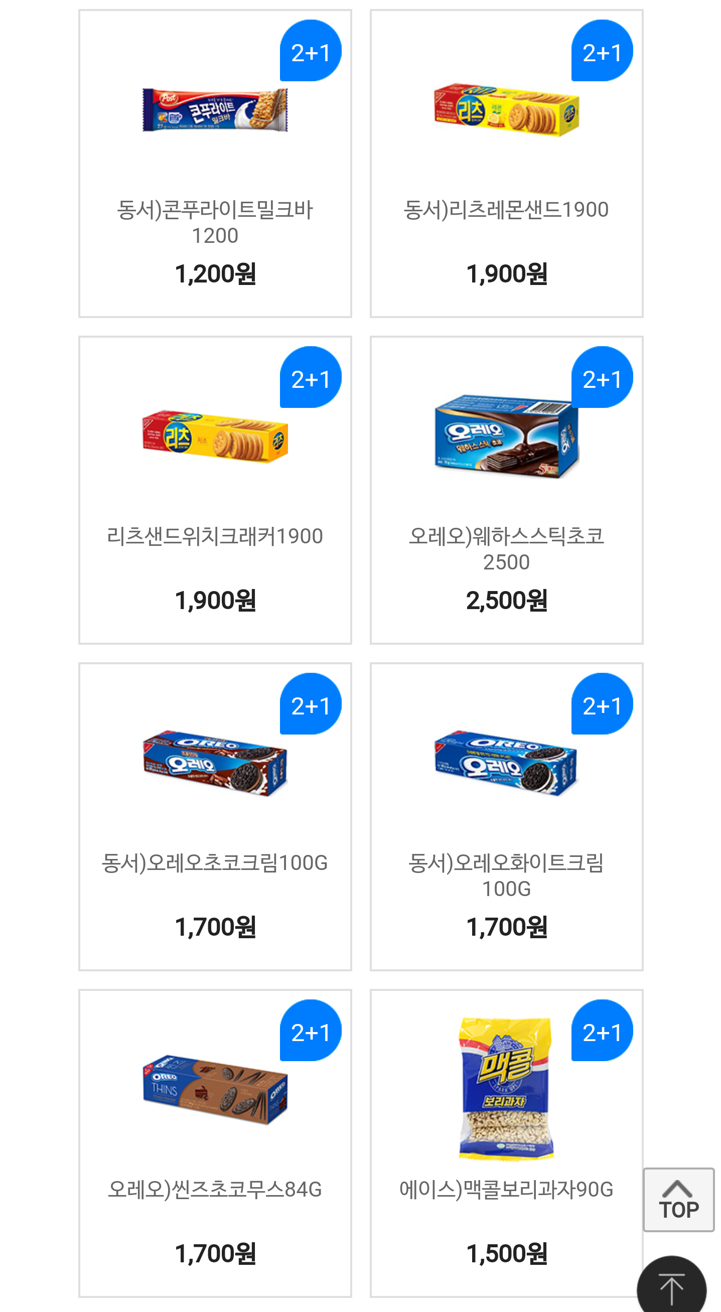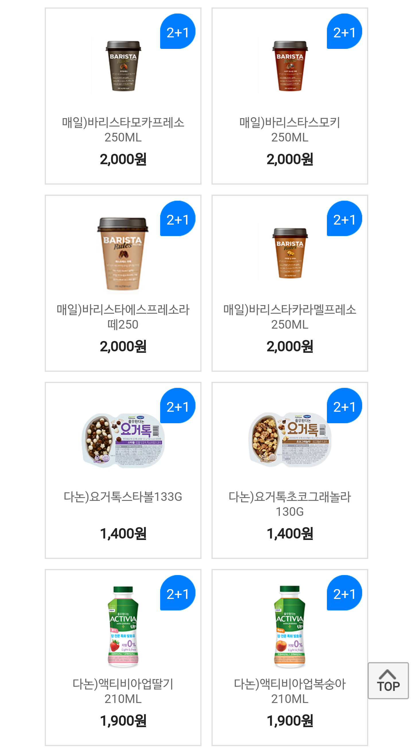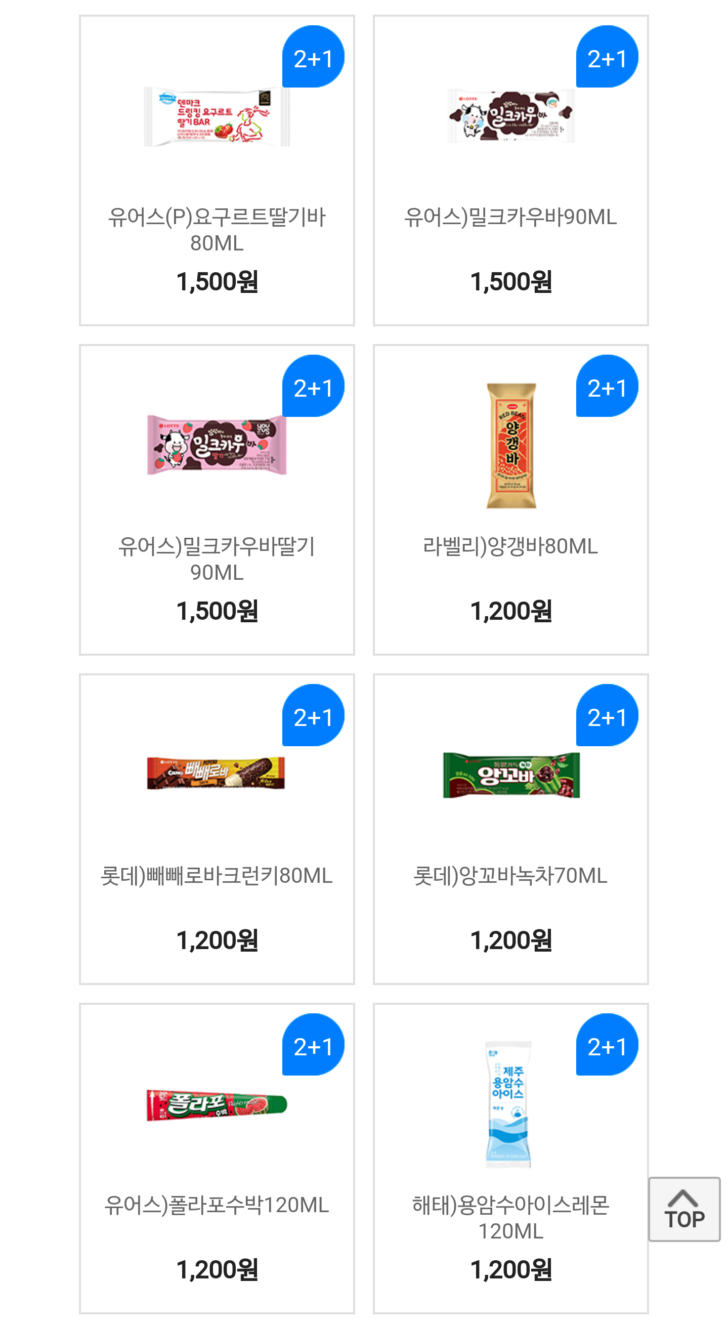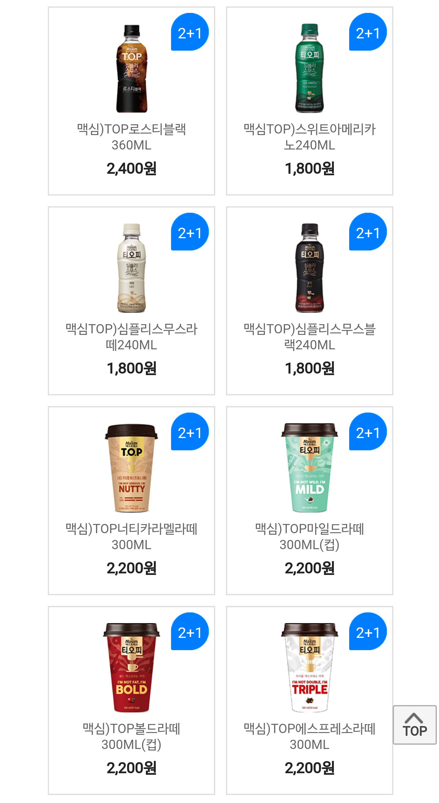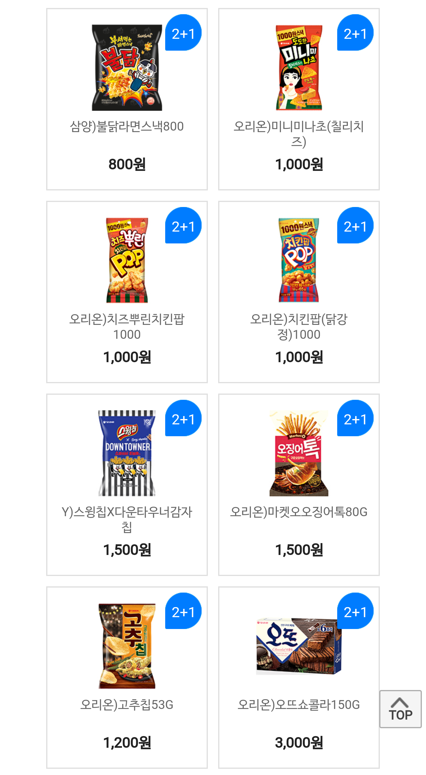 더 많은 2+1 상품(음료, 간식 종류만)은 아래 더보기 클릭