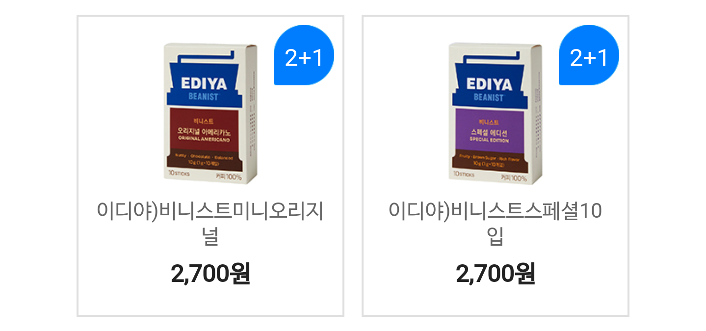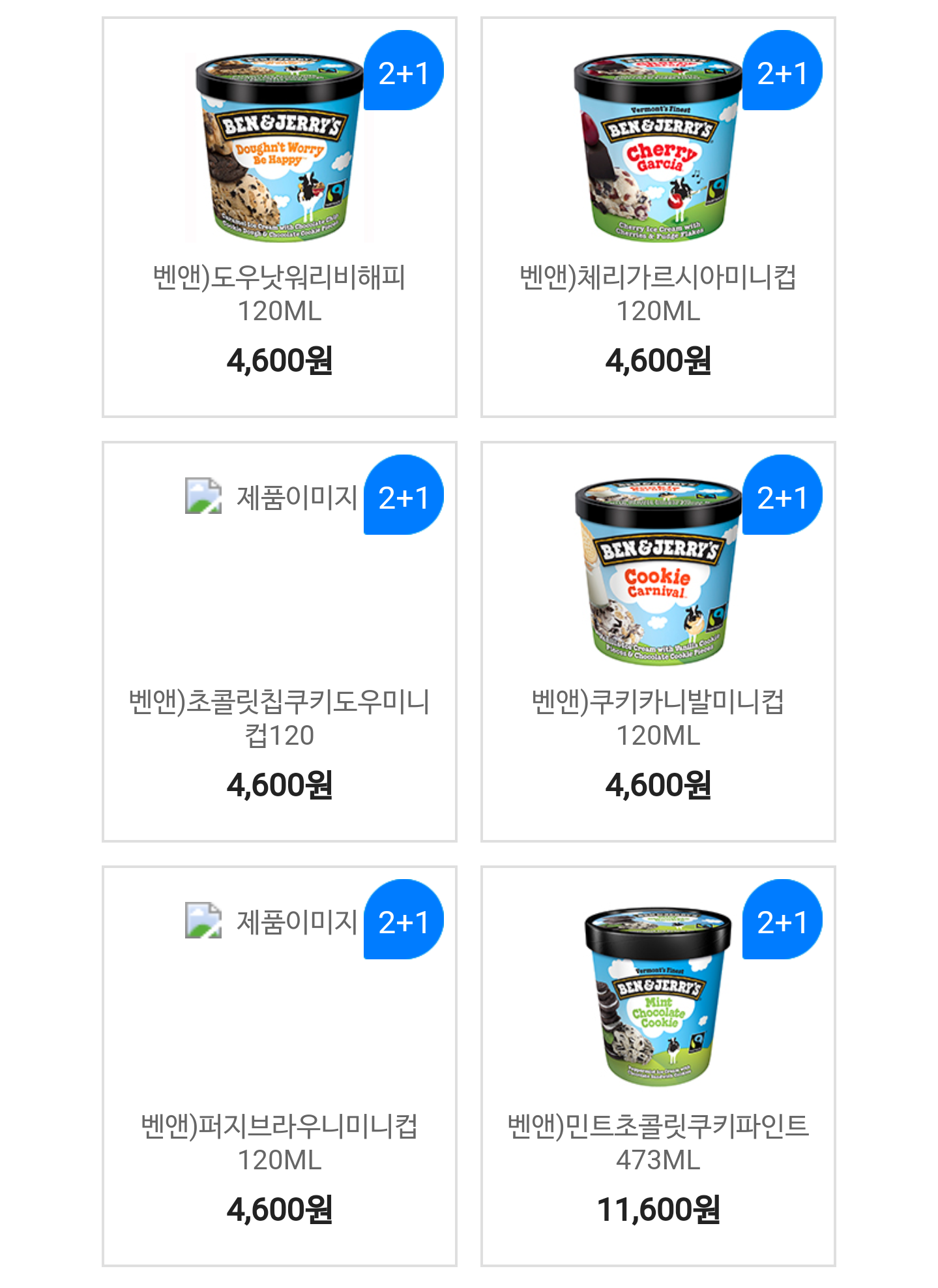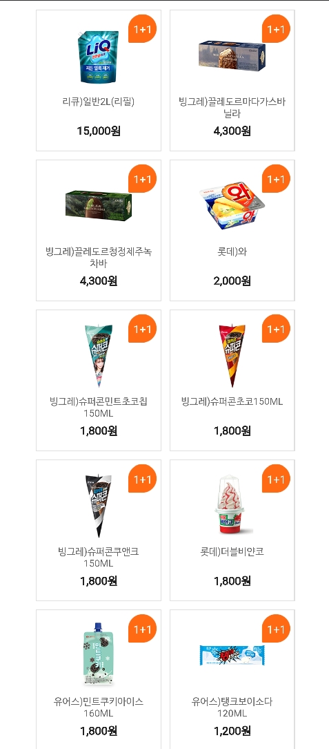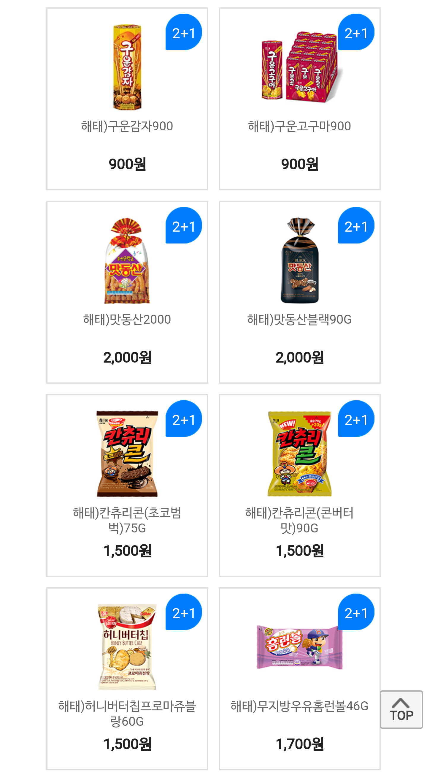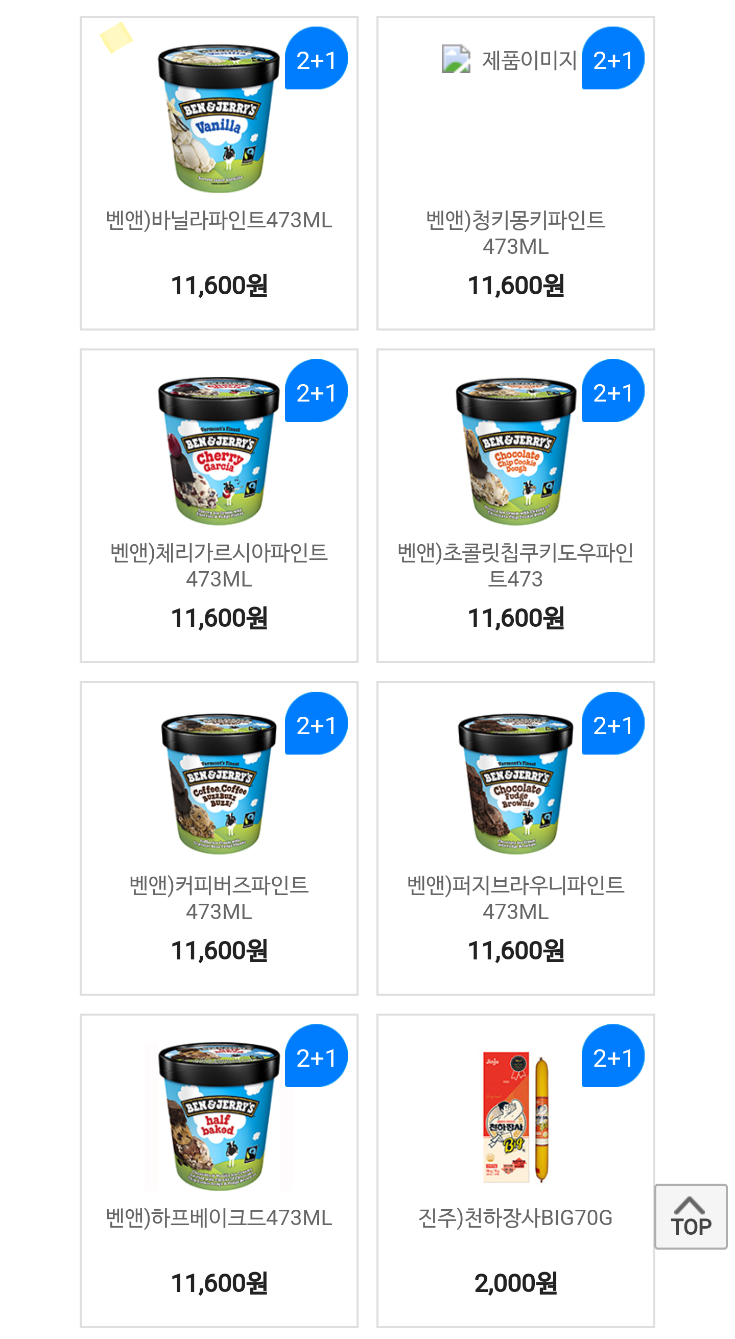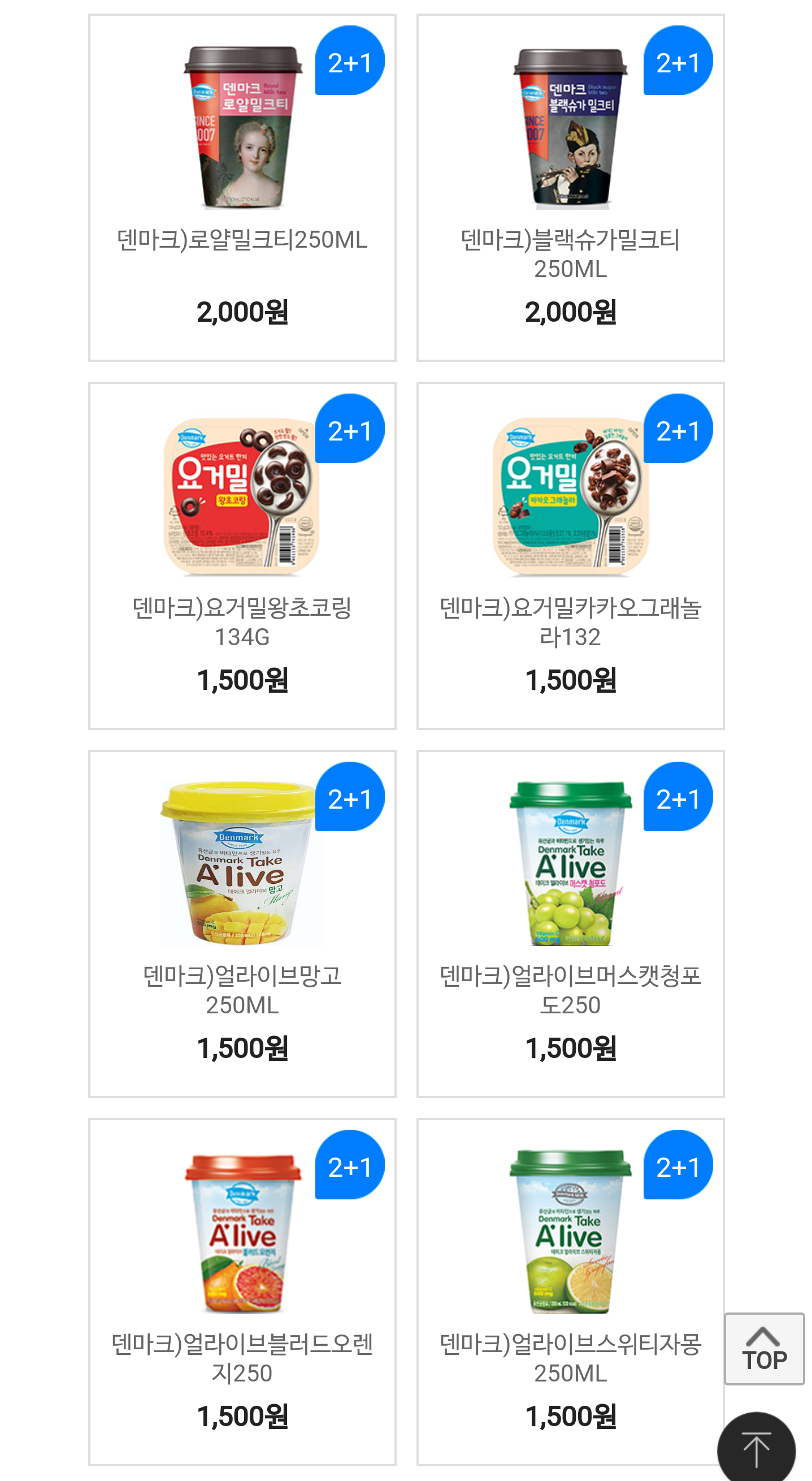 더 많은 2+1 상품(음료, 간식 종류만)은 아래 더보기 클릭