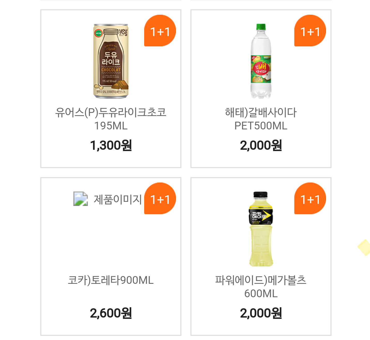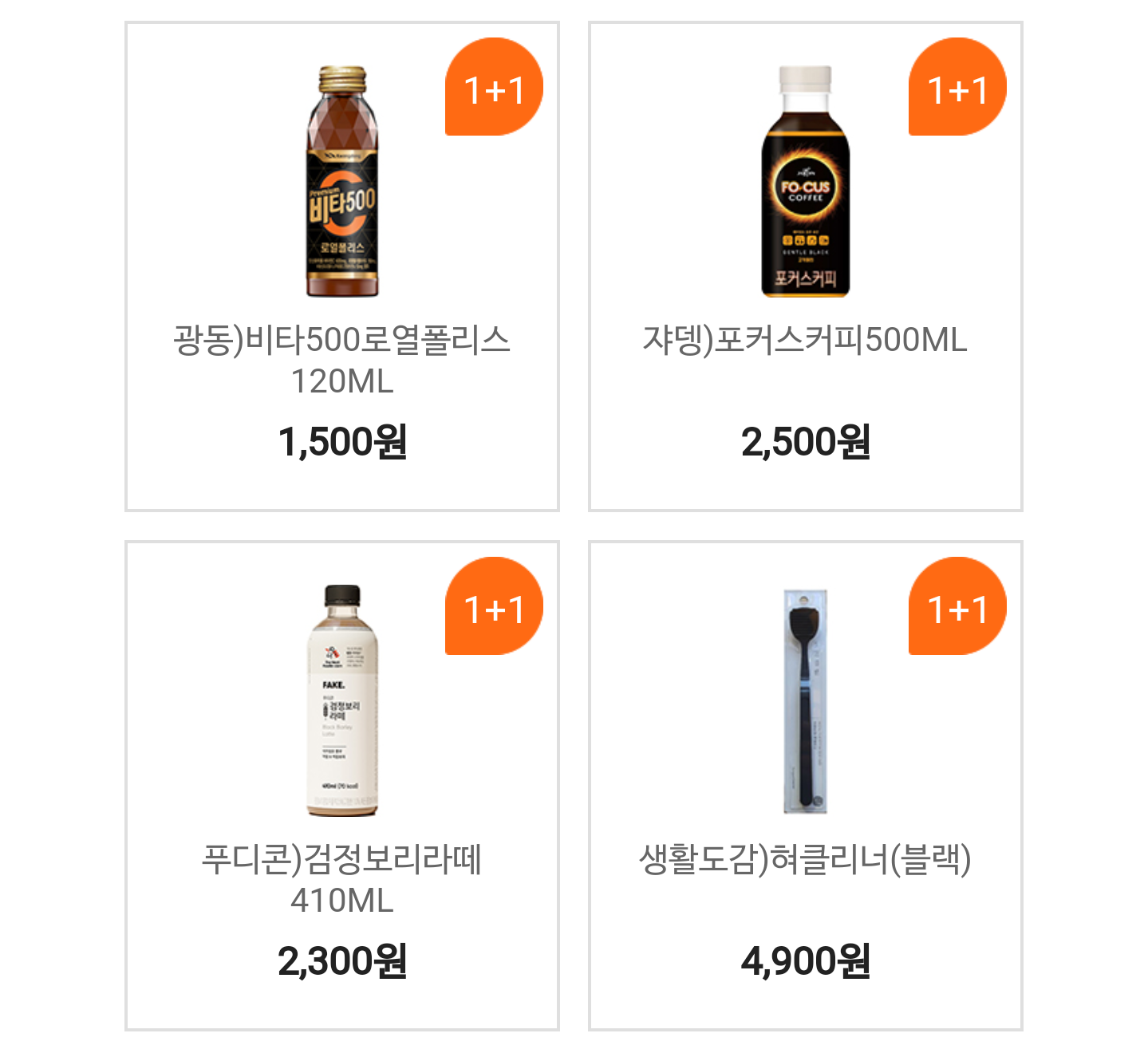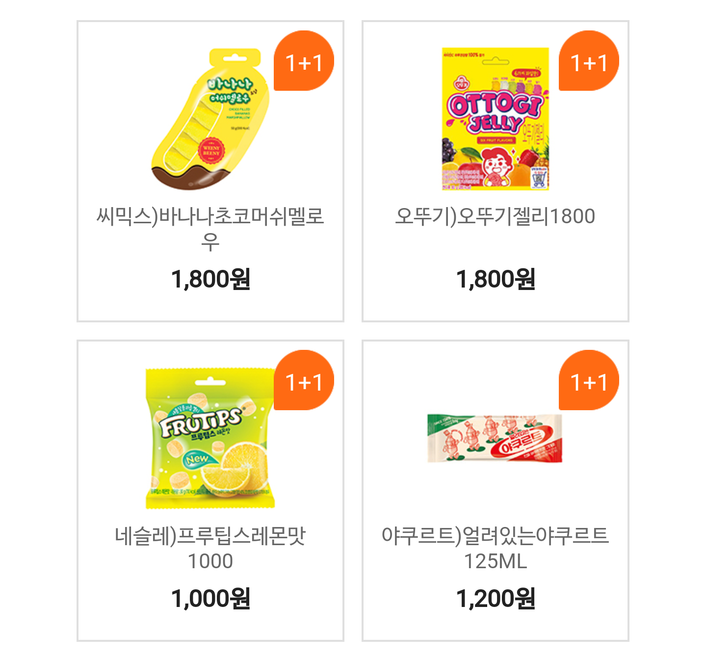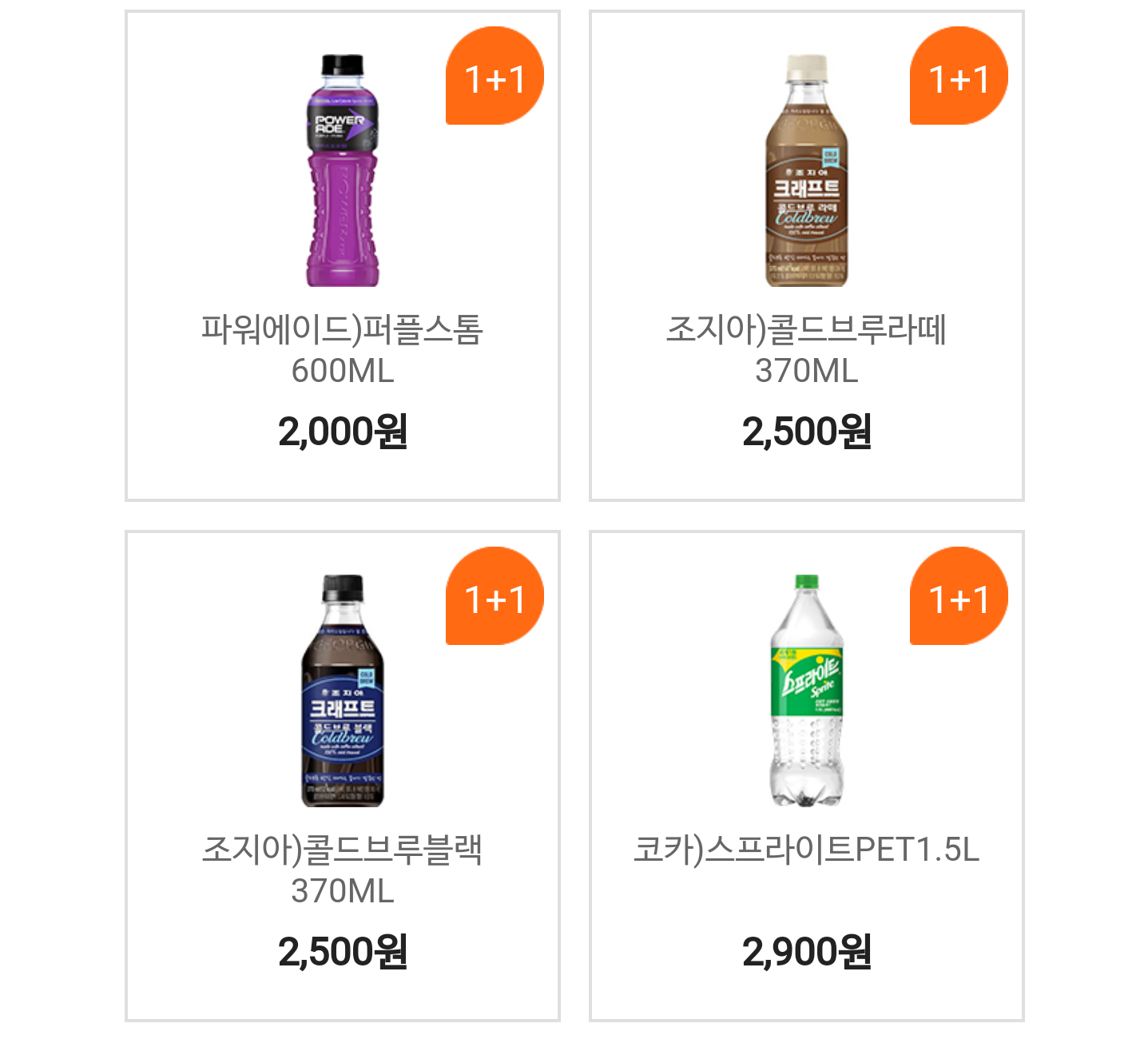 더 많은 1+1 상품(음료, 간식 종류만)은 아래 더보기 클릭