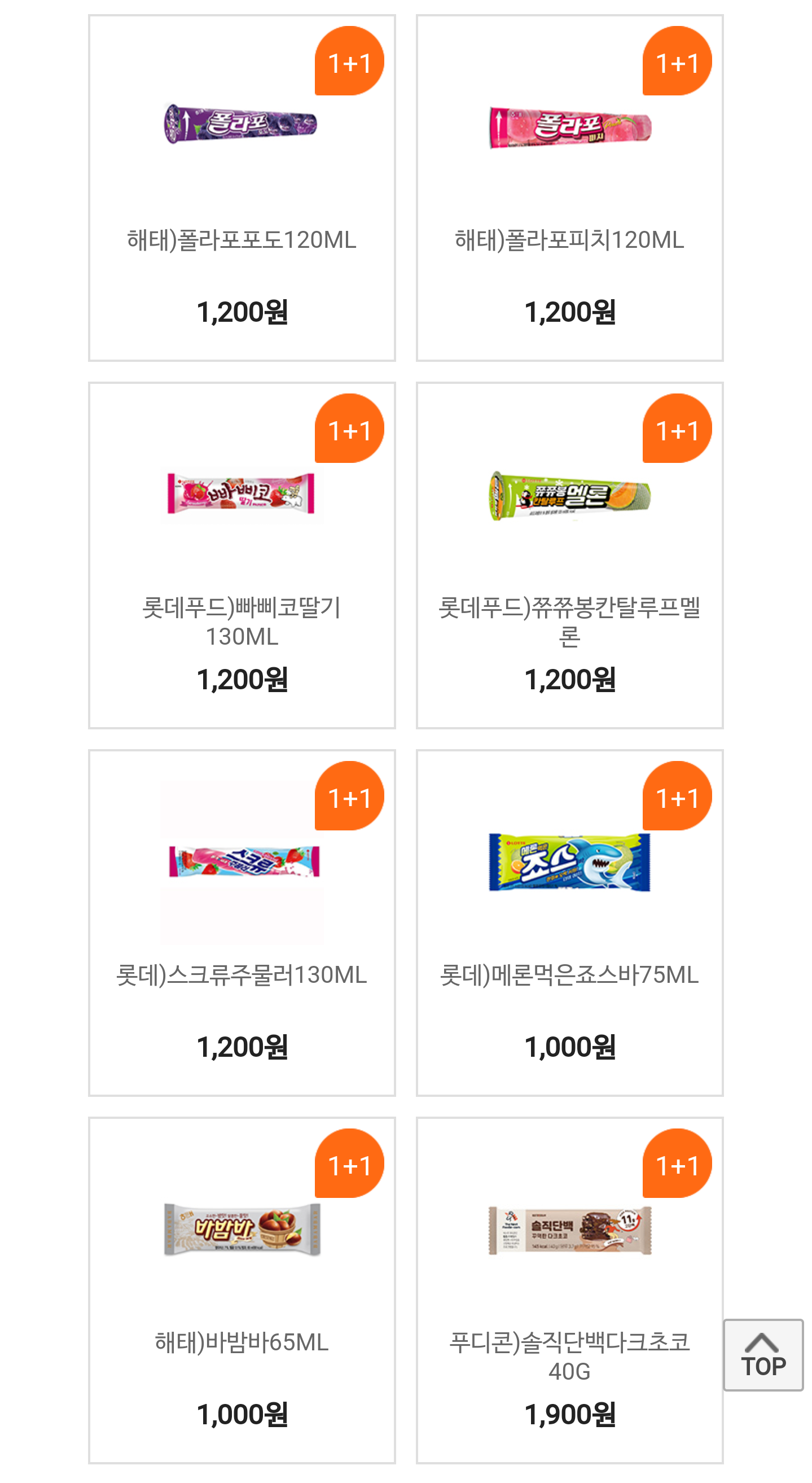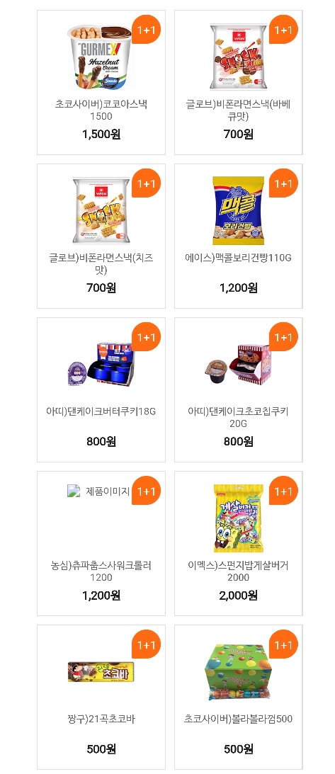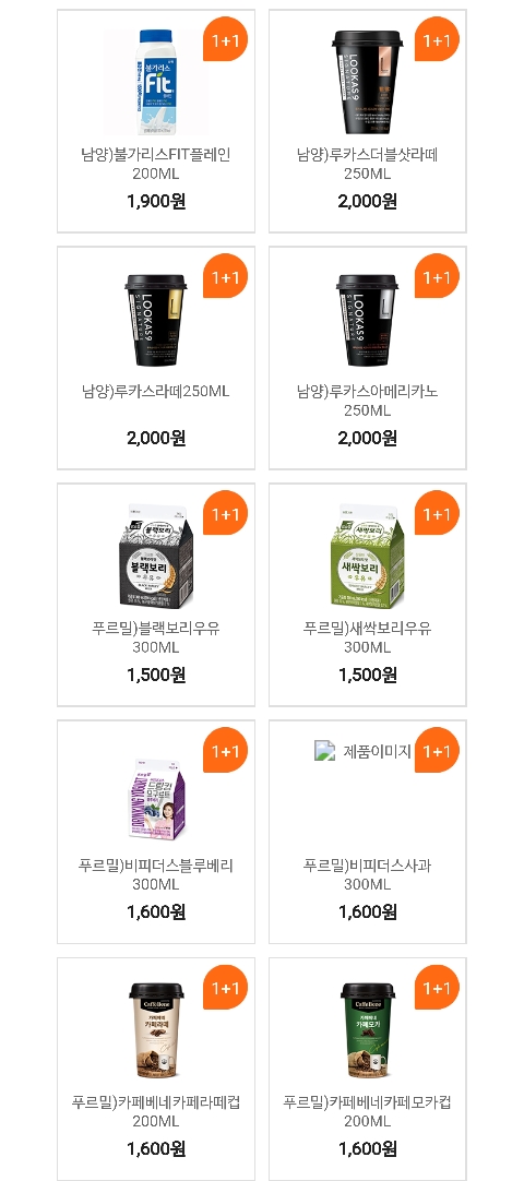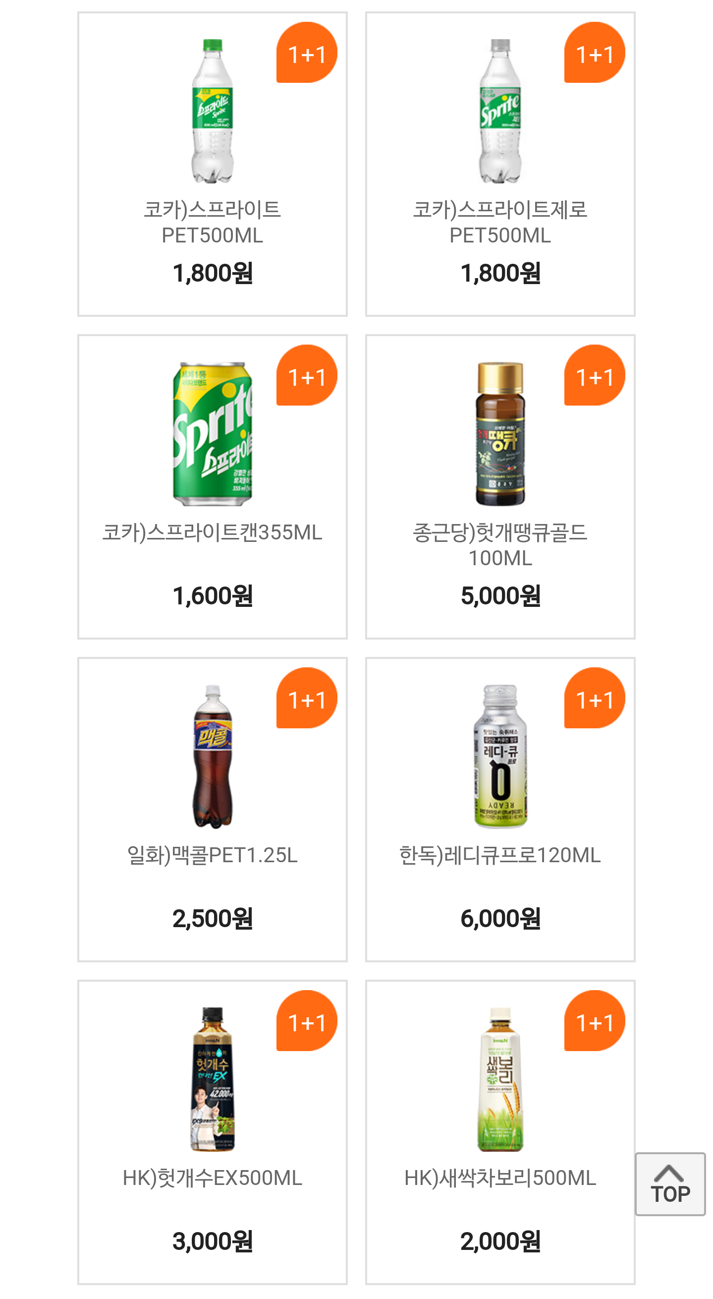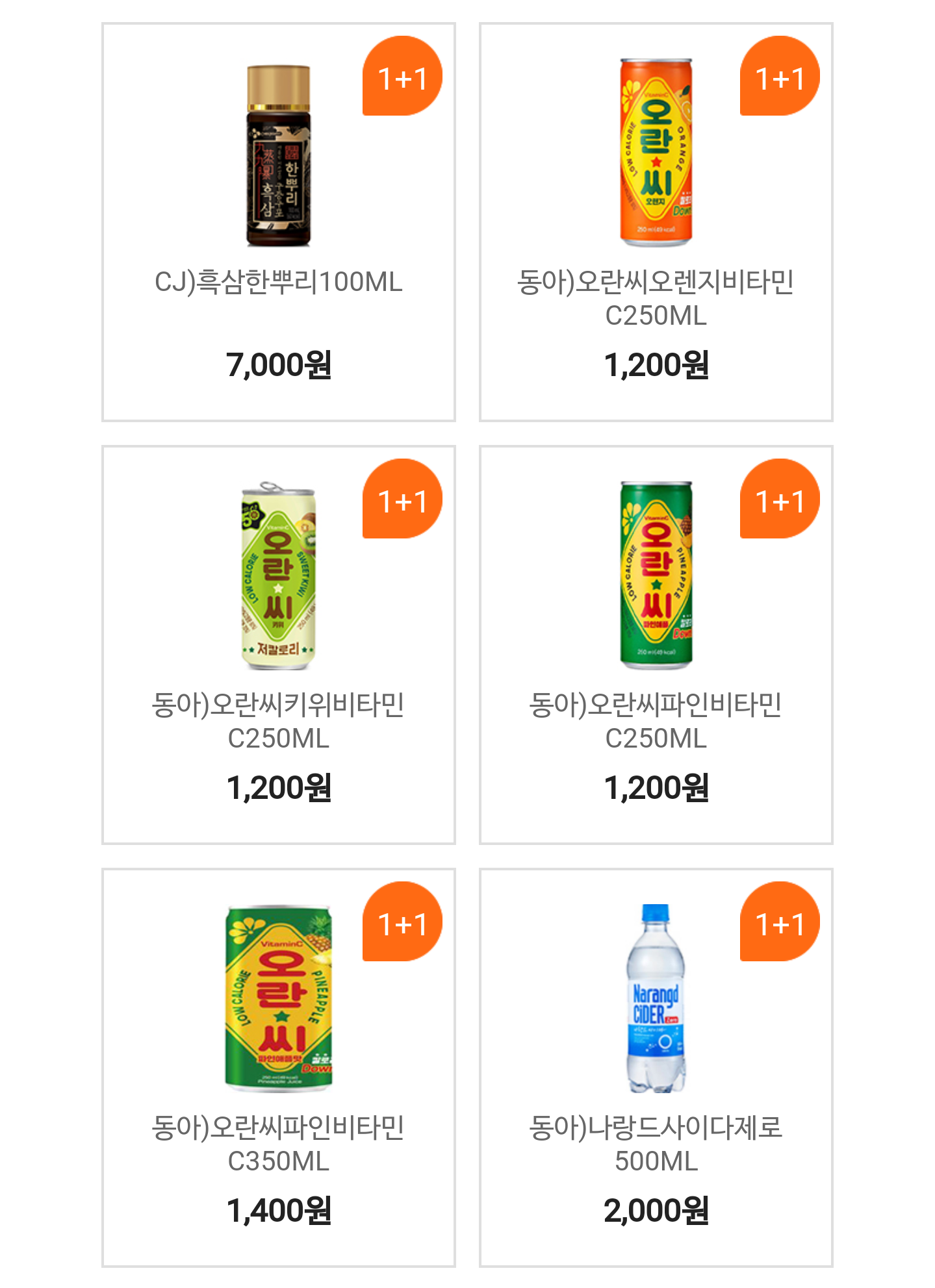 더 많은 1+1 상품(음료, 간식 종류만)은 아래 더보기 클릭