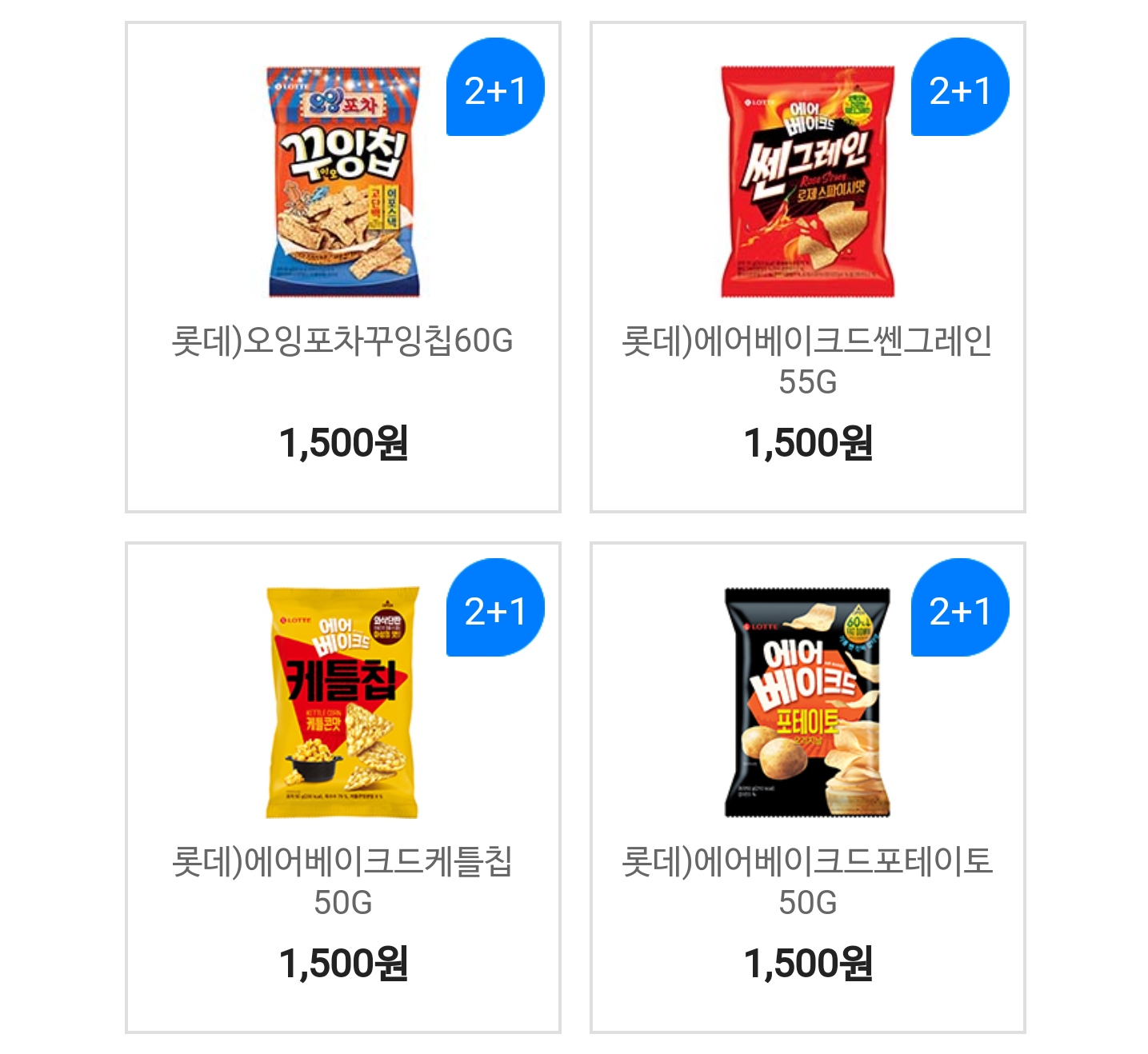 관심 상품만 보면 과자 1+1이 줄고 2+1이 늘어난 기분이다(실제로 그런지는 모르겠지만) .