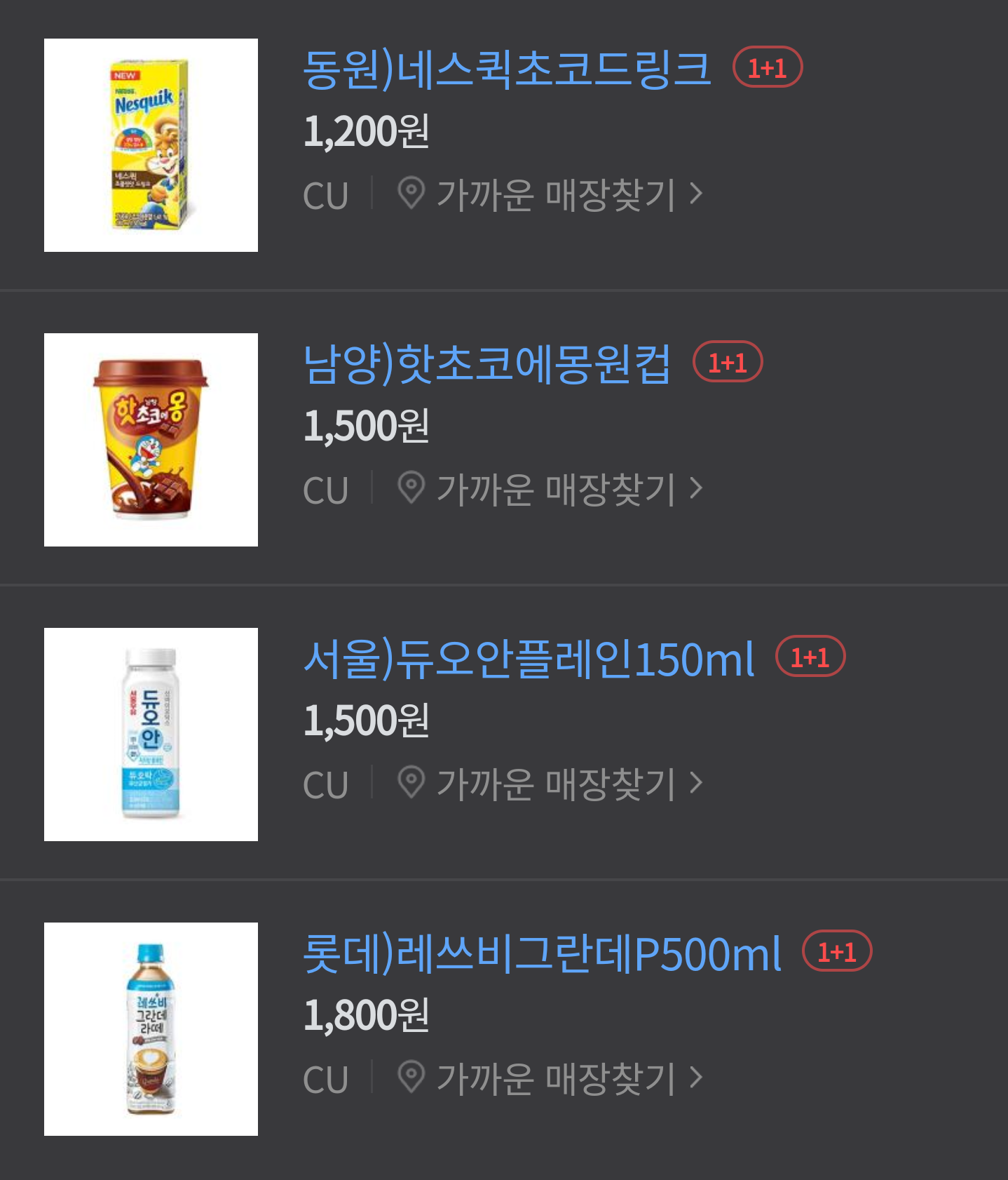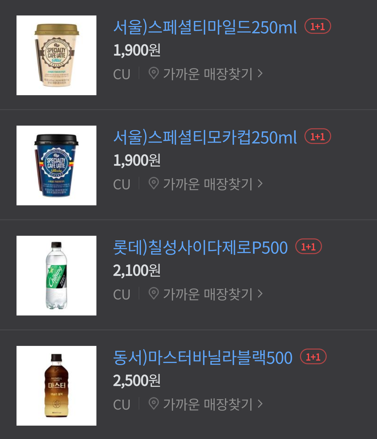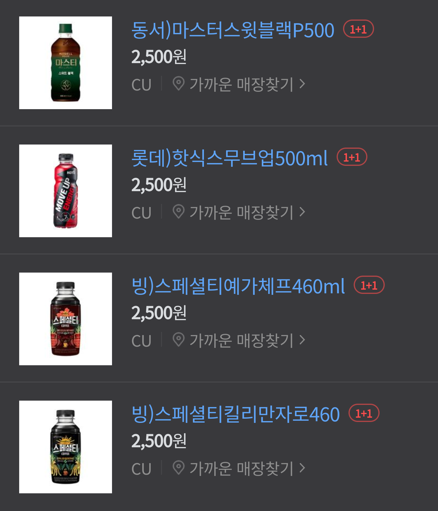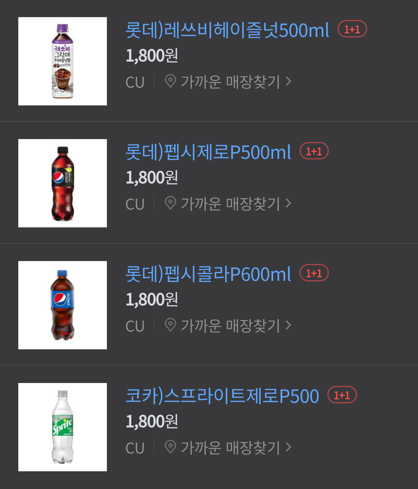더 많은 1+1 상품(음료, 간식 종류만)은 아래 더보기 클릭