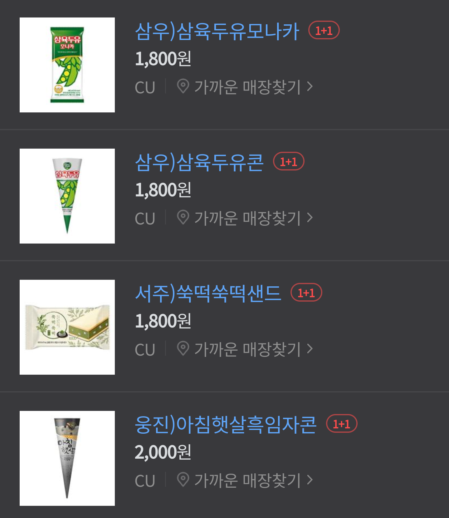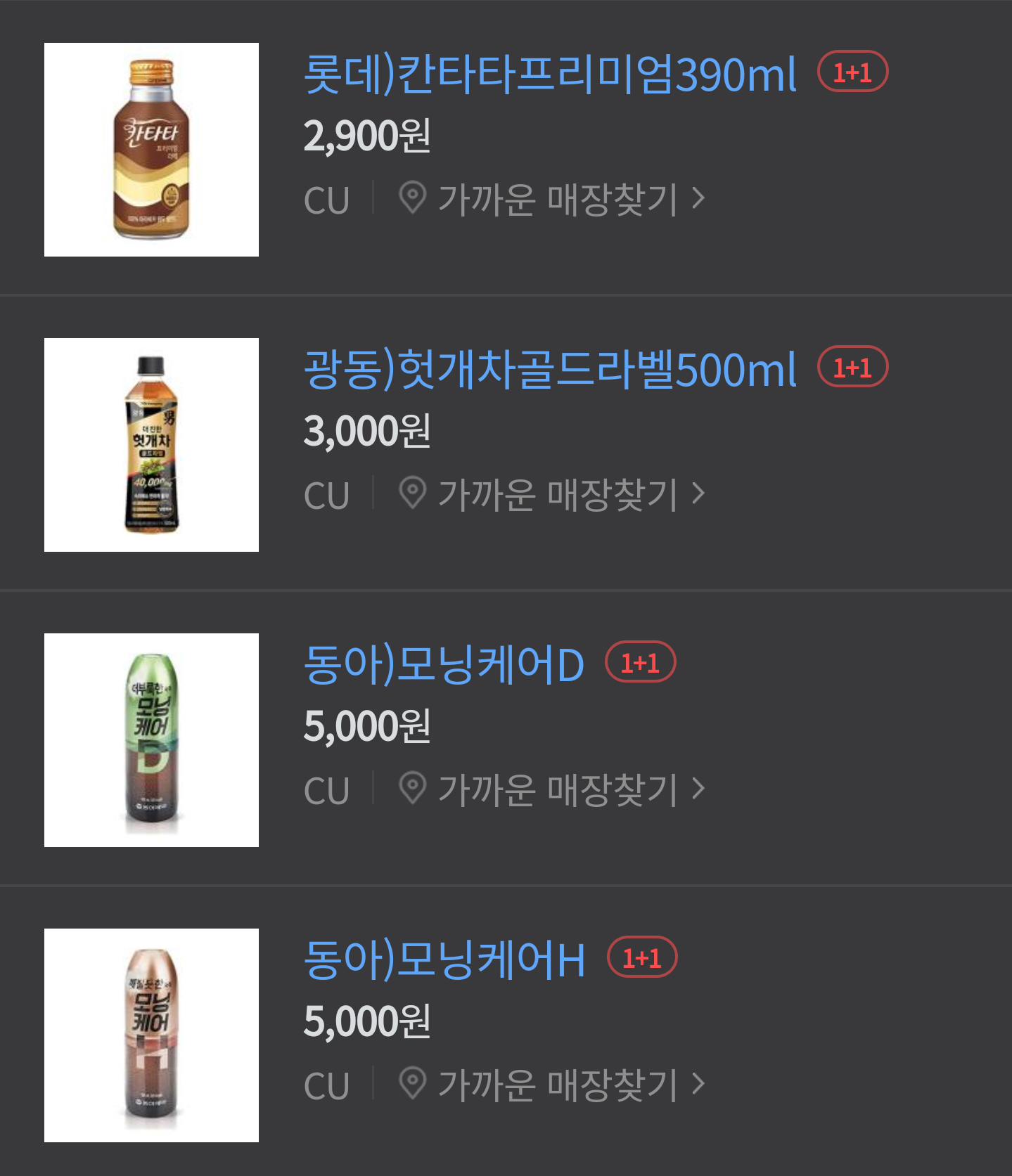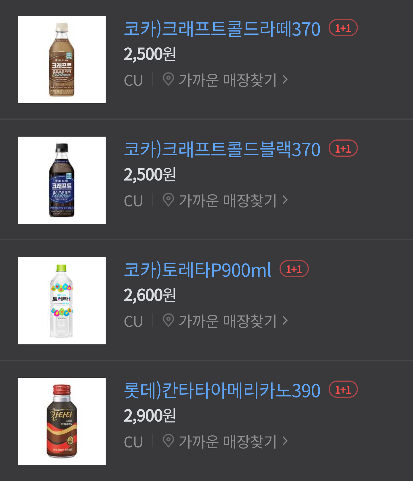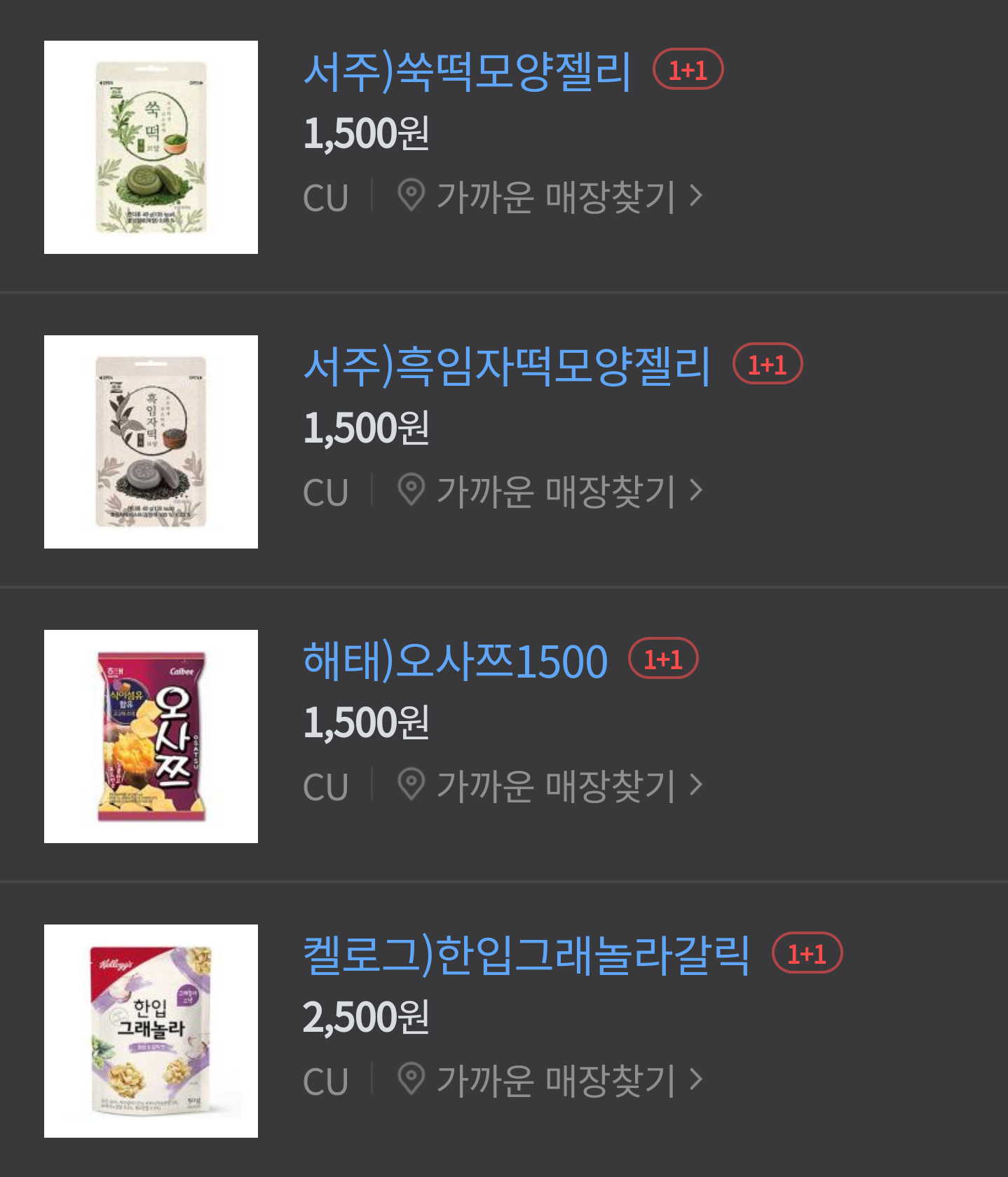 더 많은 1+1 상품(음료, 간식 종류만)은 아래 더보기 클릭