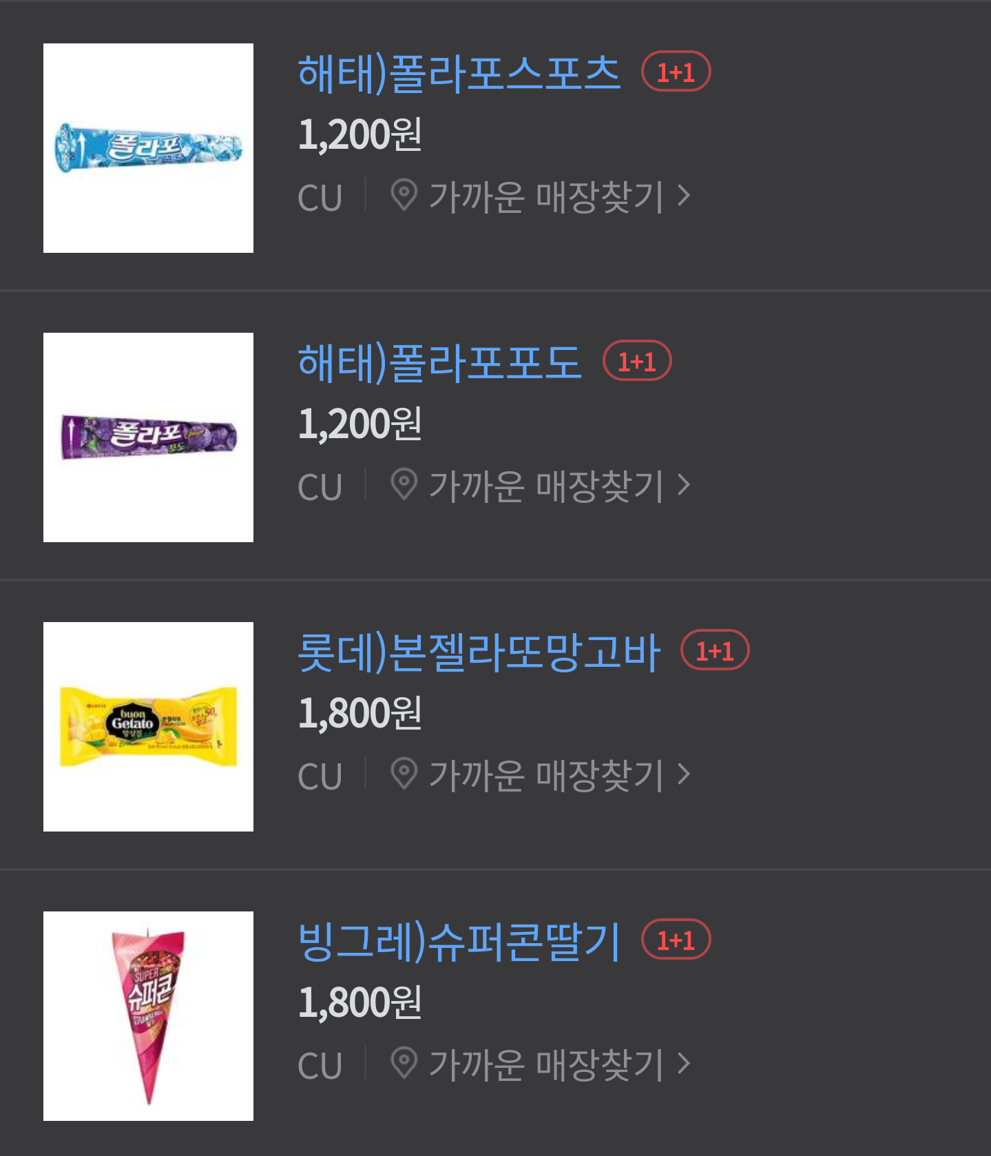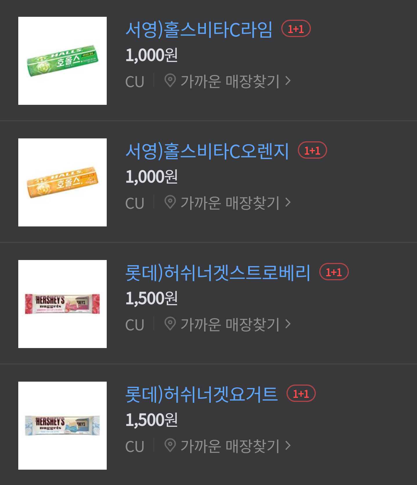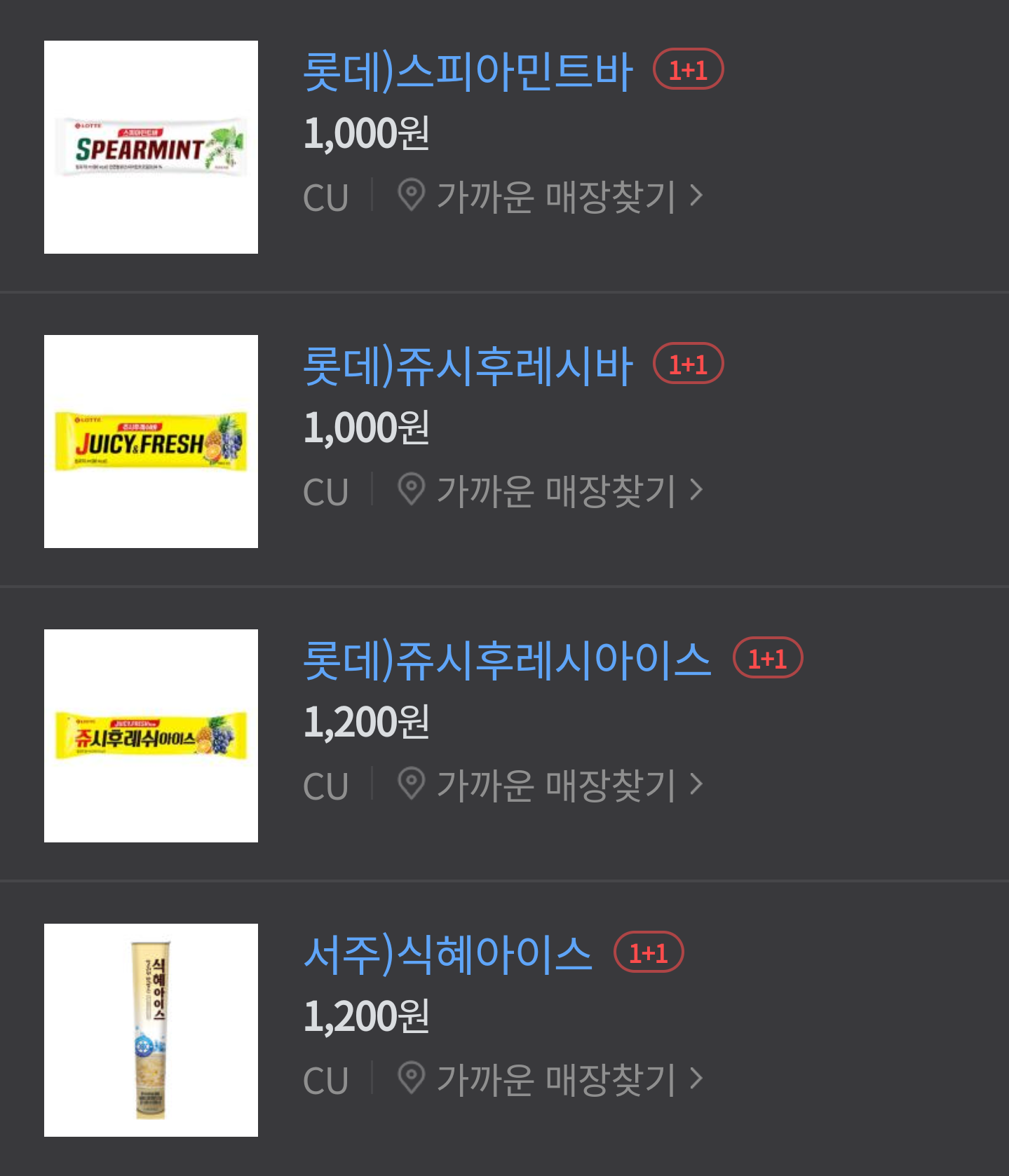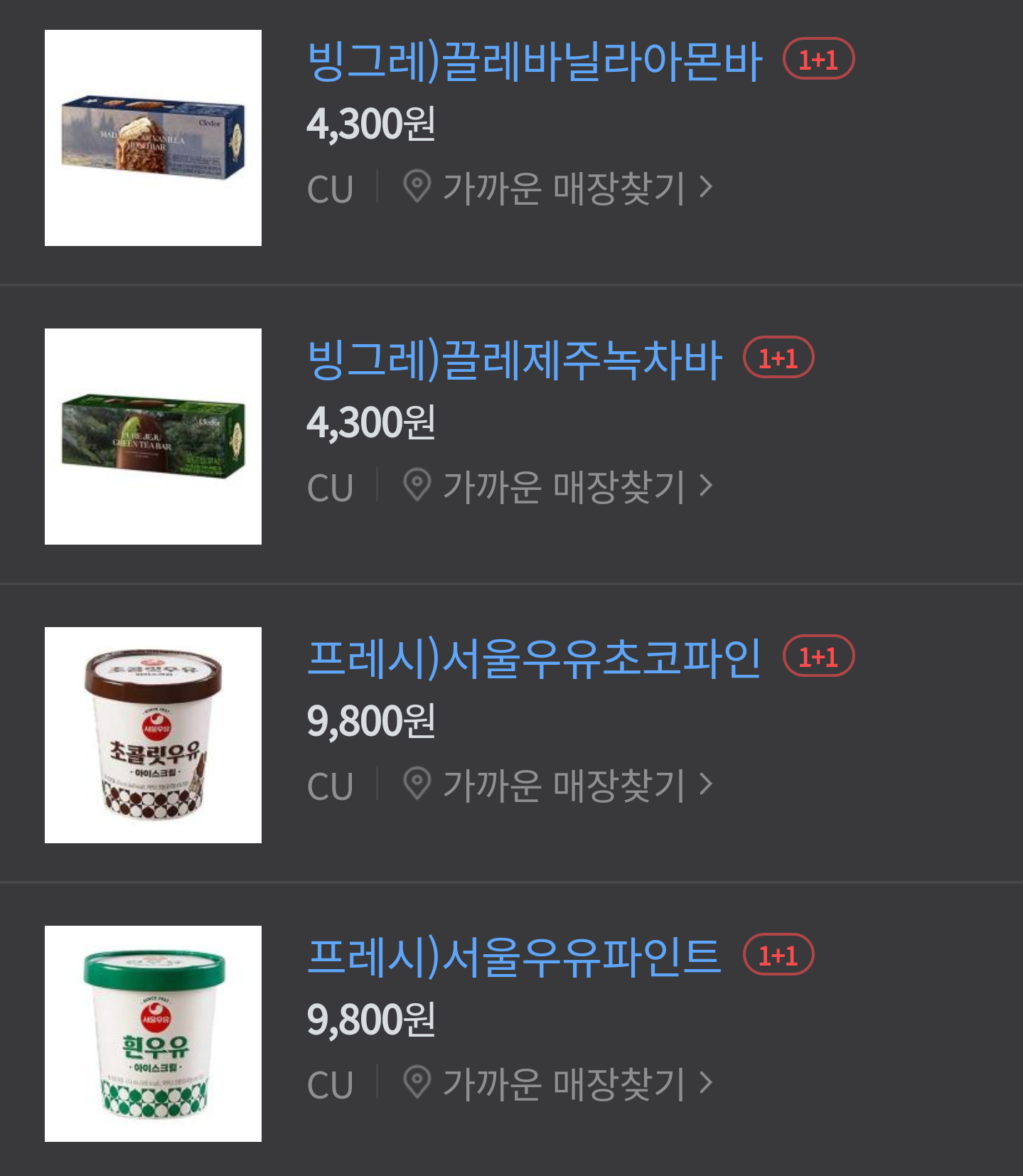 더 많은 1+1 상품(음료, 간식 종류만)은 아래 더보기 클릭