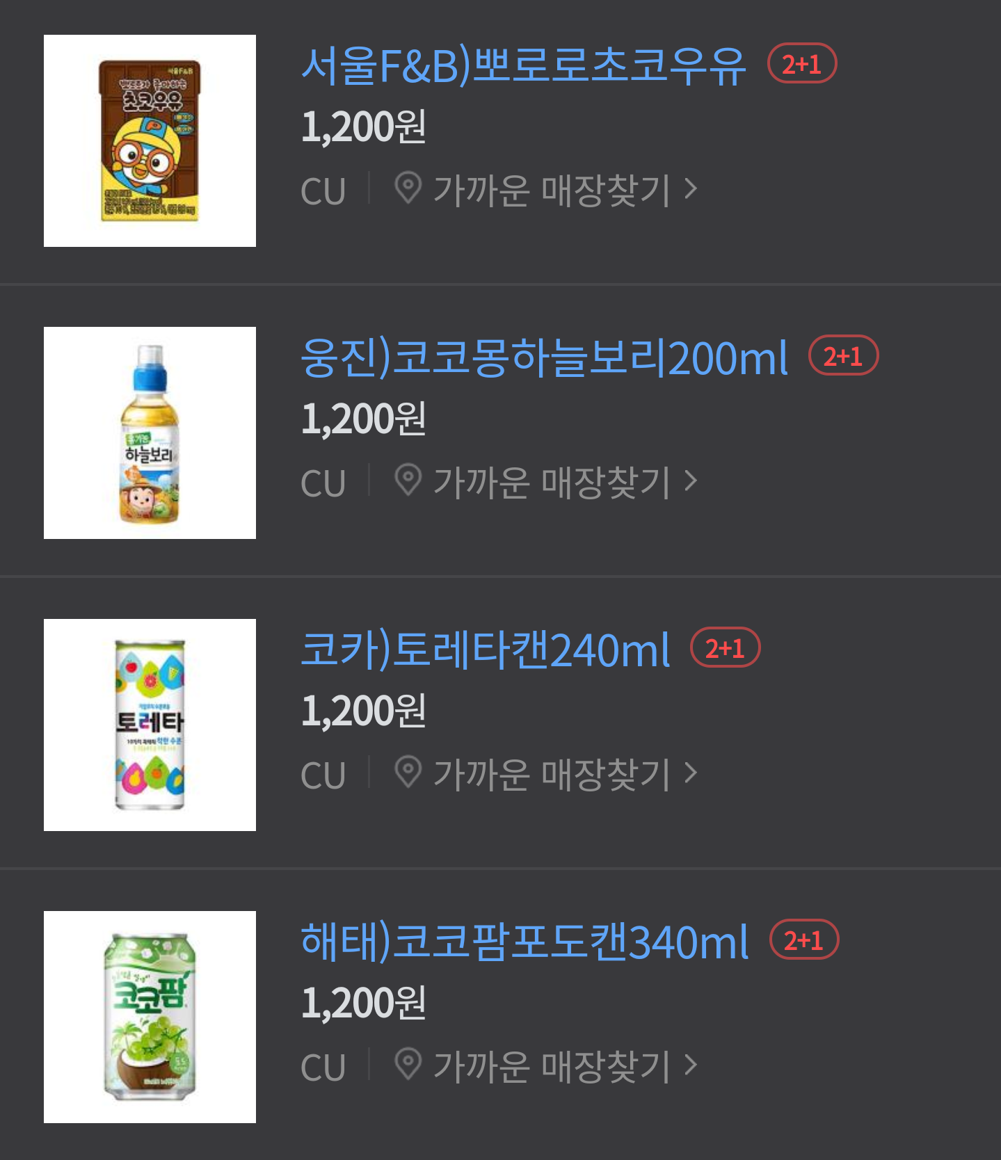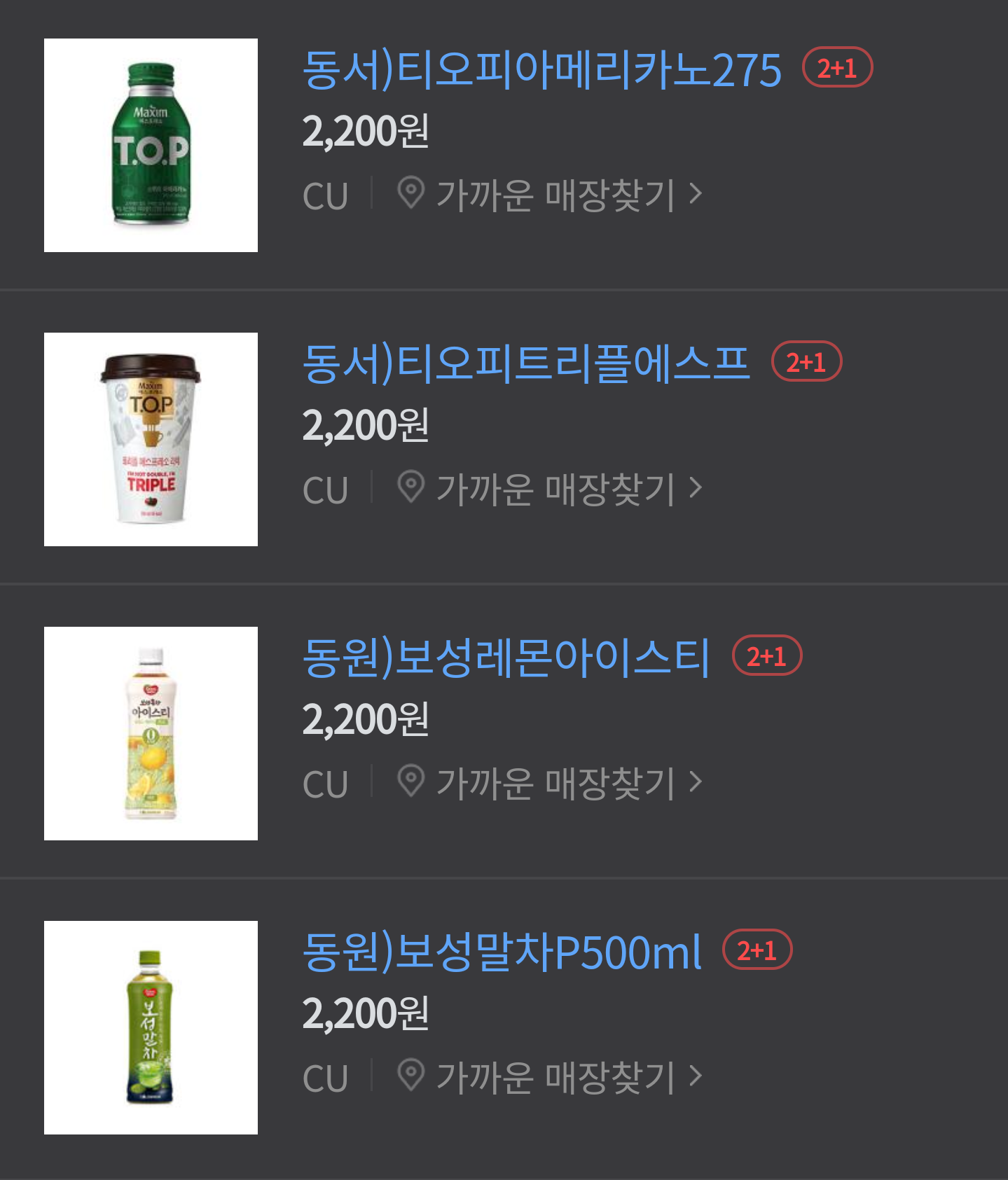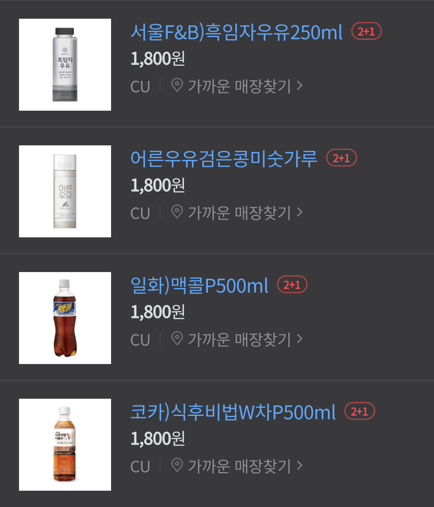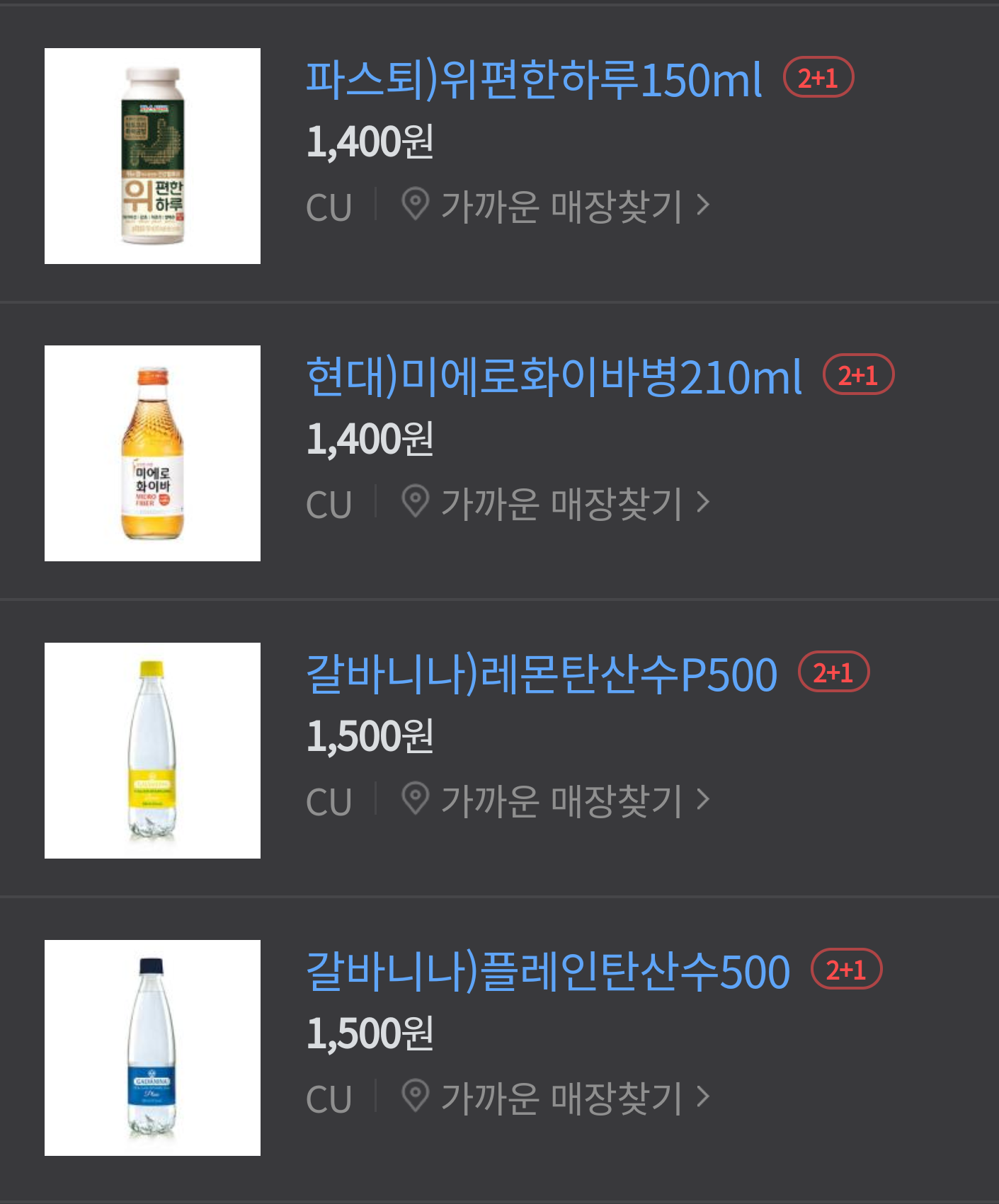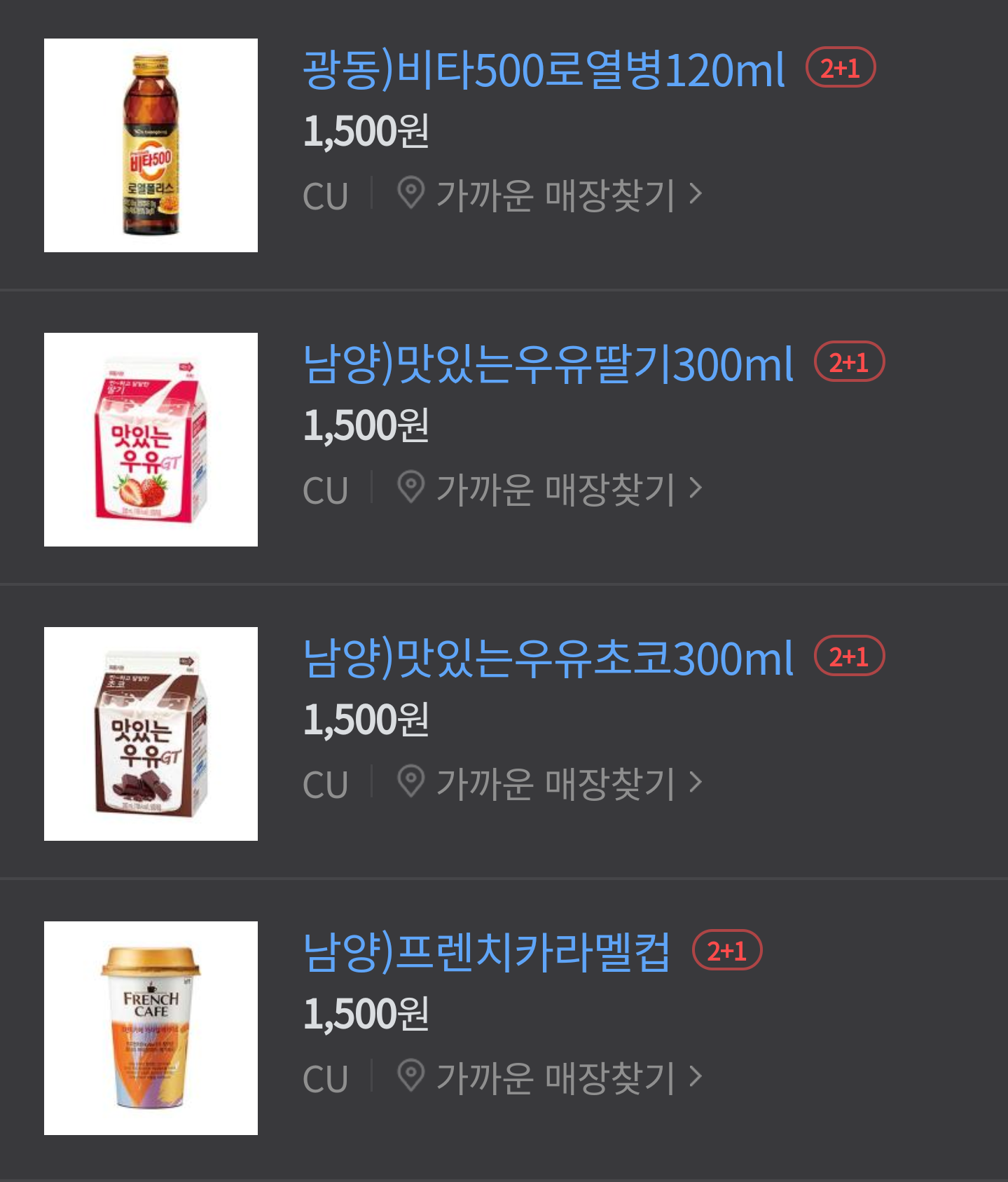 더 많은 2+1 상품(음료, 간식 종류만)은 아래 더보기 클릭