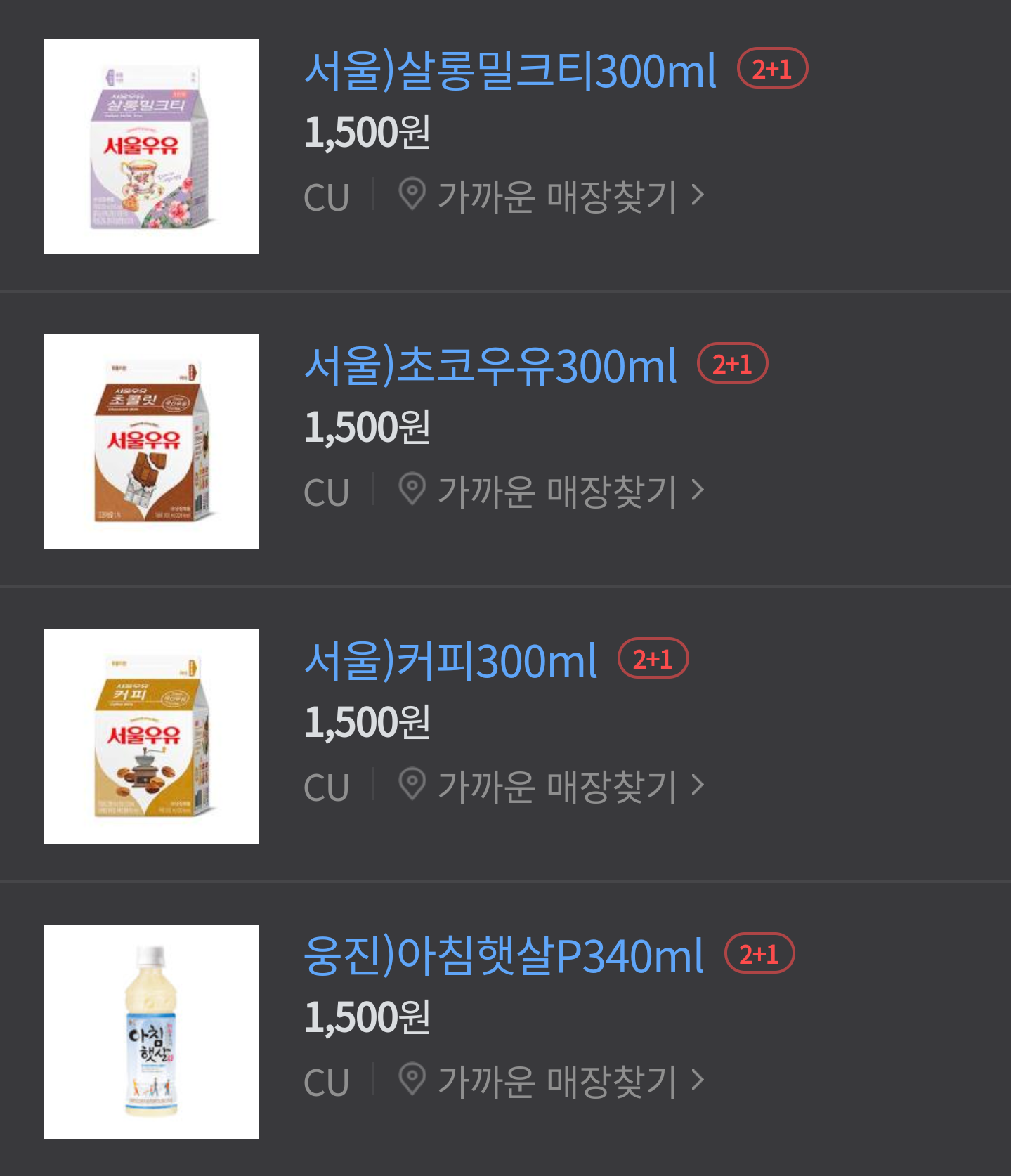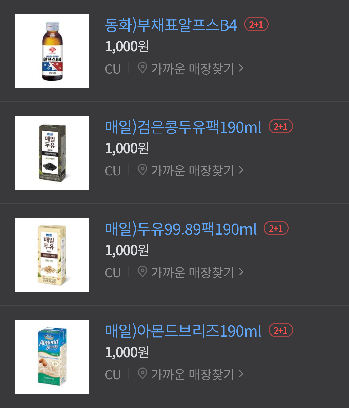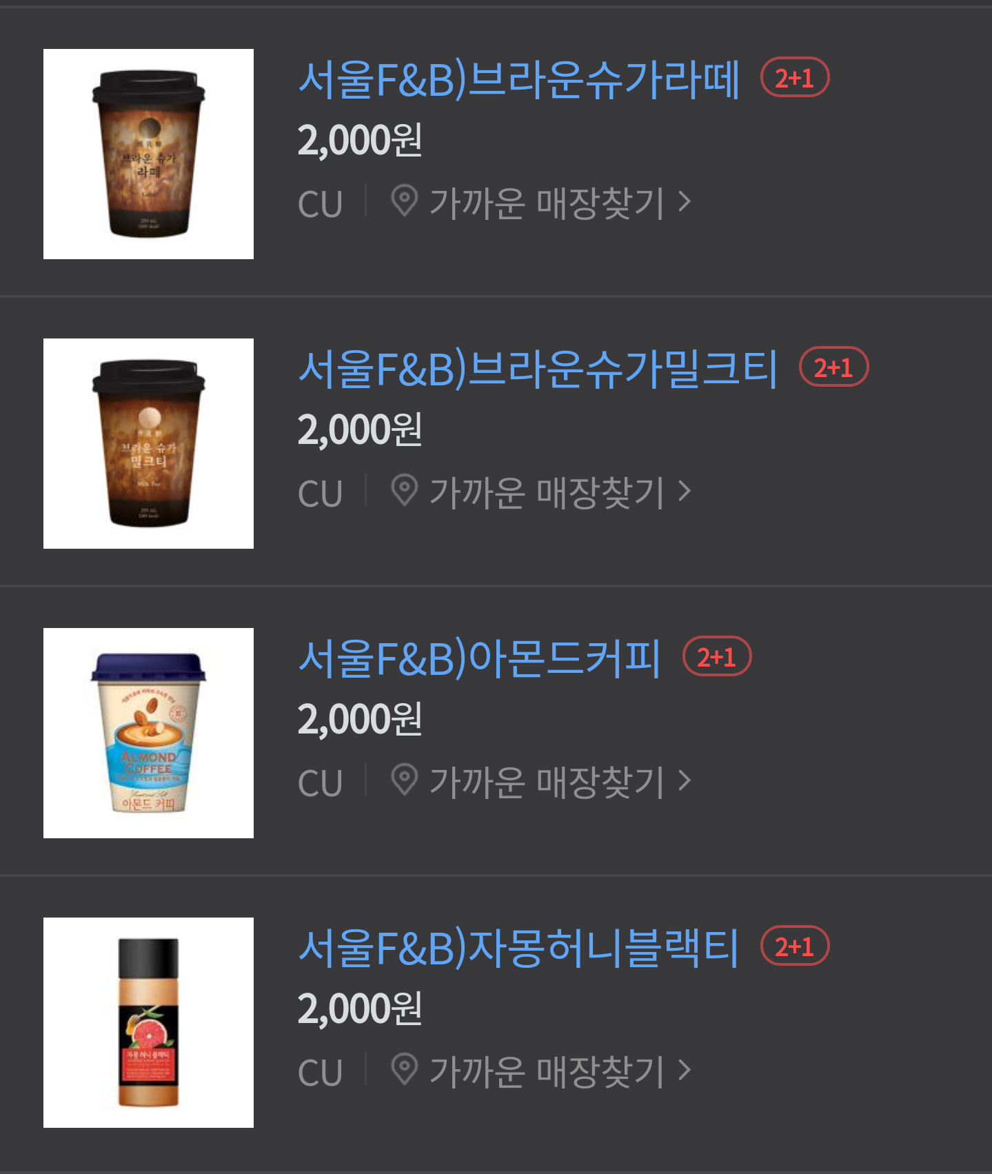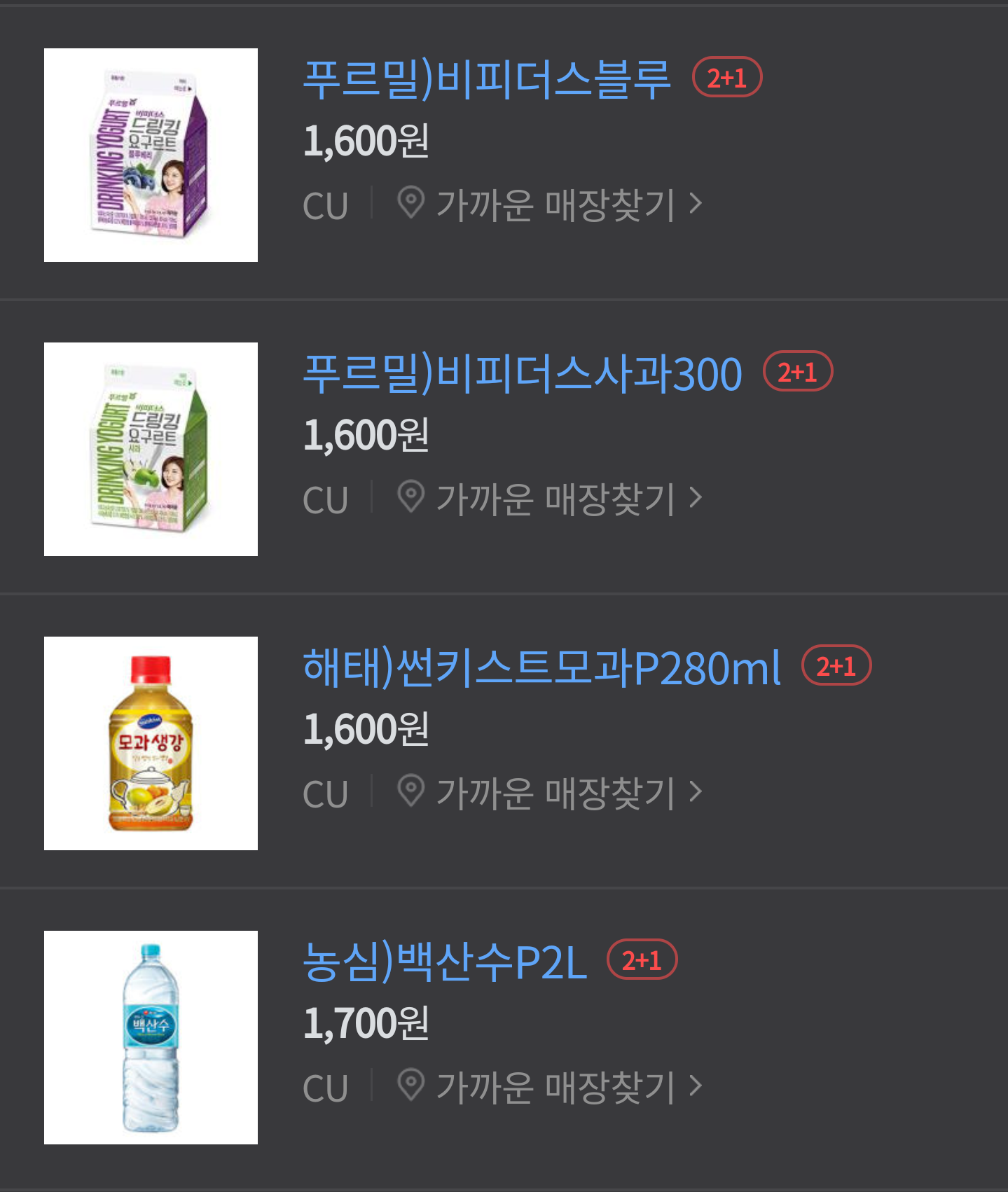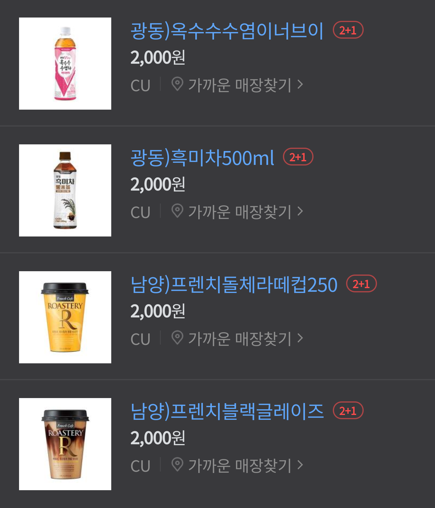 더 많은 2+1 상품(음료, 간식 종류만)은 아래 더보기 클릭
