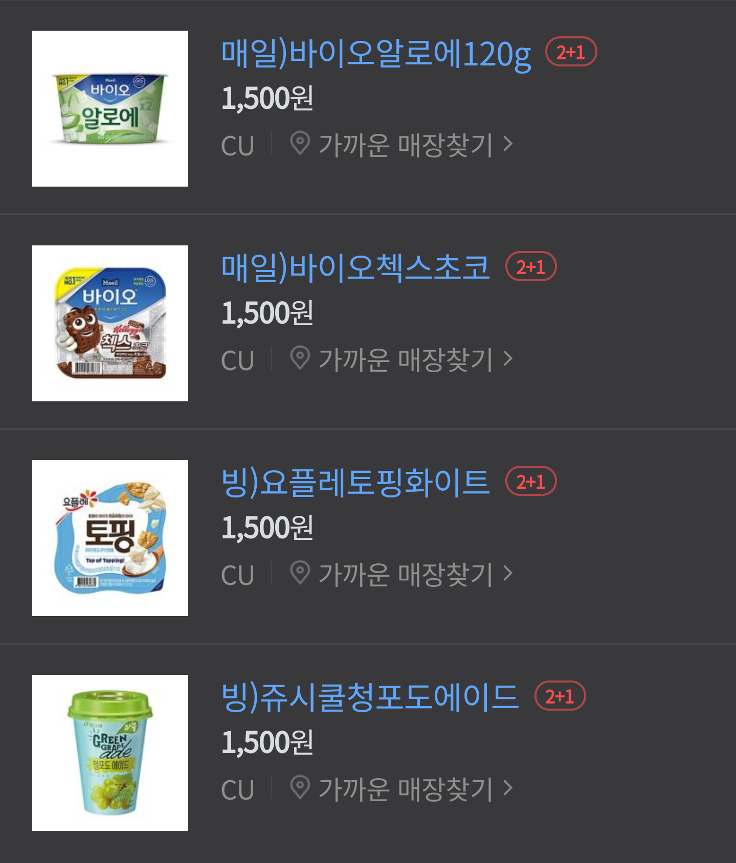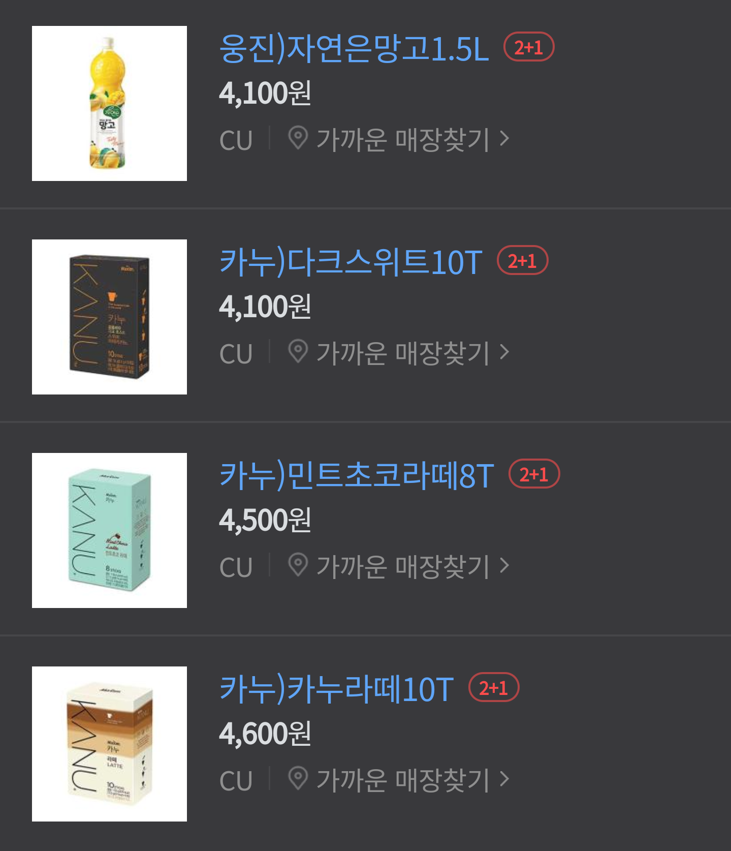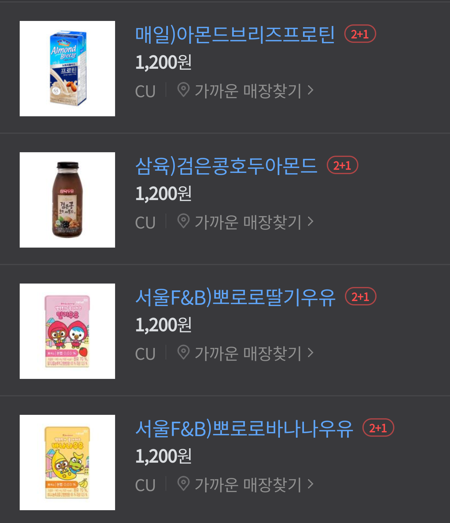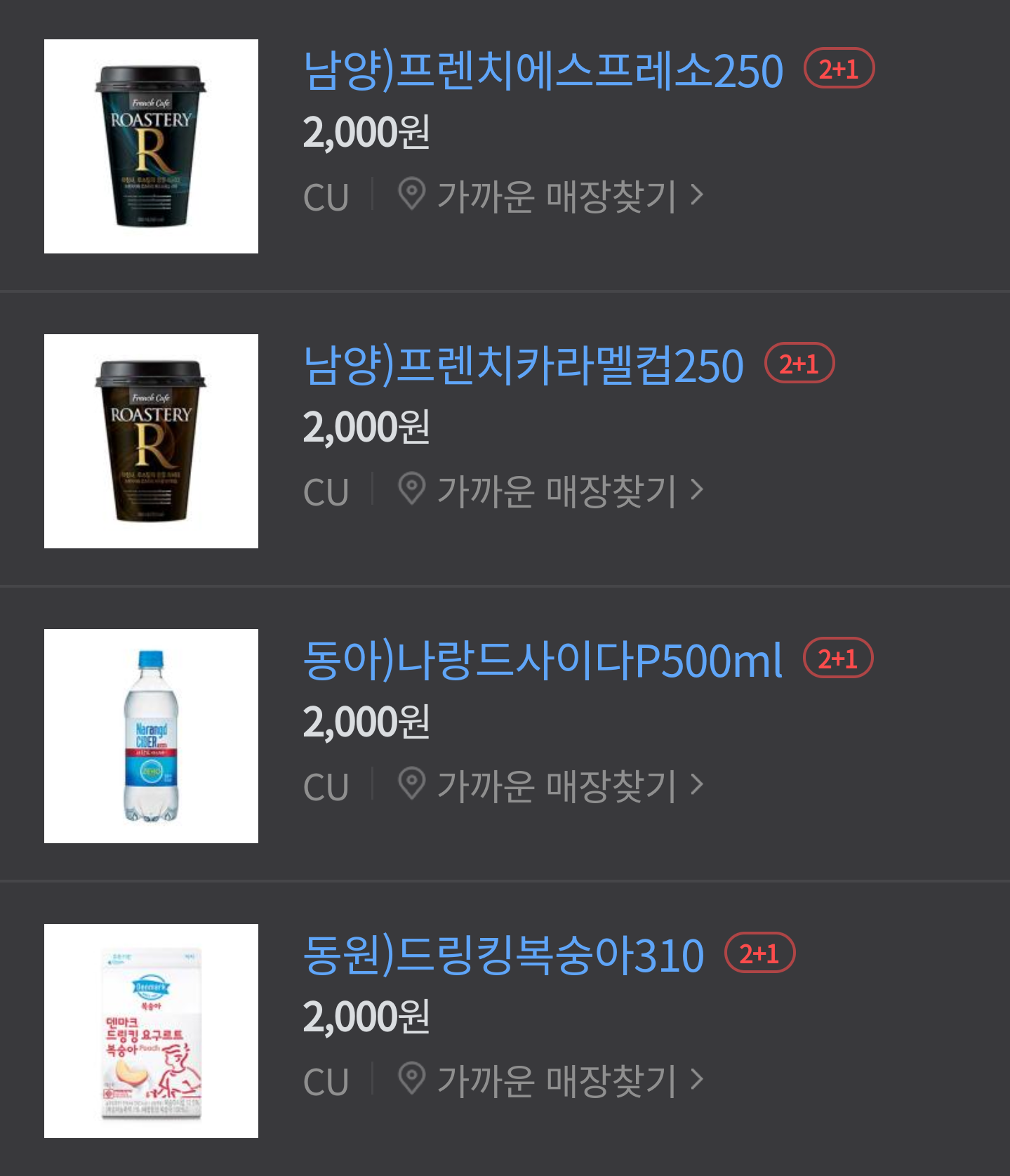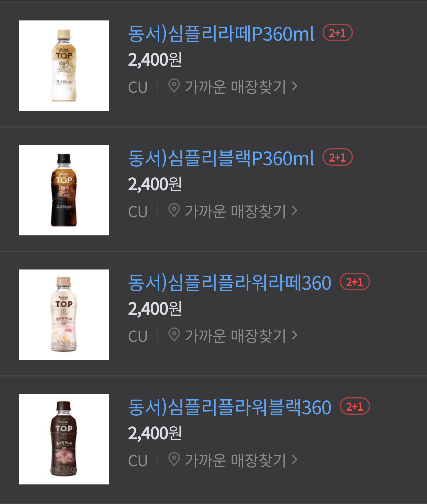 더 많은 2+1 상품(음료, 간식 종류만)은 아래 더보기 클릭