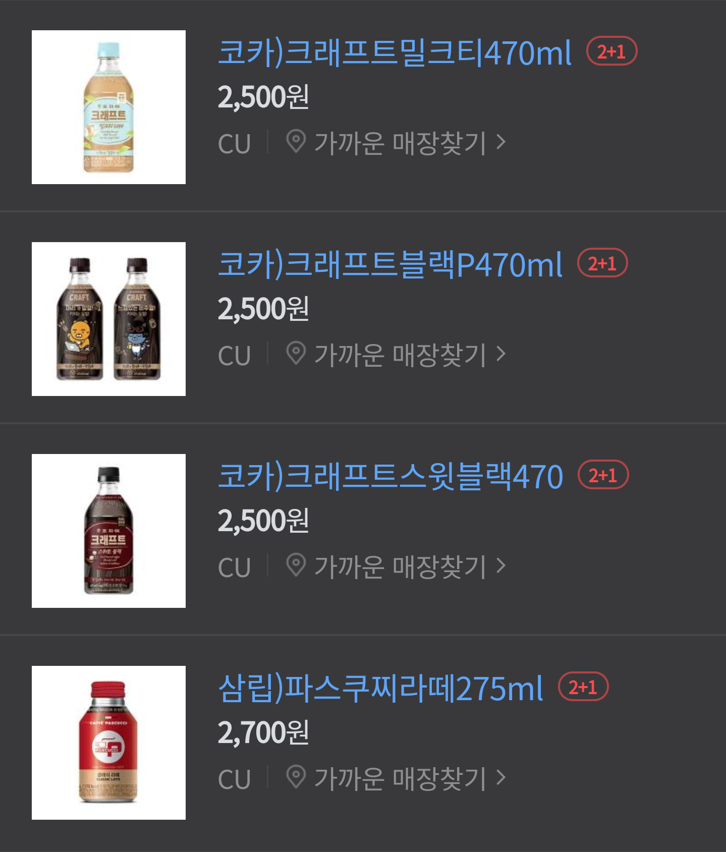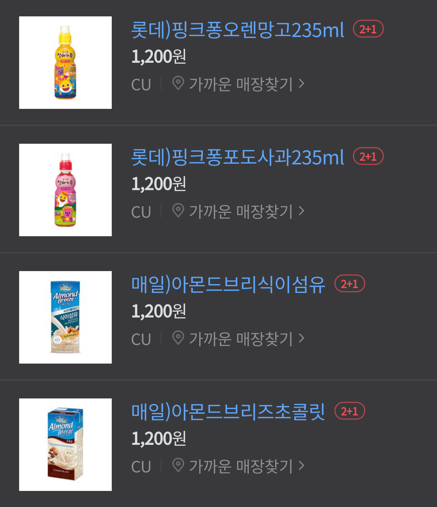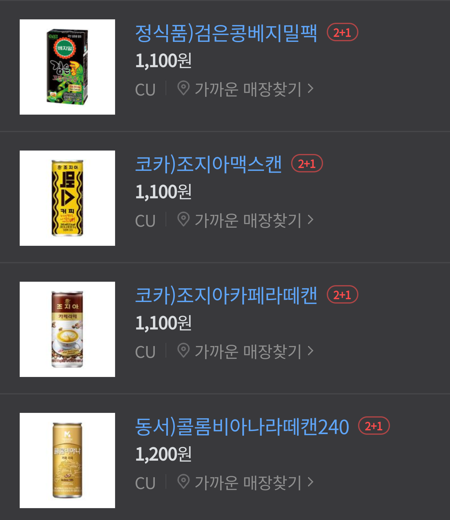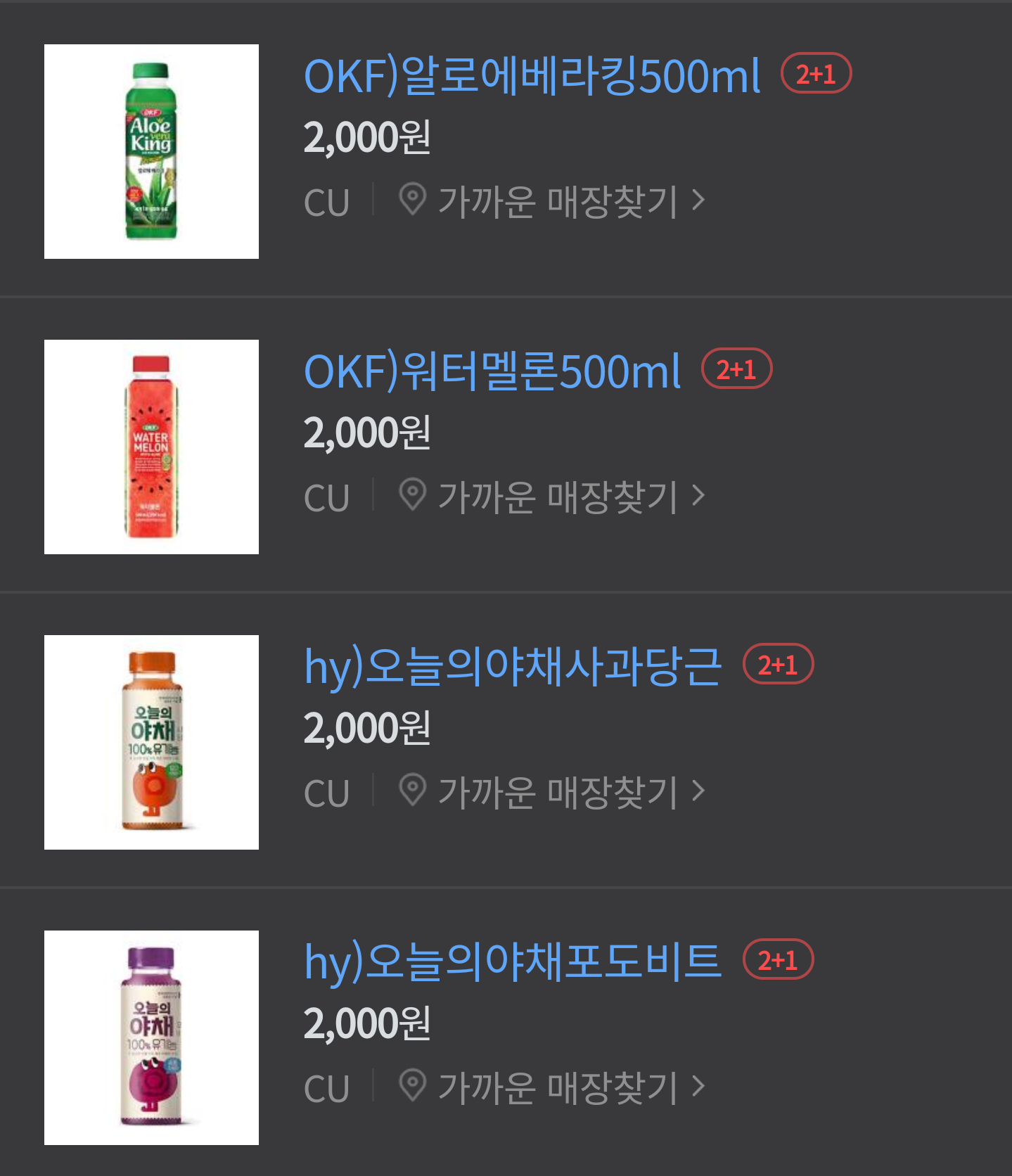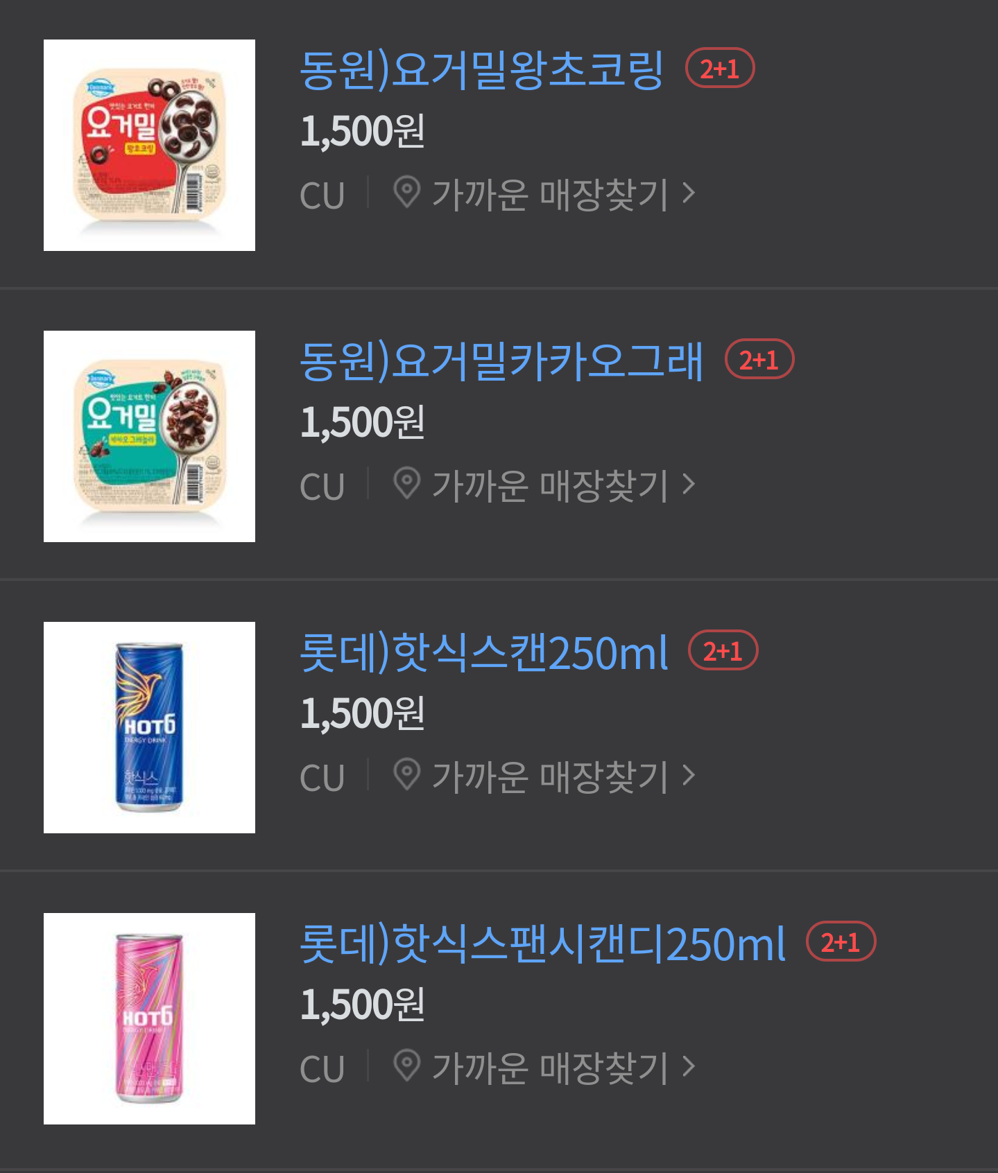 더 많은 2+1 상품(음료, 간식 종류만)은 아래 더보기 클릭
