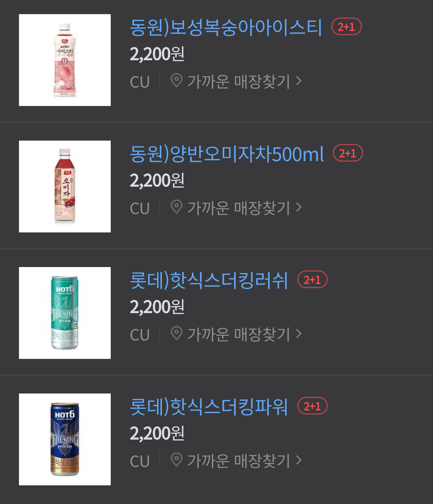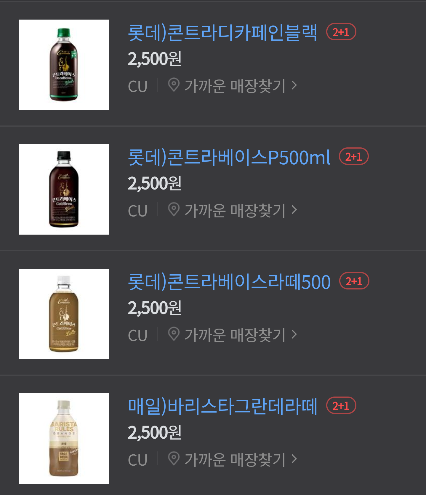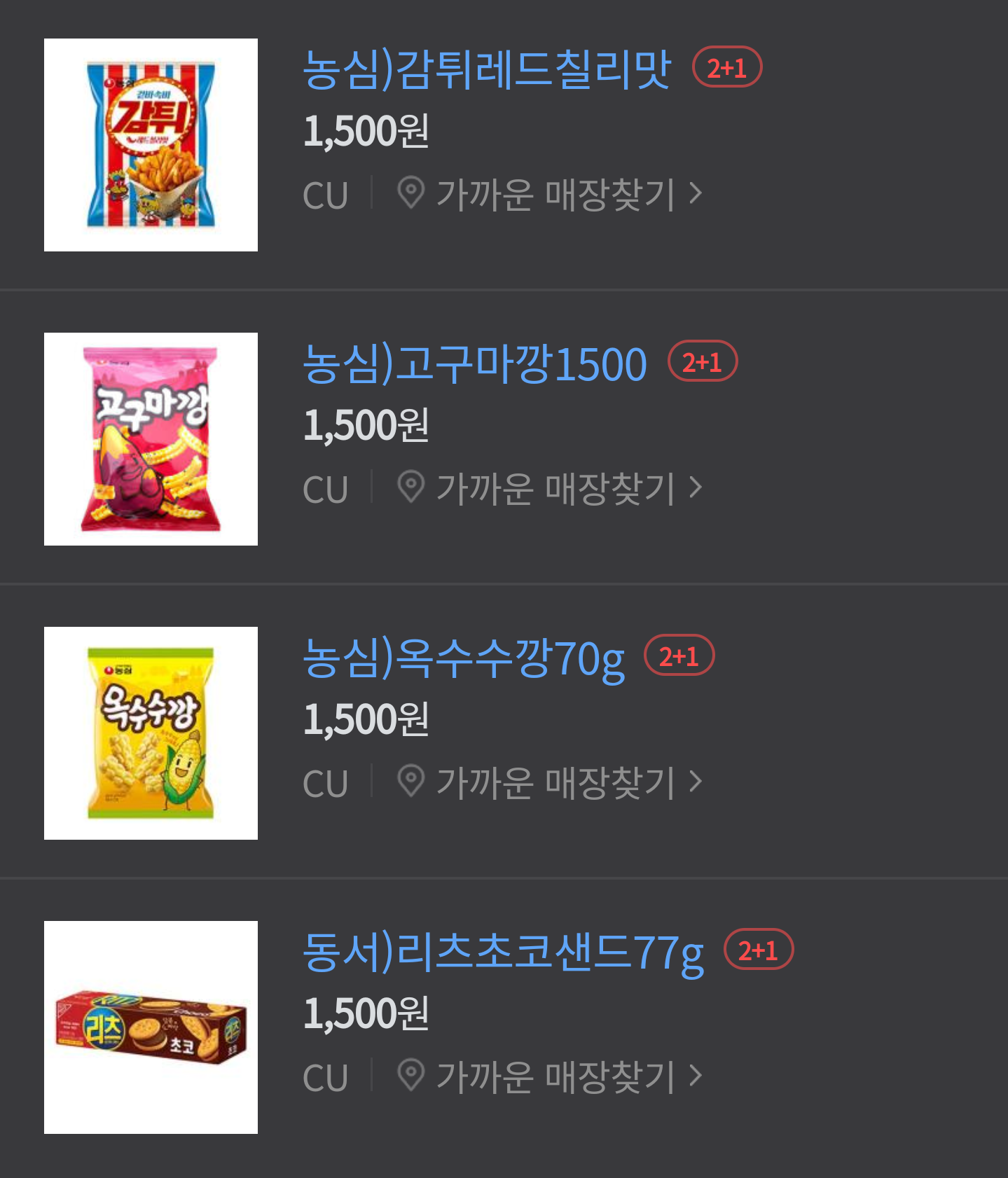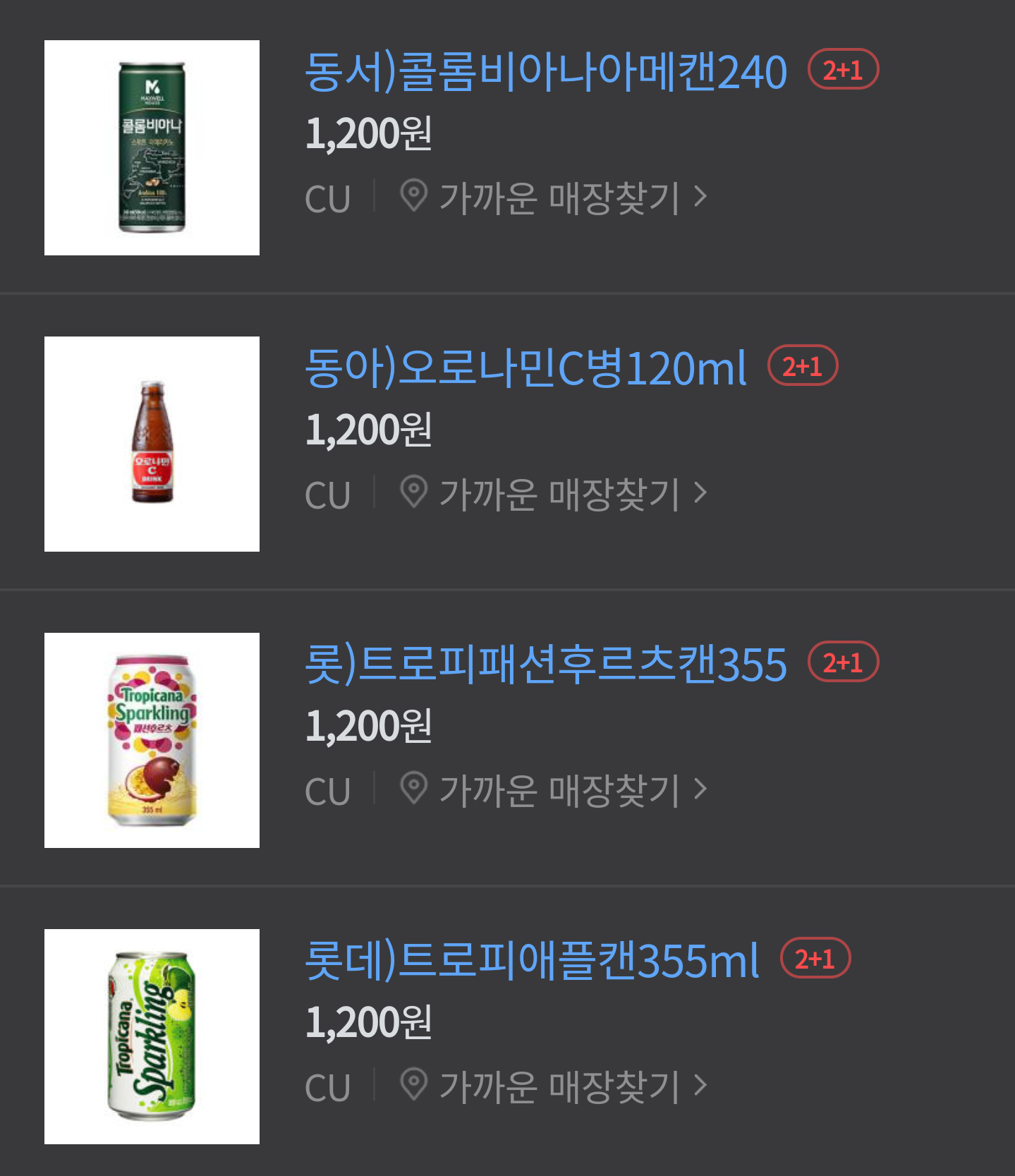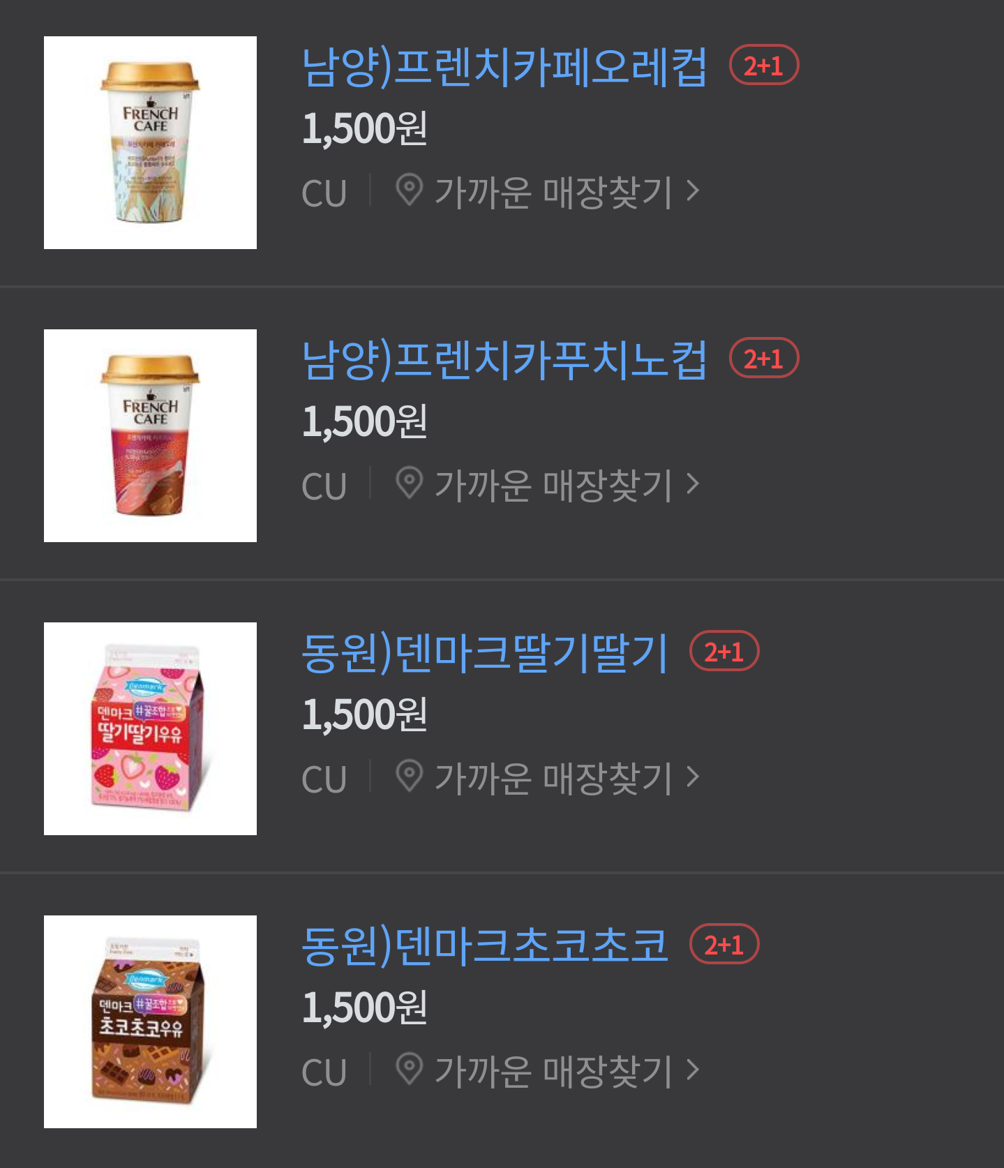 더 많은 2+1 상품(음료, 간식 종류만)은 아래 더보기 클릭