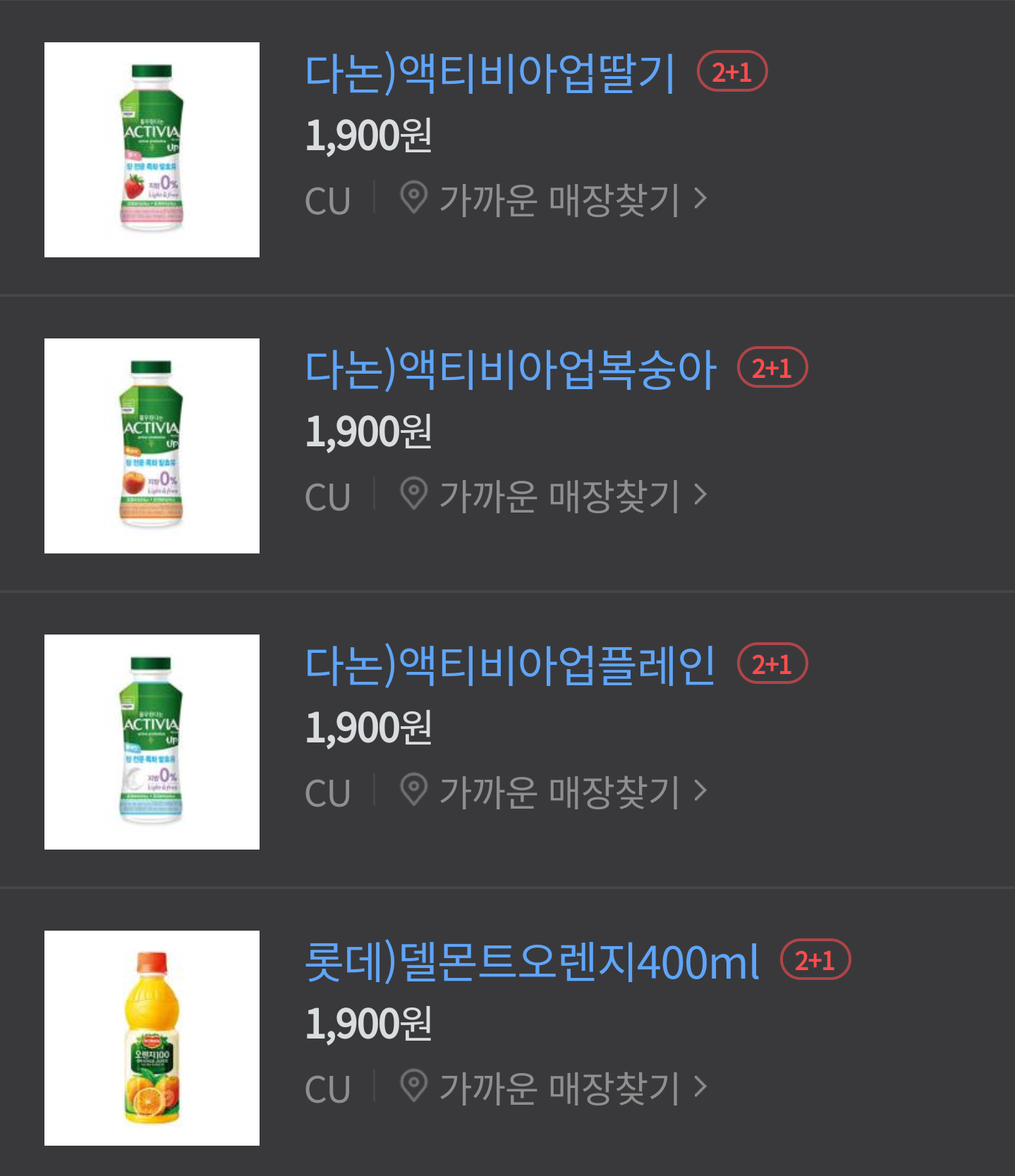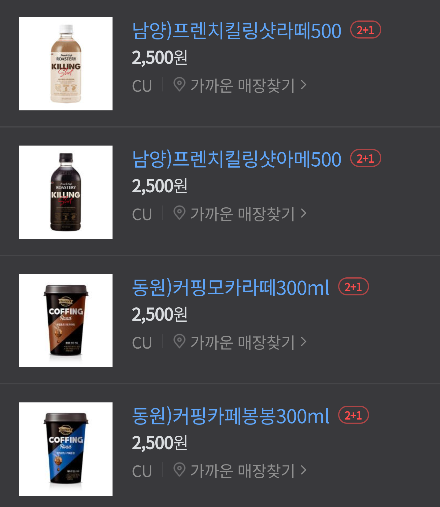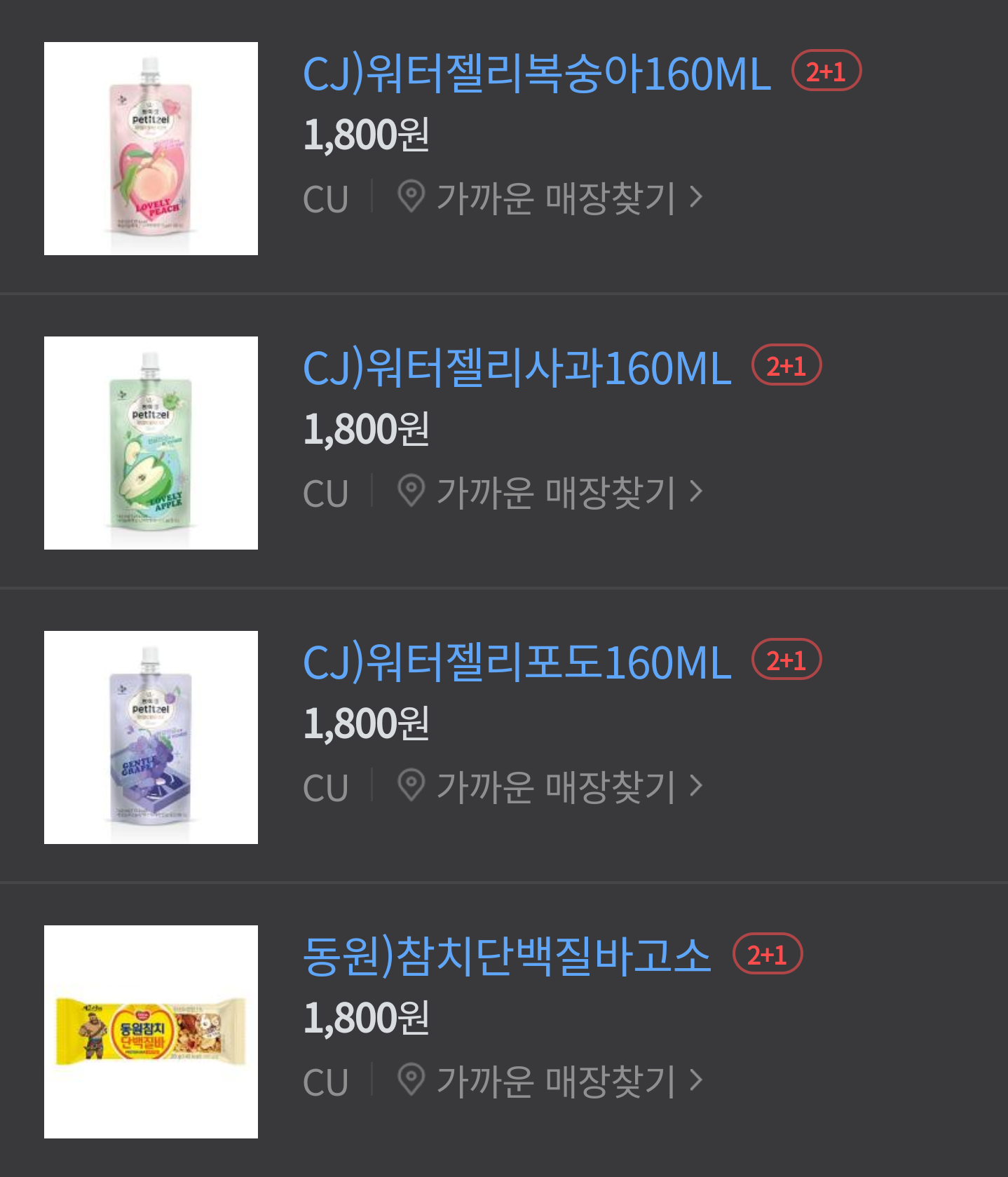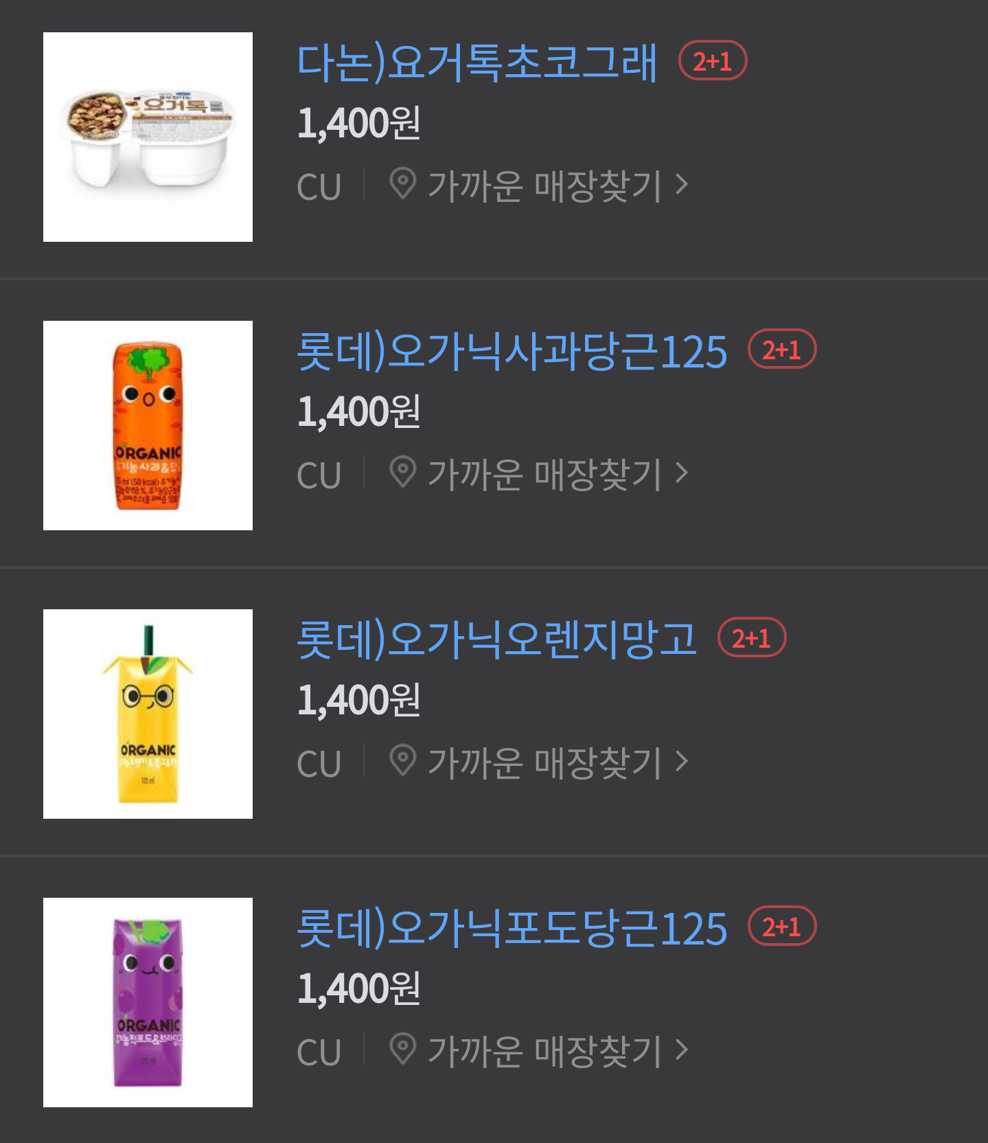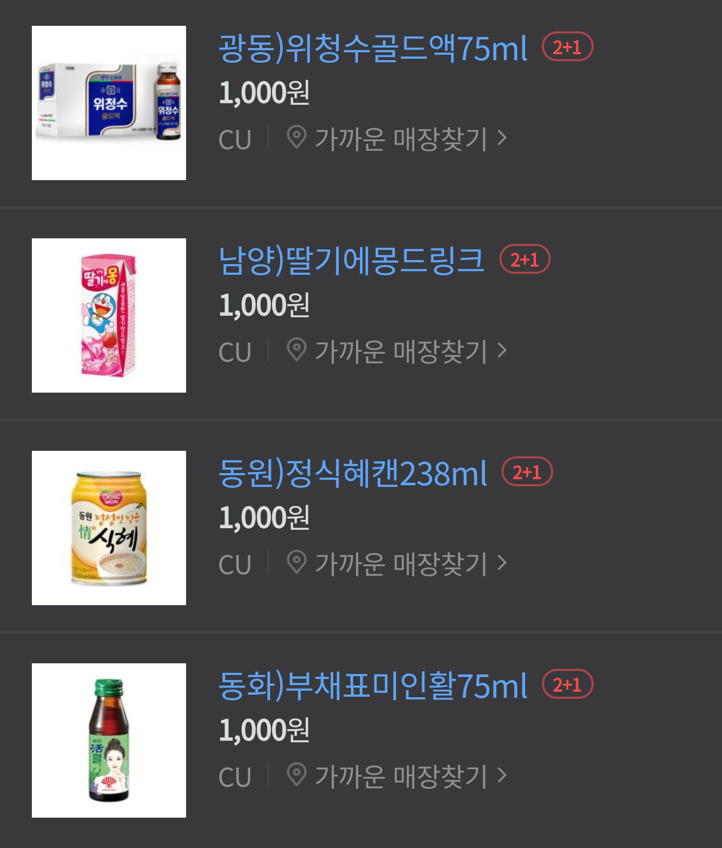 더 많은 2+1 상품(음료, 간식 종류만)은 아래 더보기 클릭