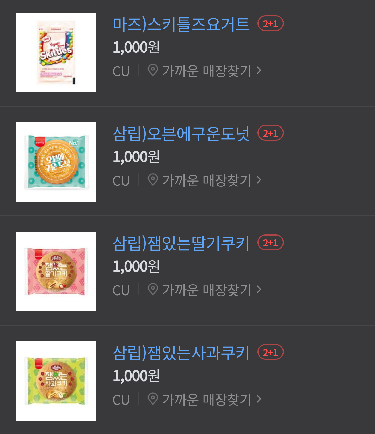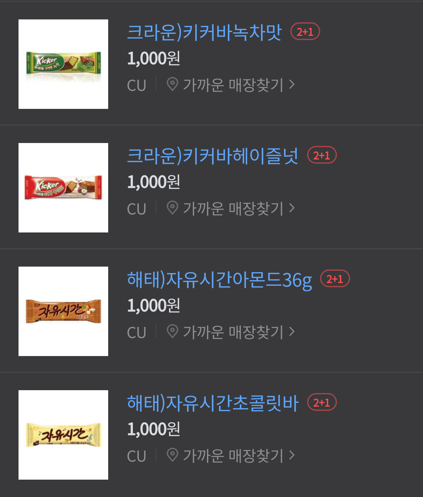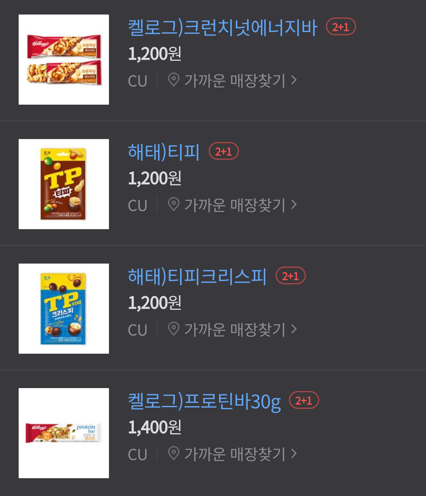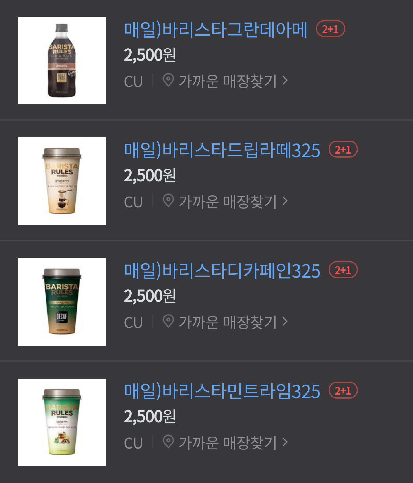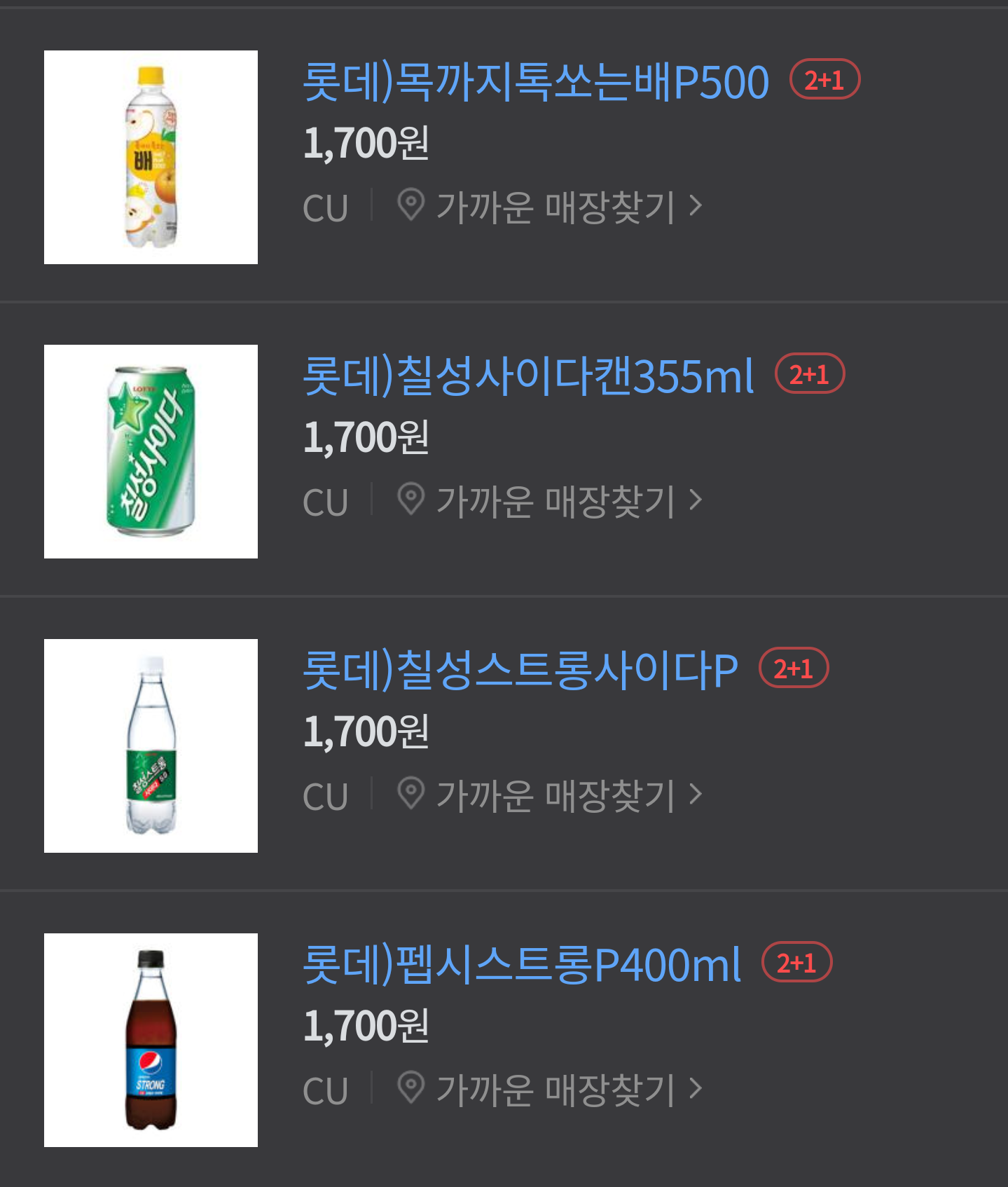 더 많은 2+1 상품(음료, 간식 종류만)은 아래 더보기 클릭