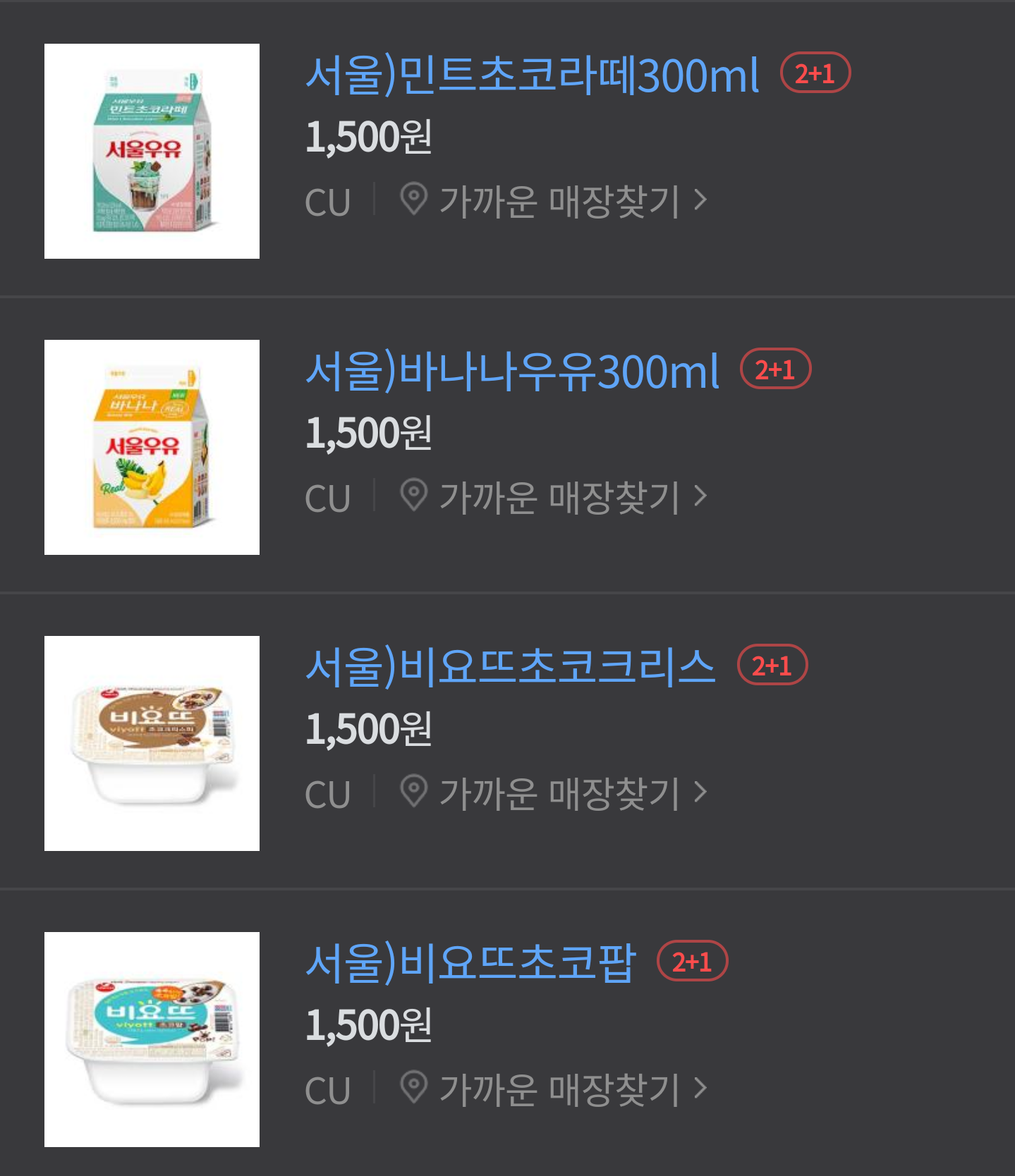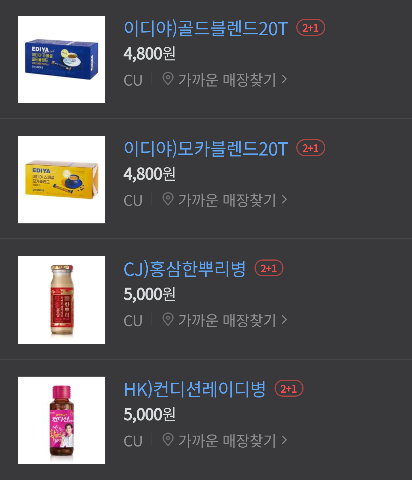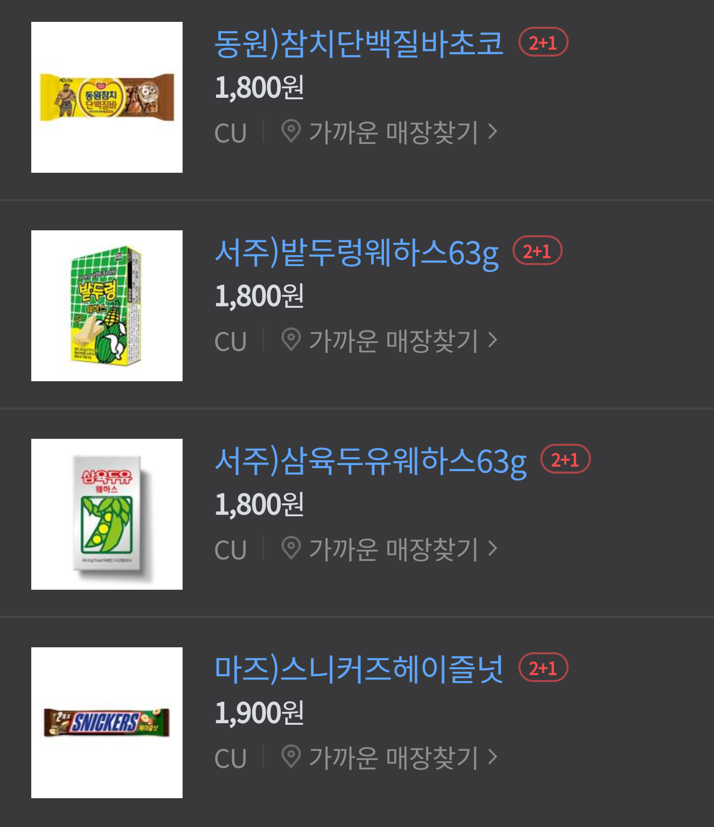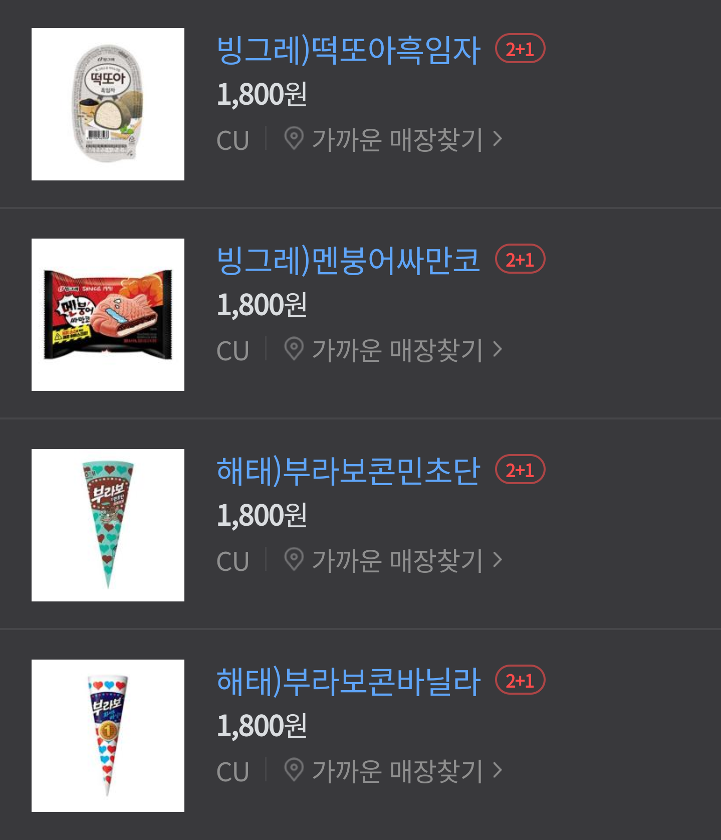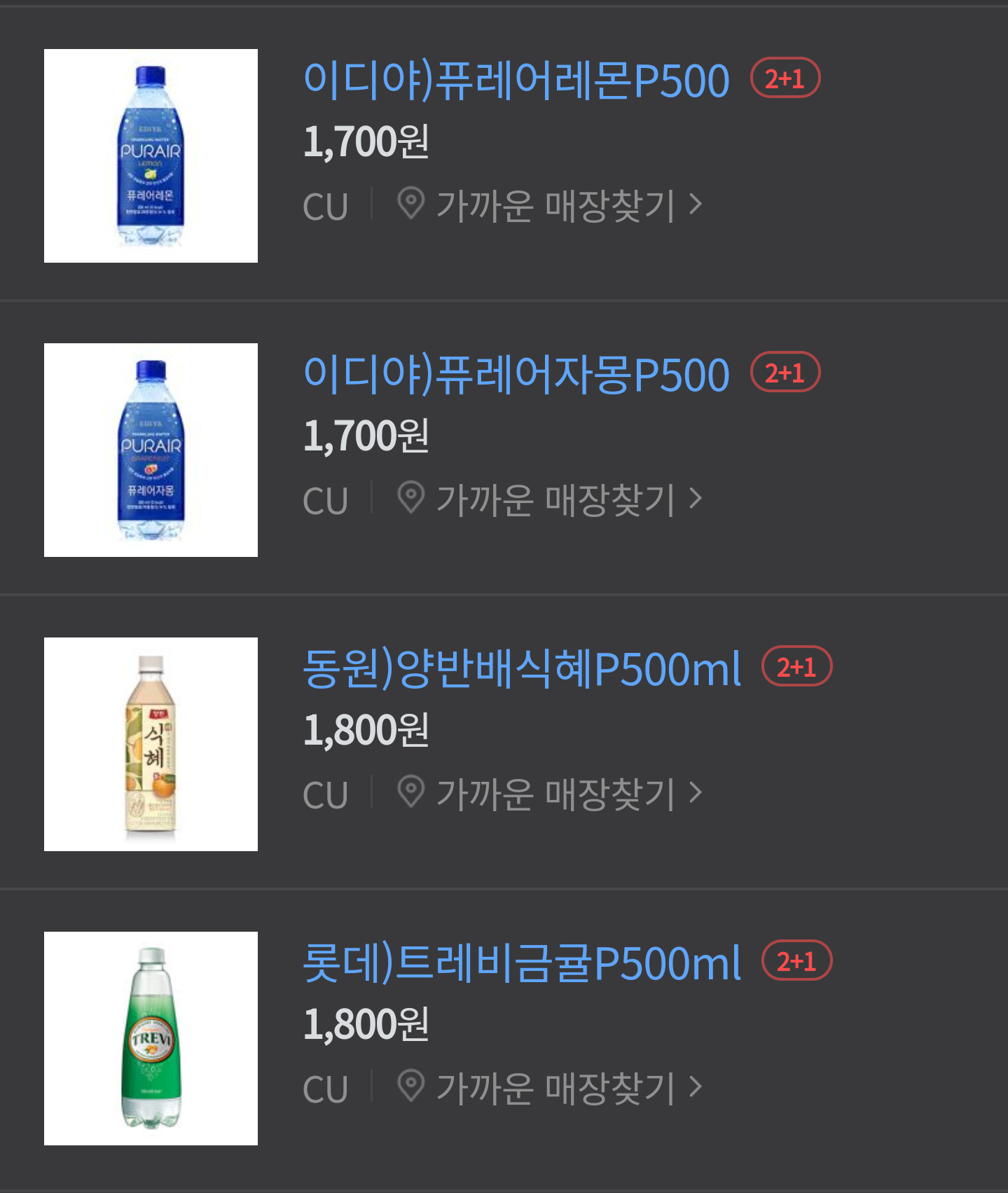 더 많은 2+1 상품(음료, 간식 종류만)은 아래 더보기 클릭