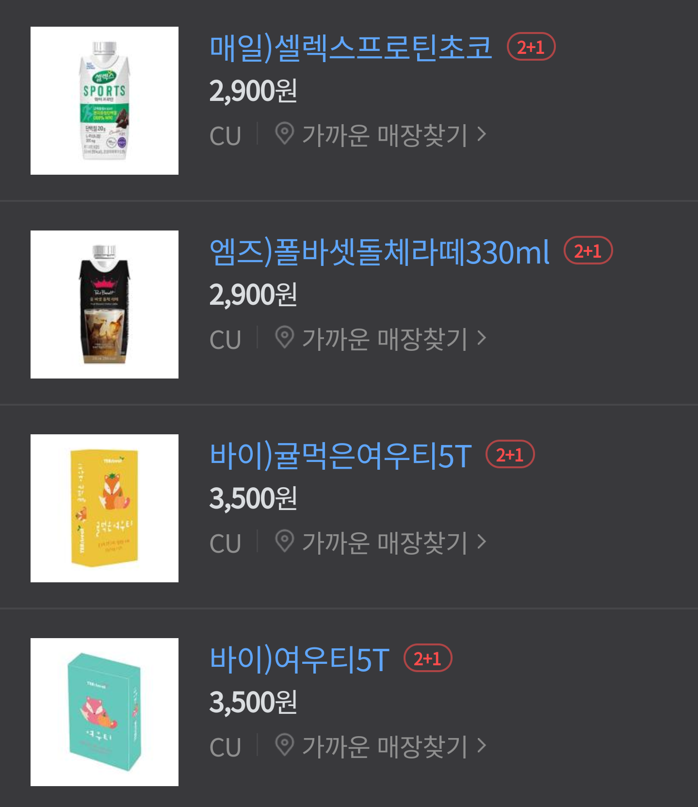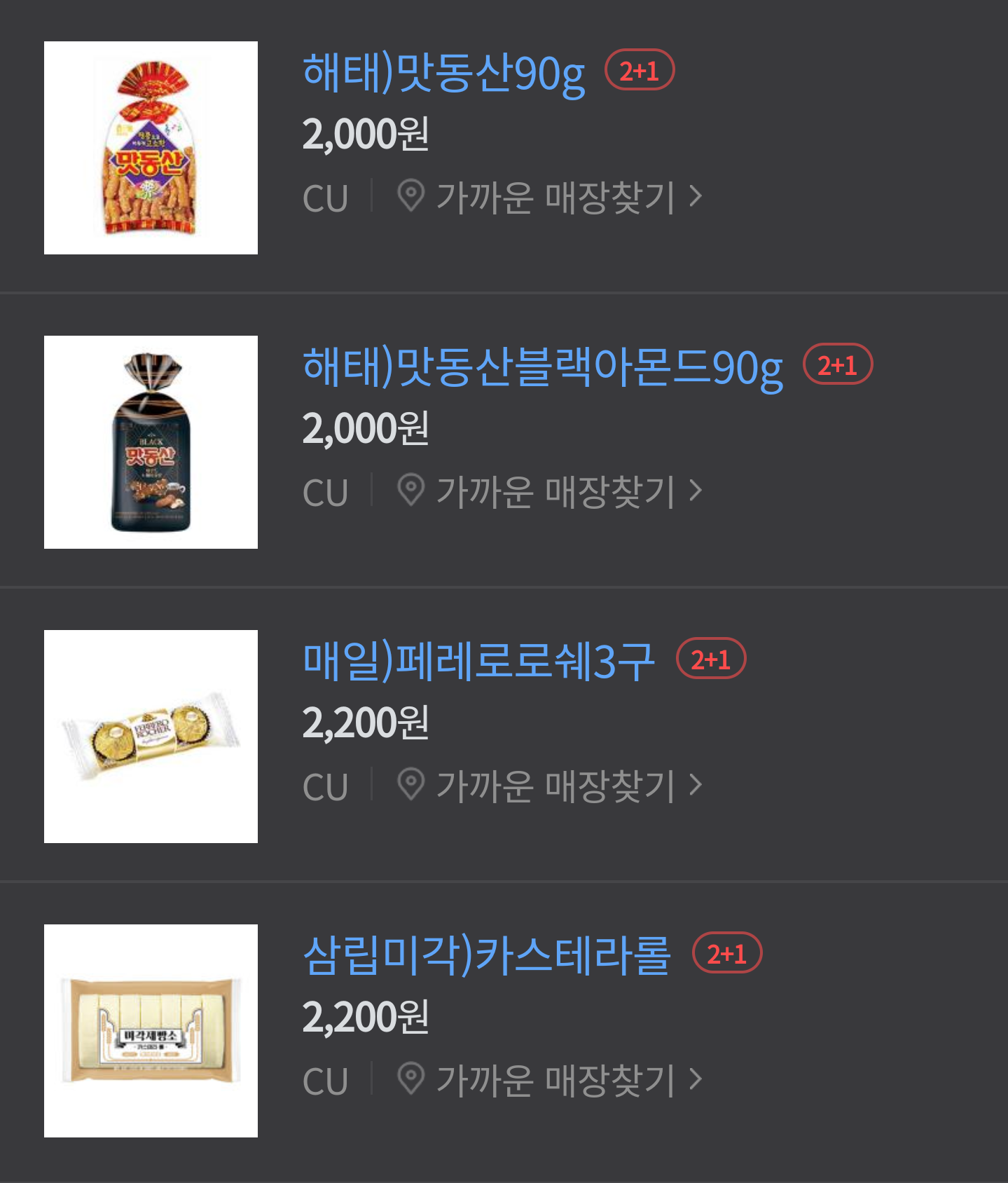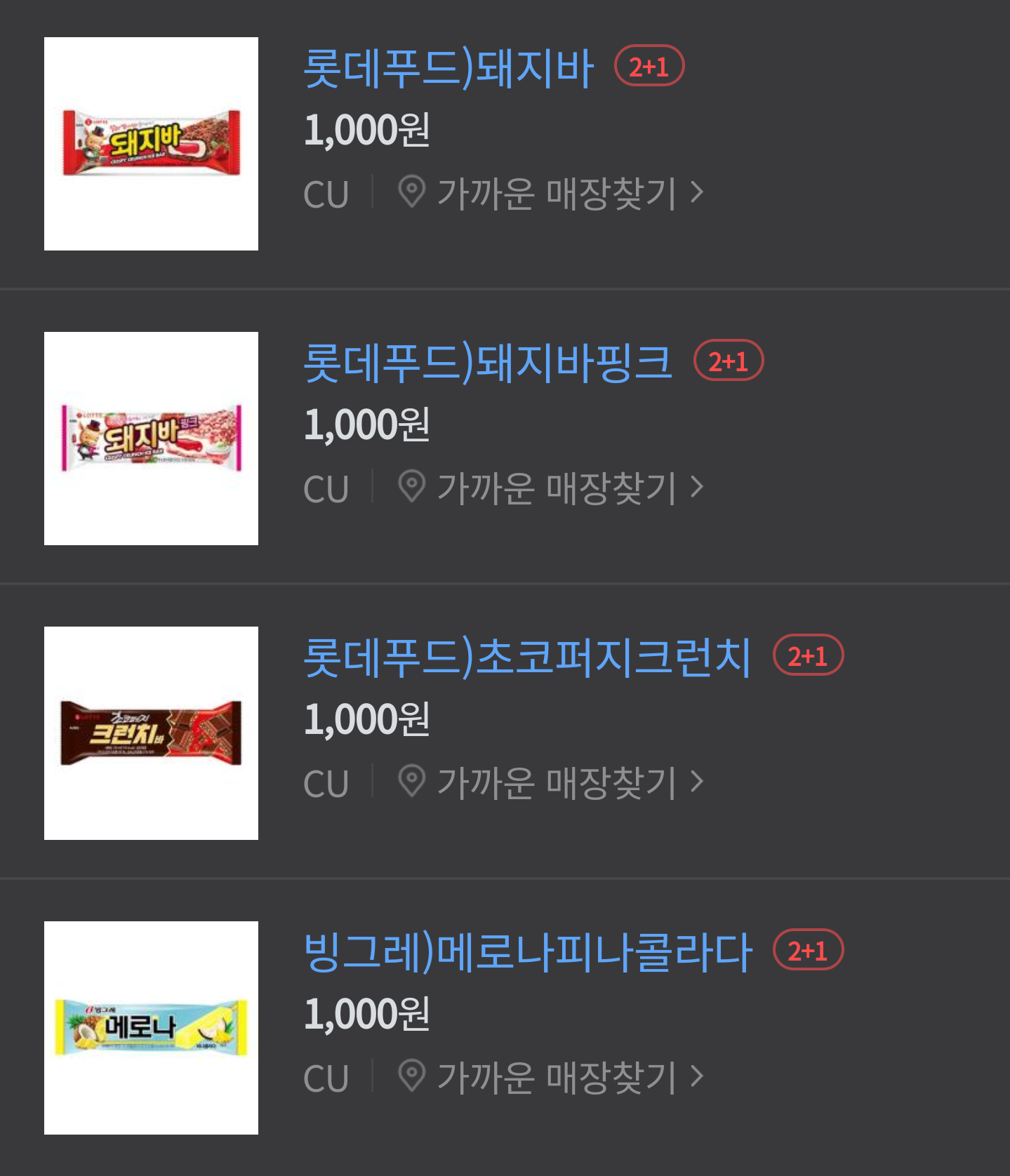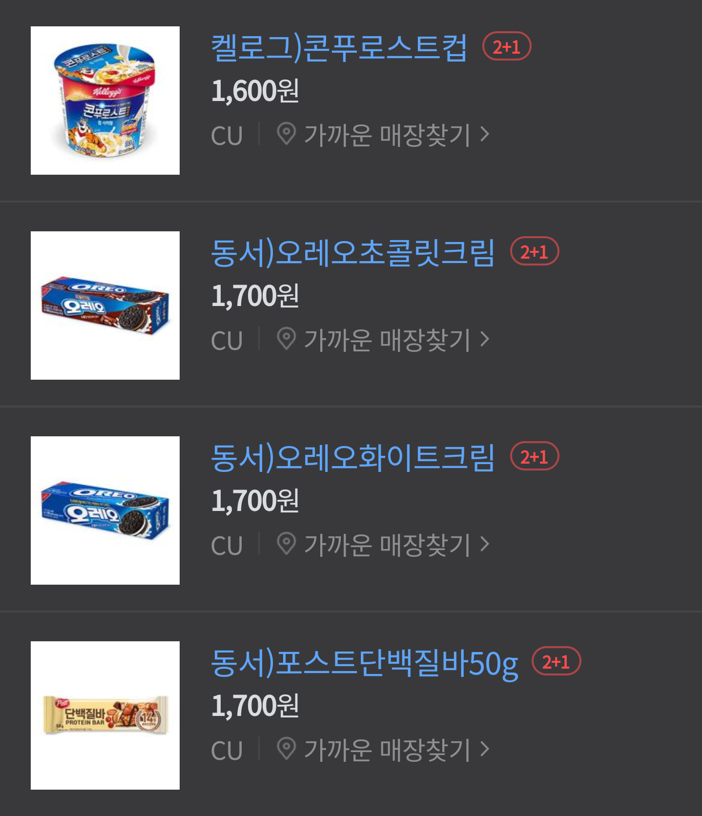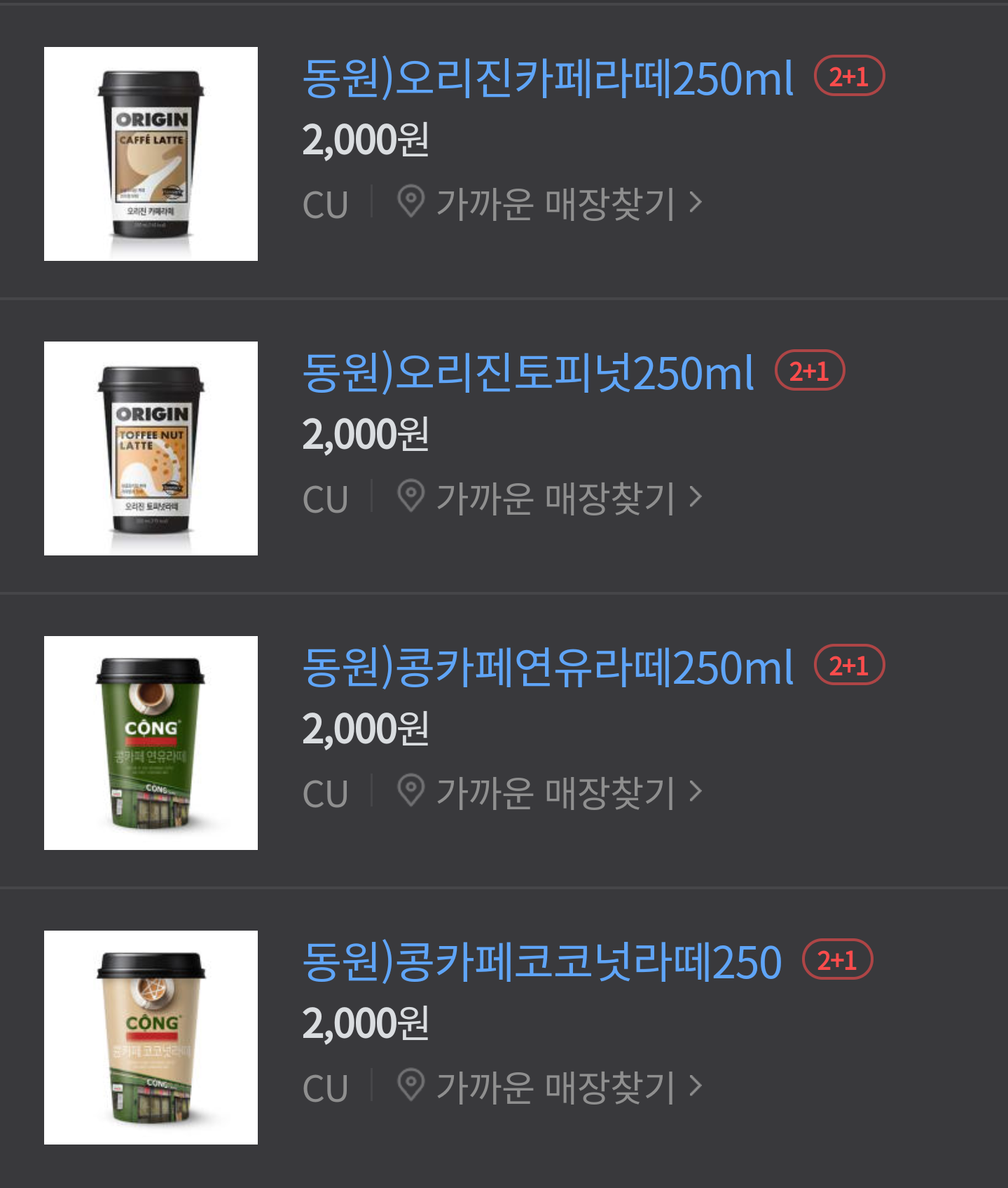 더 많은 2+1 상품(음료, 간식 종류만)은 아래 더보기 클릭