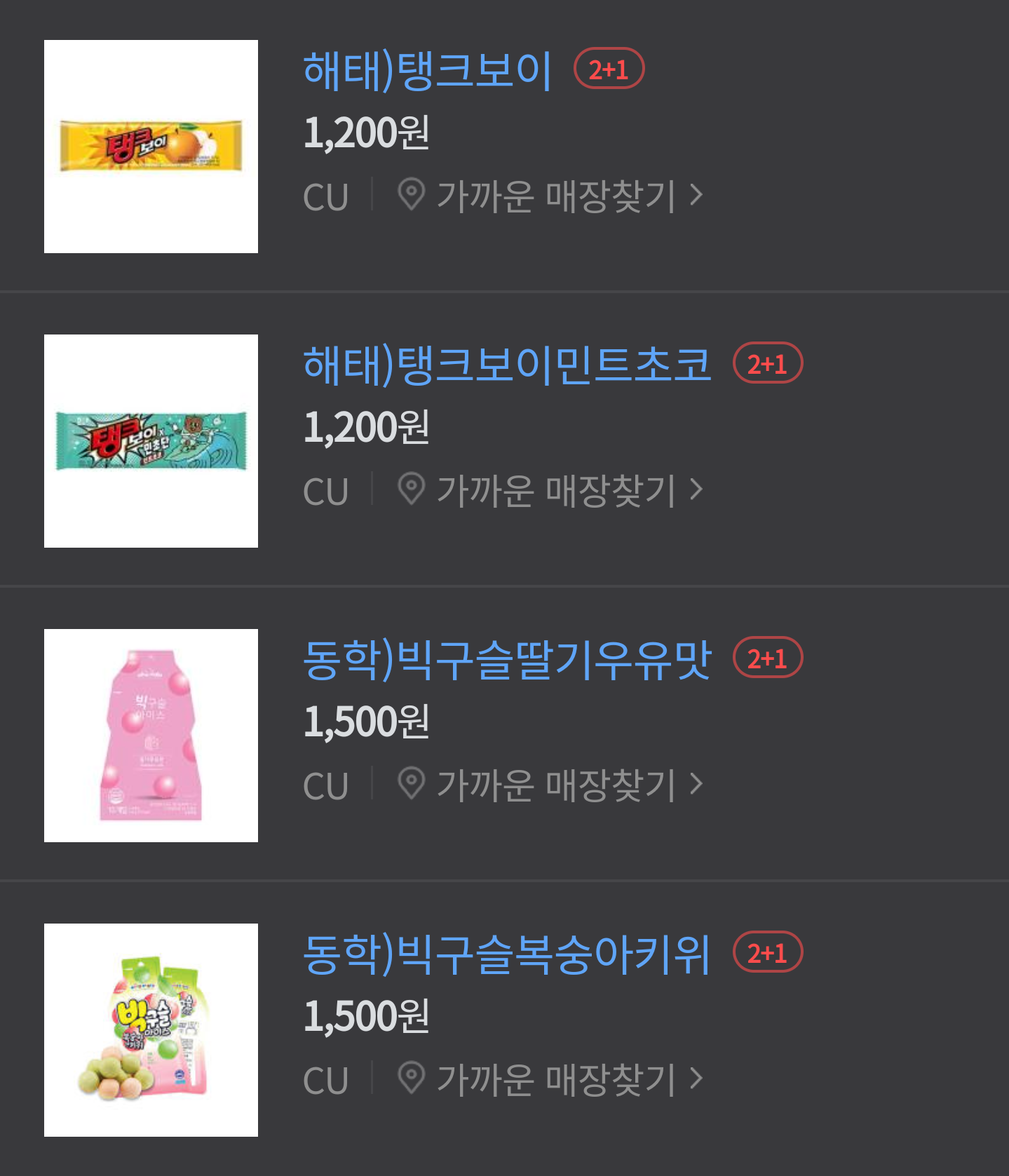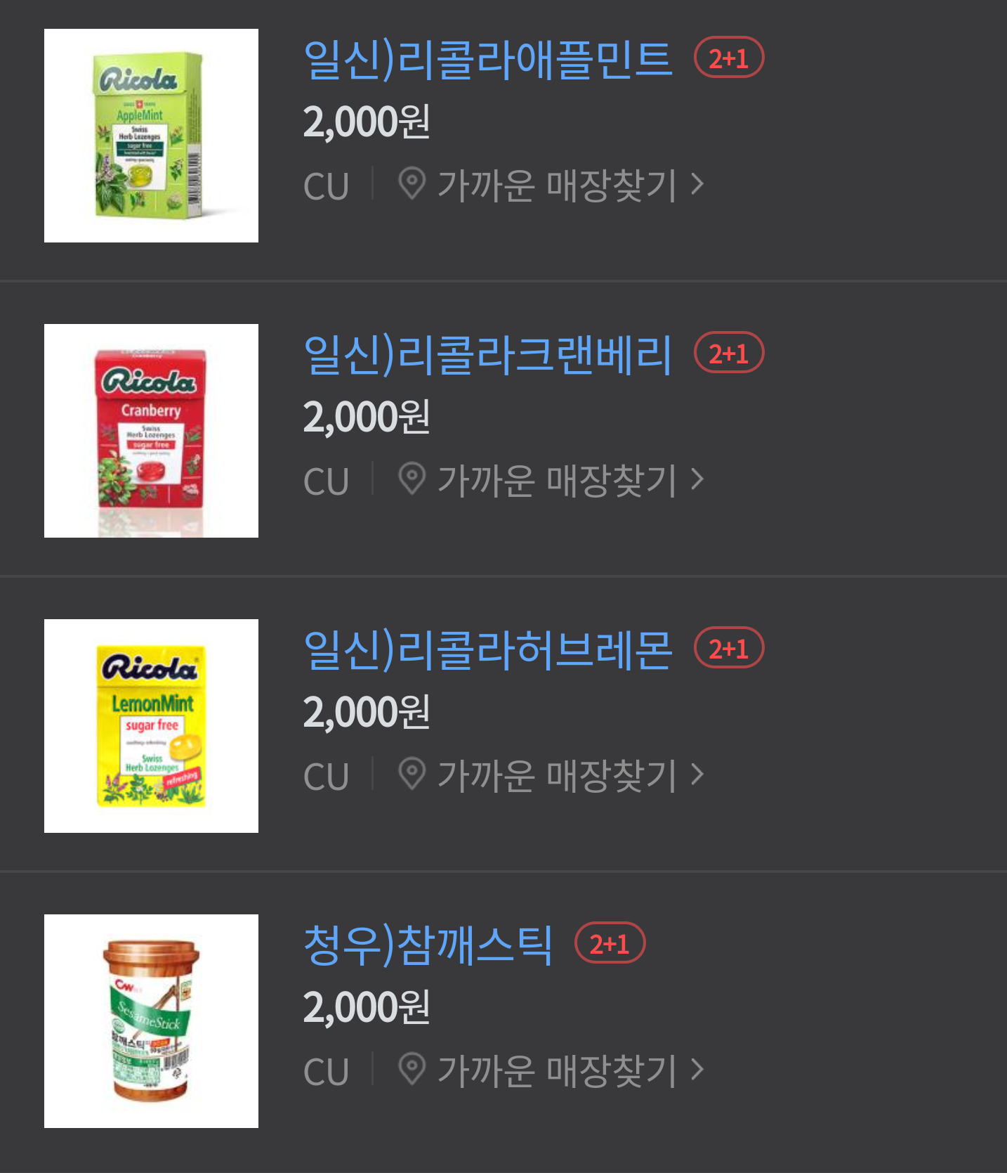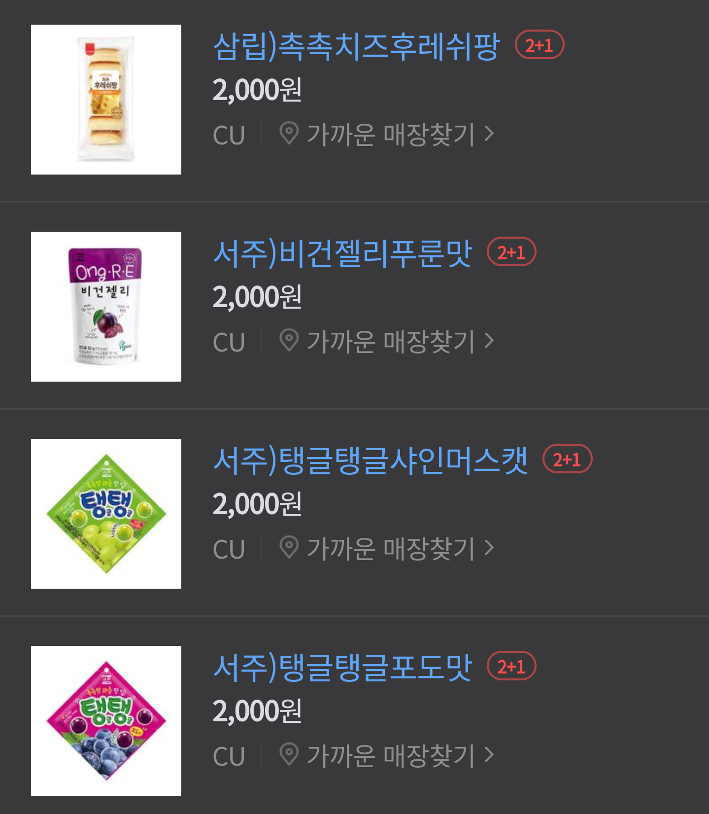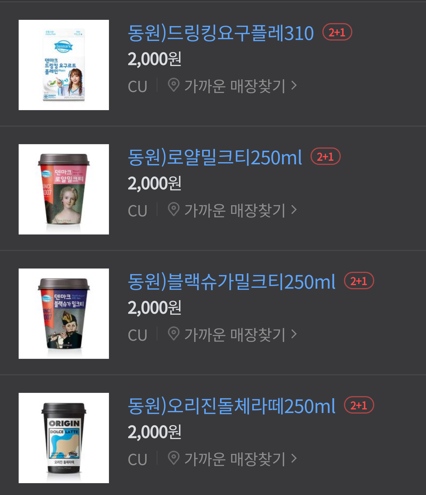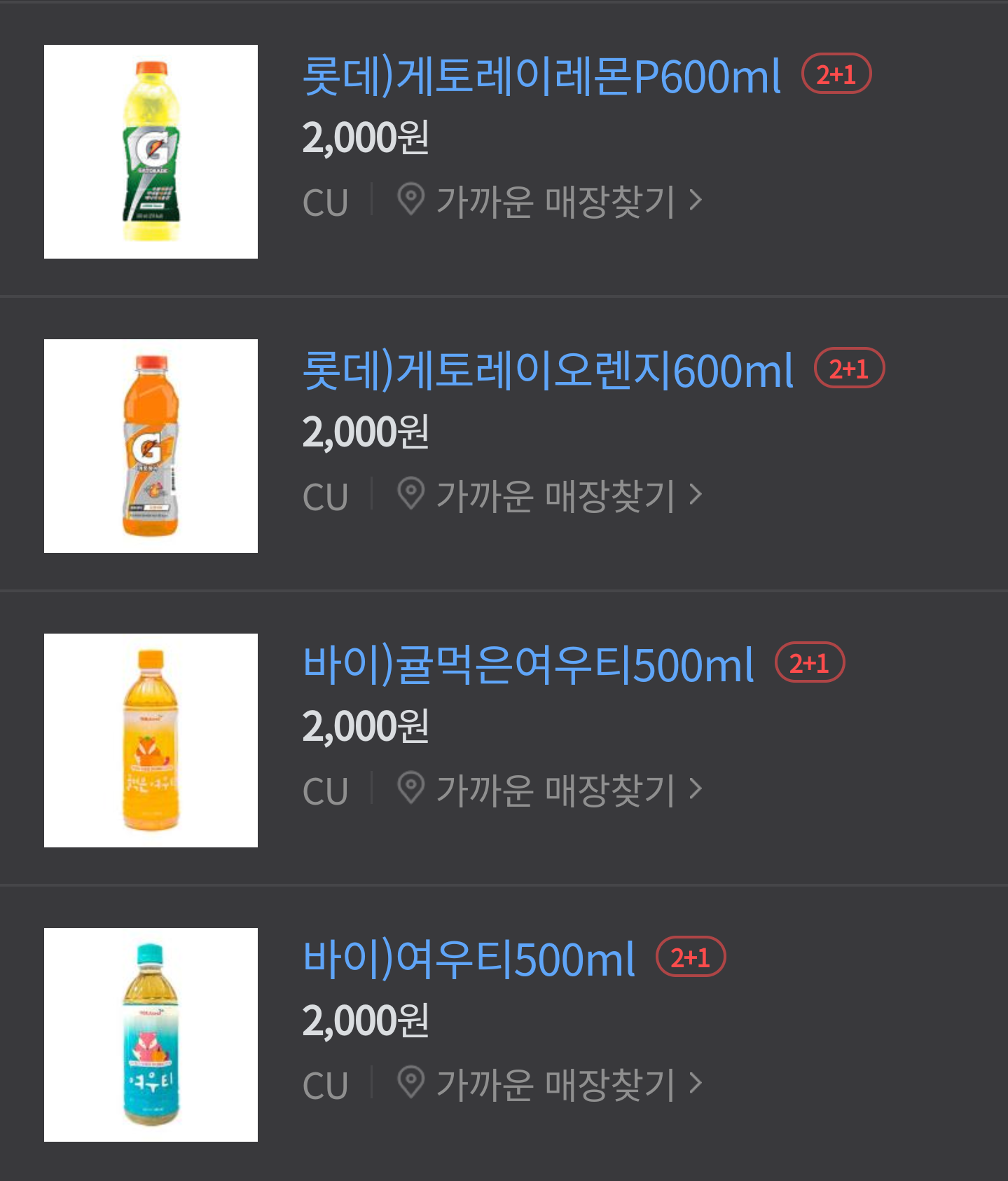 더 많은 2+1 상품(음료, 간식 종류만)은 아래 더보기 클릭