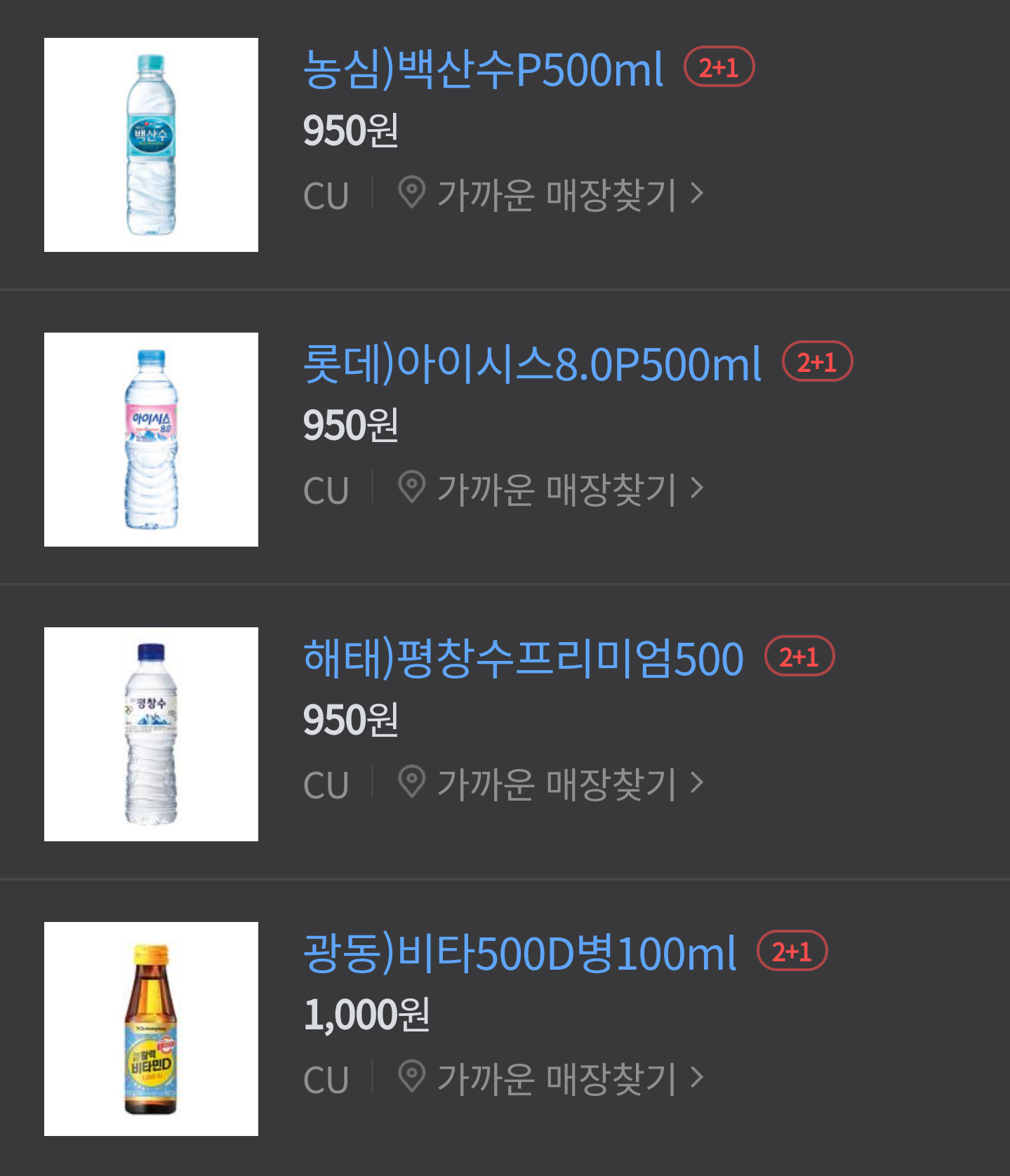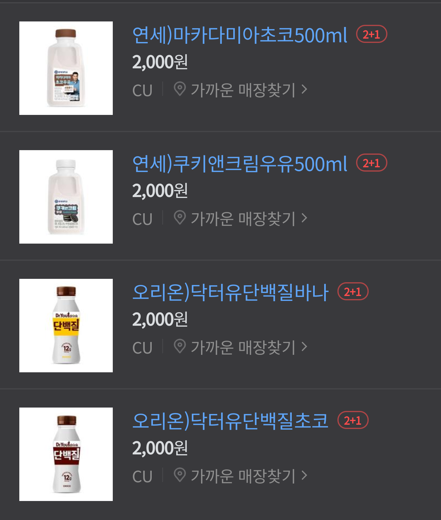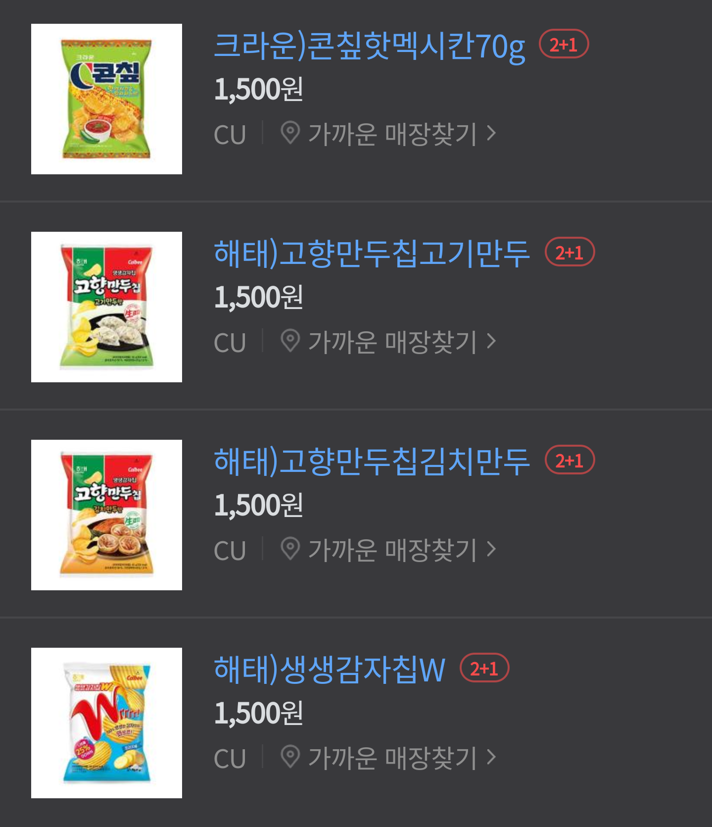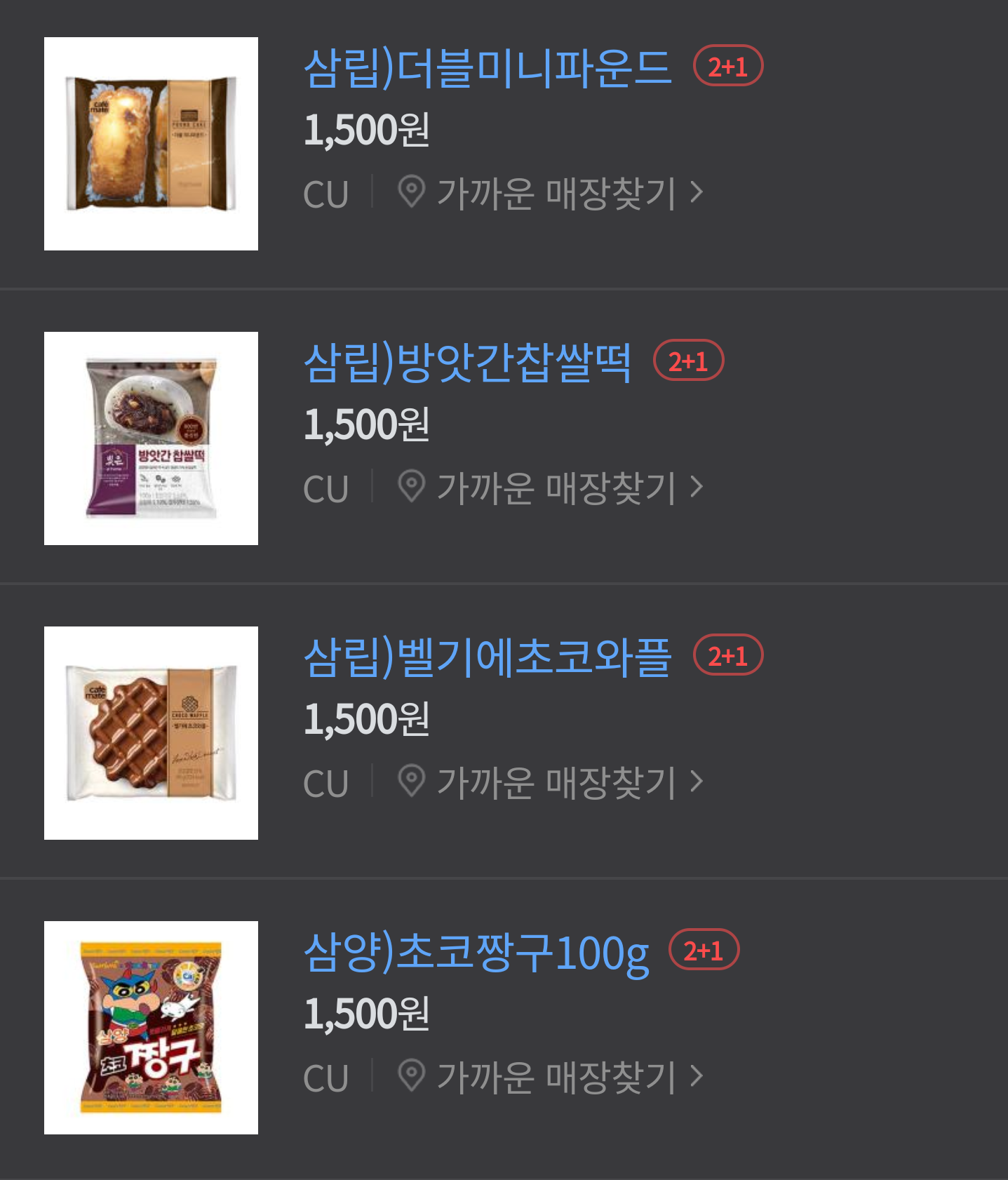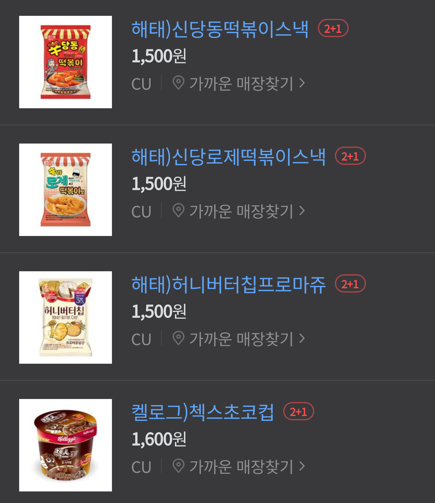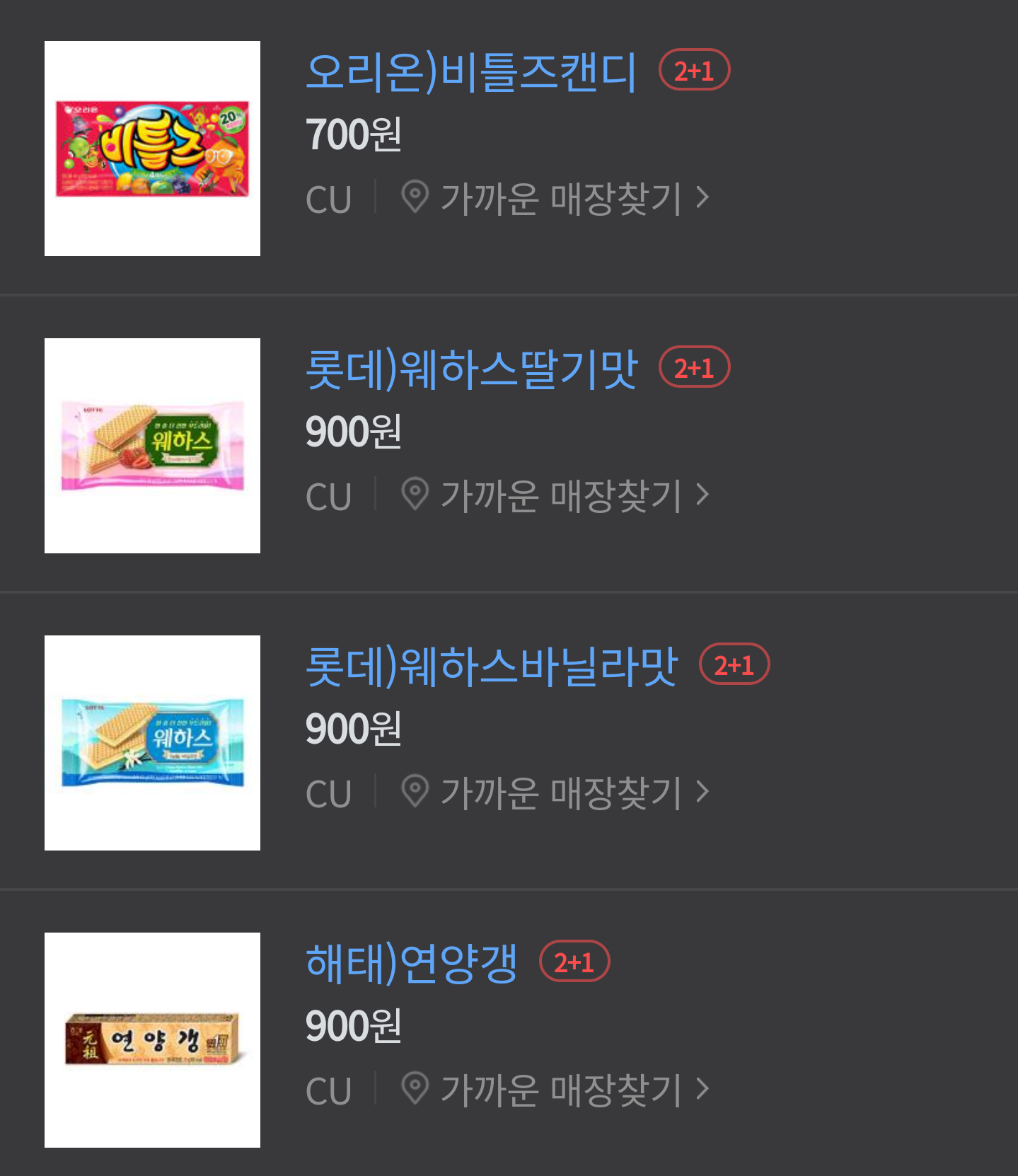 더 많은 2+1 상품(음료, 간식 종류만)은 아래 더보기 클릭