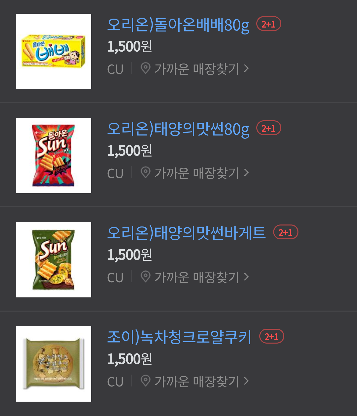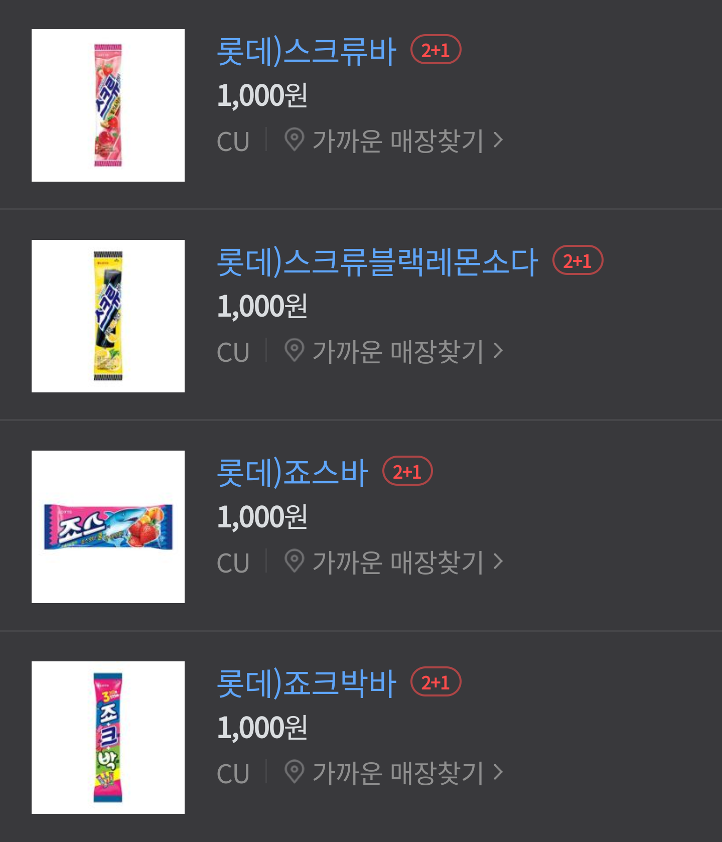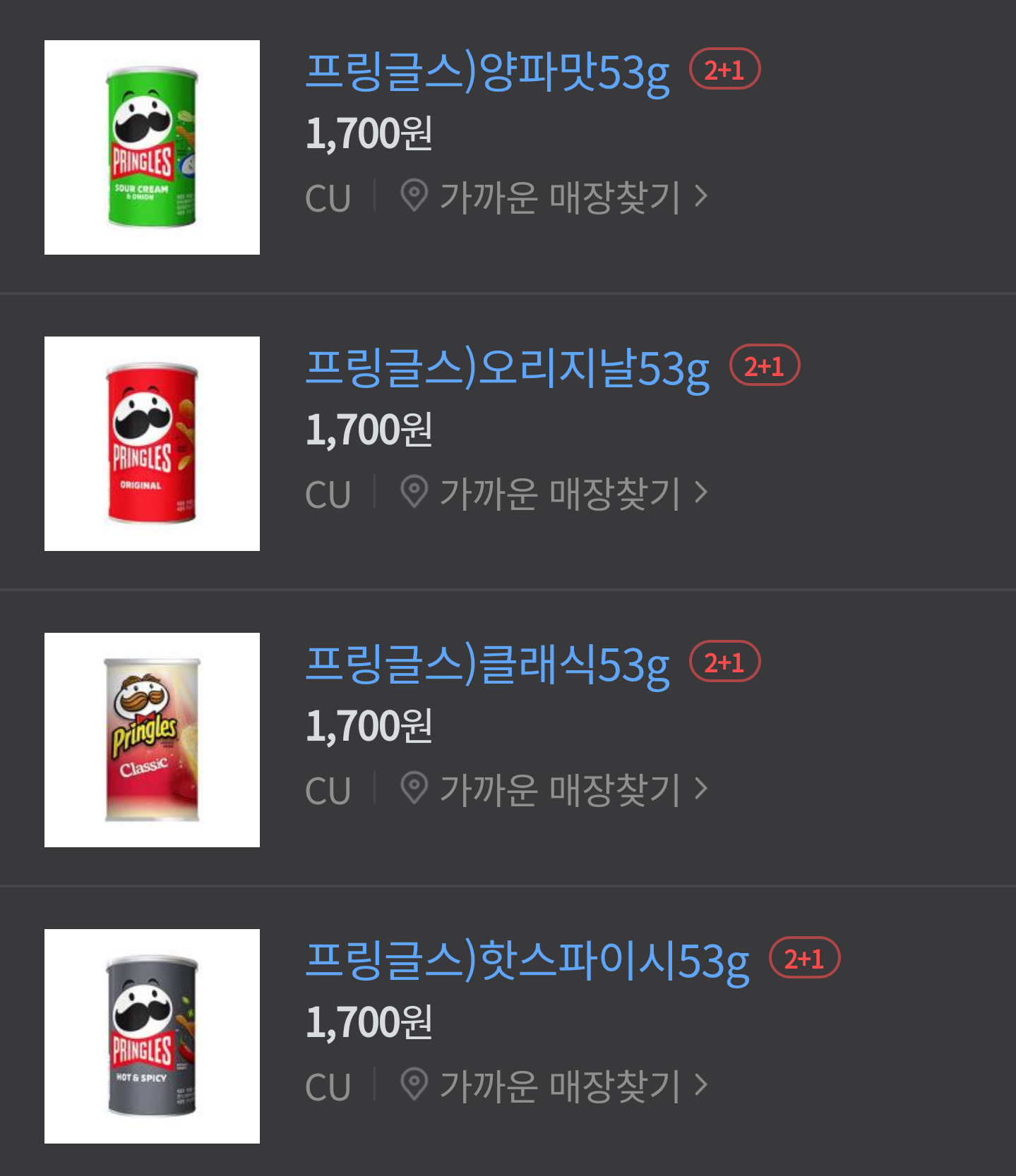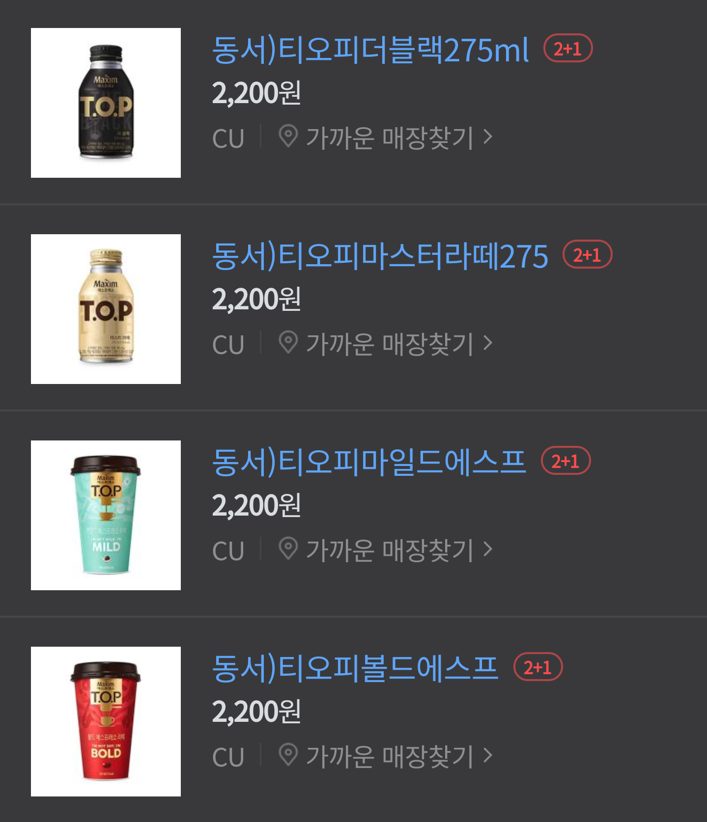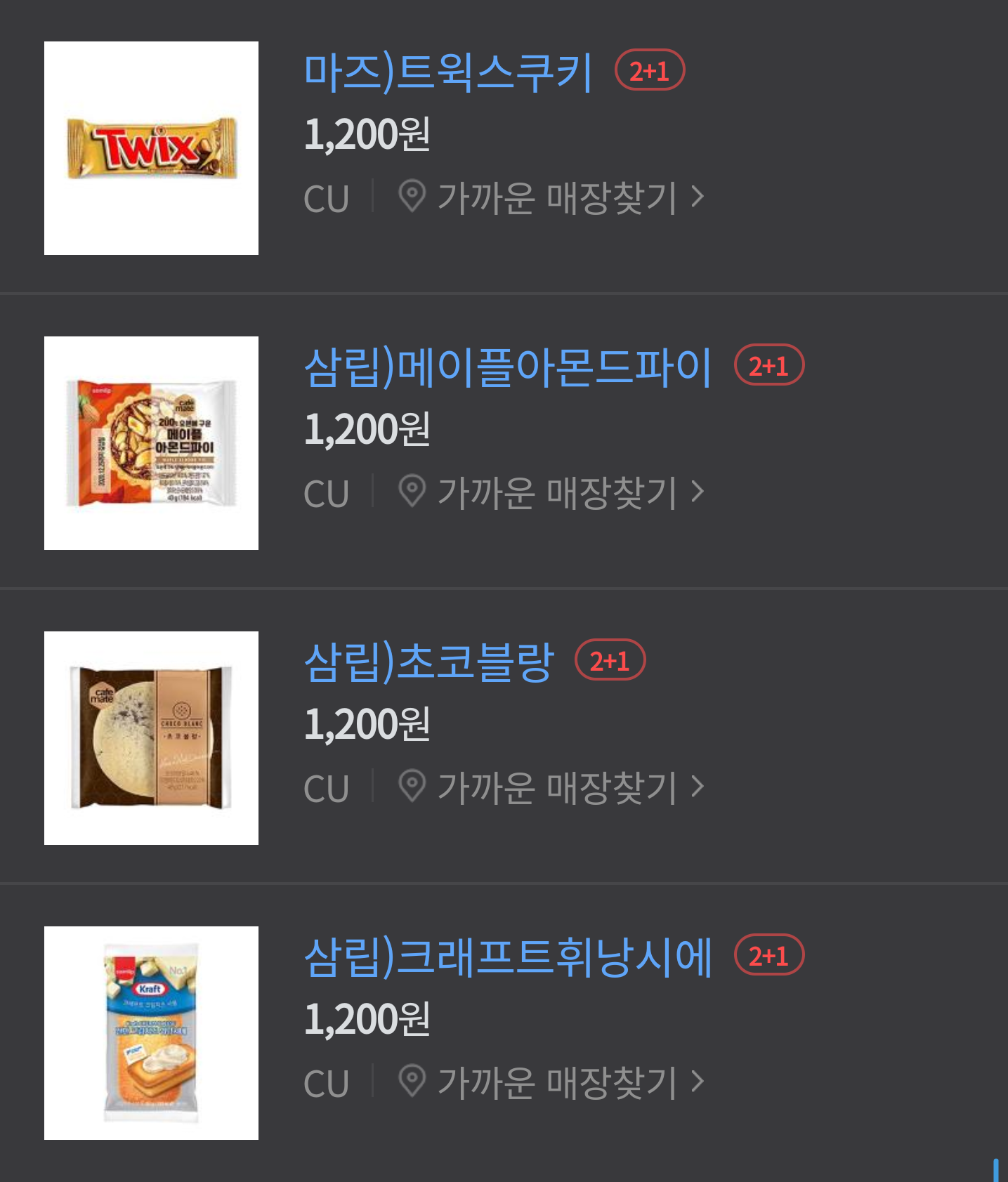 더 많은 2+1 상품(음료, 간식 종류만)은 아래 더보기 클릭
