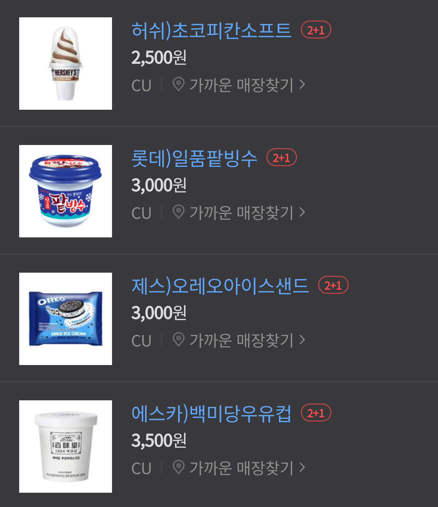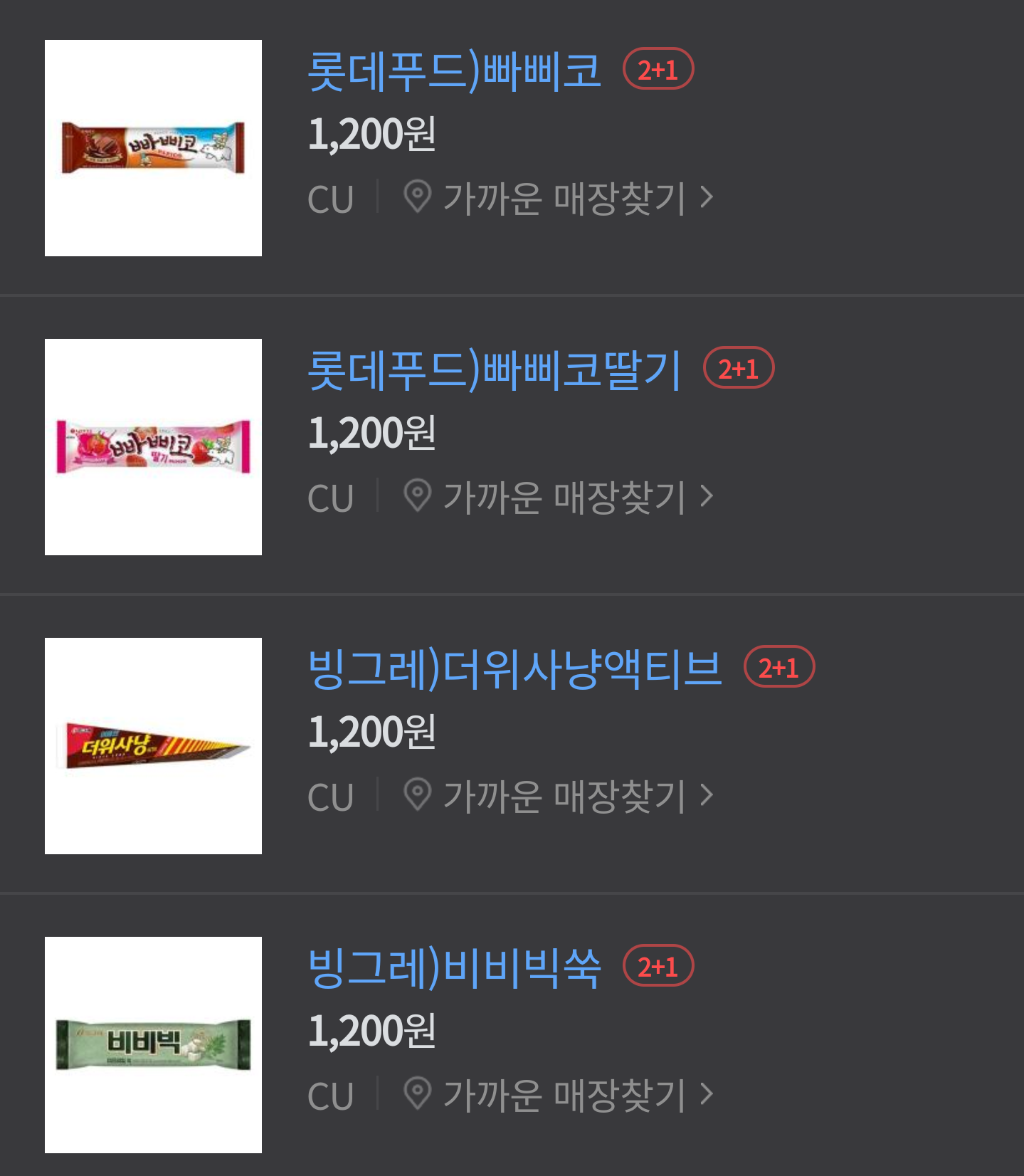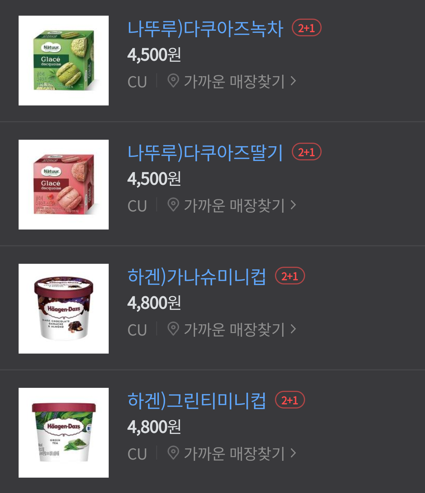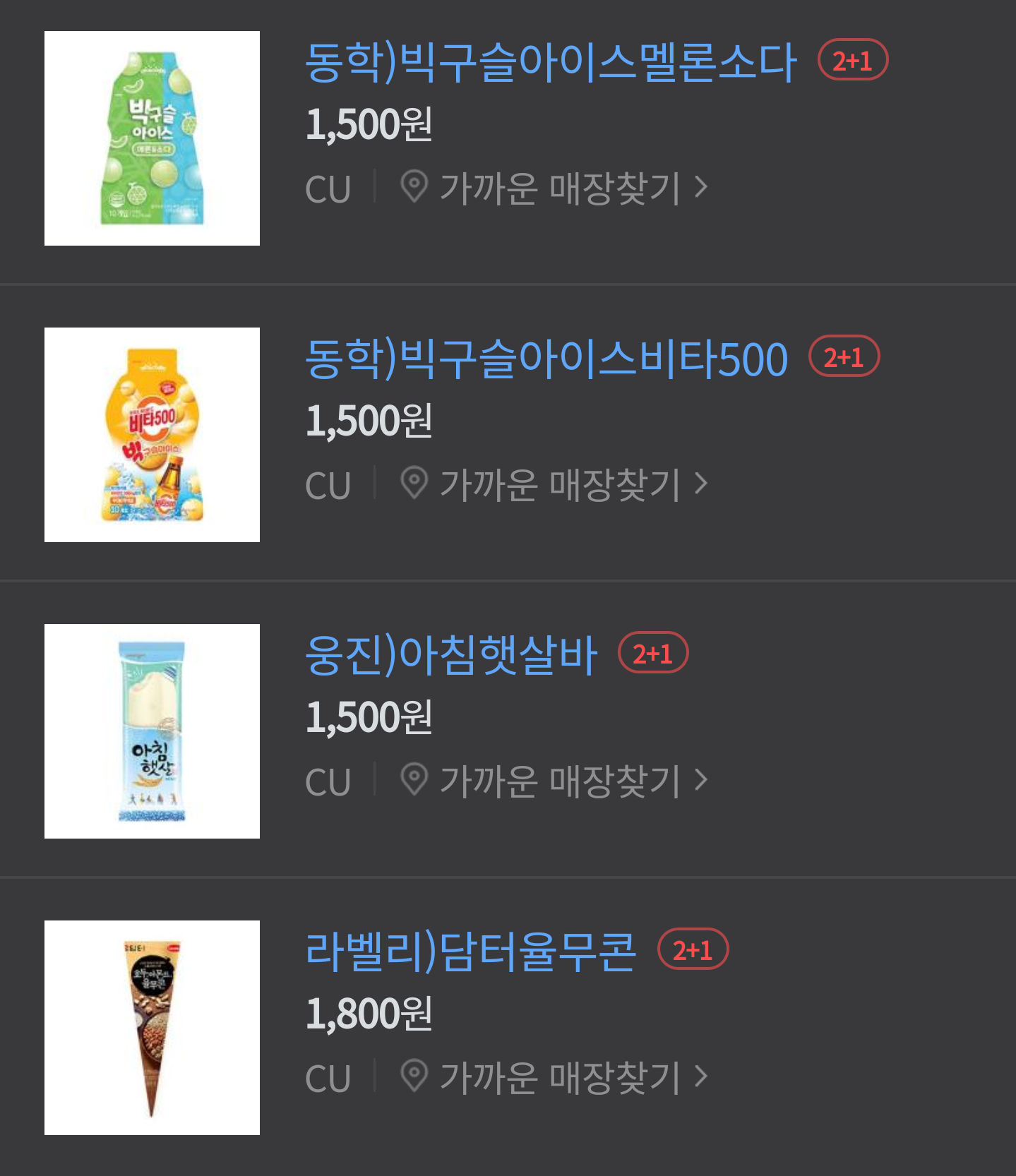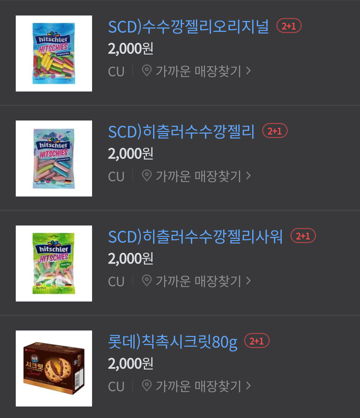 더 많은 2+1 상품(음료, 간식 종류만)은 아래 더보기 클릭