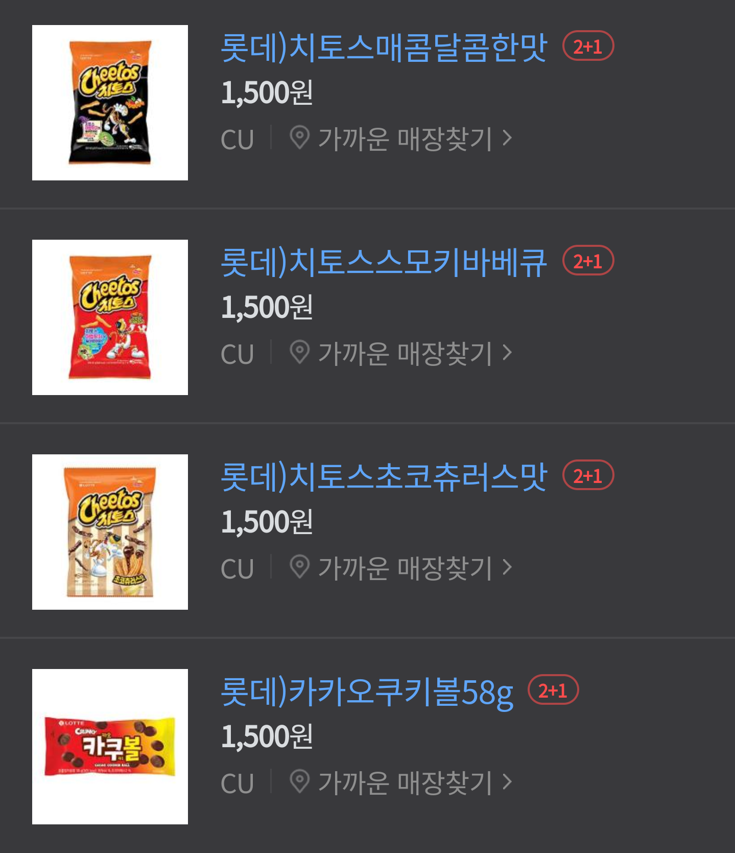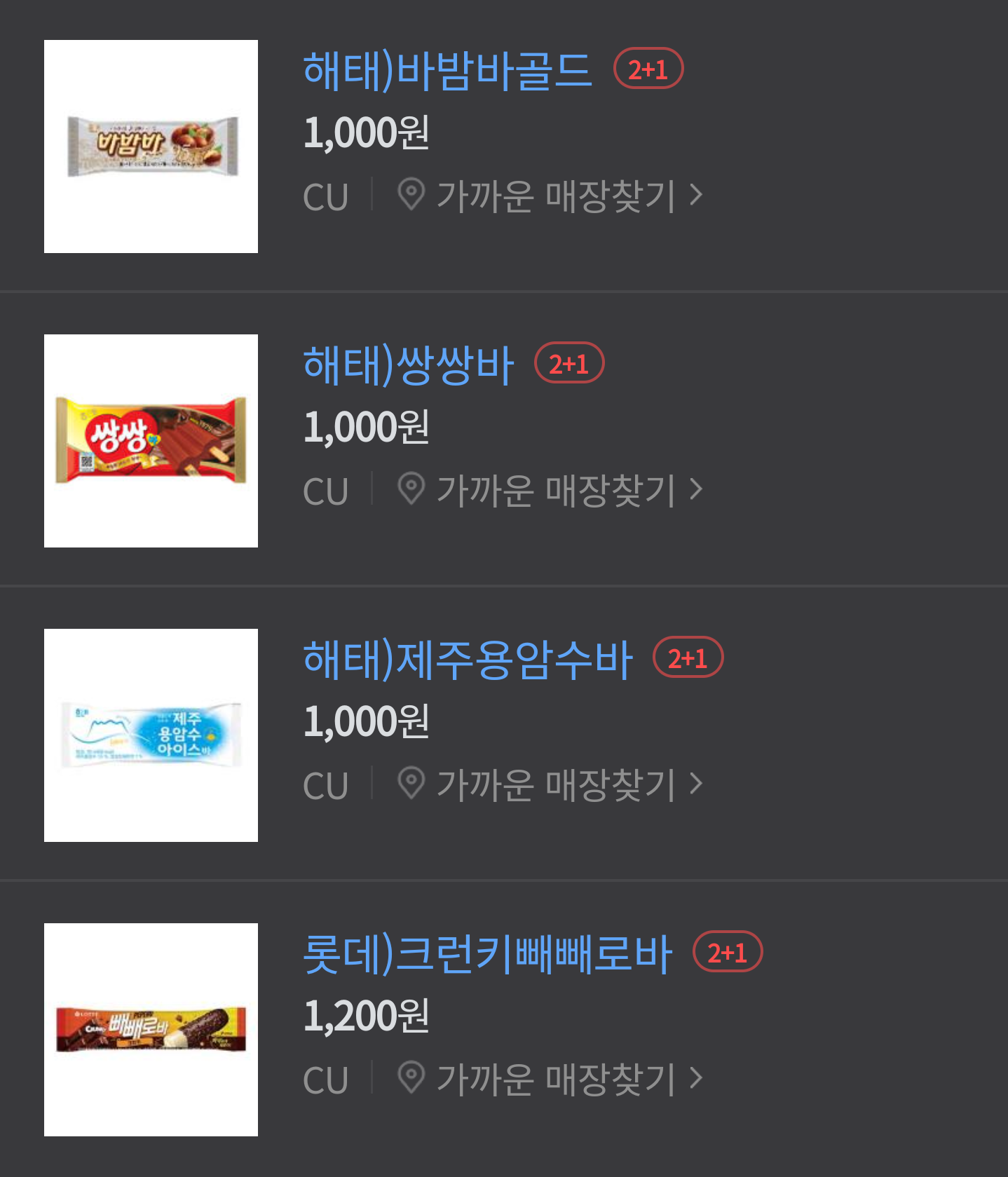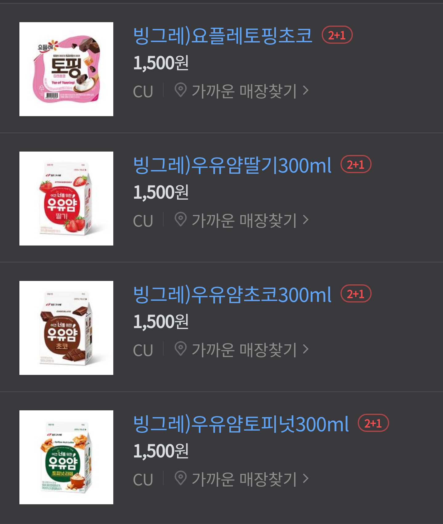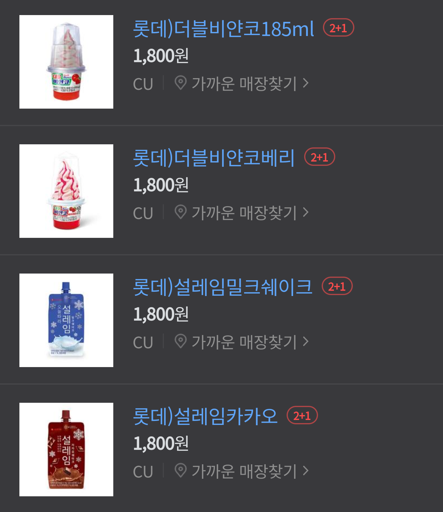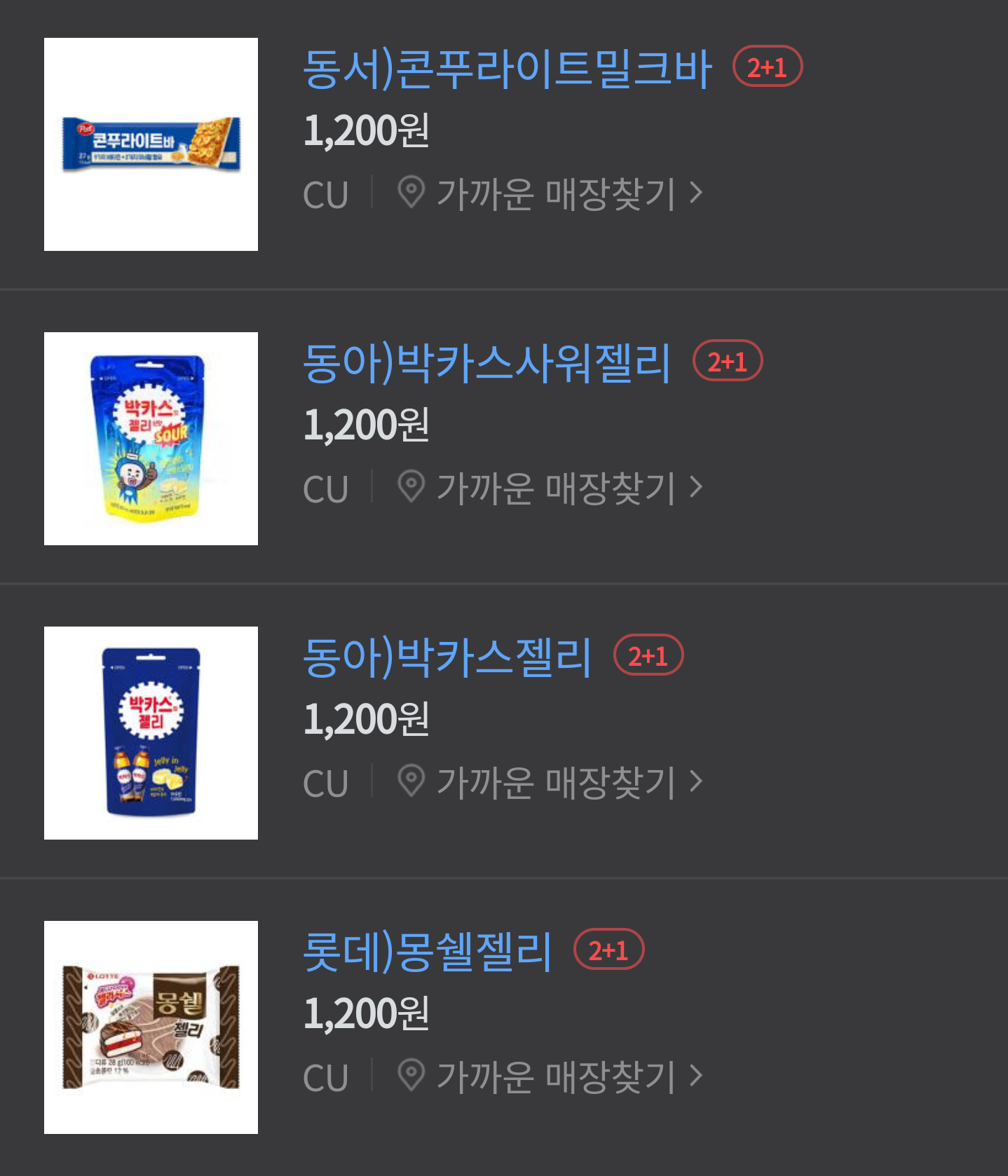 더 많은 2+1 상품(음료, 간식 종류만)은 아래 더보기 클릭