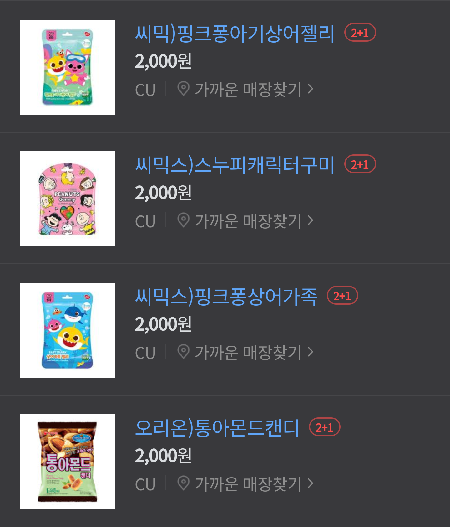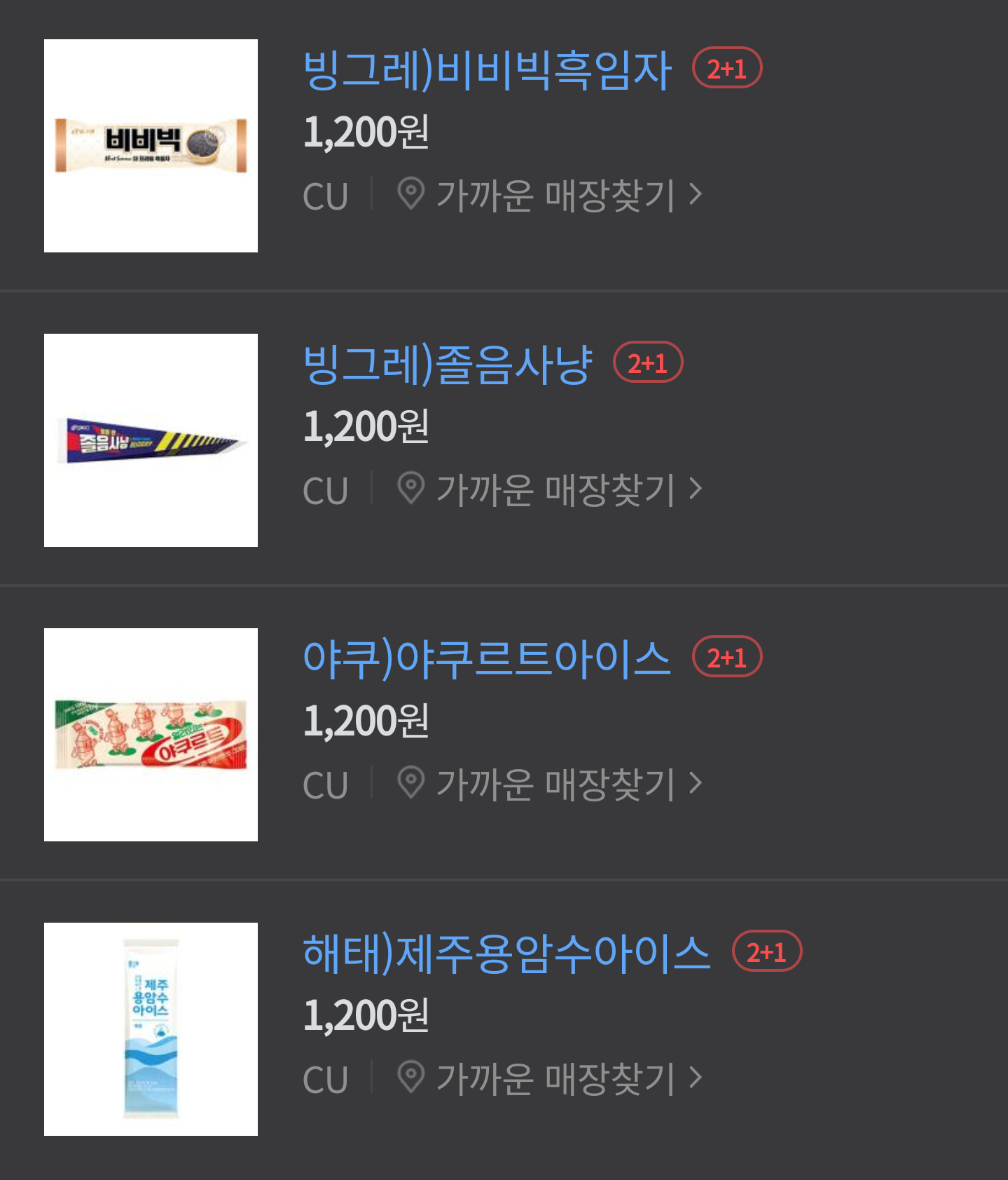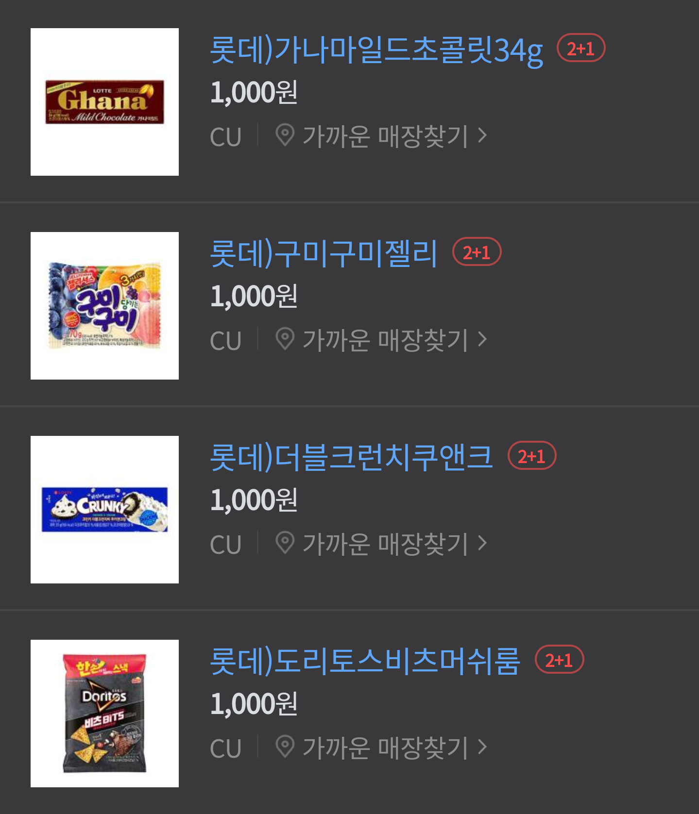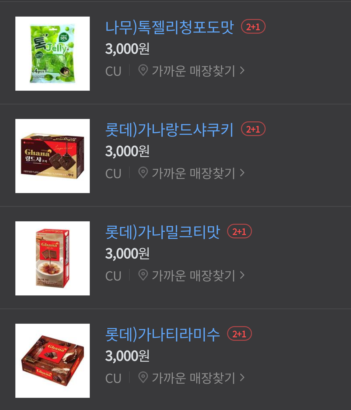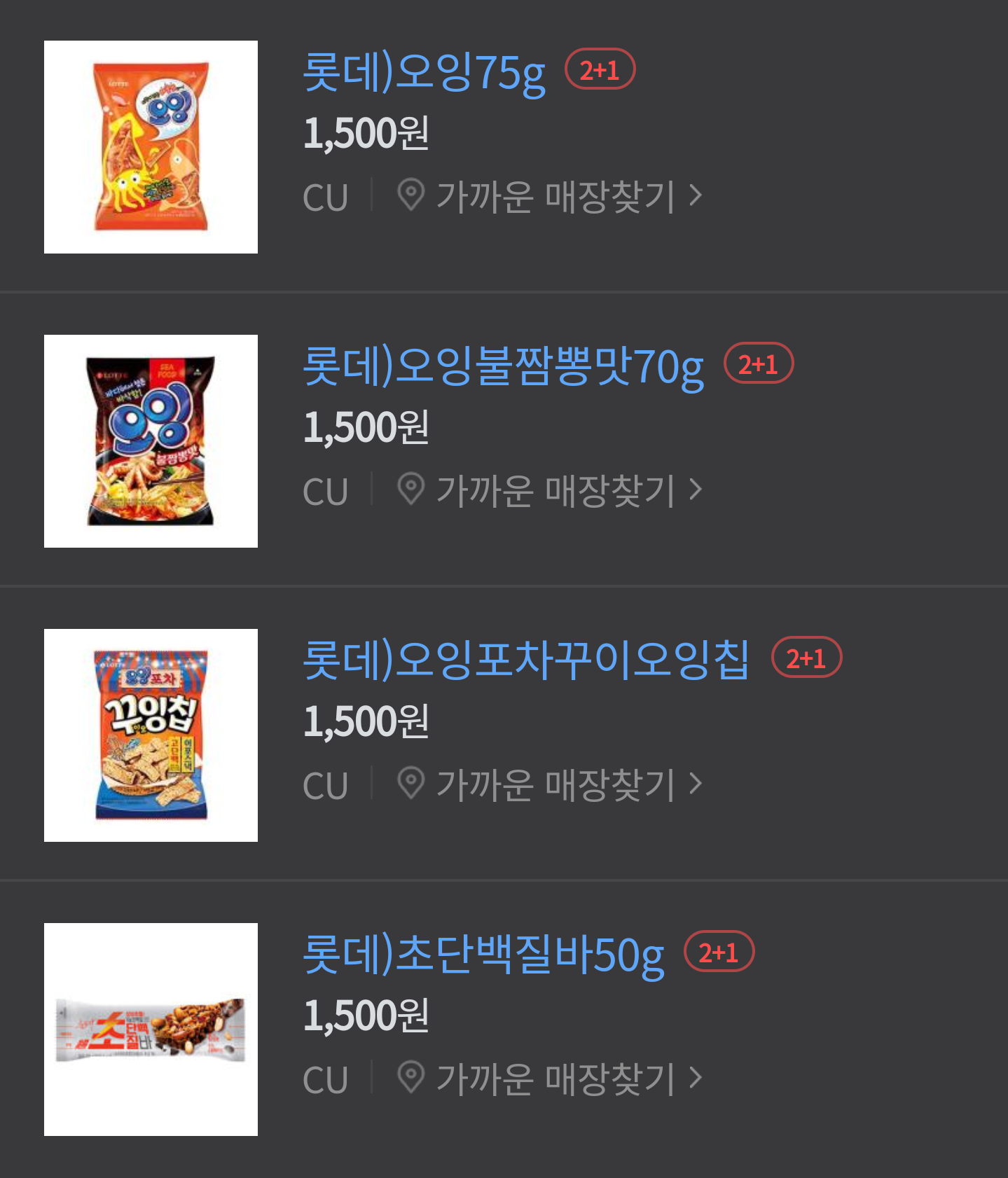 더 많은 2+1 상품(음료, 간식 종류만)은 아래 더보기 클릭