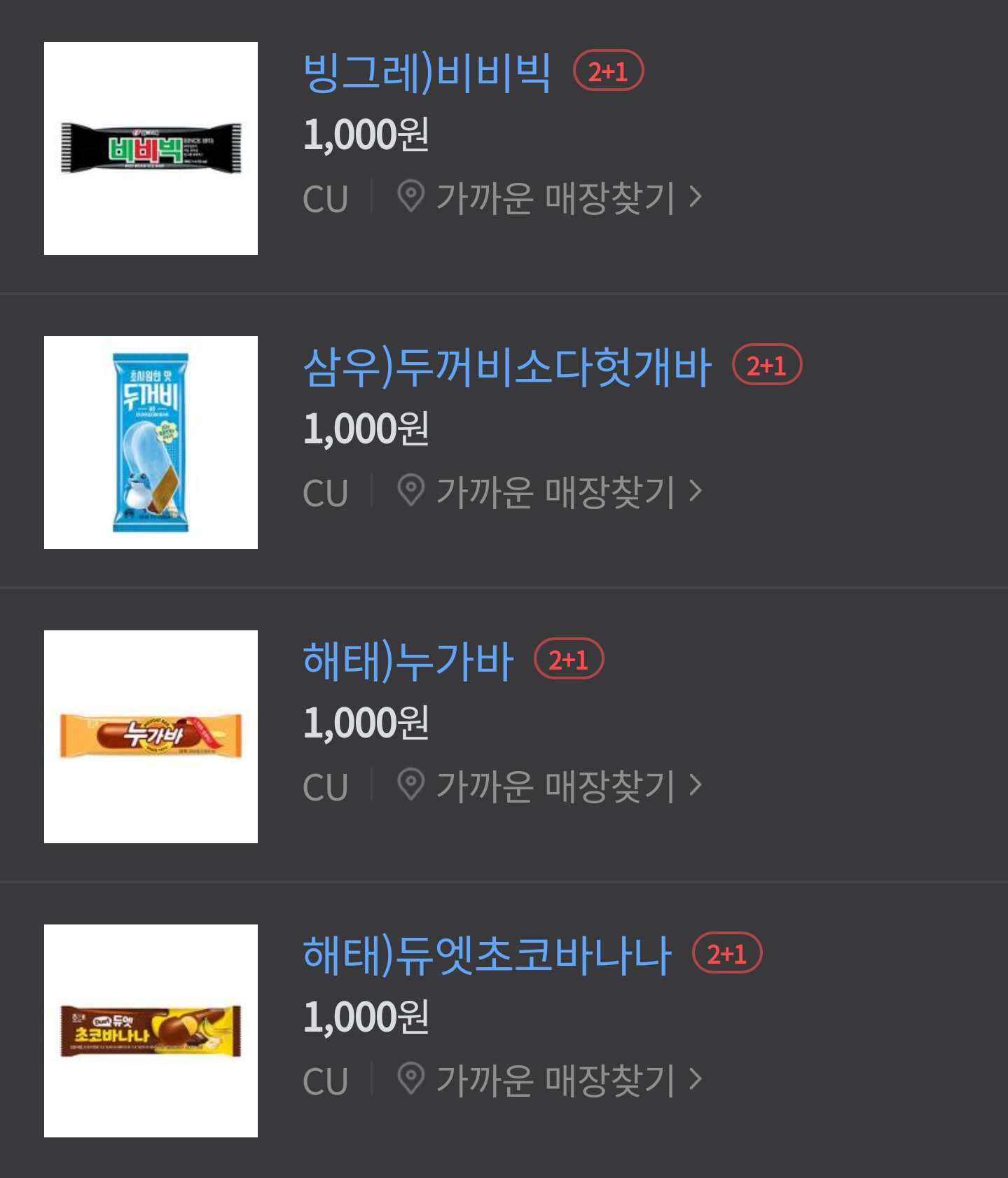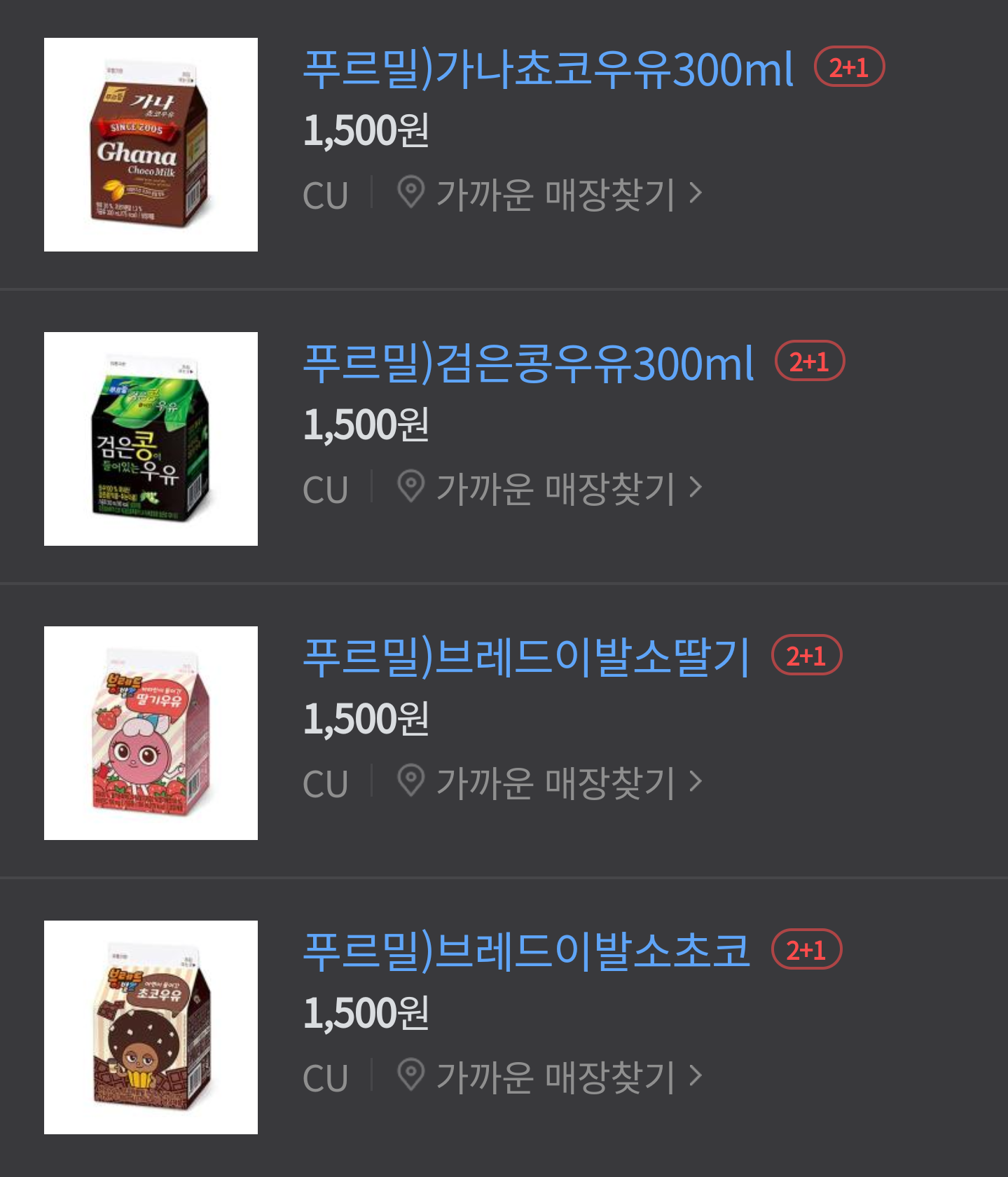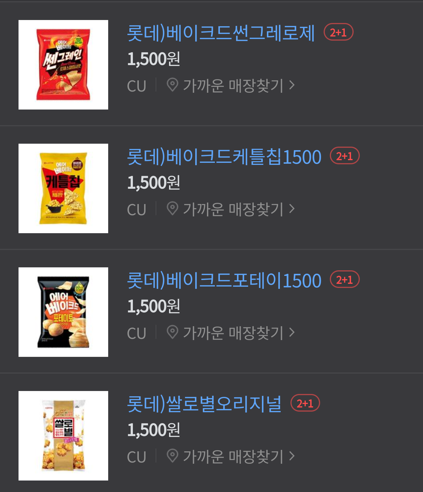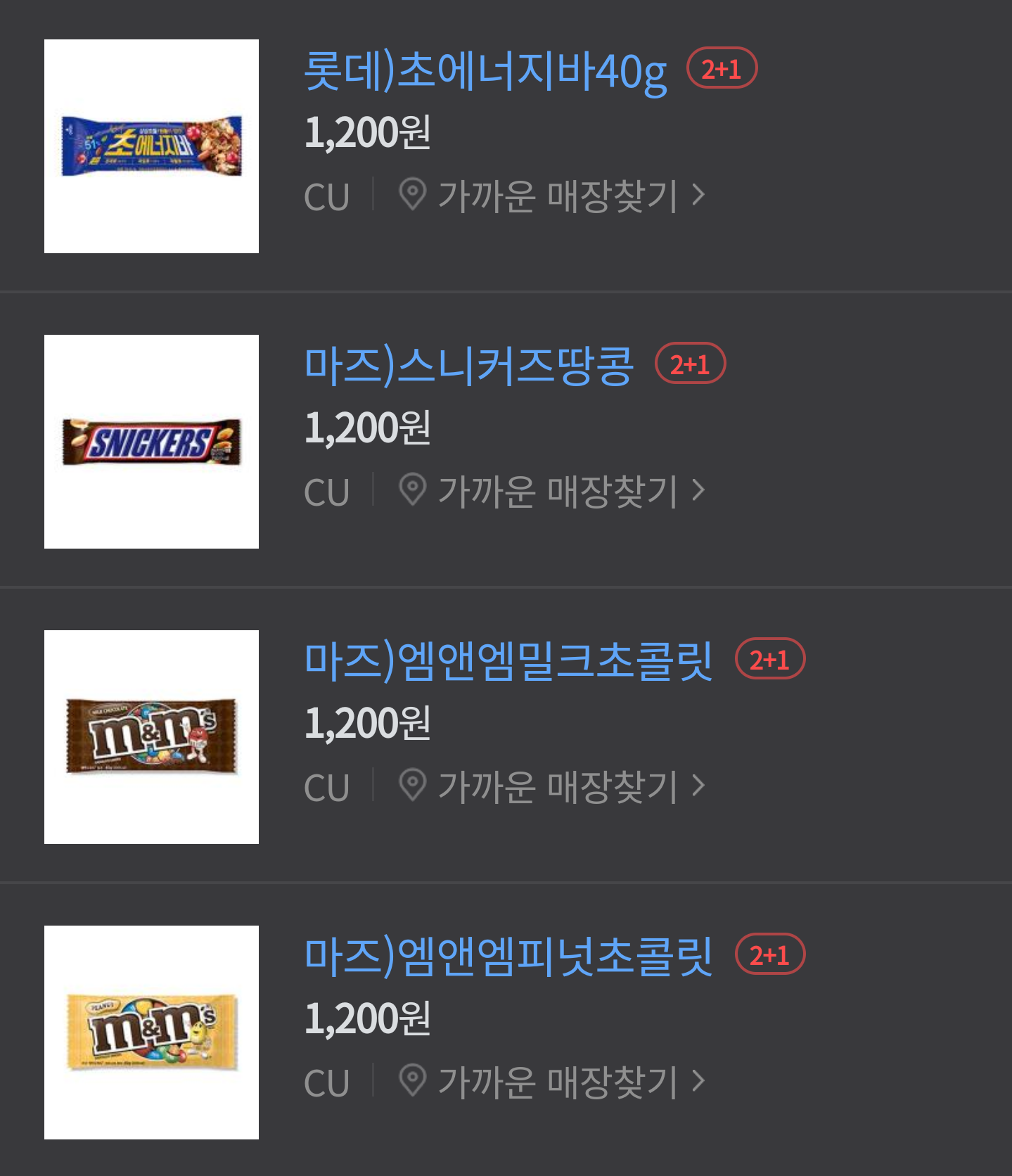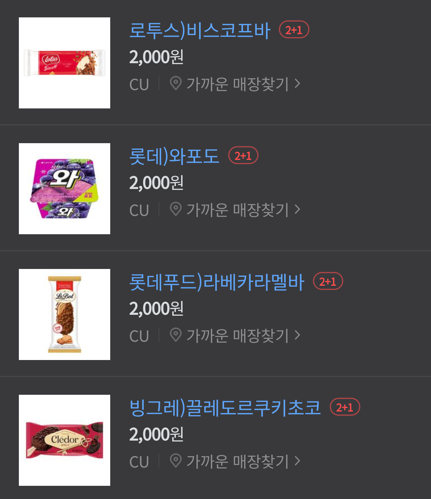 더 많은 2+1 상품(음료, 간식 종류만)은 아래 더보기 클릭