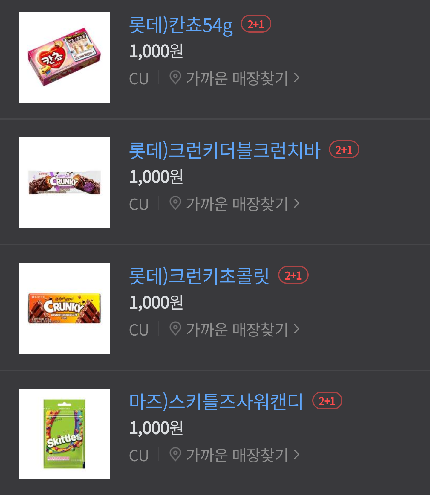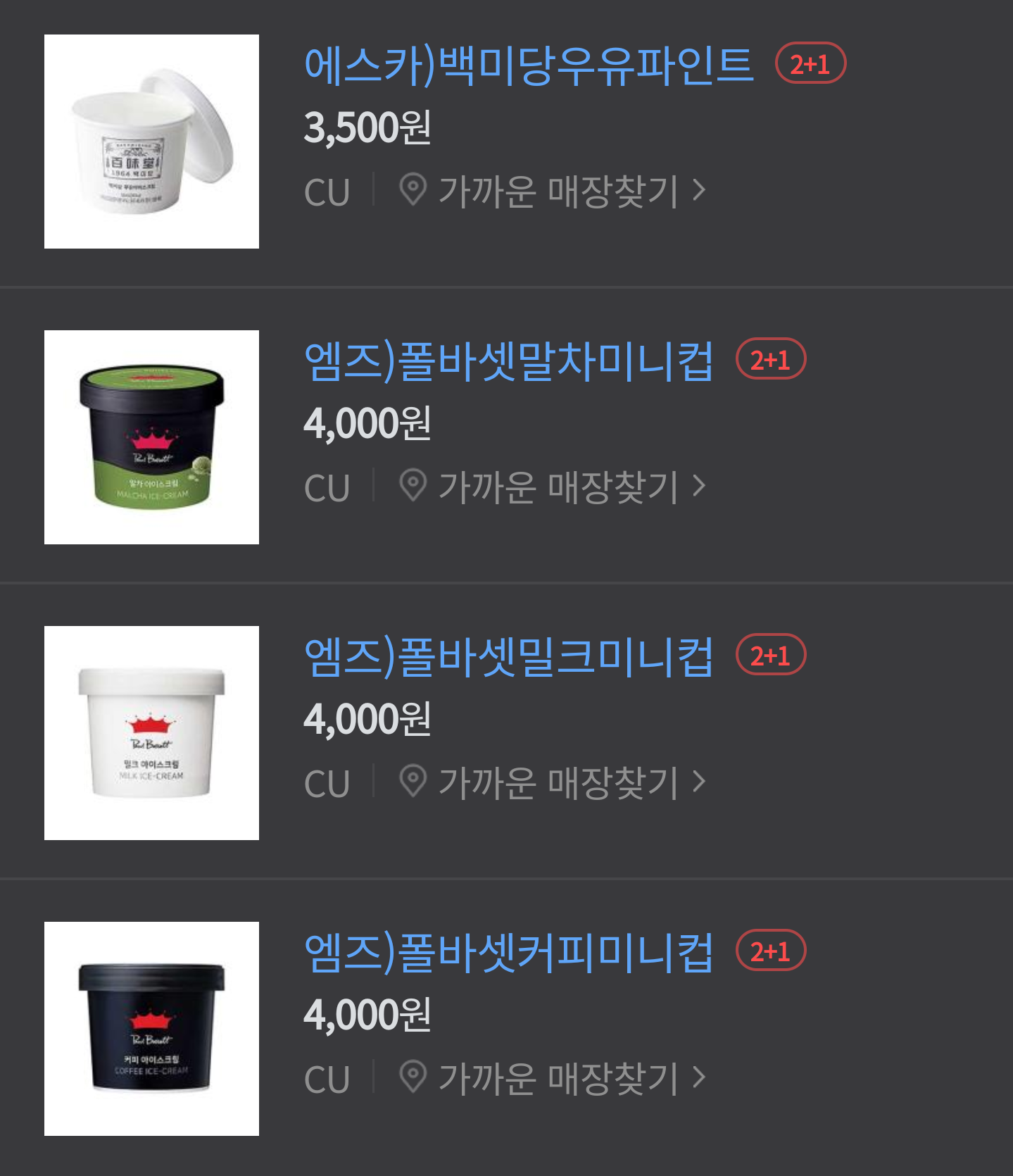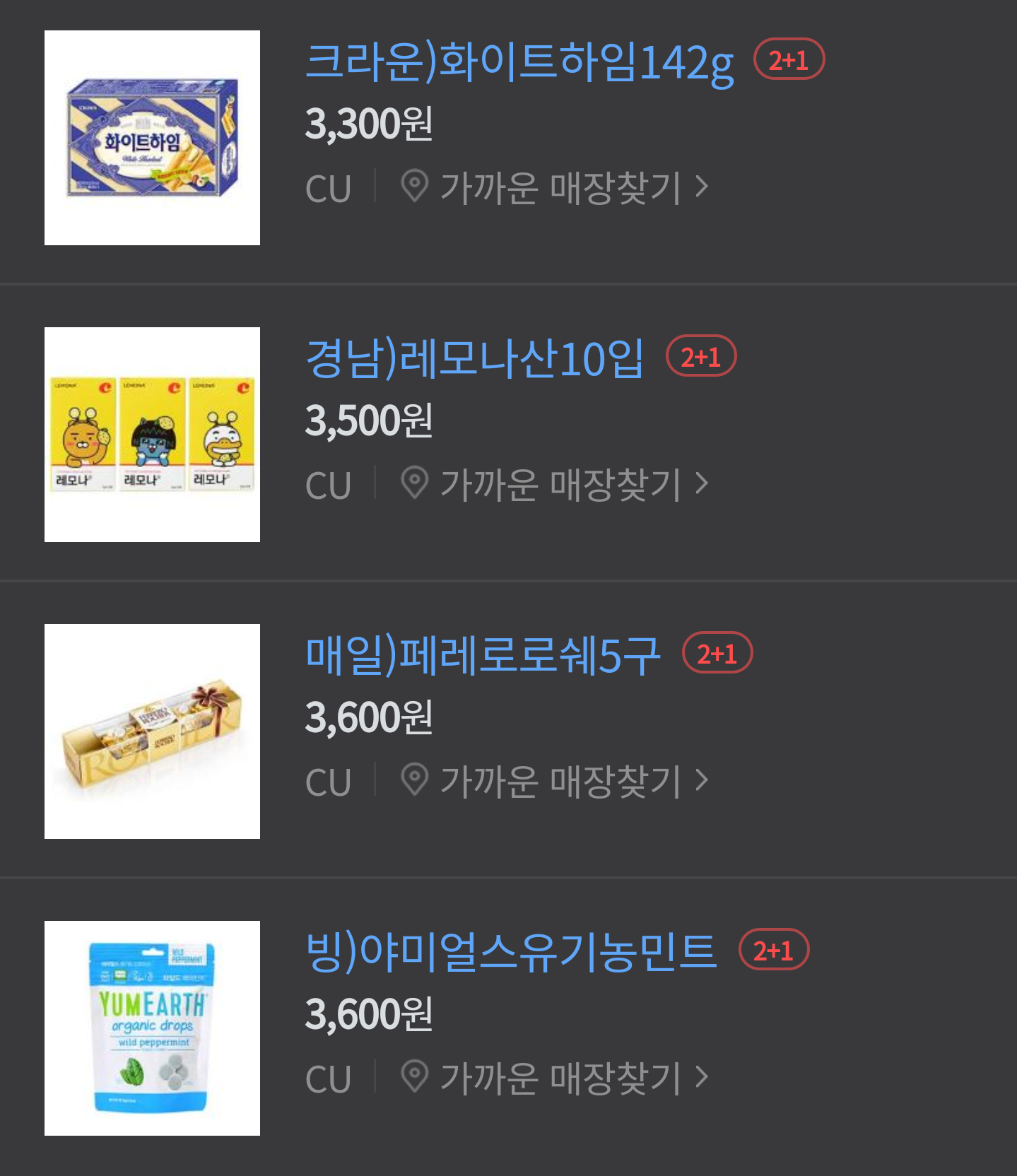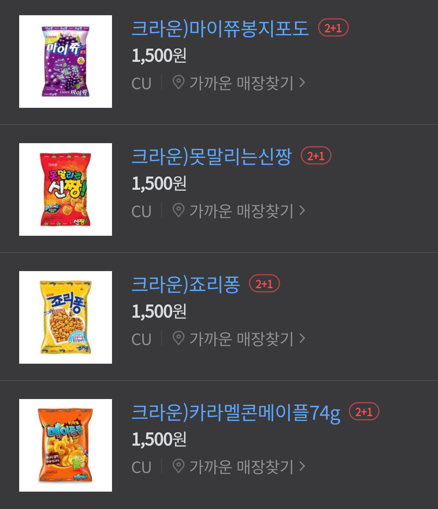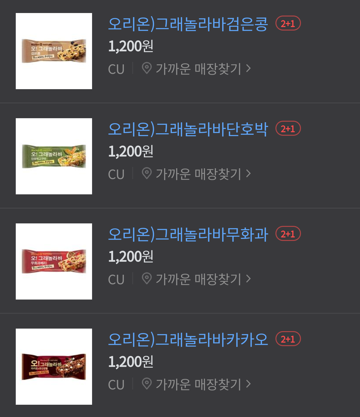 더 많은 2+1 상품(음료, 간식 종류만)은 아래 더보기 클릭