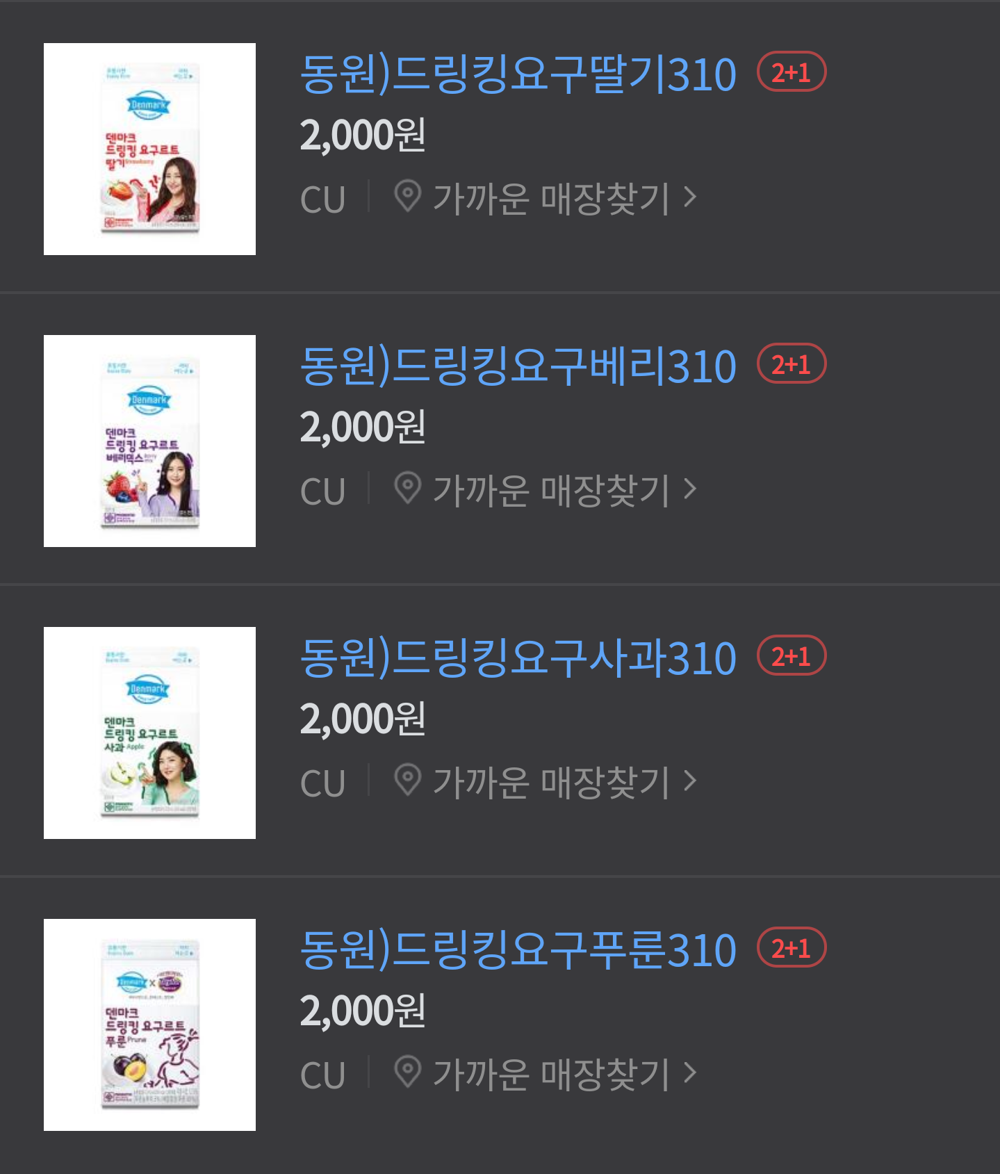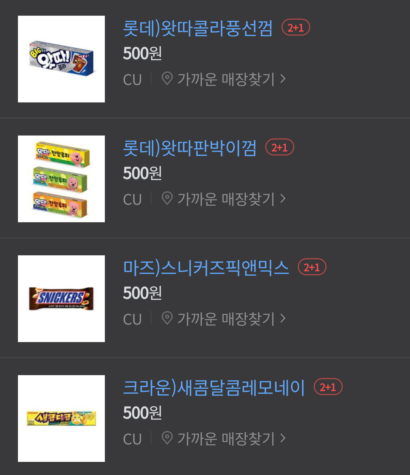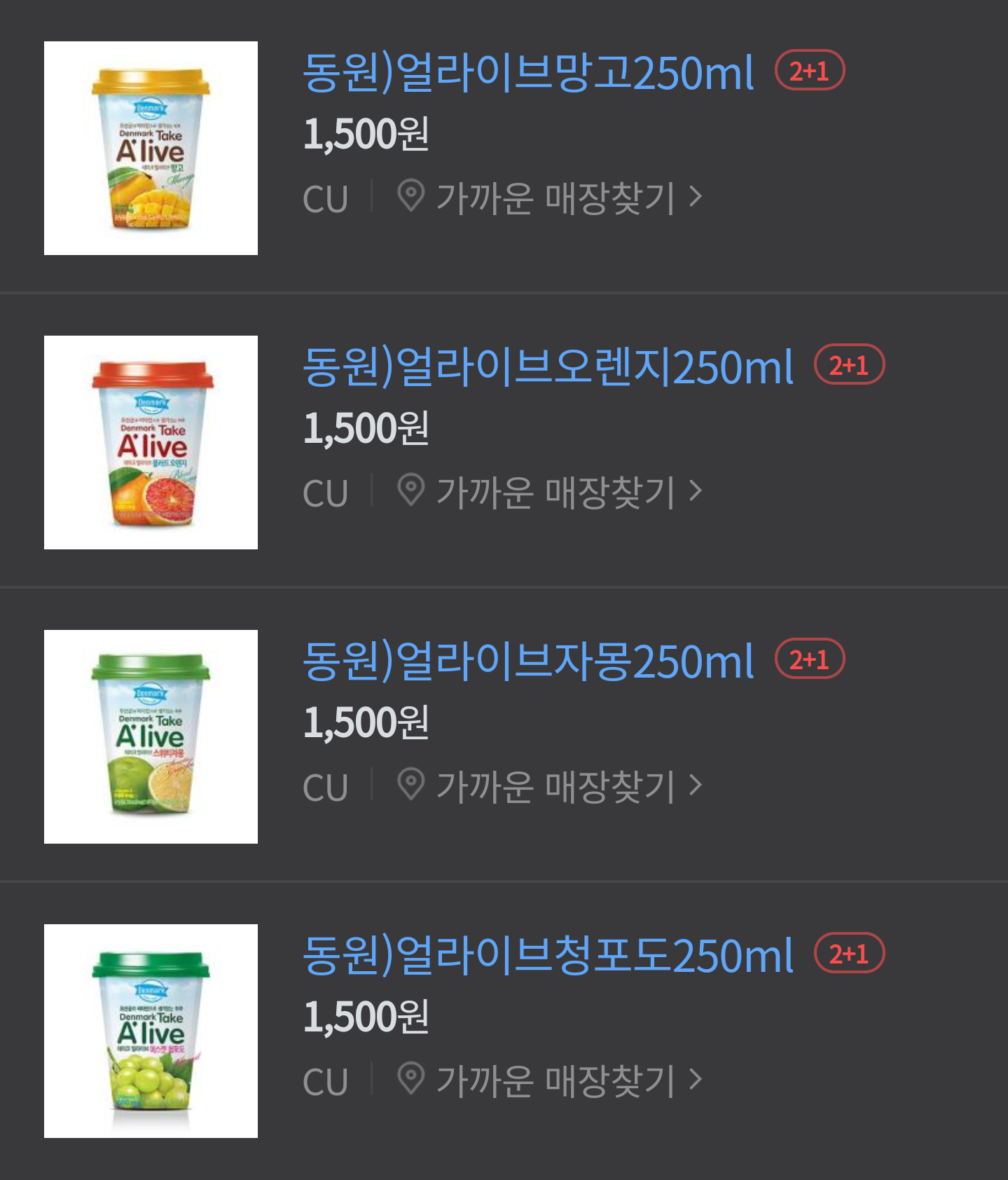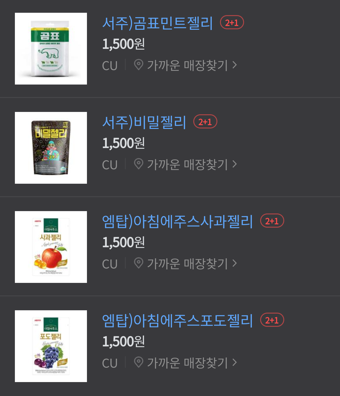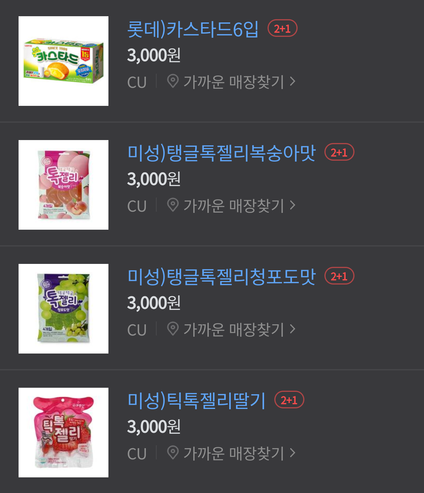 더 많은 2+1 상품(음료, 간식 종류만)은 아래 더보기 클릭