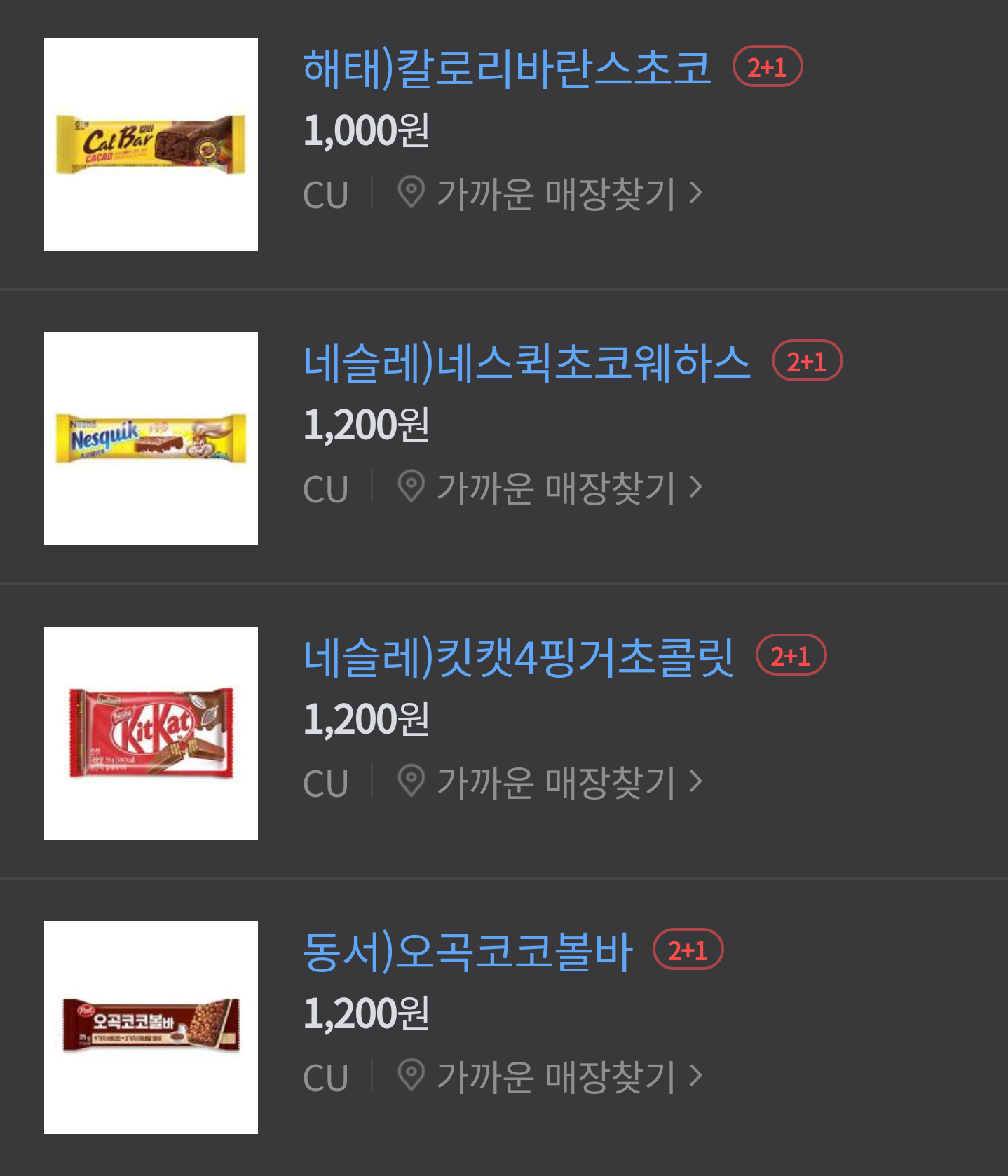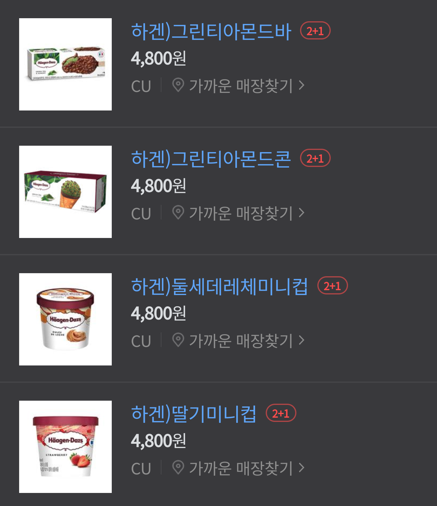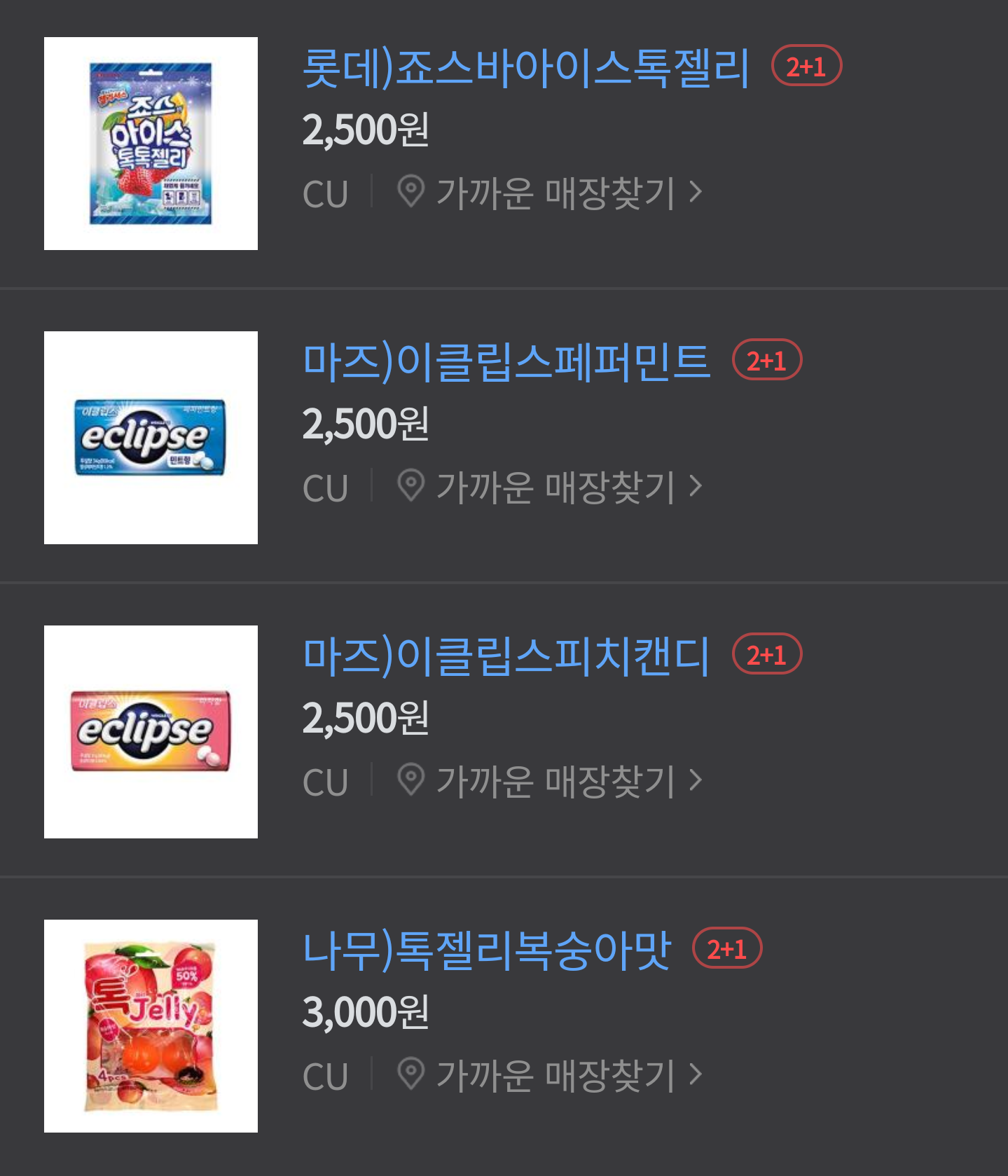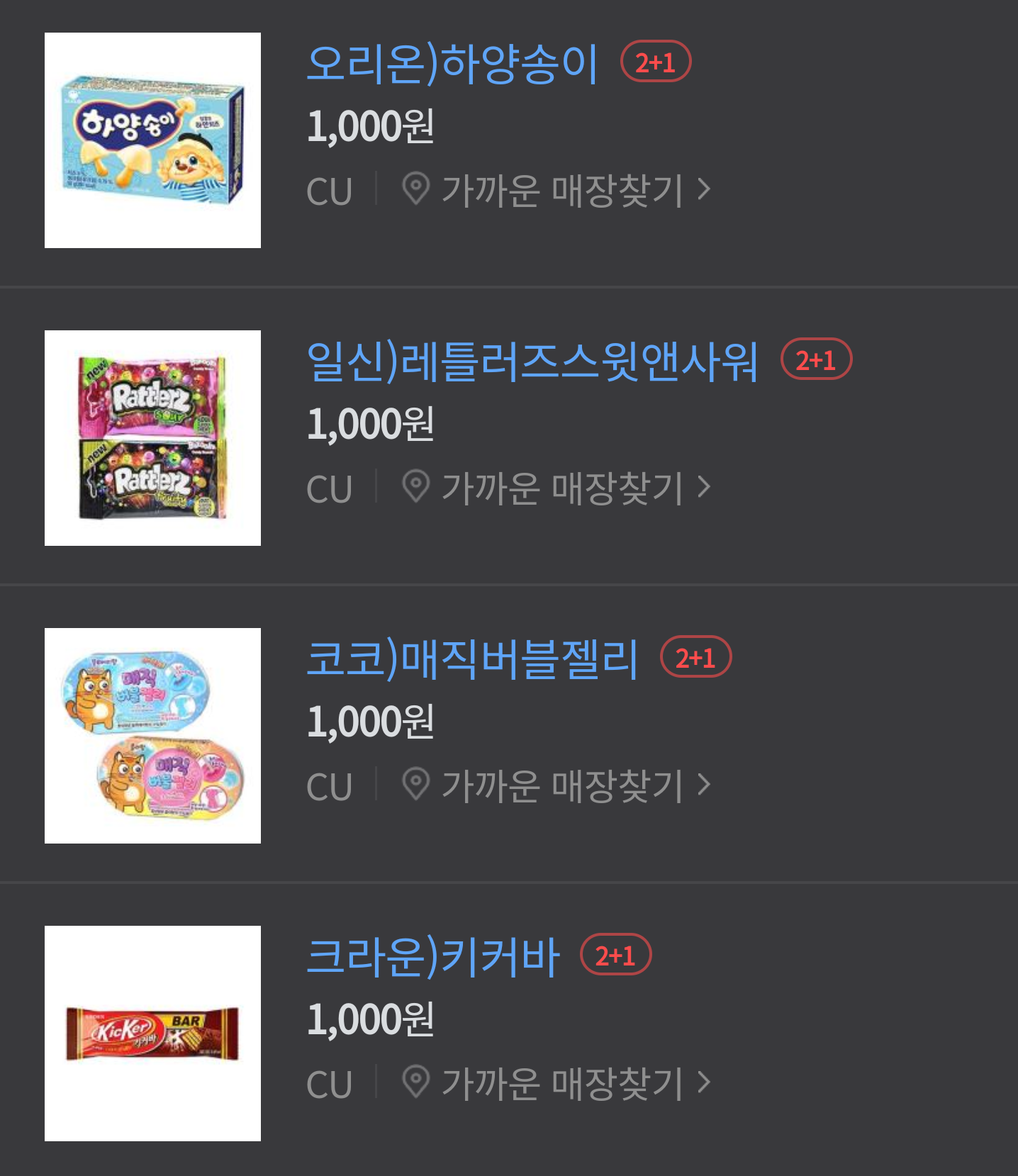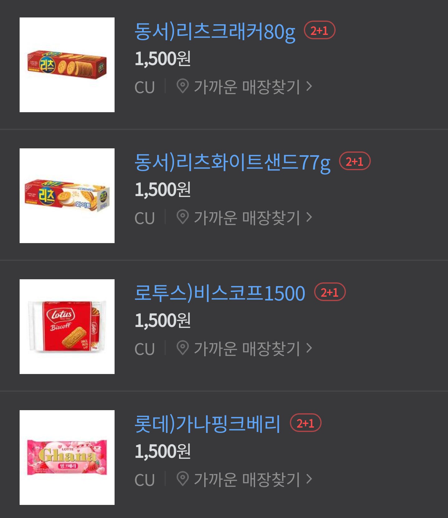 더 많은 2+1 상품(음료, 간식 종류만)은 아래 더보기 클릭