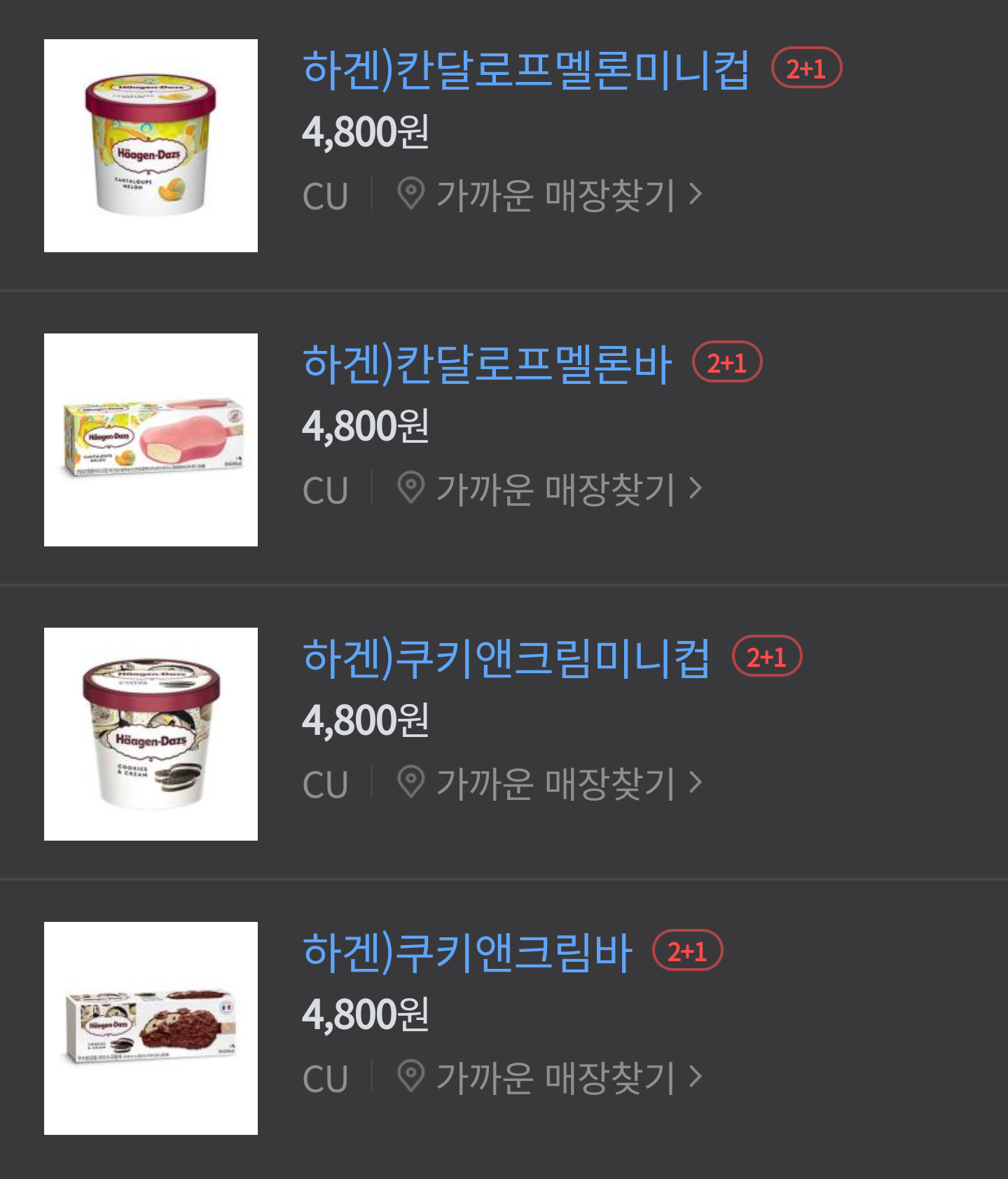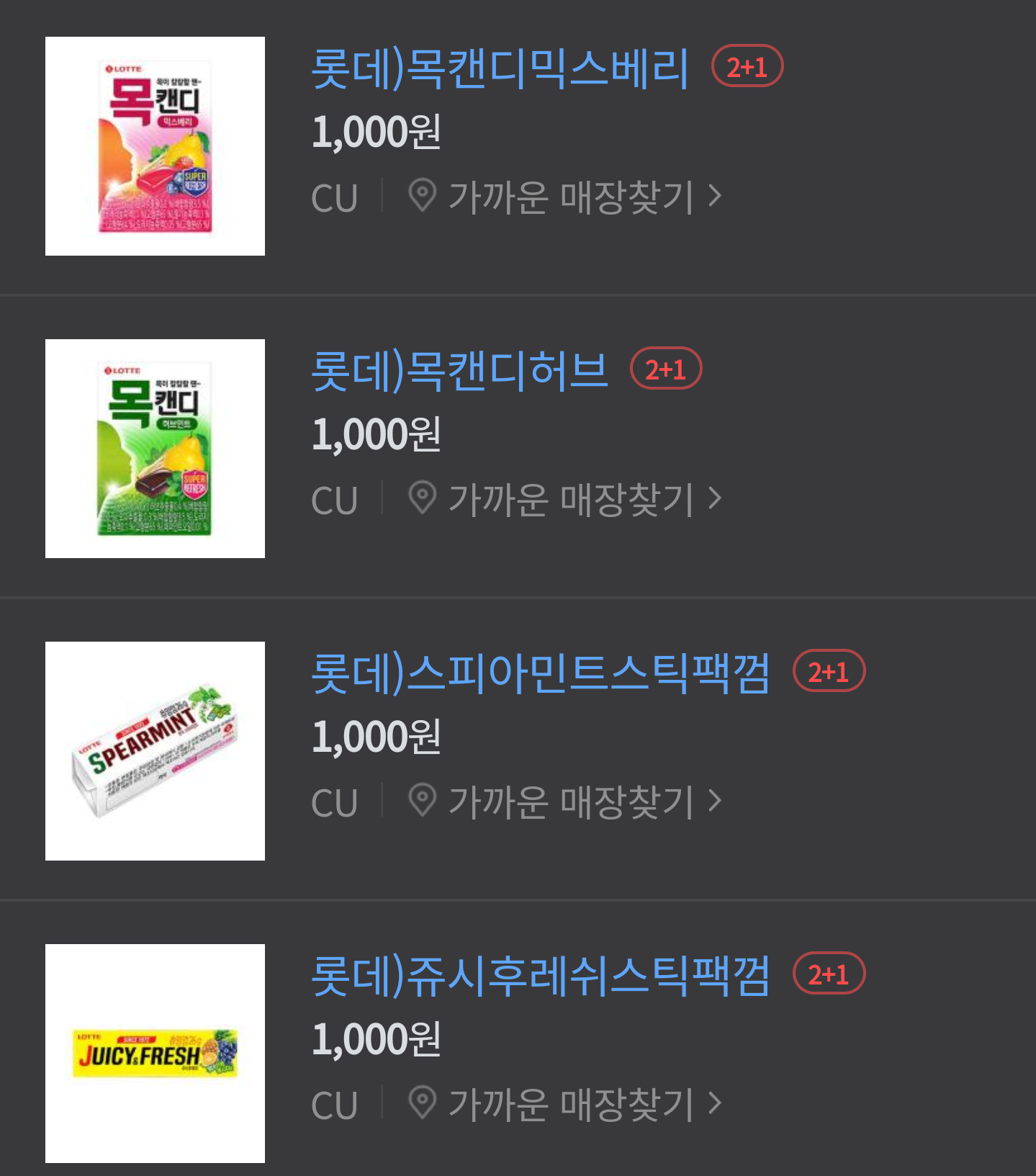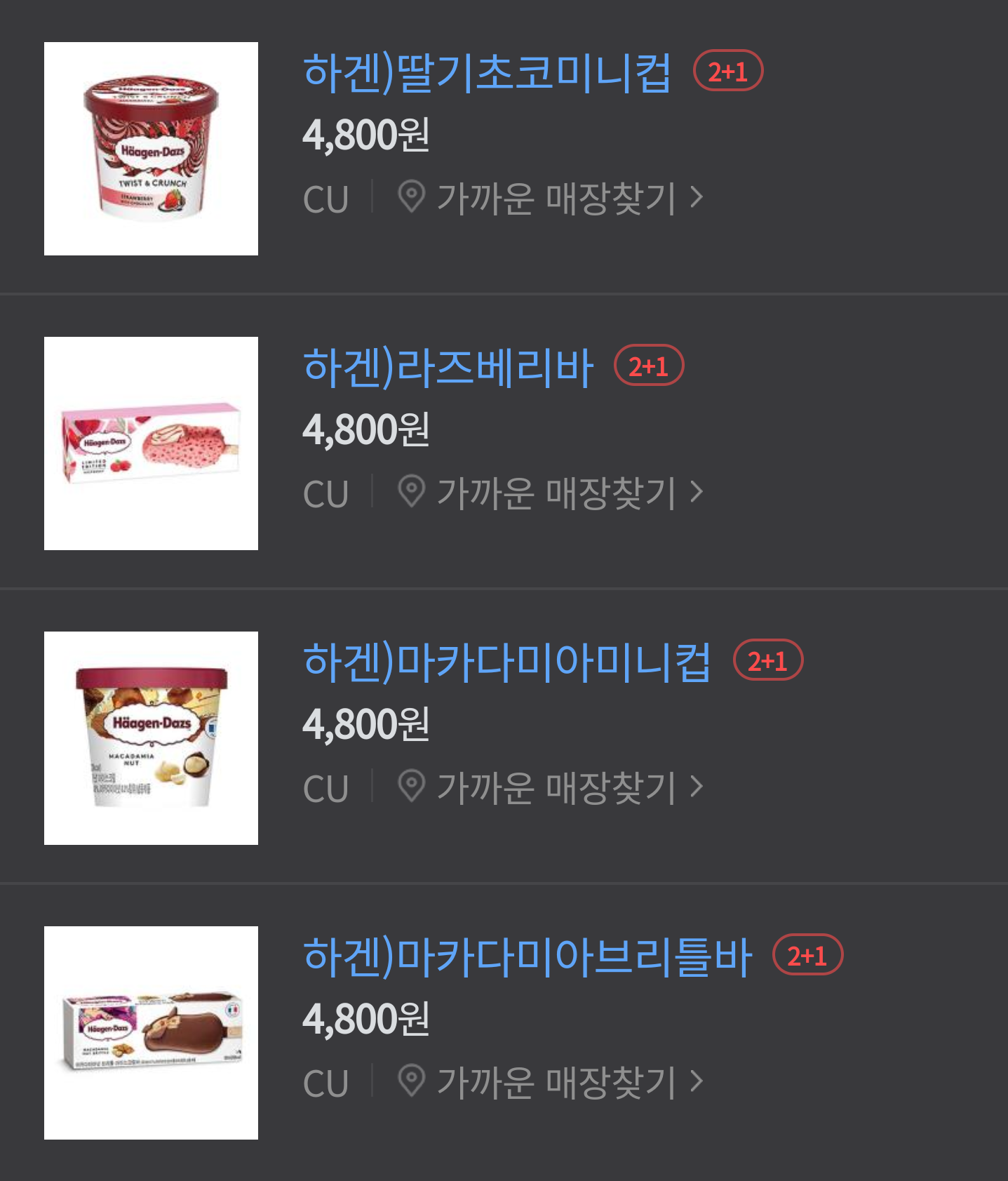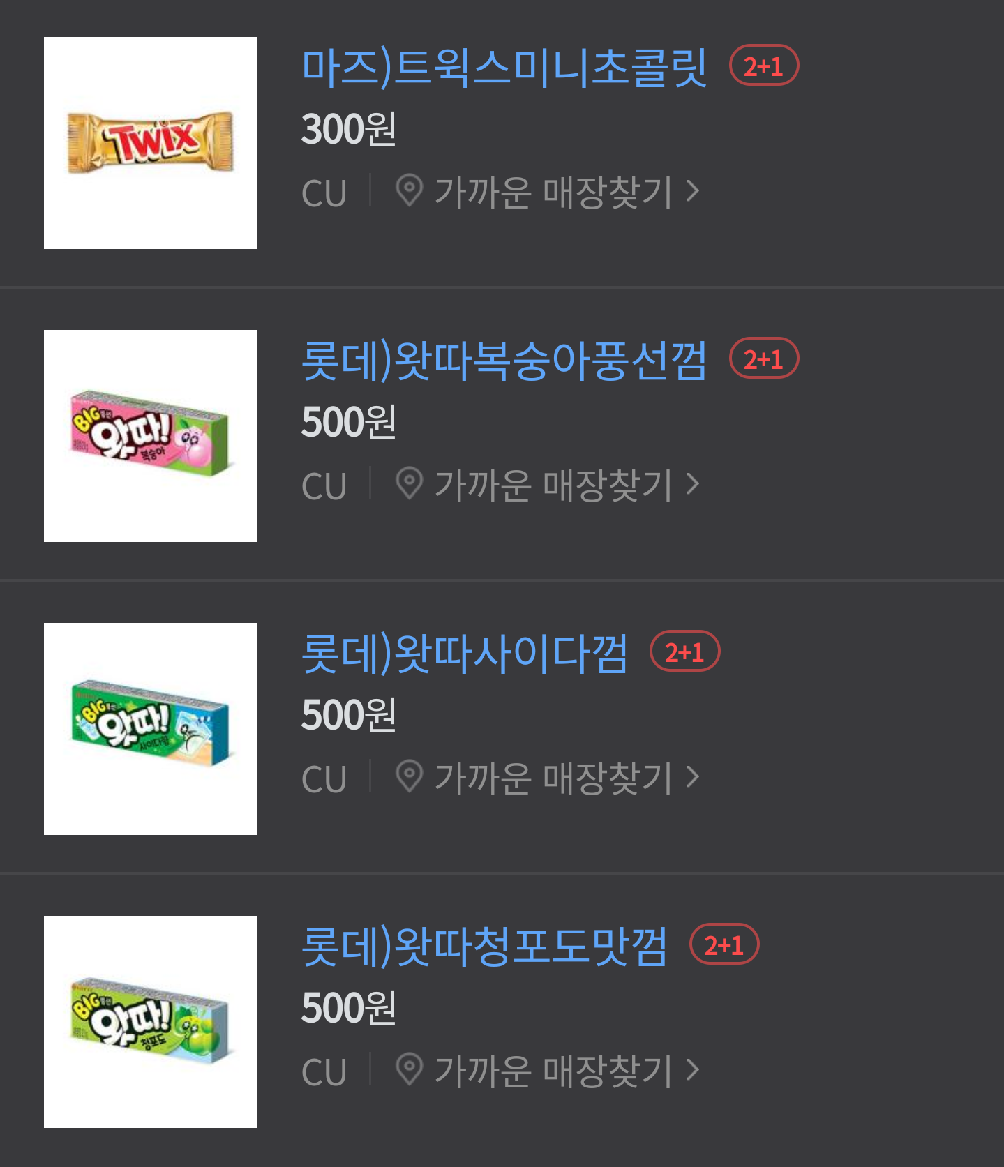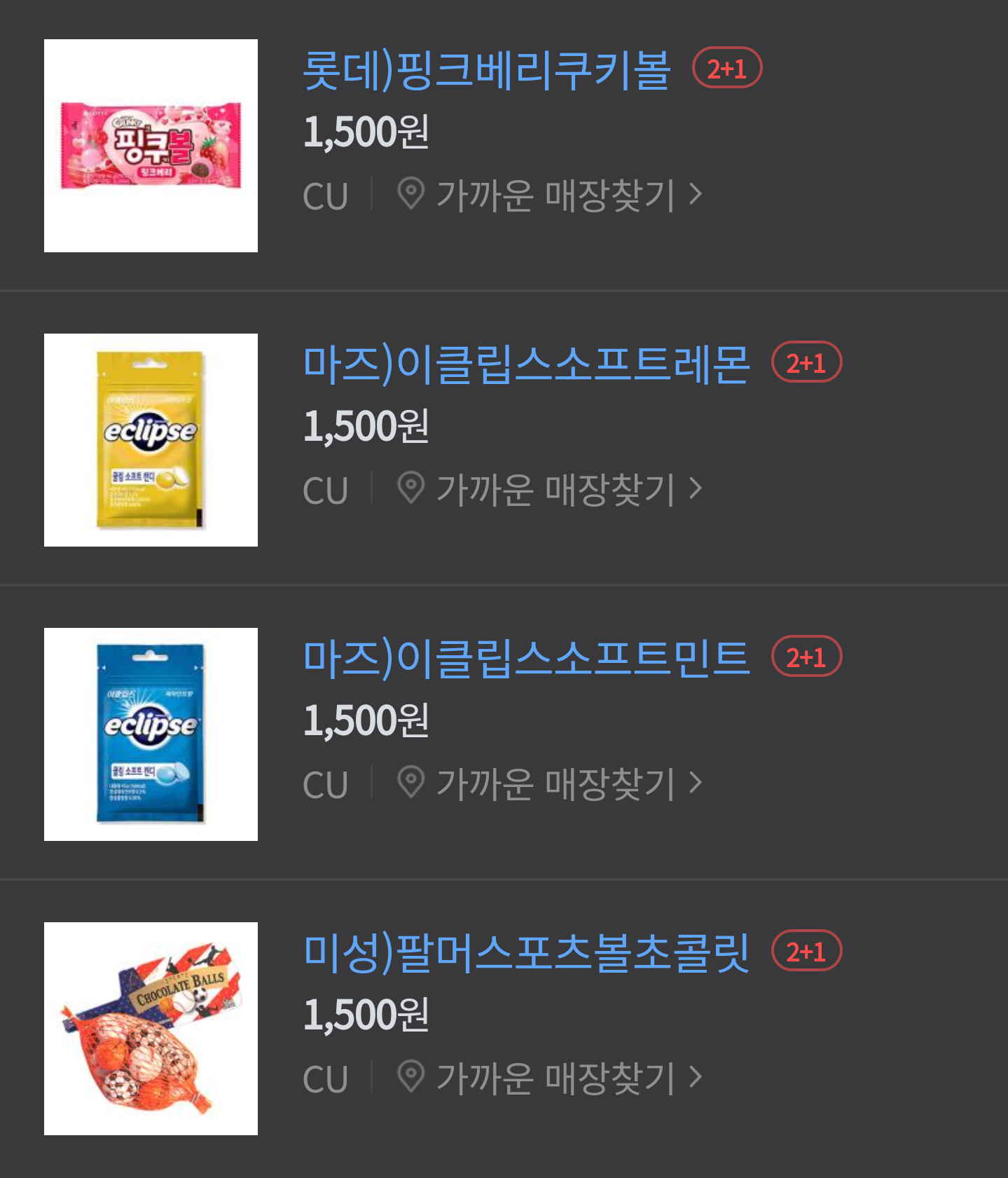 더 많은 2+1 상품(음료, 간식 종류만)은 아래 더보기 클릭