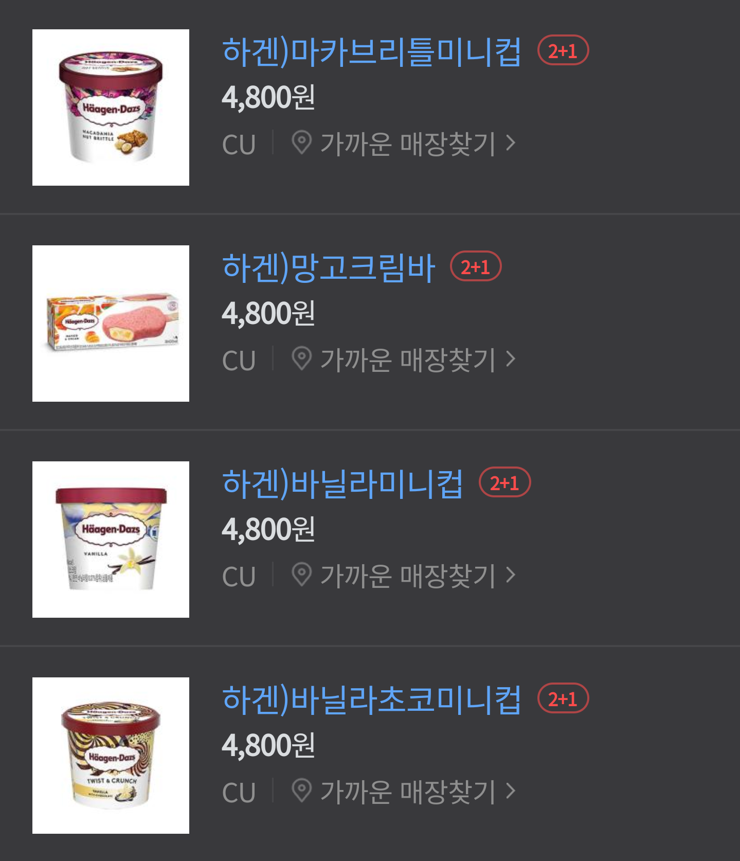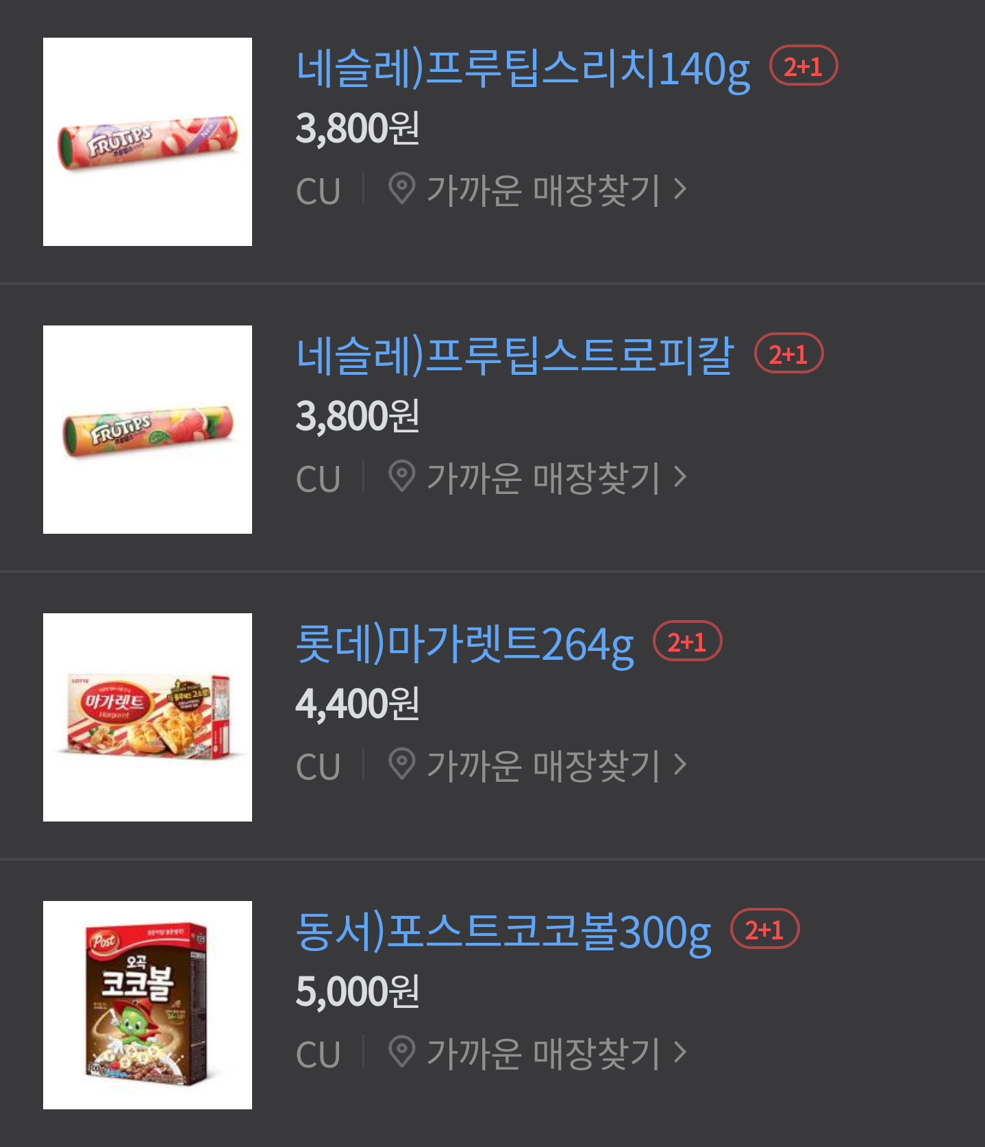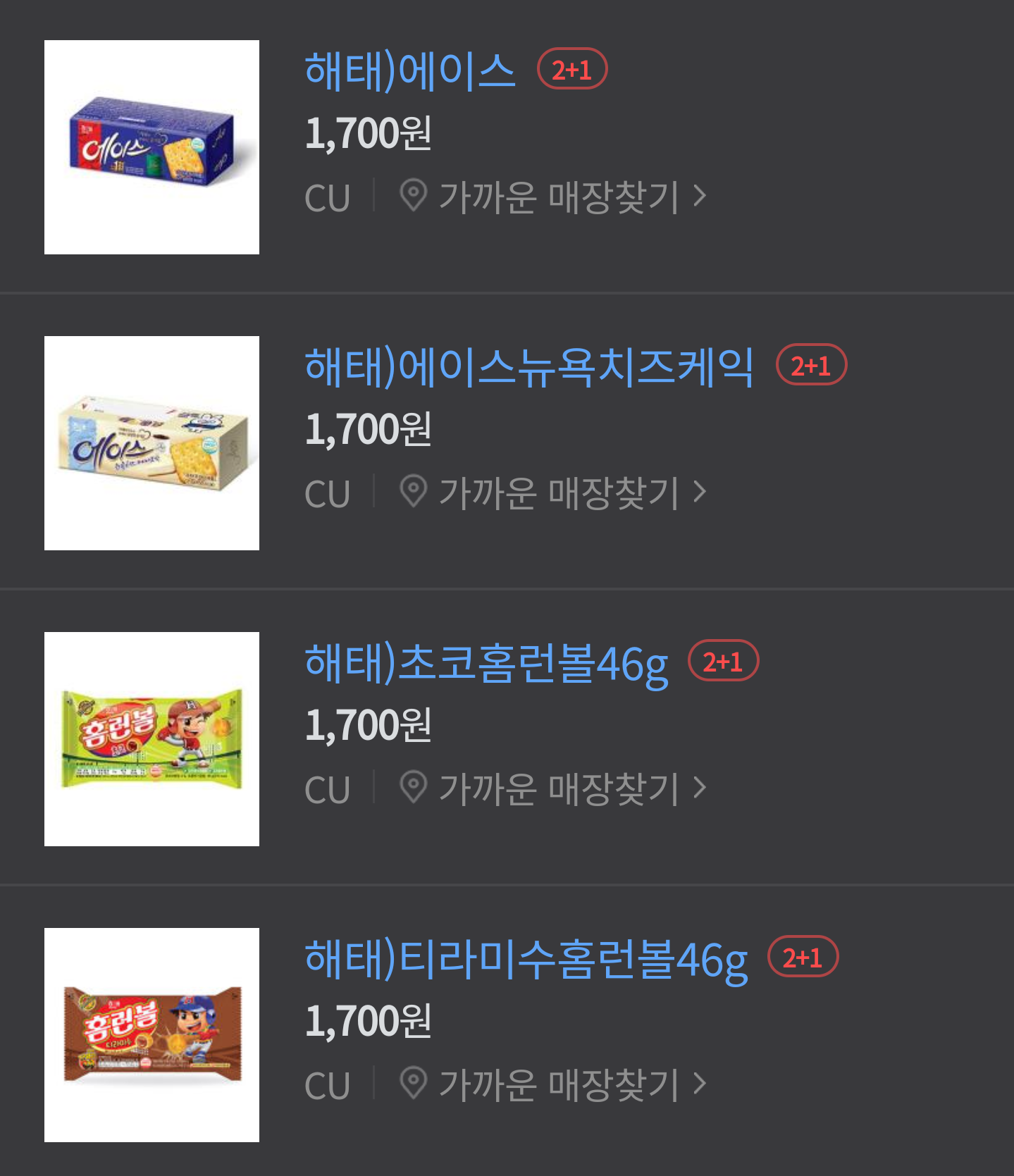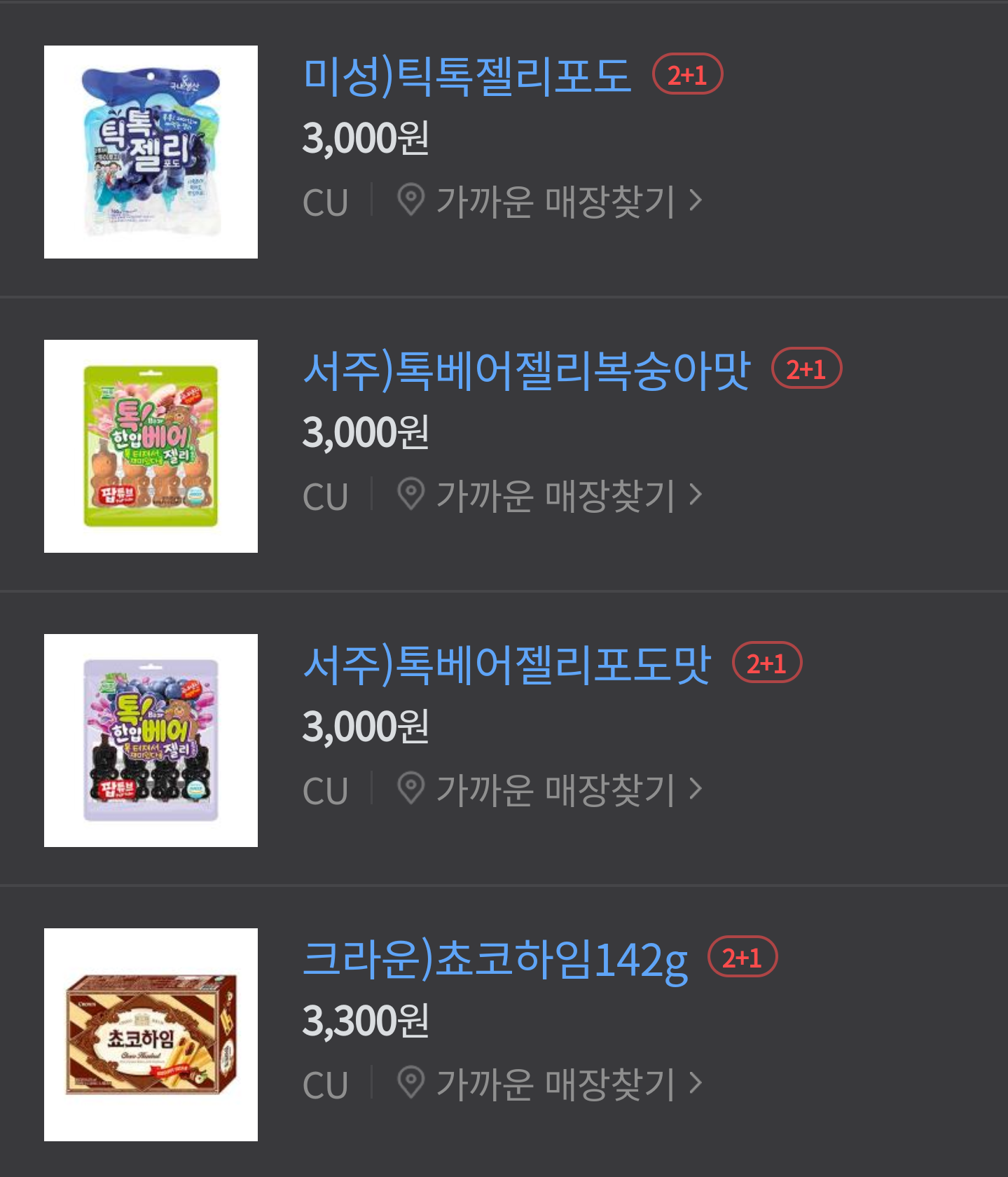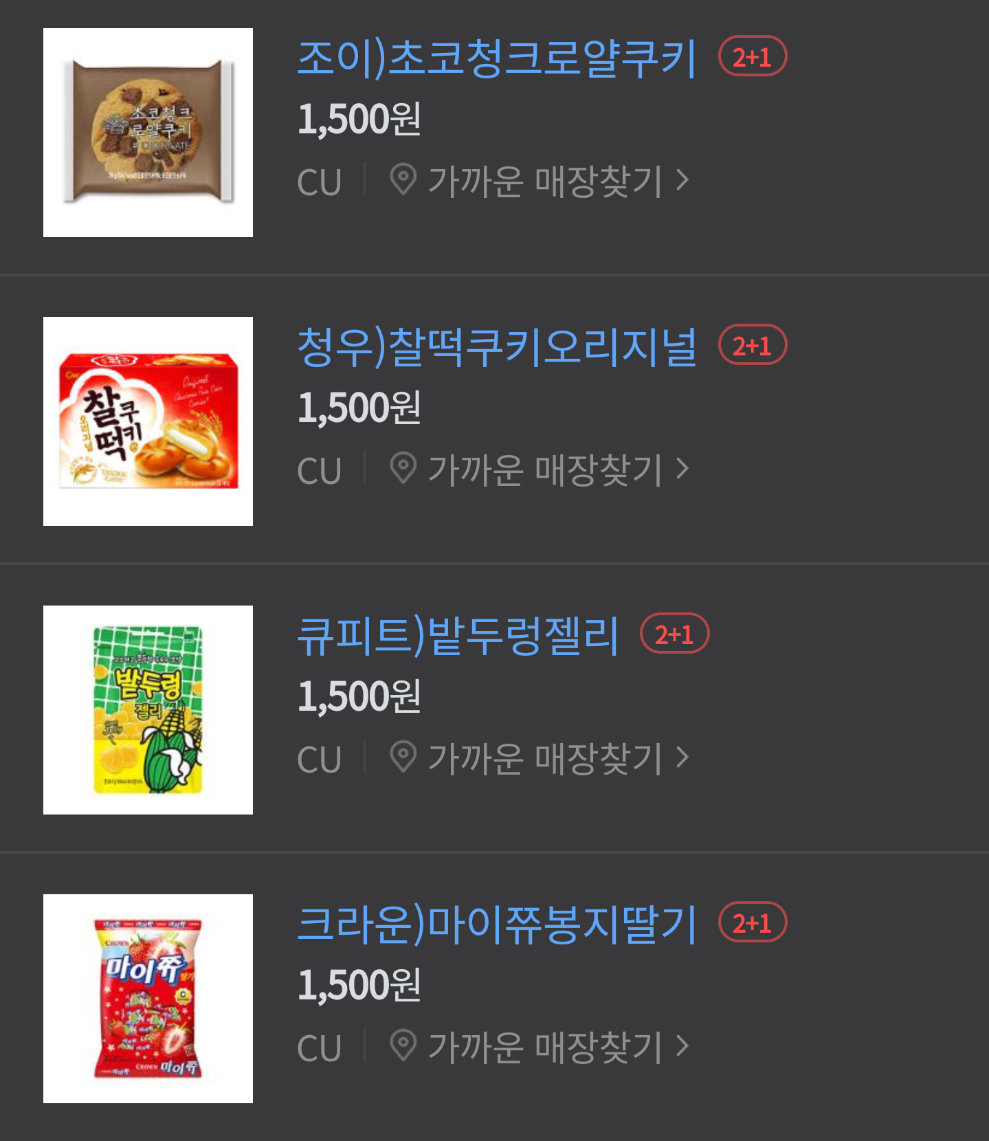 더 많은 2+1 상품(음료, 간식 종류만)은 아래 더보기 클릭