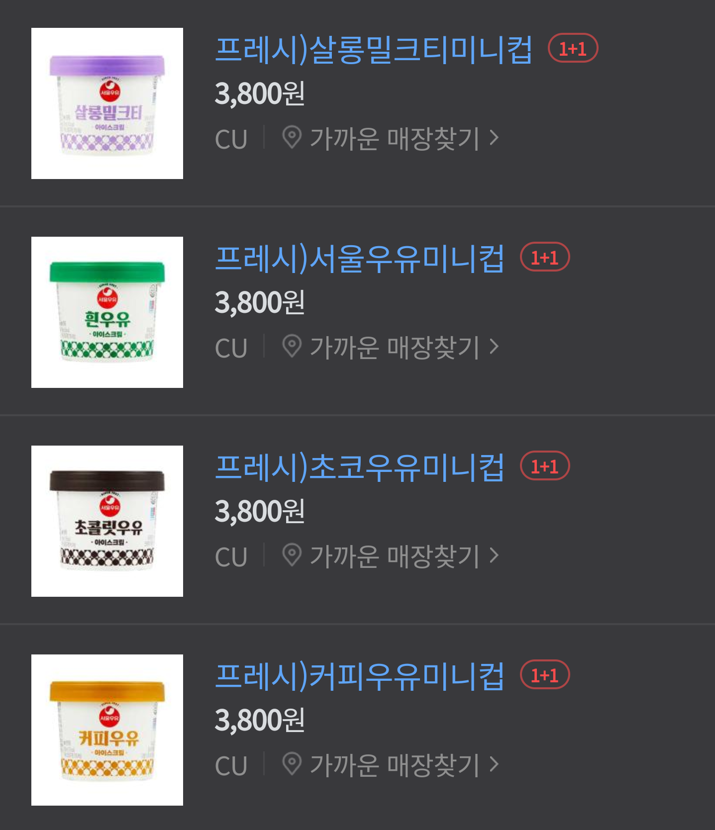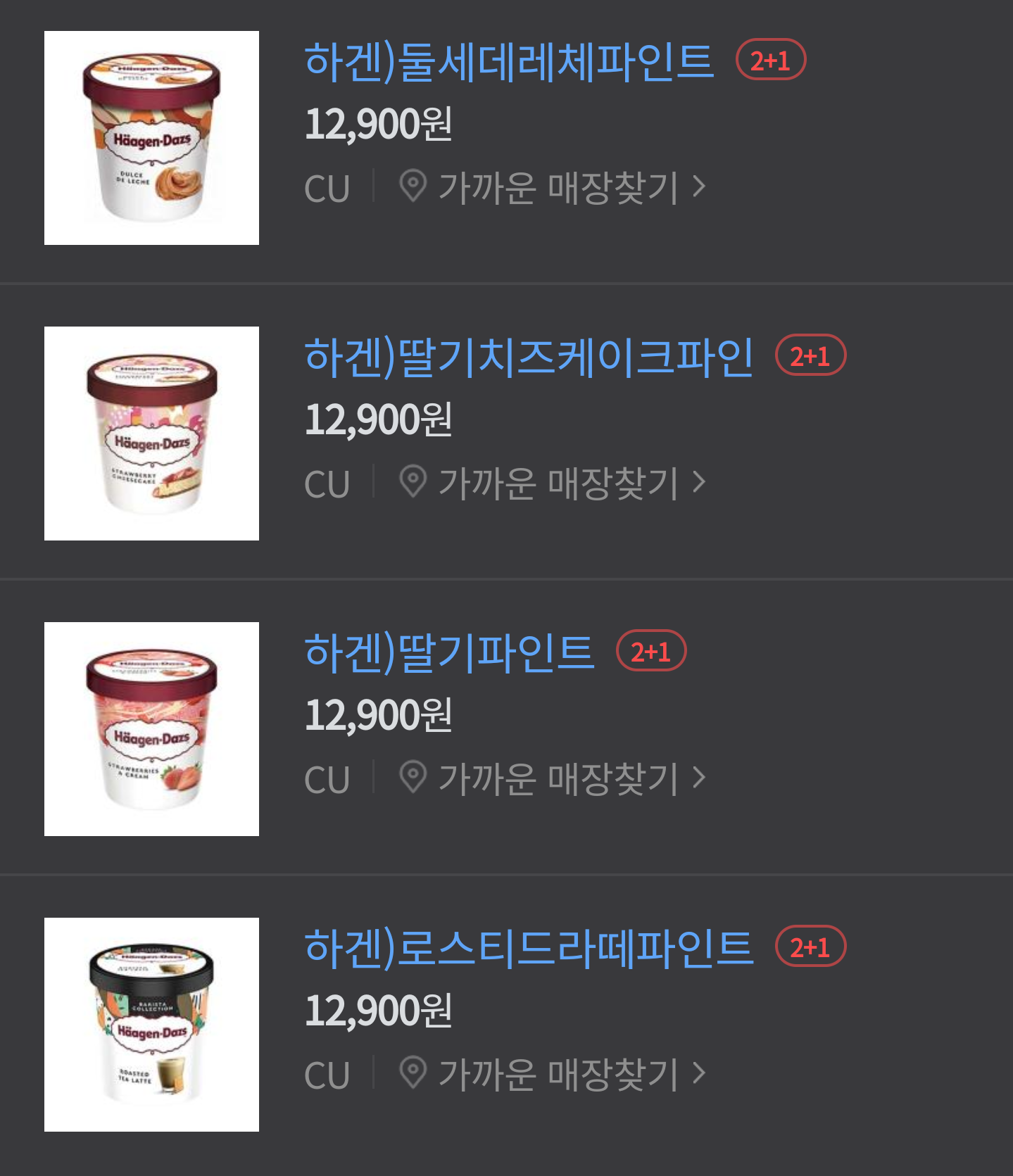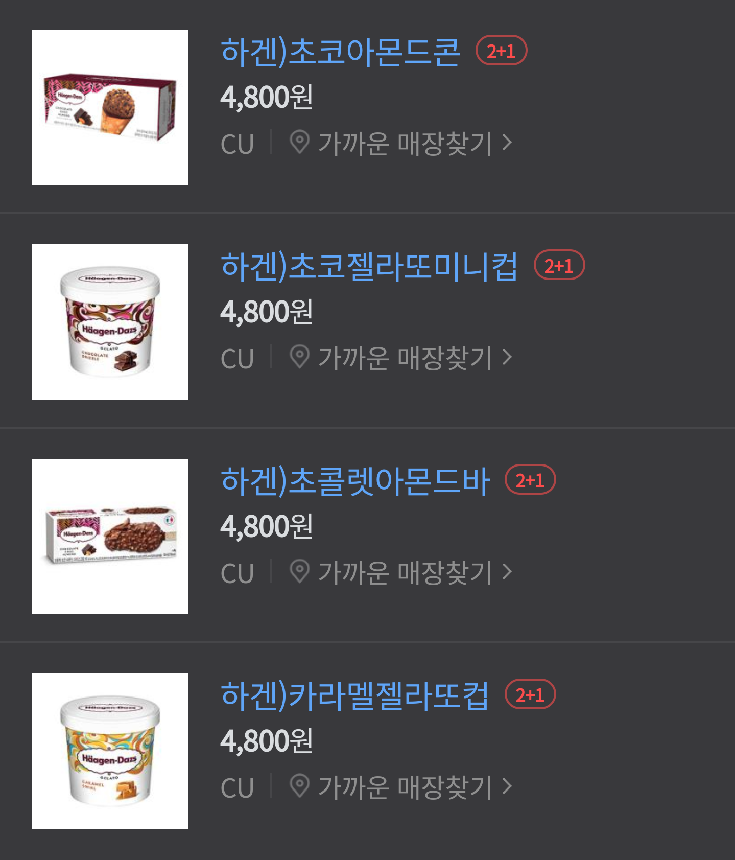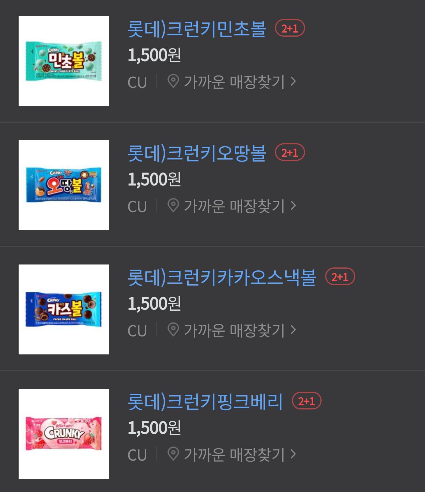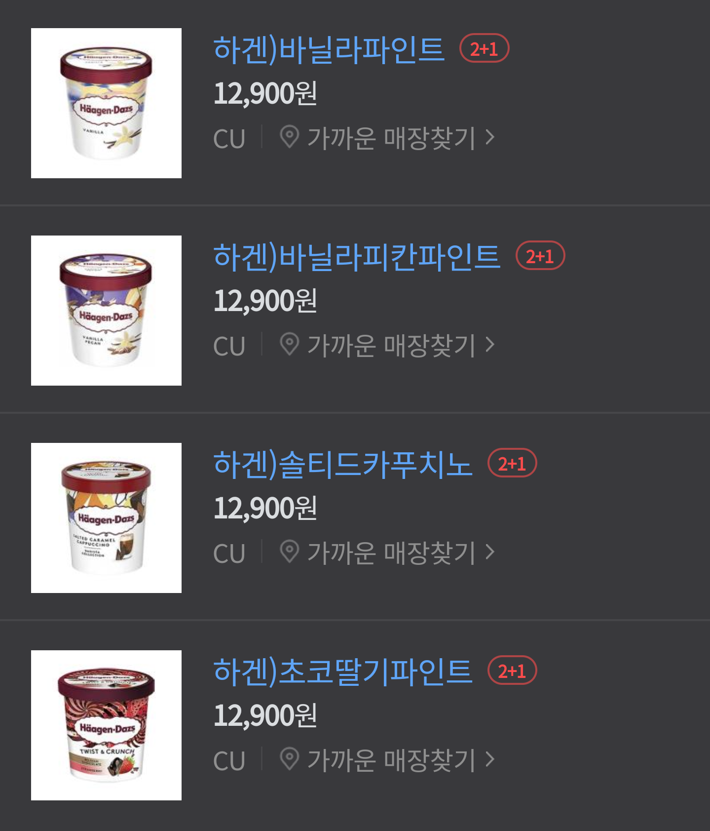 더 많은 2+1 상품(음료, 간식 종류만)은 아래 더보기 클릭