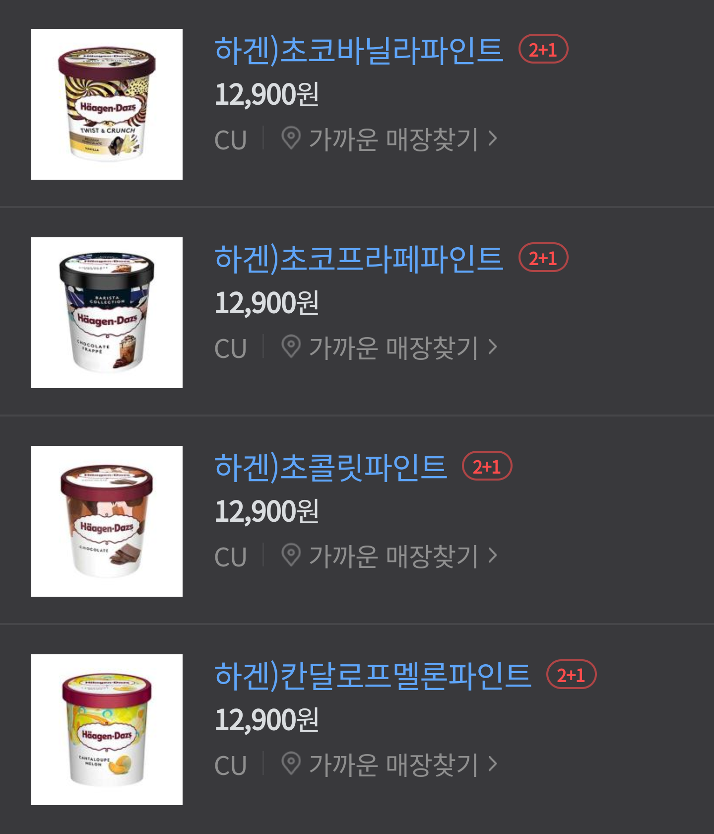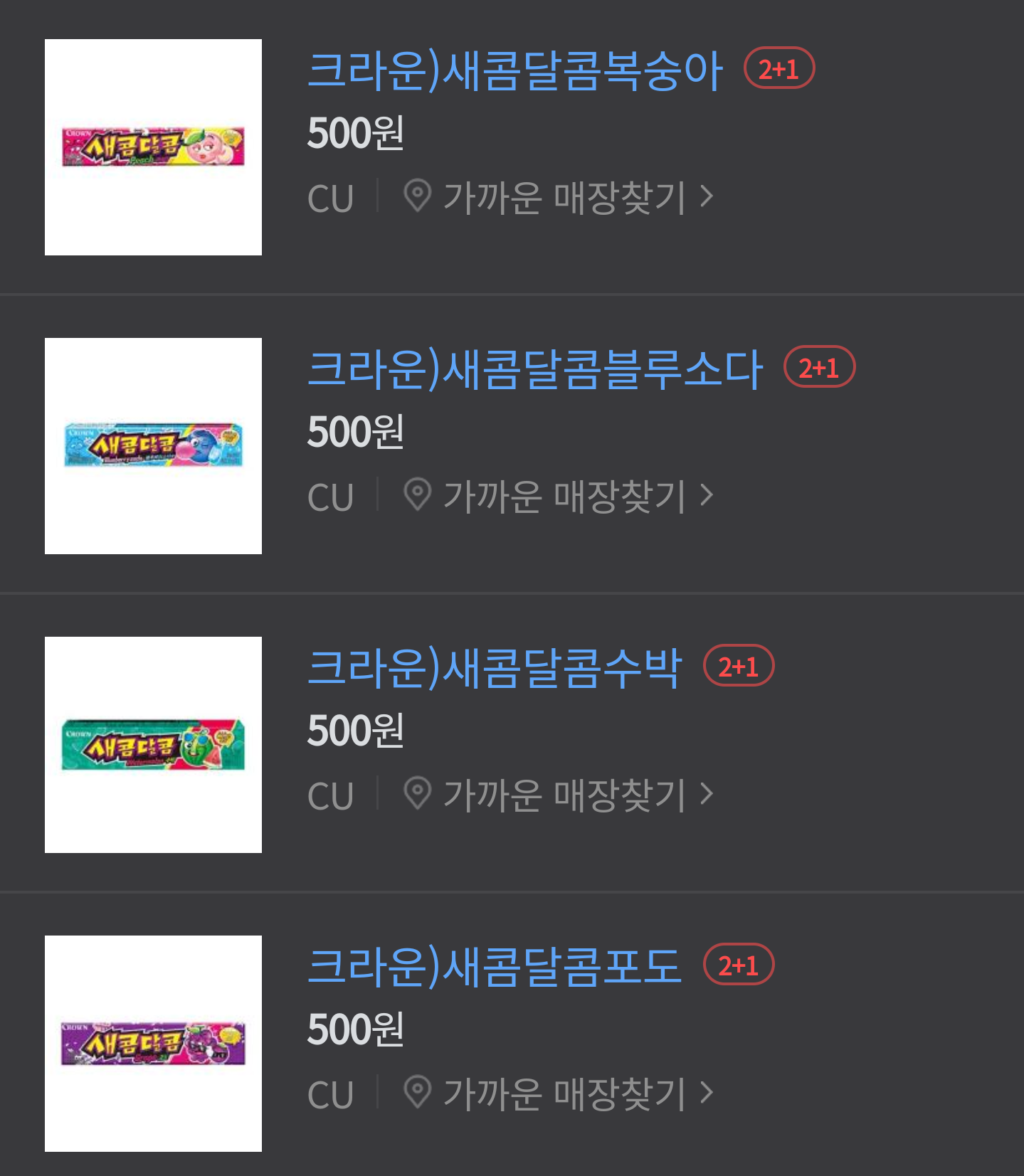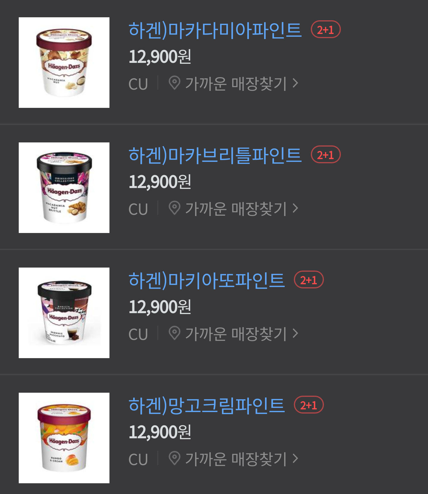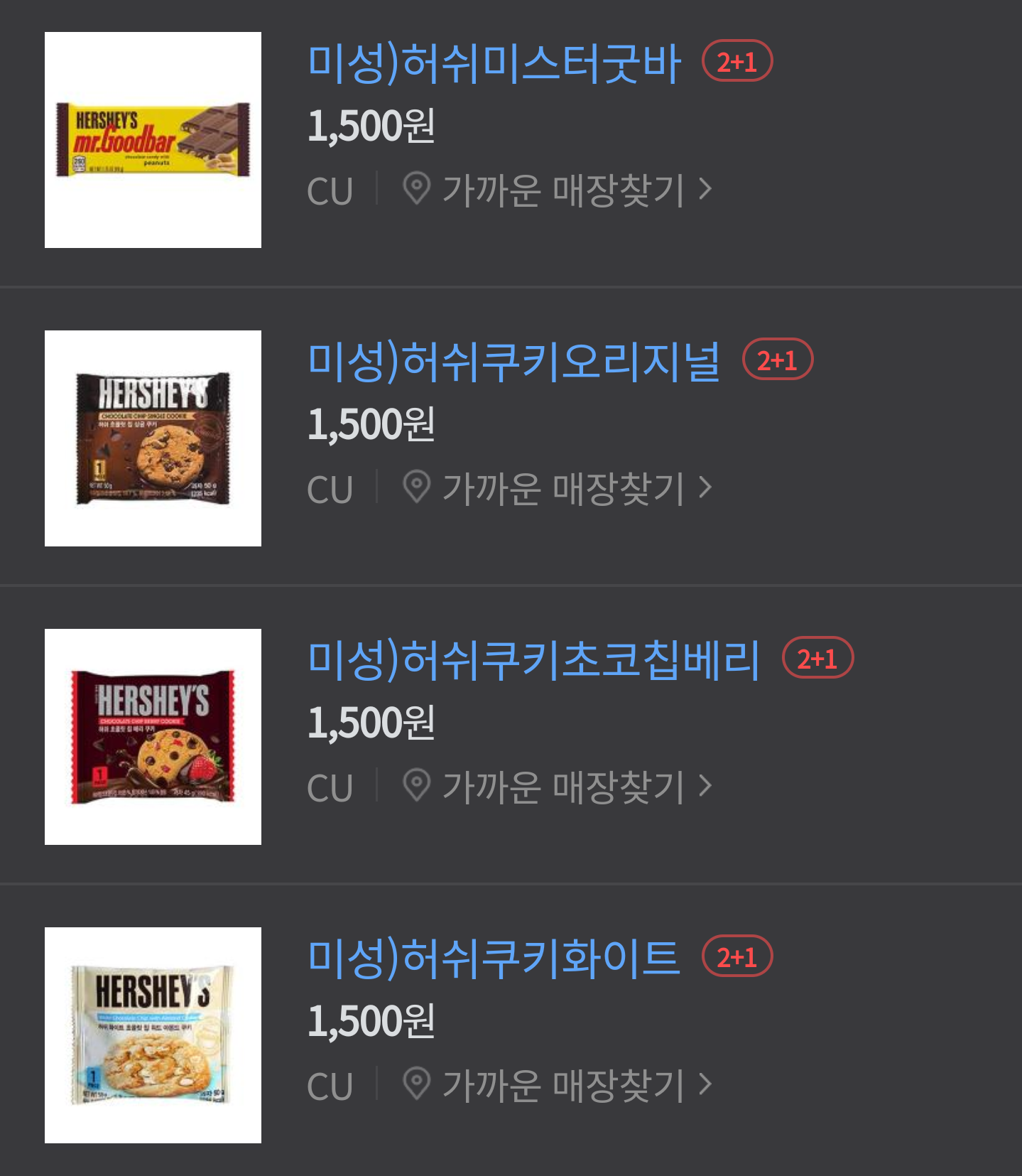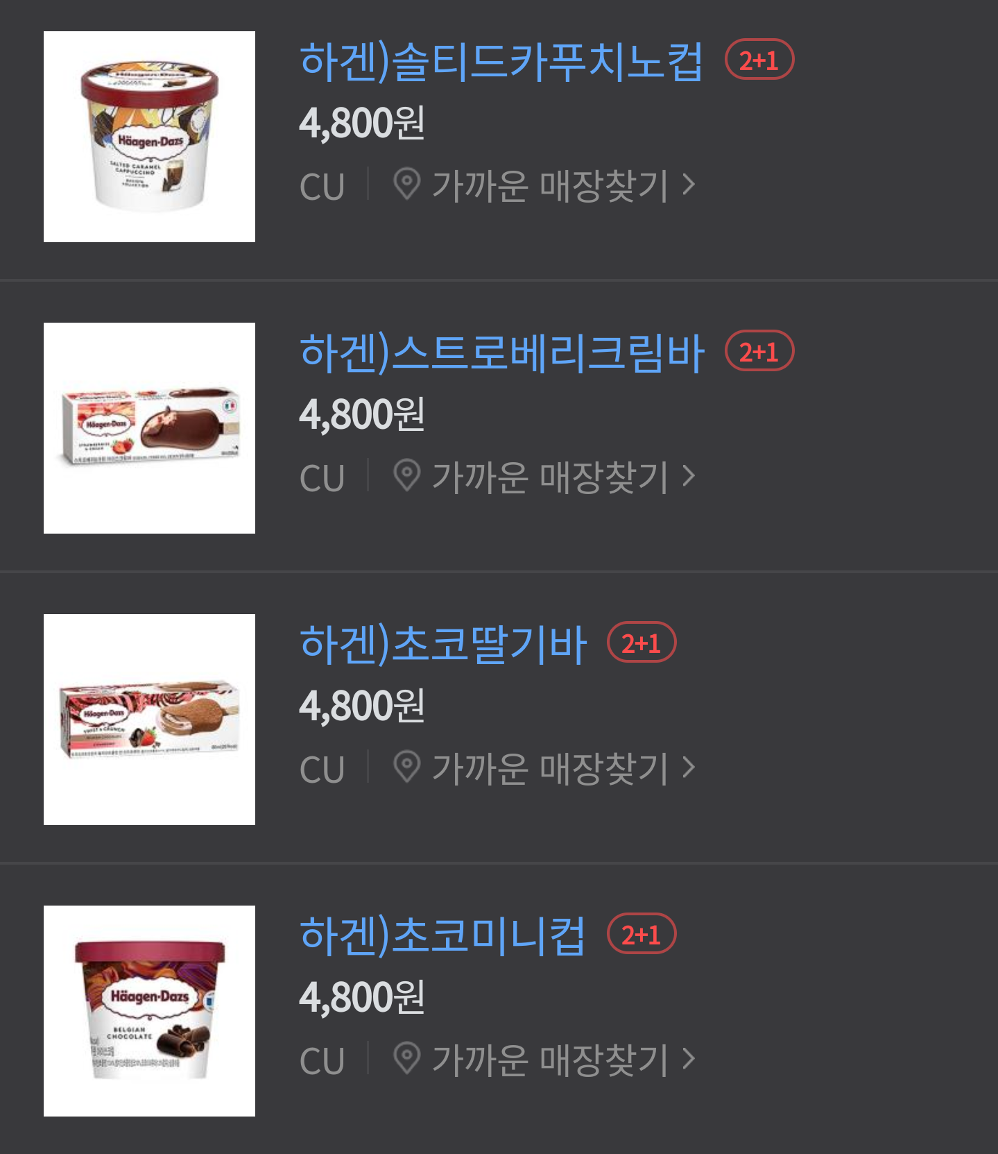 더 많은 2+1 상품(음료, 간식 종류만)은 아래 더보기 클릭