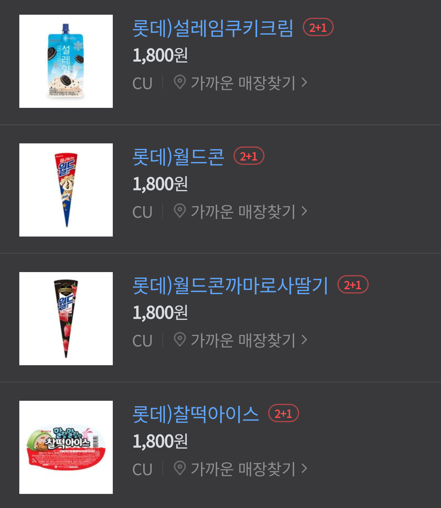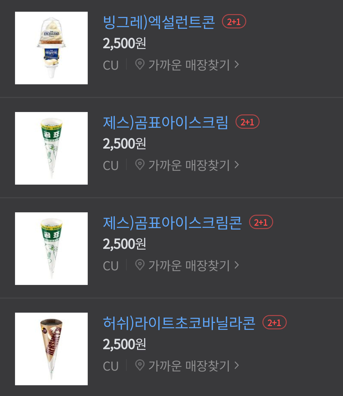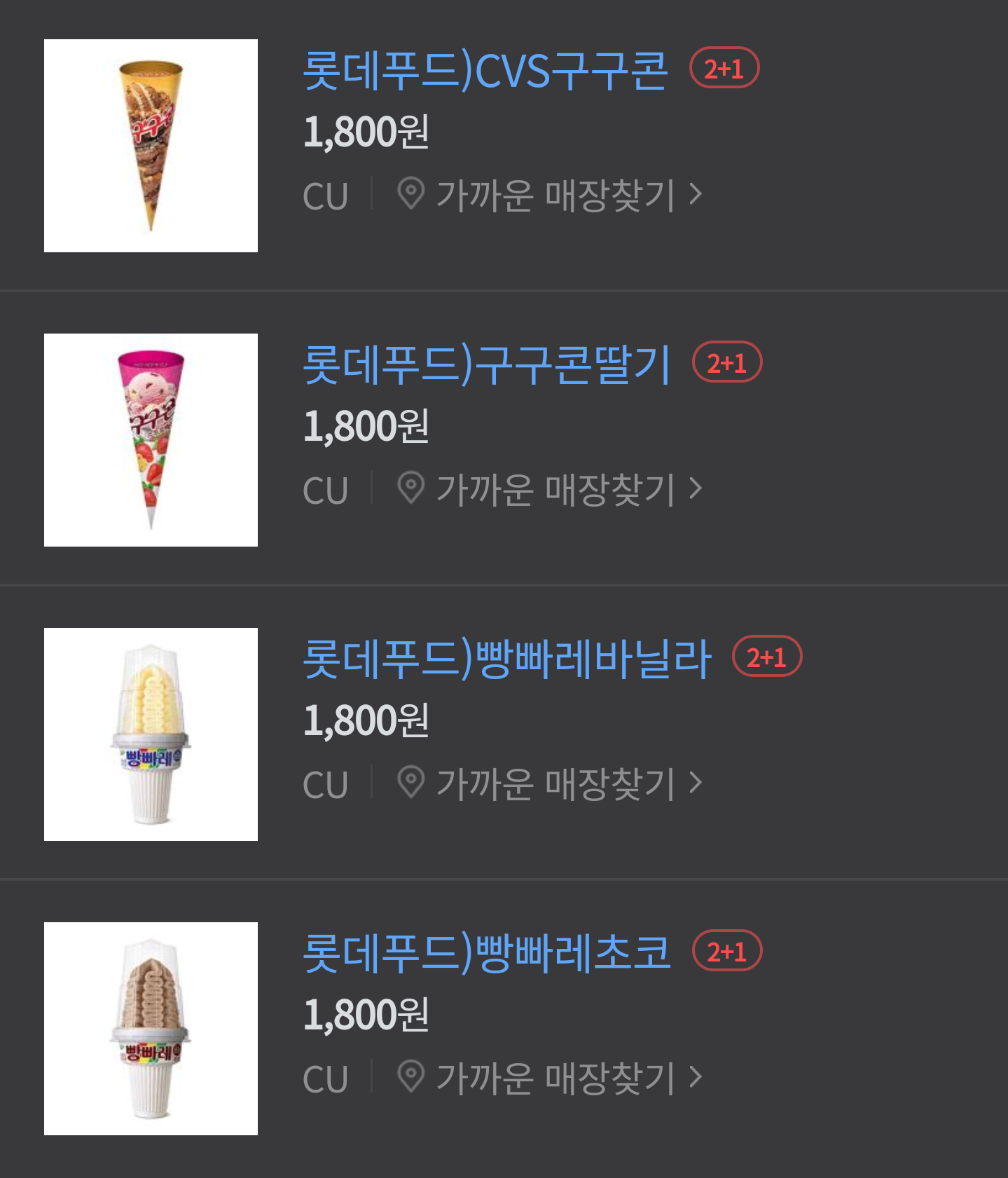 (이번 달 행사제품을 보면 아이스크림 2+1은 CU가 더 좋다. 1+1은 GS25에 더 많은 듯)