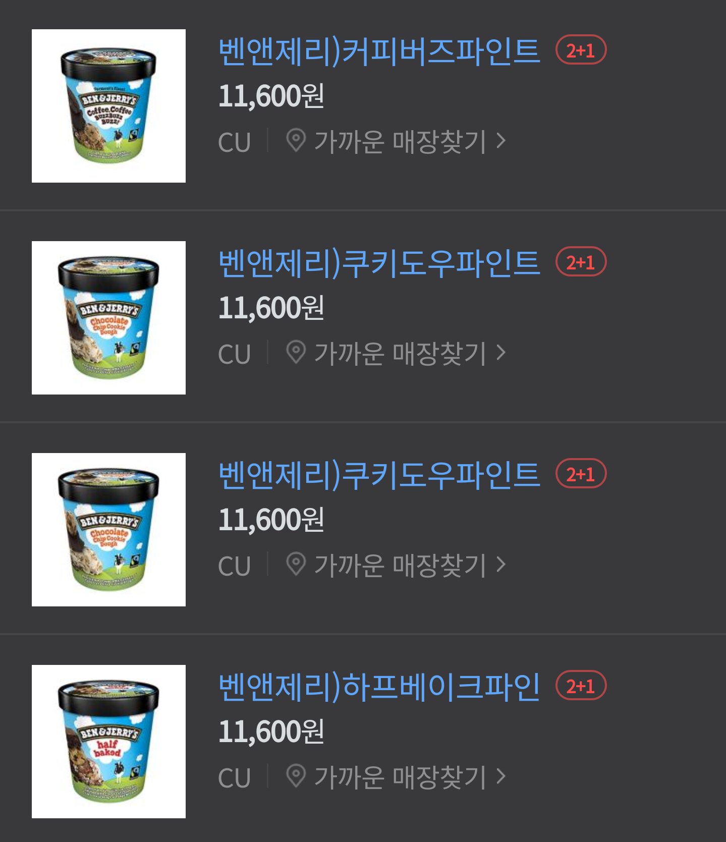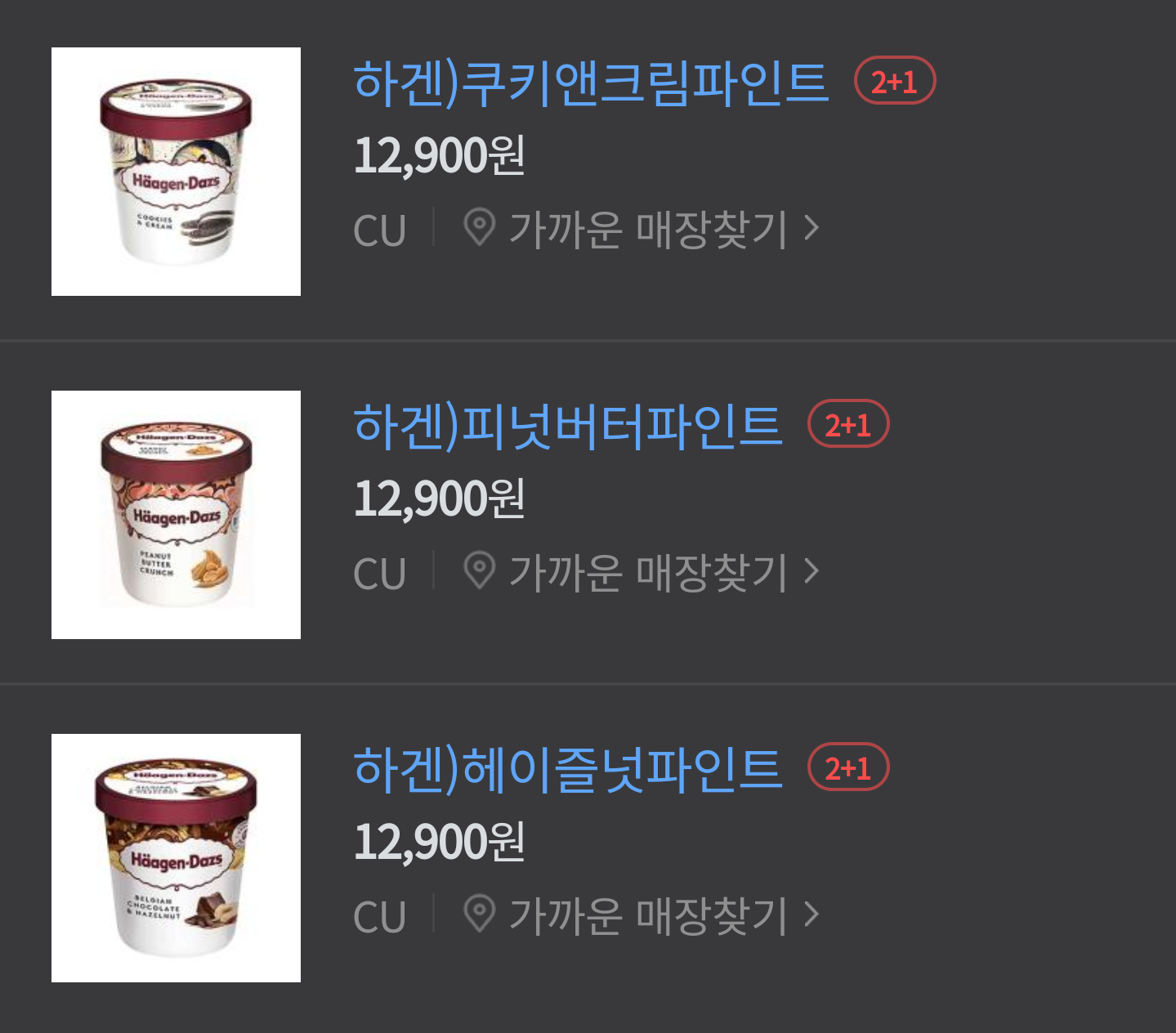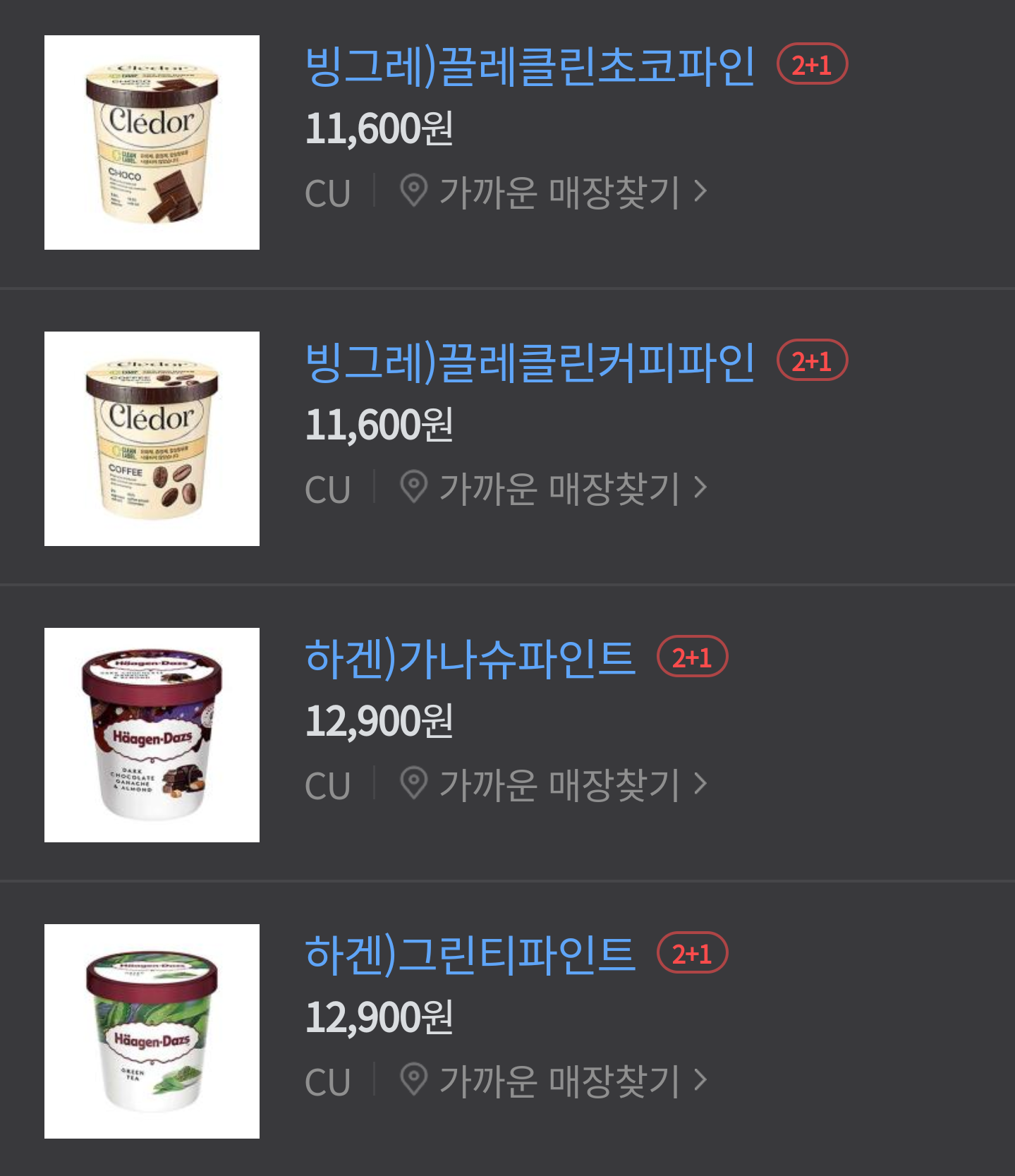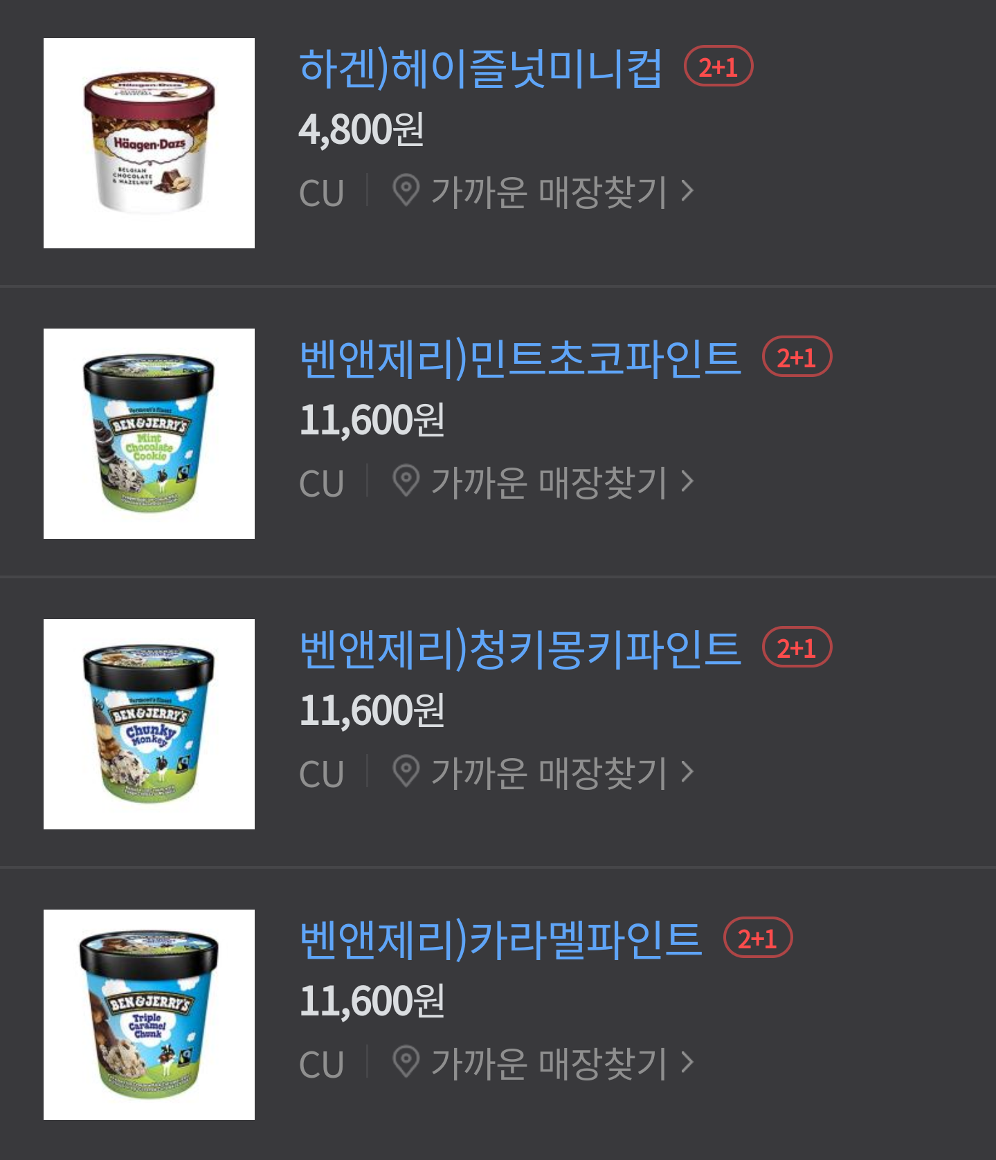 (이번 달 행사제품을 보면 아이스크림 2+1은 CU가 더 좋다. 1+1은 GS25에 더 많은 듯)